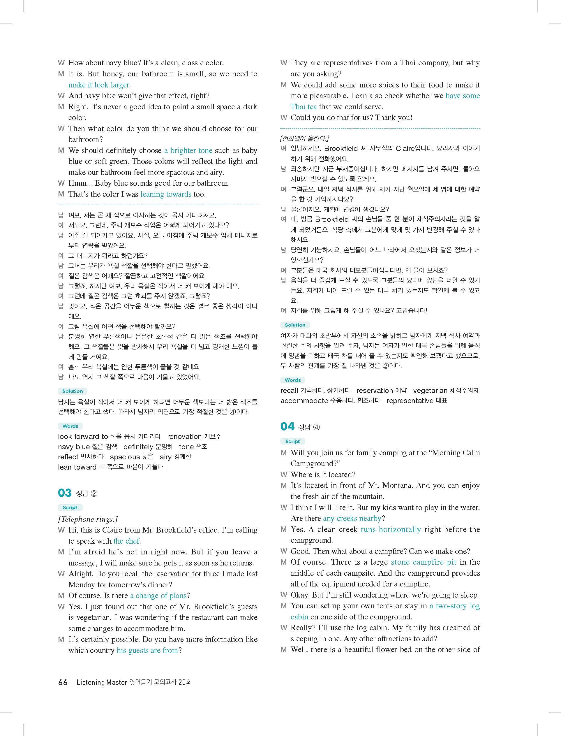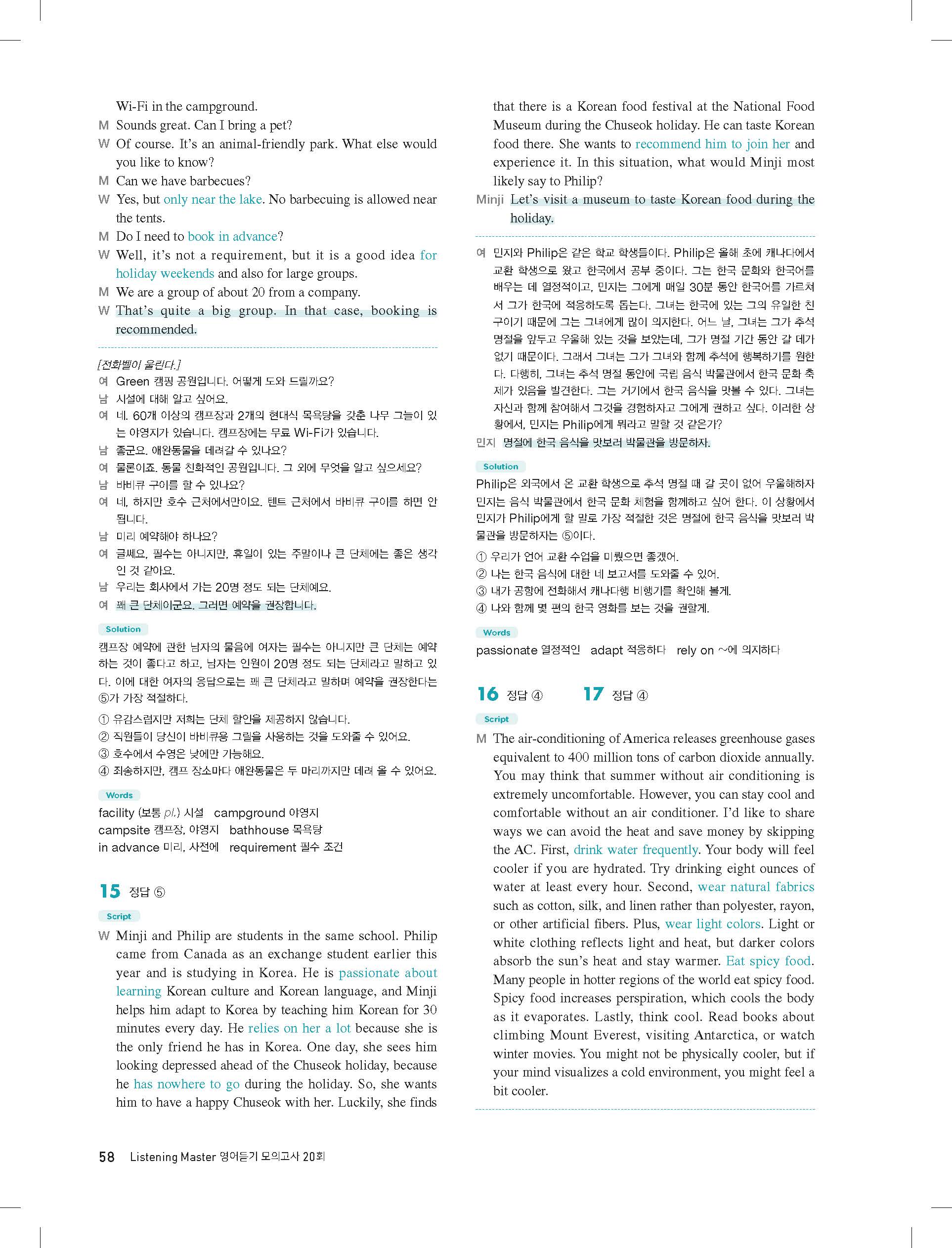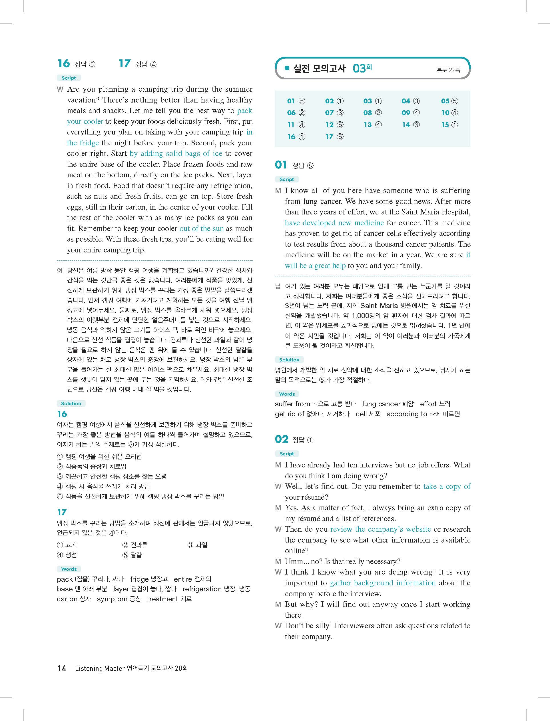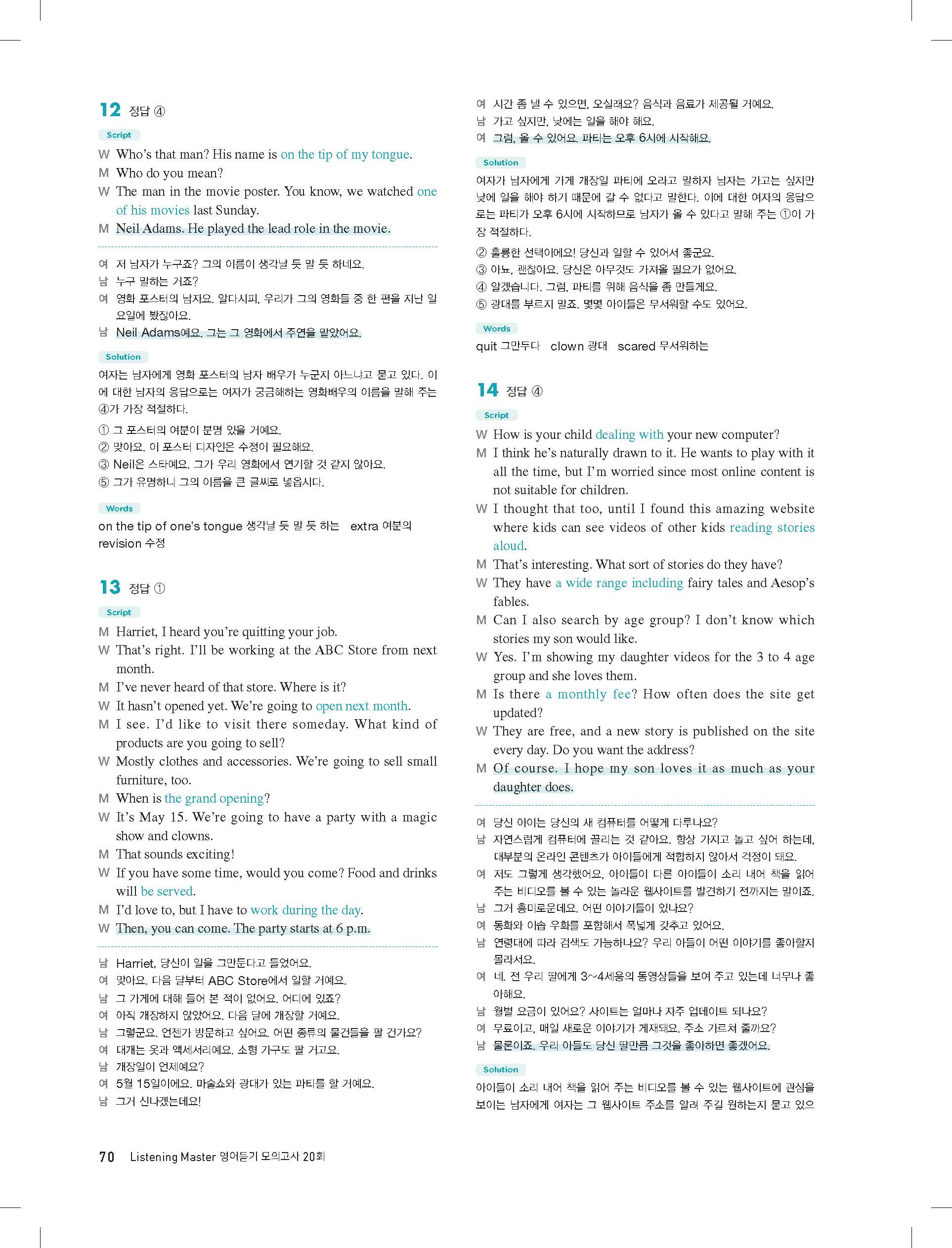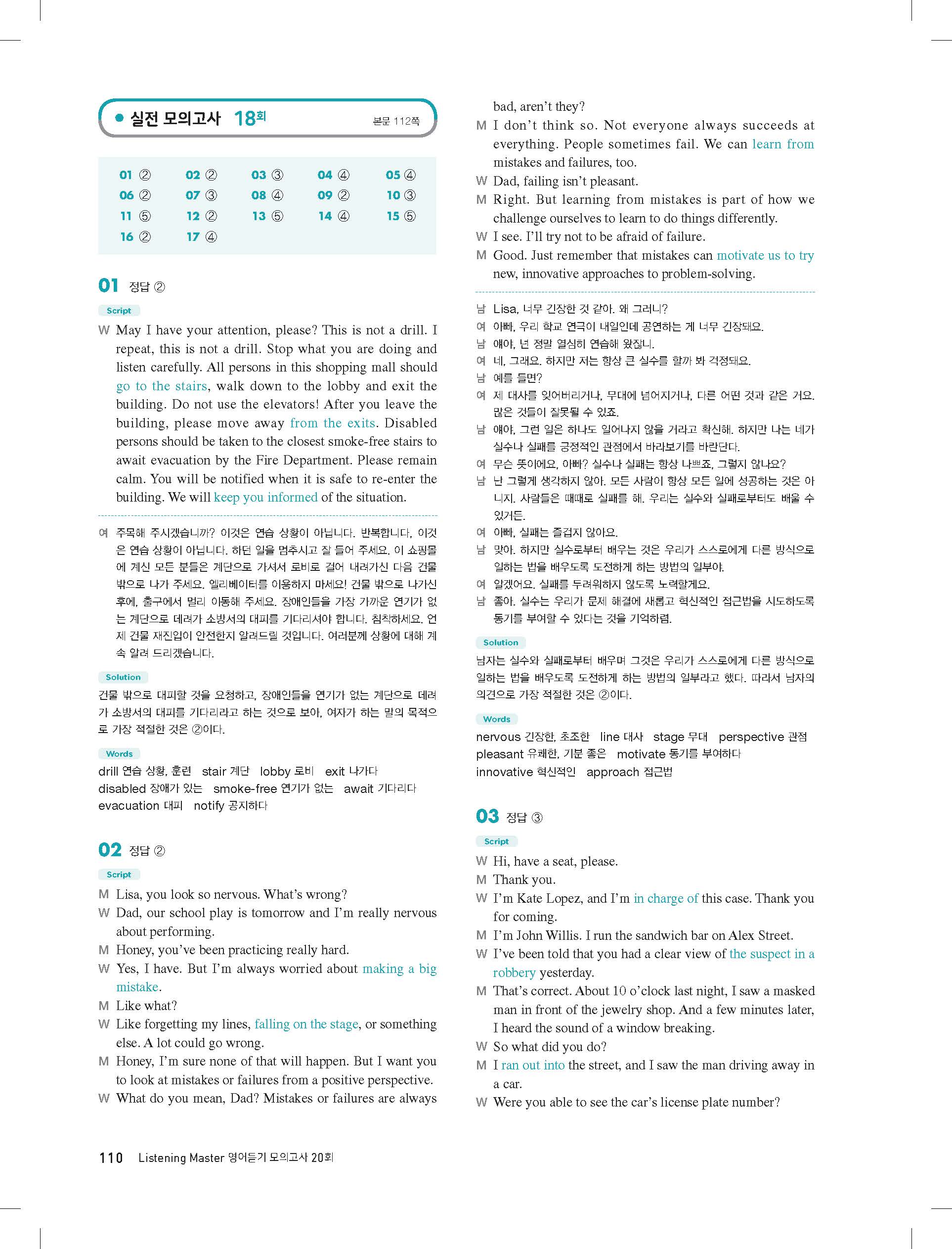 리스닝마스터 영어듣기 모의고사 20회 이투스 답지 사진답지 빠른답지 모바일최적화