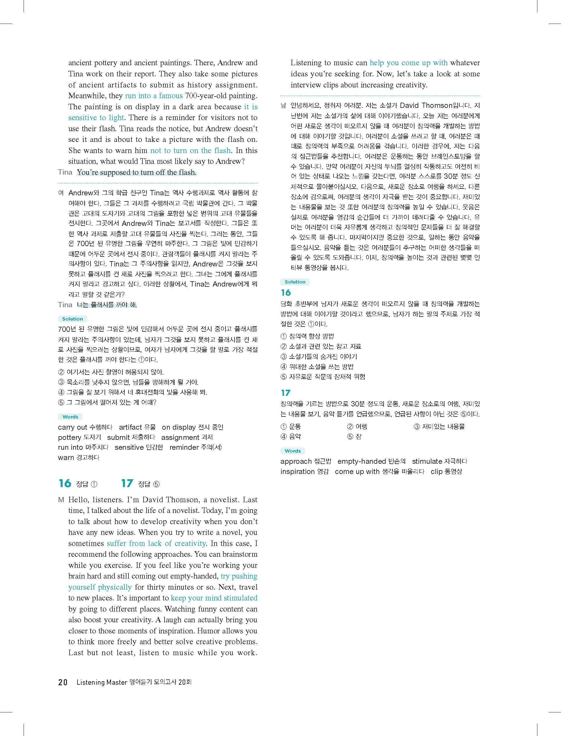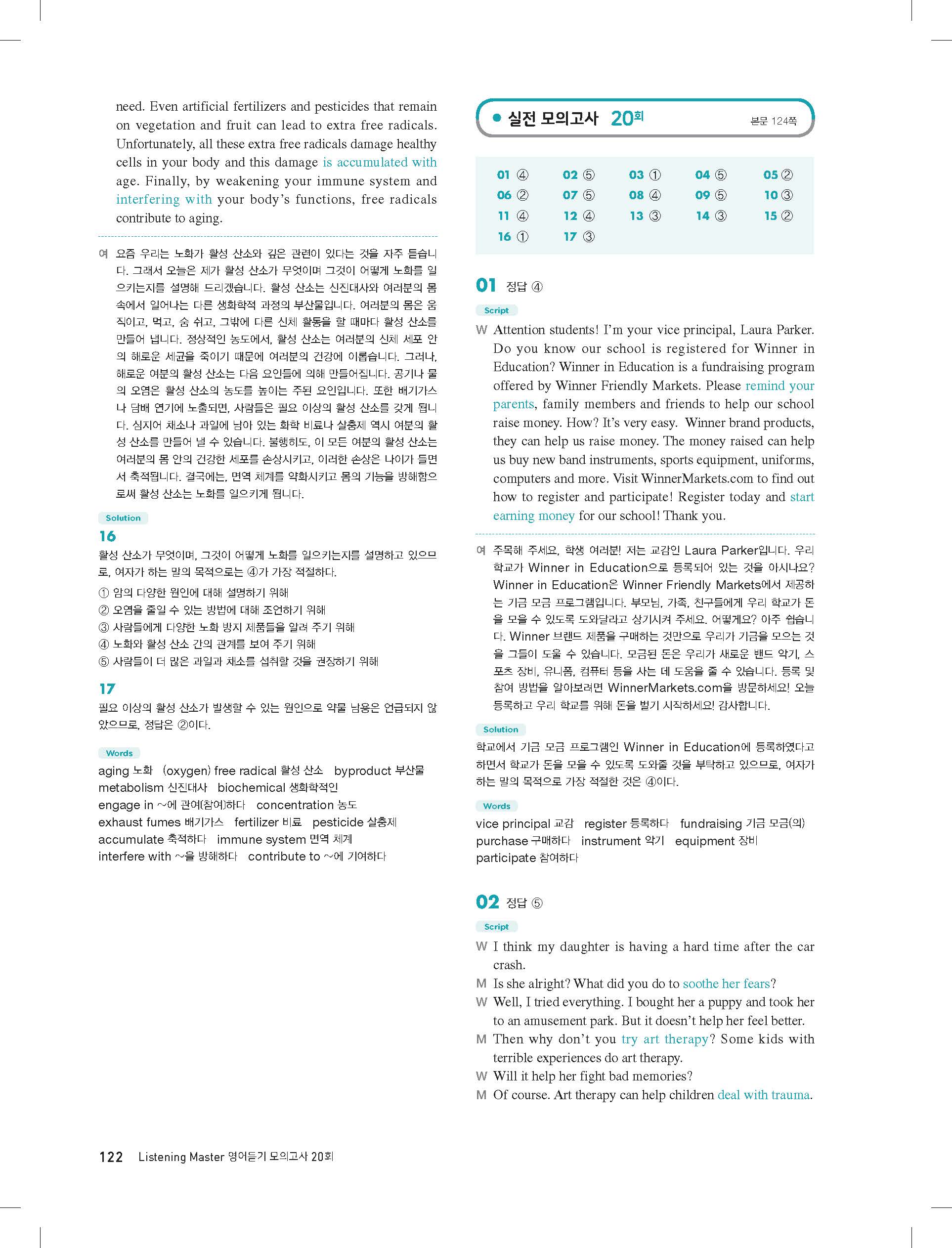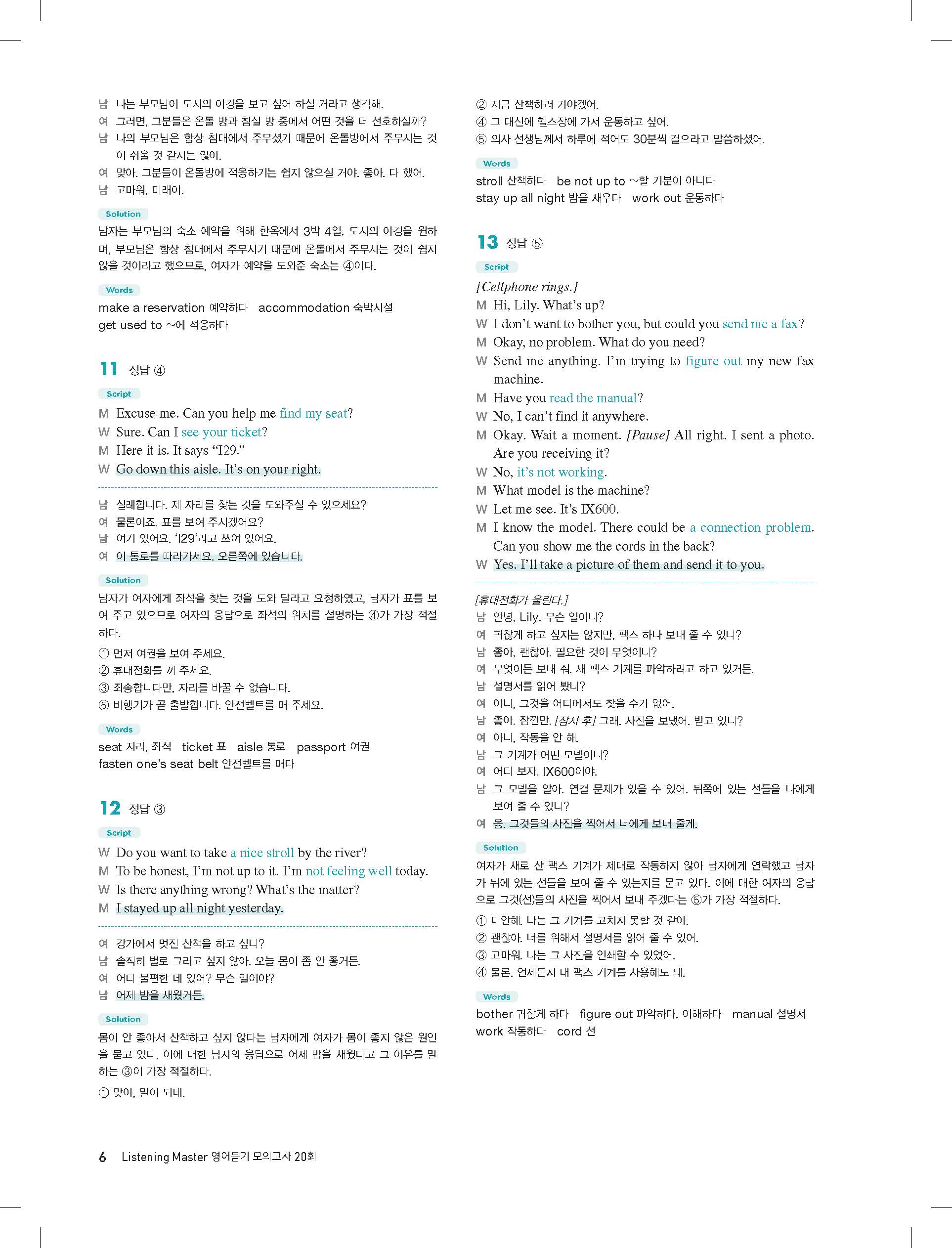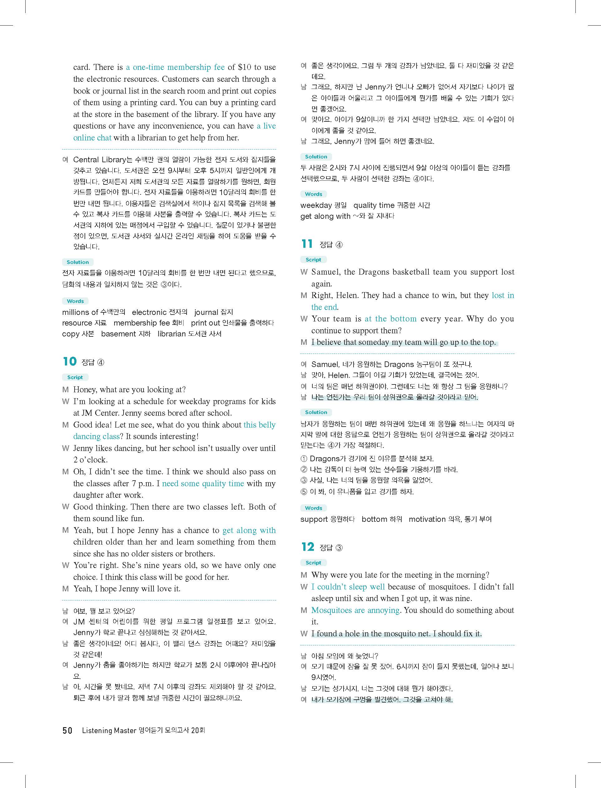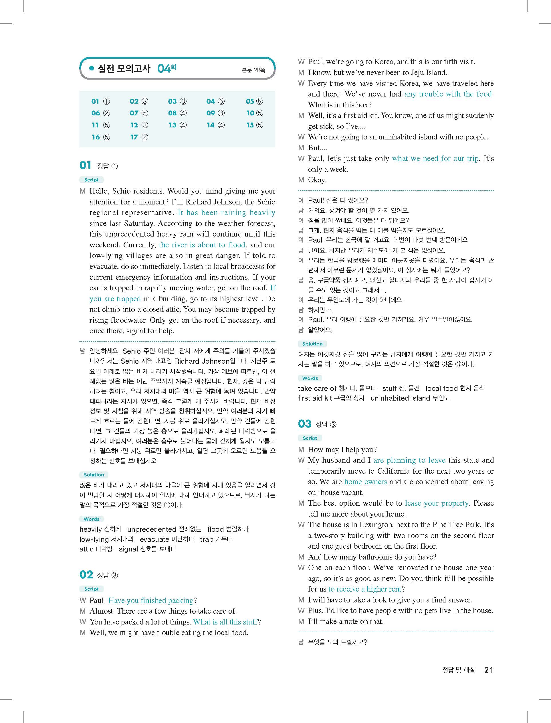 리스닝마스터 영어듣기 모의고사 20회 이투스 답지 사진답지 빠른답지 모바일최적화