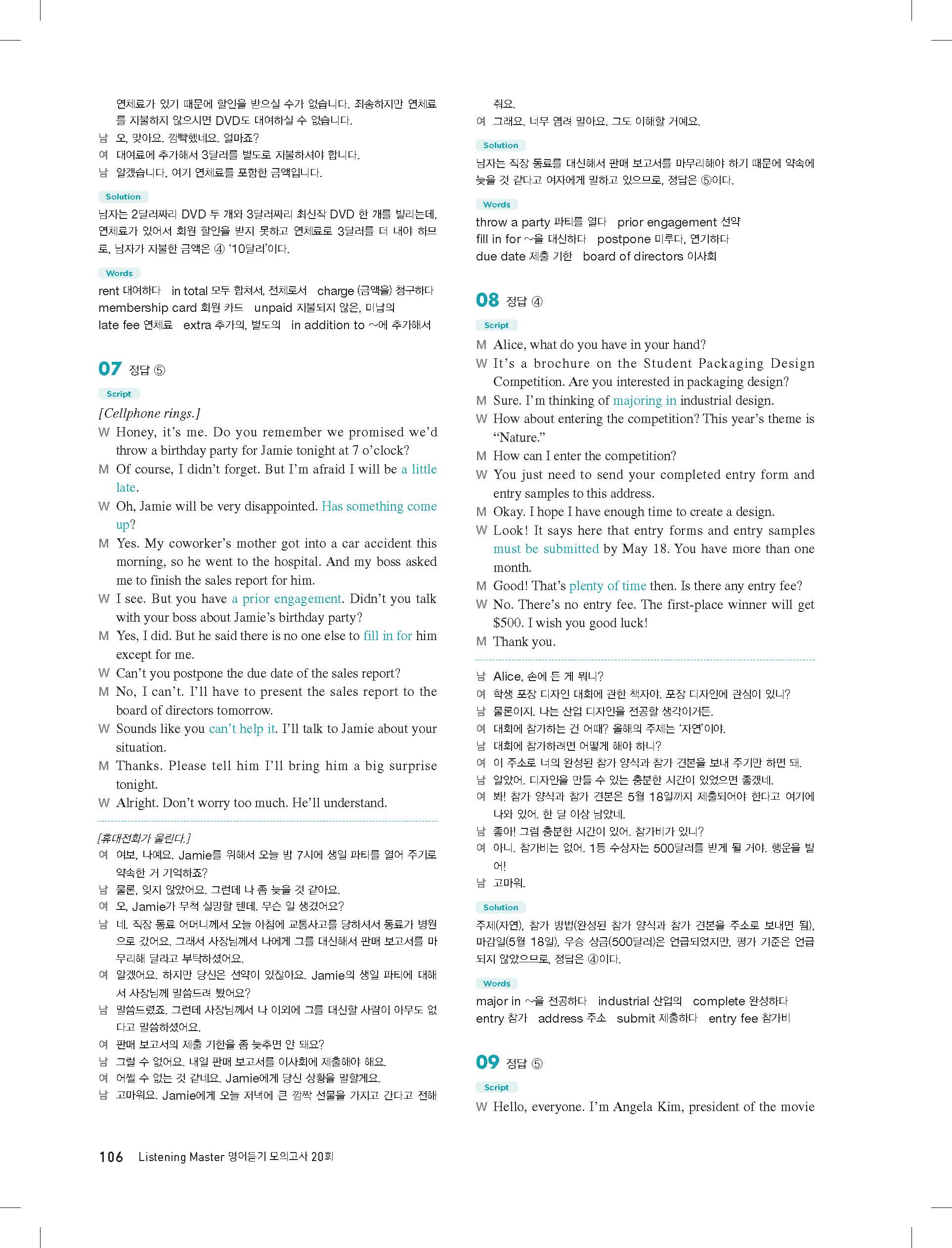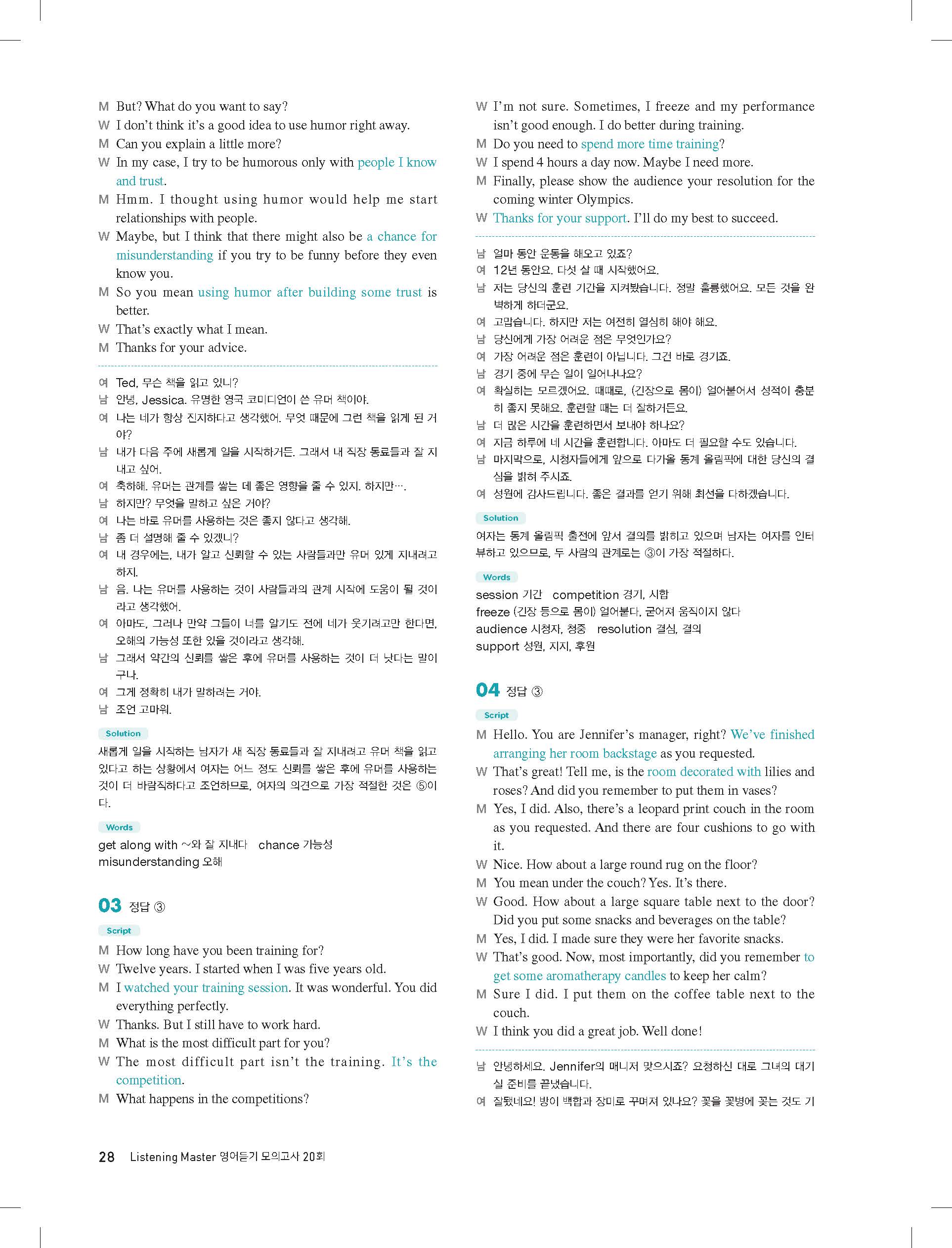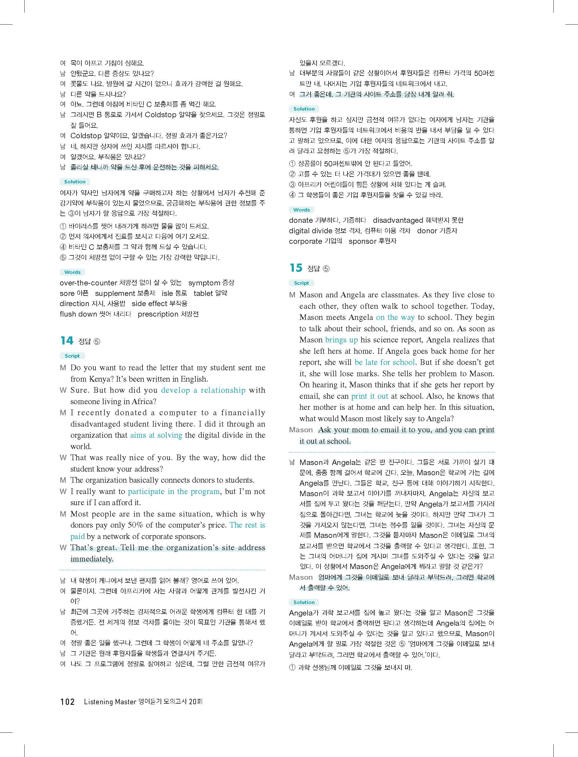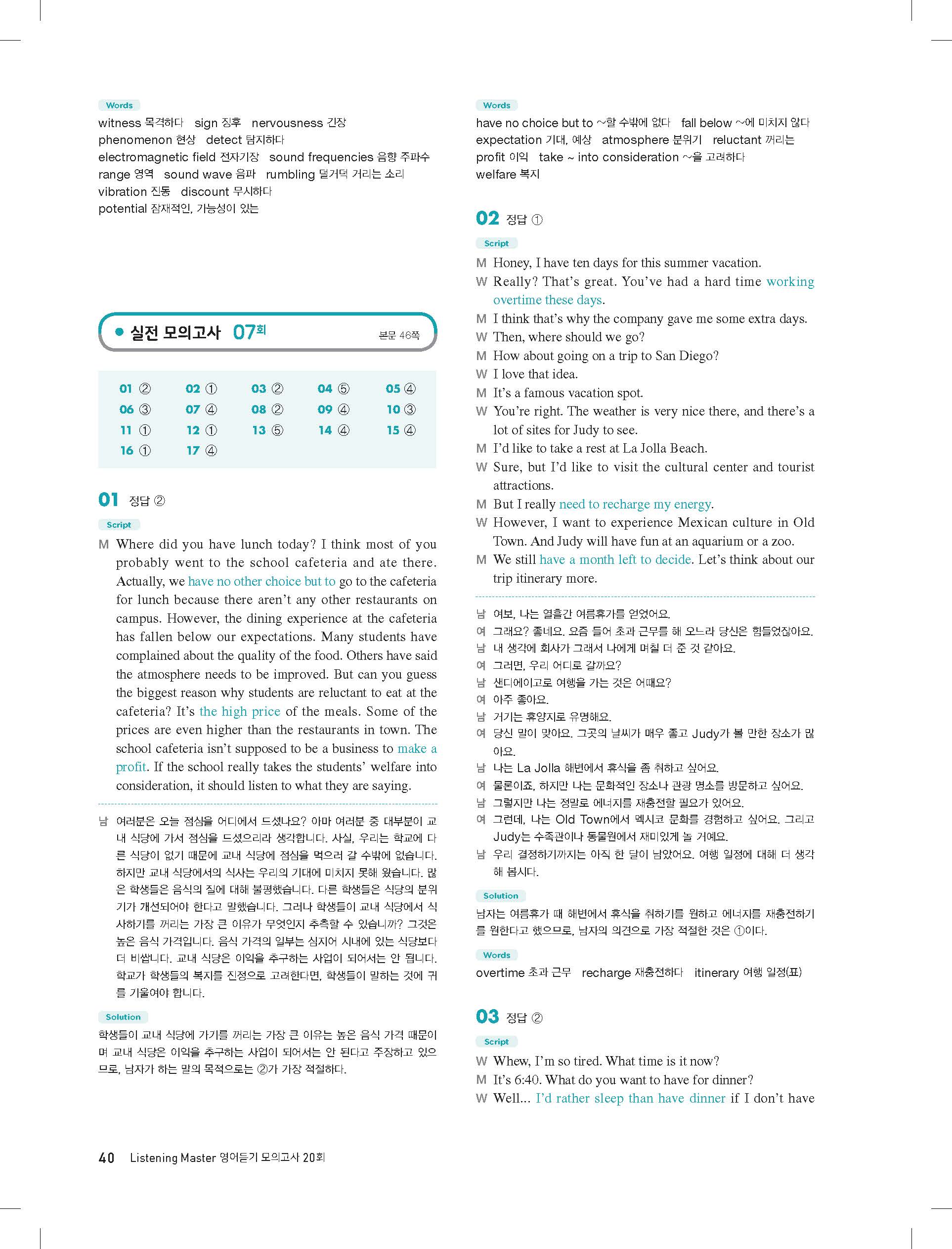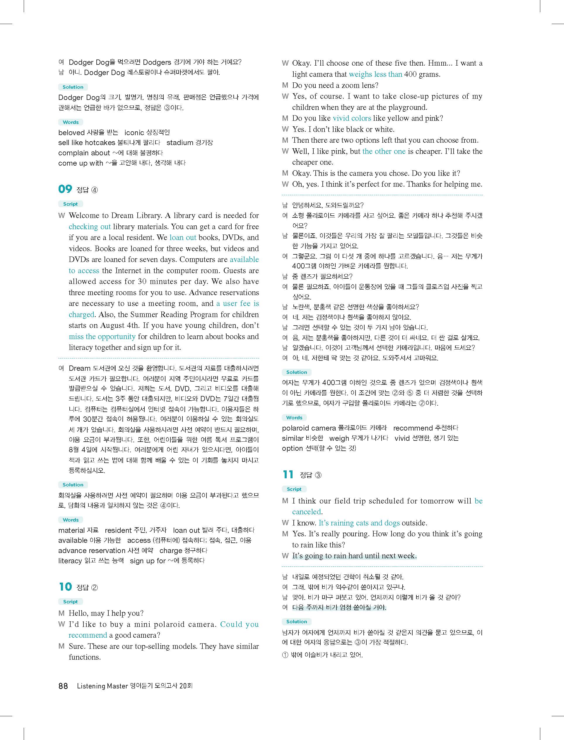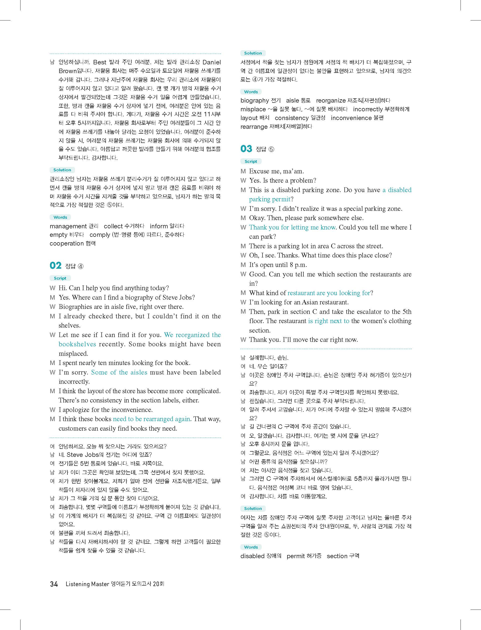 리스닝마스터 영어듣기 모의고사 20회 이투스 답지 사진답지 빠른답지 모바일최적화