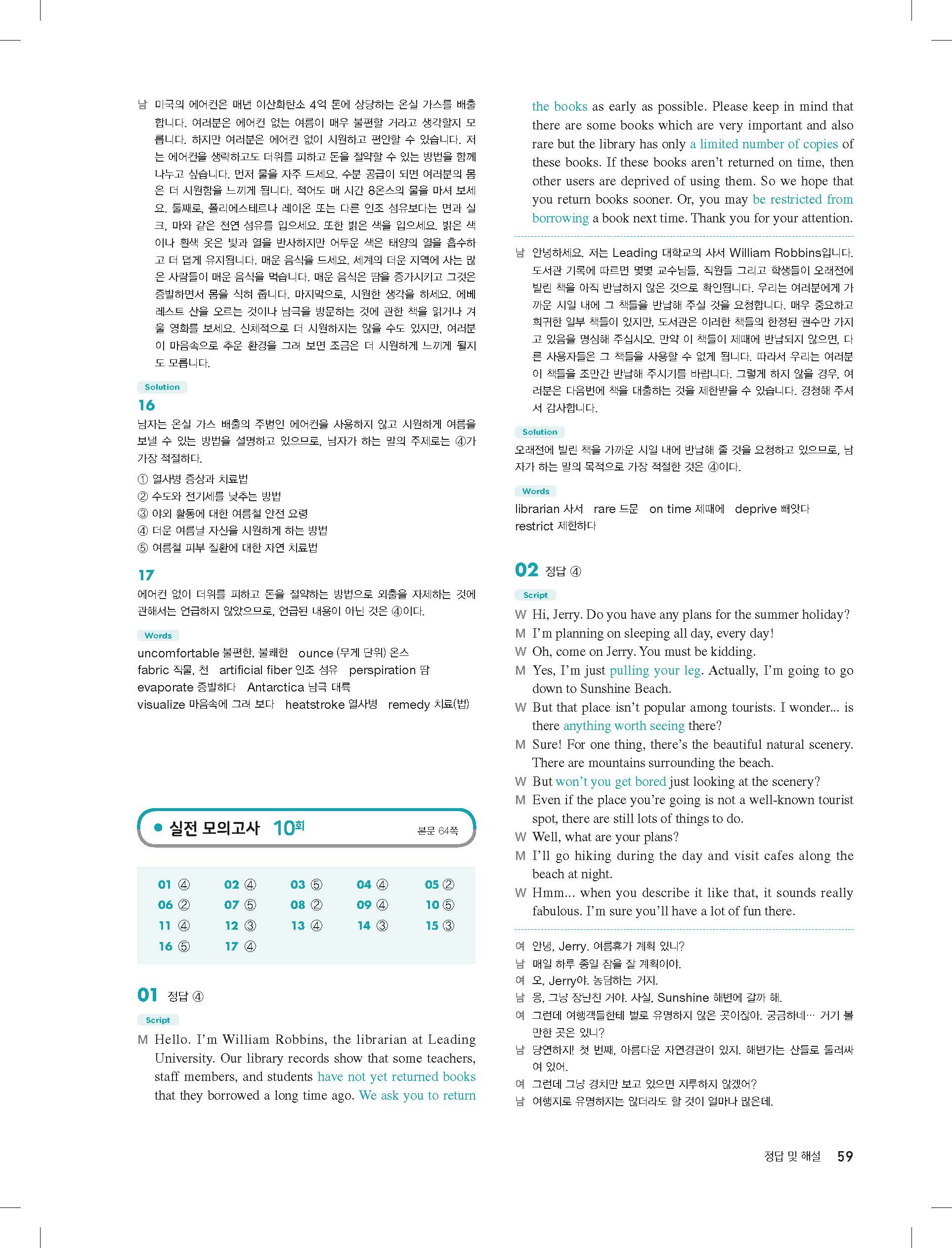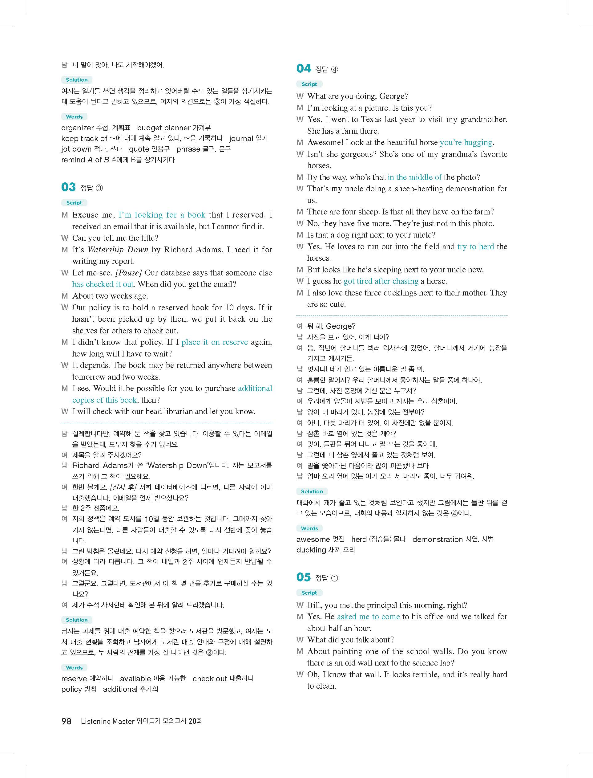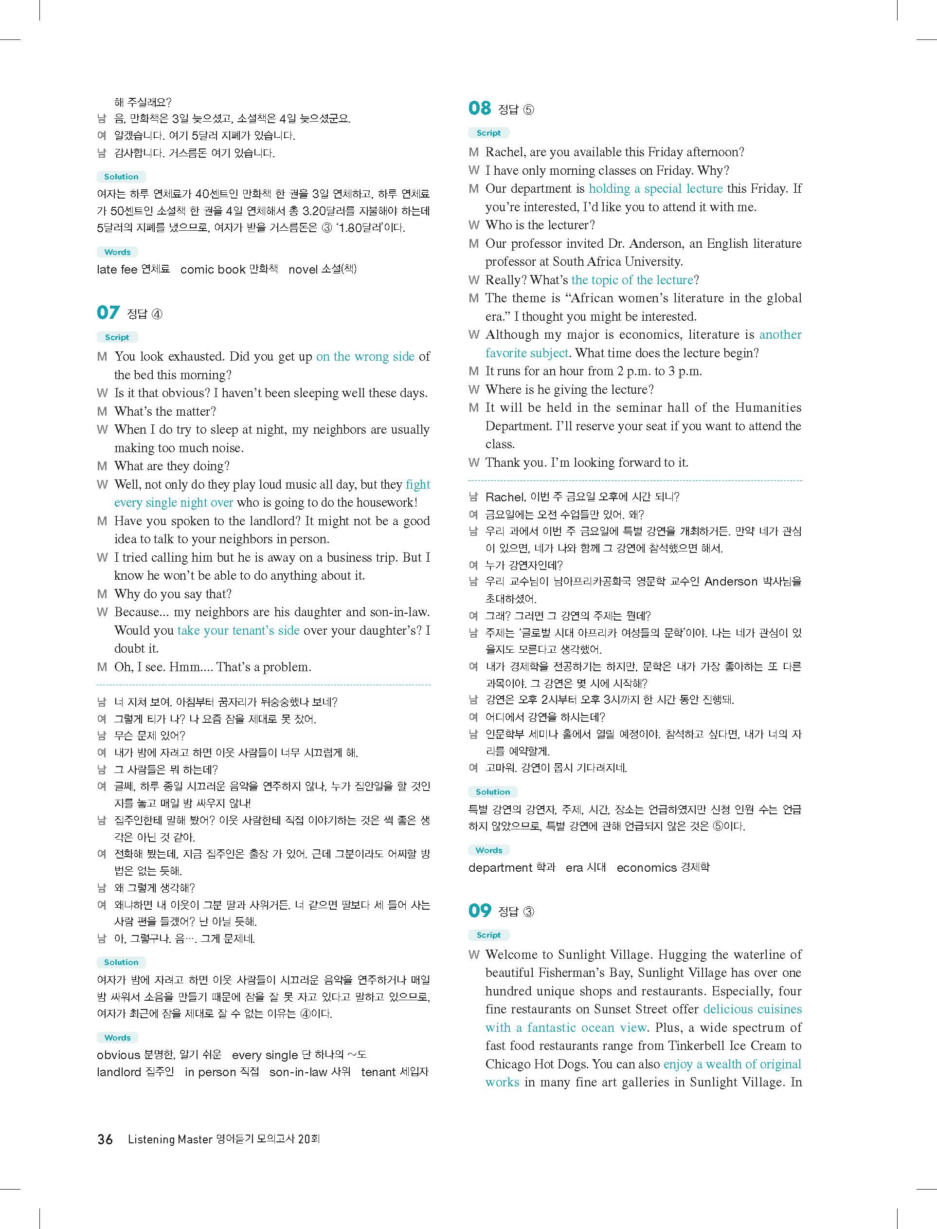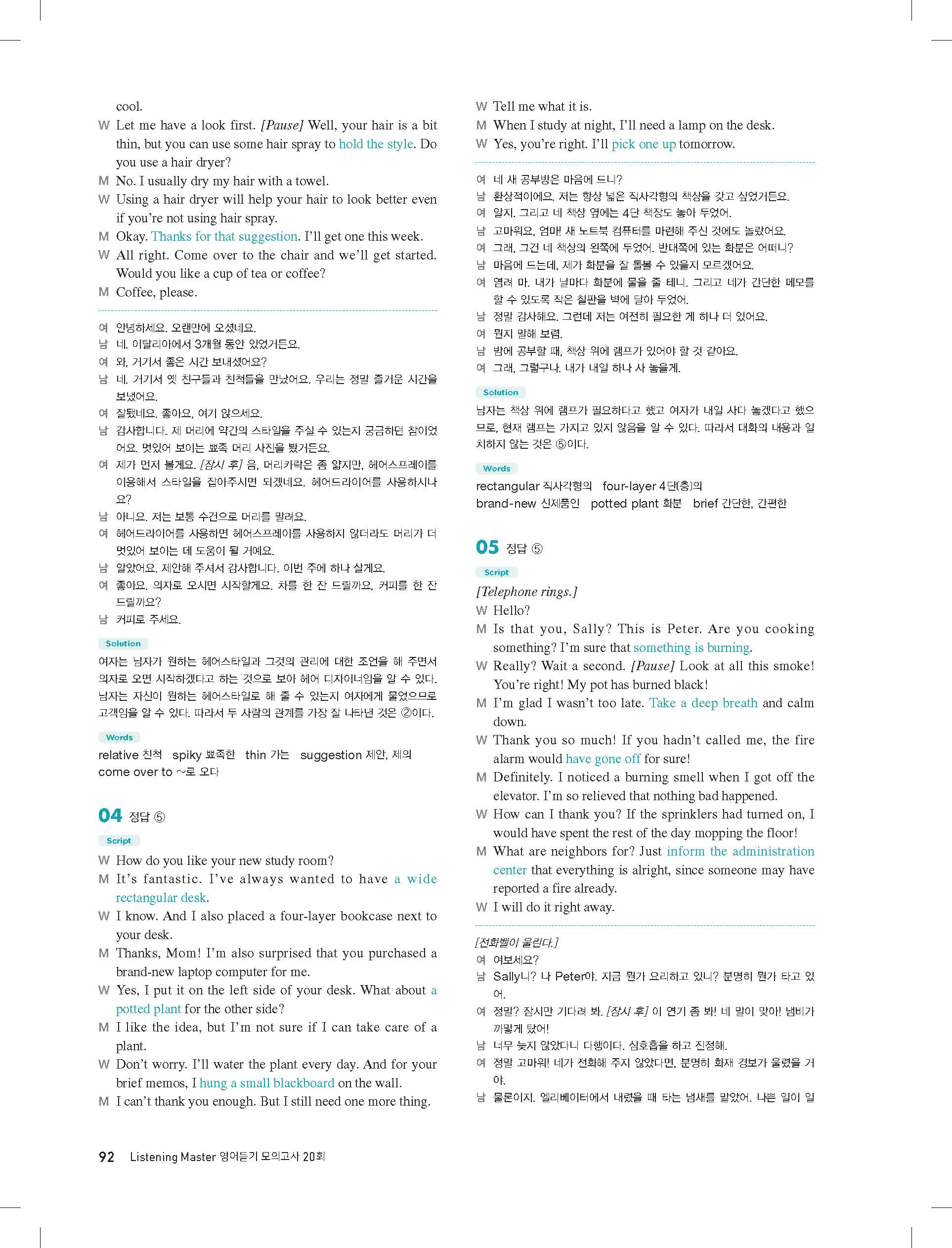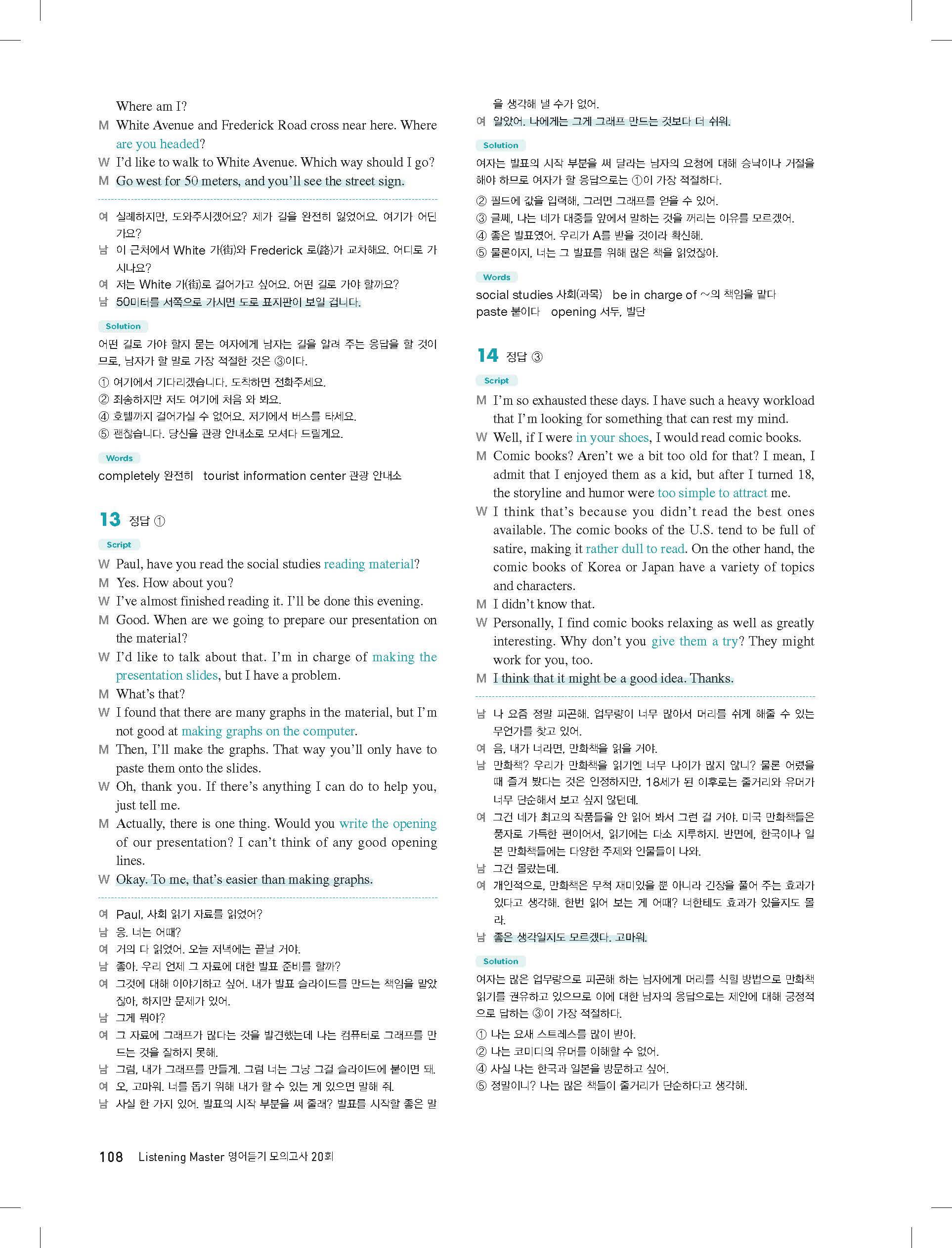 리스닝마스터 영어듣기 모의고사 20회 이투스 답지 사진답지 빠른답지 모바일최적화