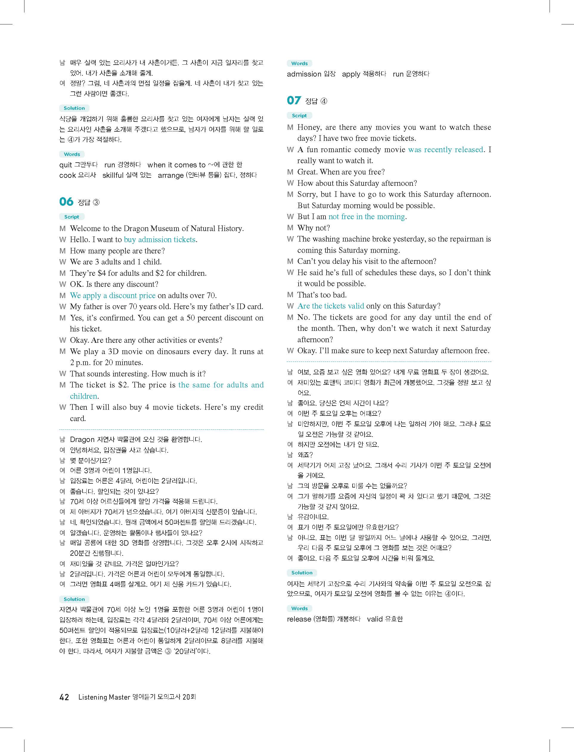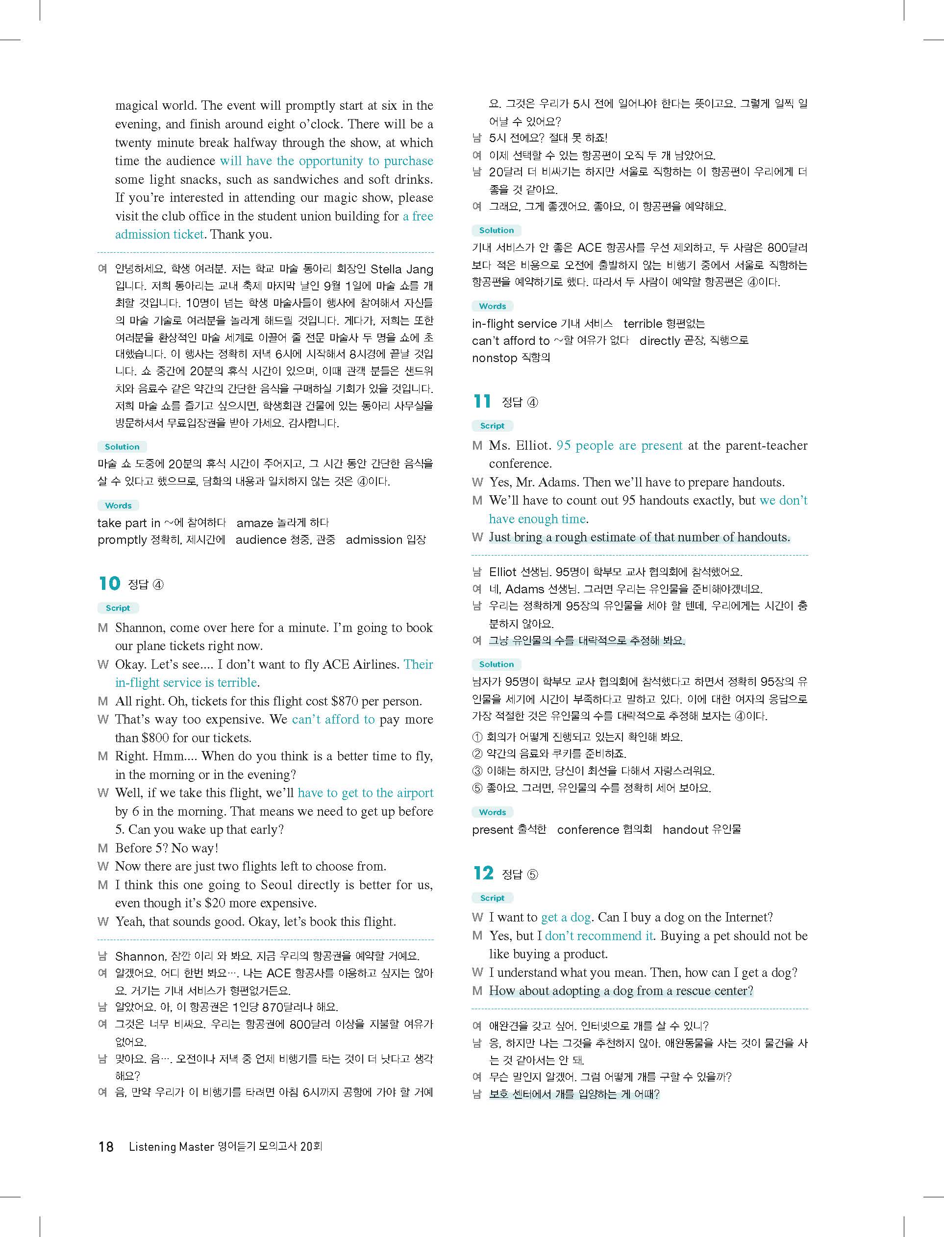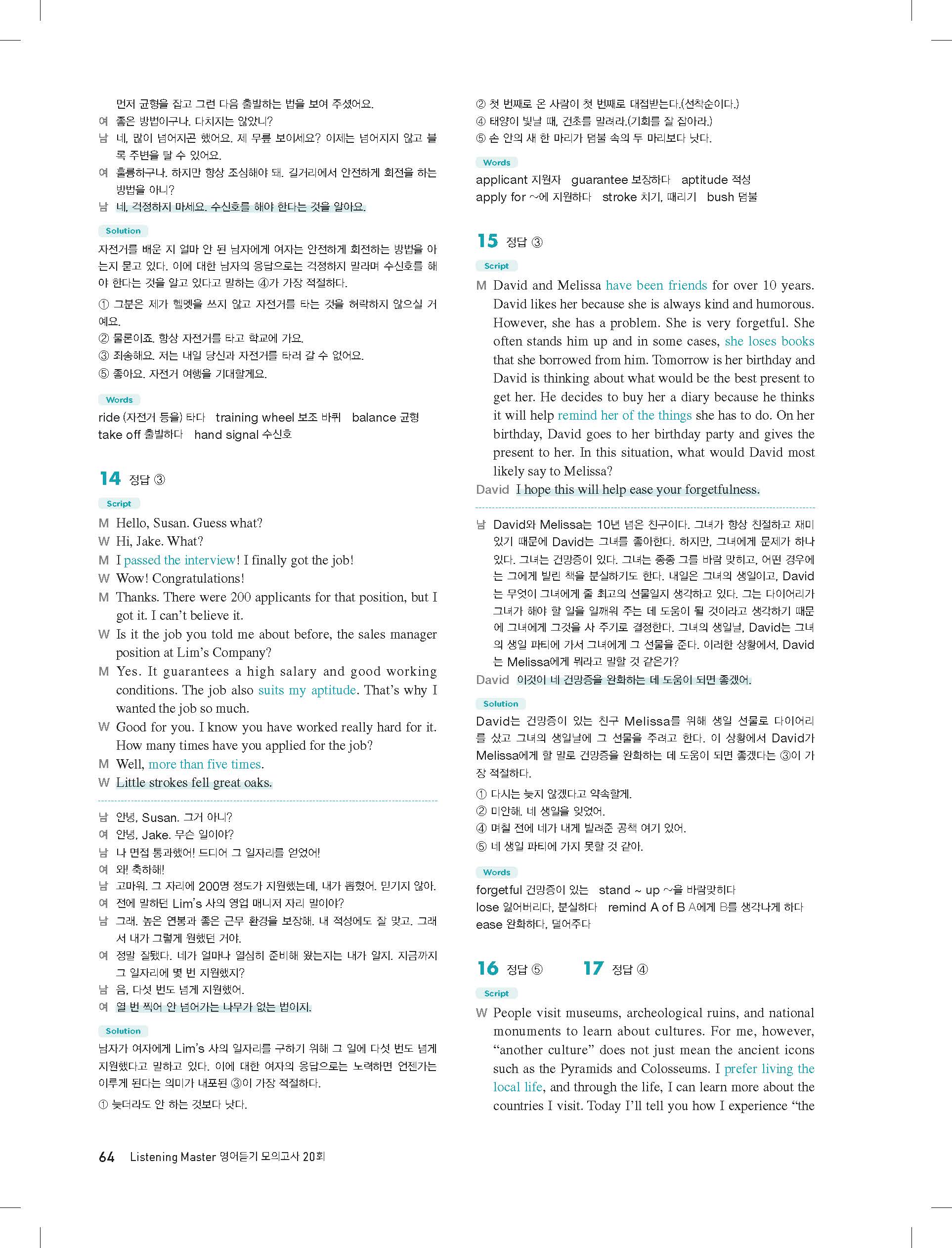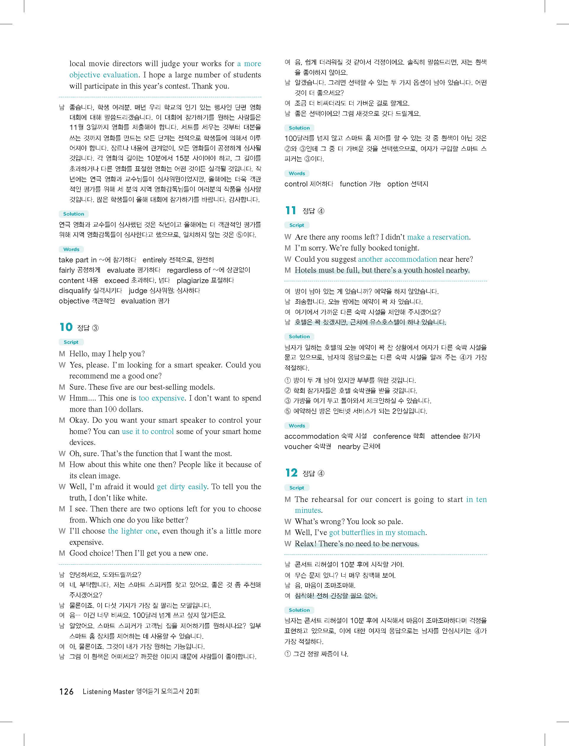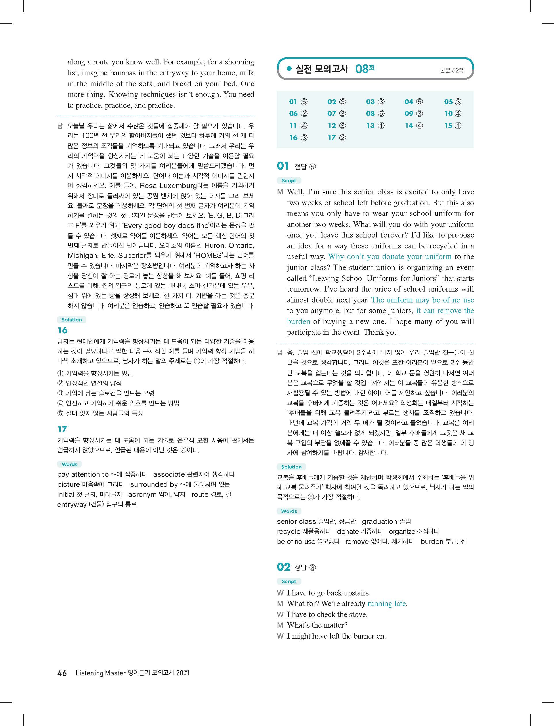 리스닝마스터 영어듣기 모의고사 20회 이투스 답지 사진답지 빠른답지 모바일최적화