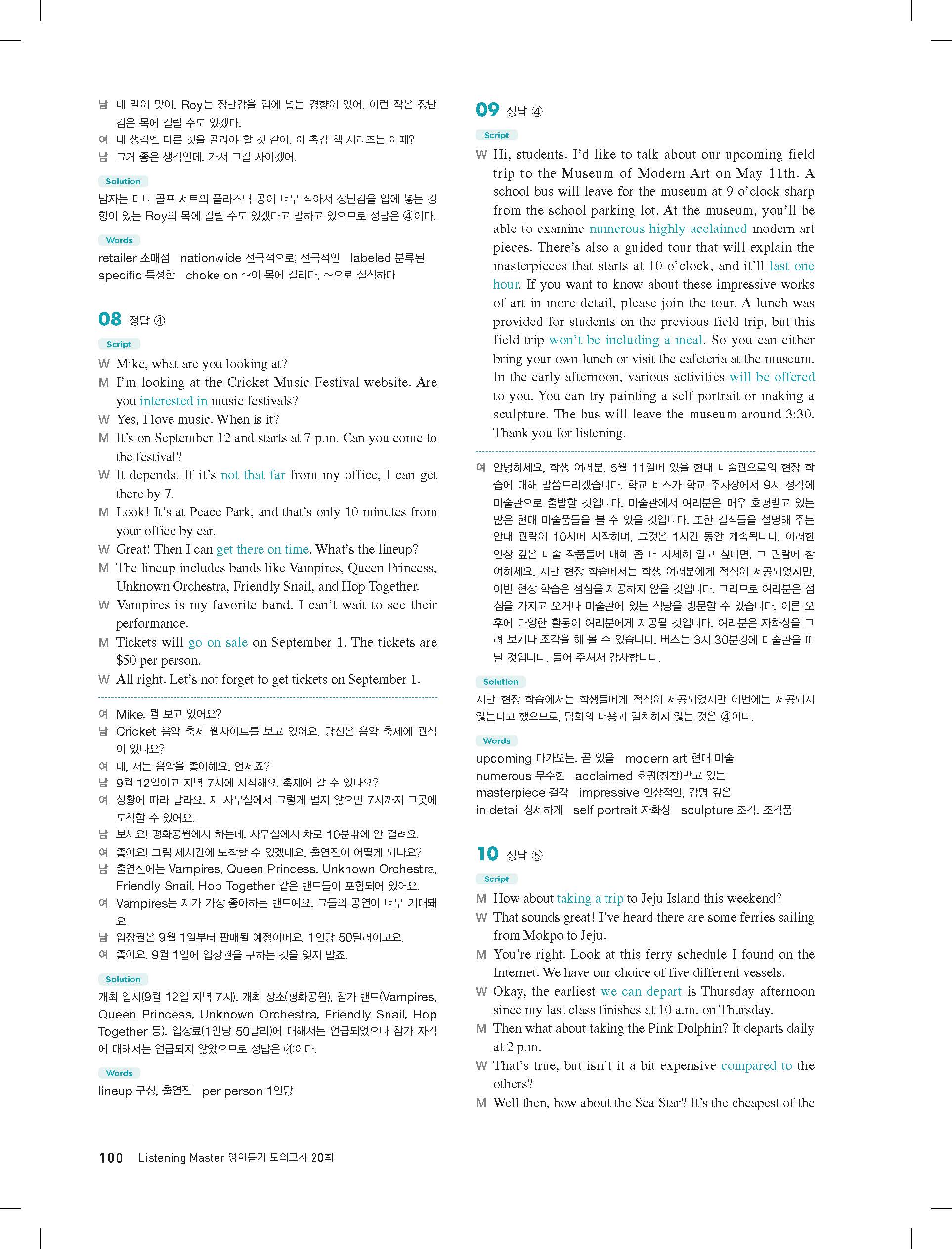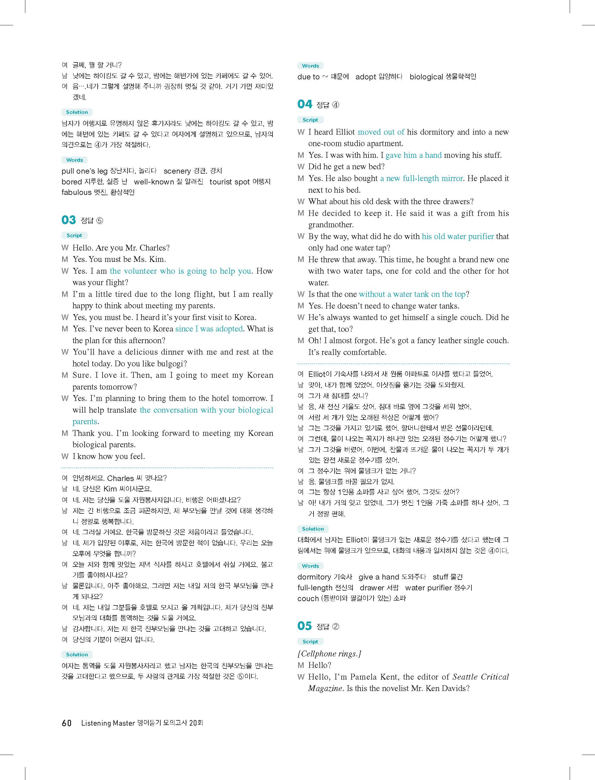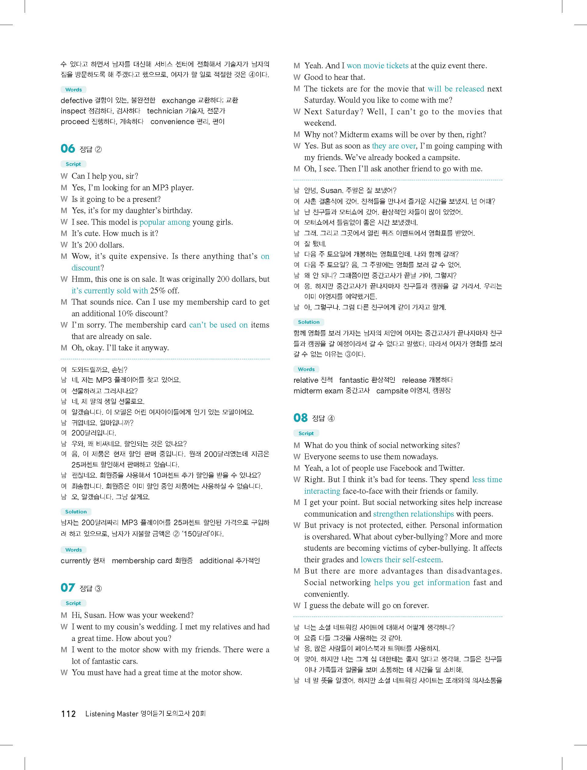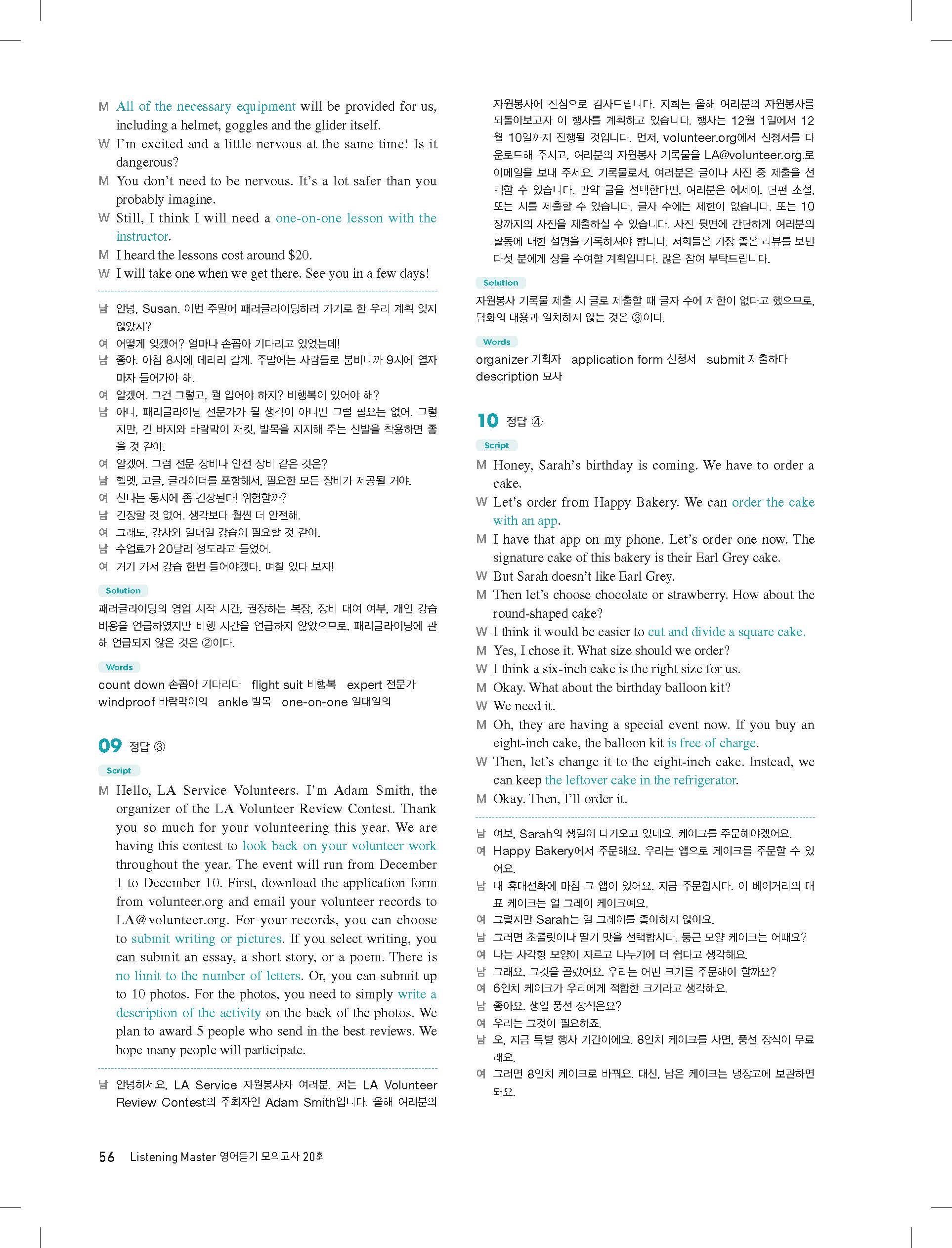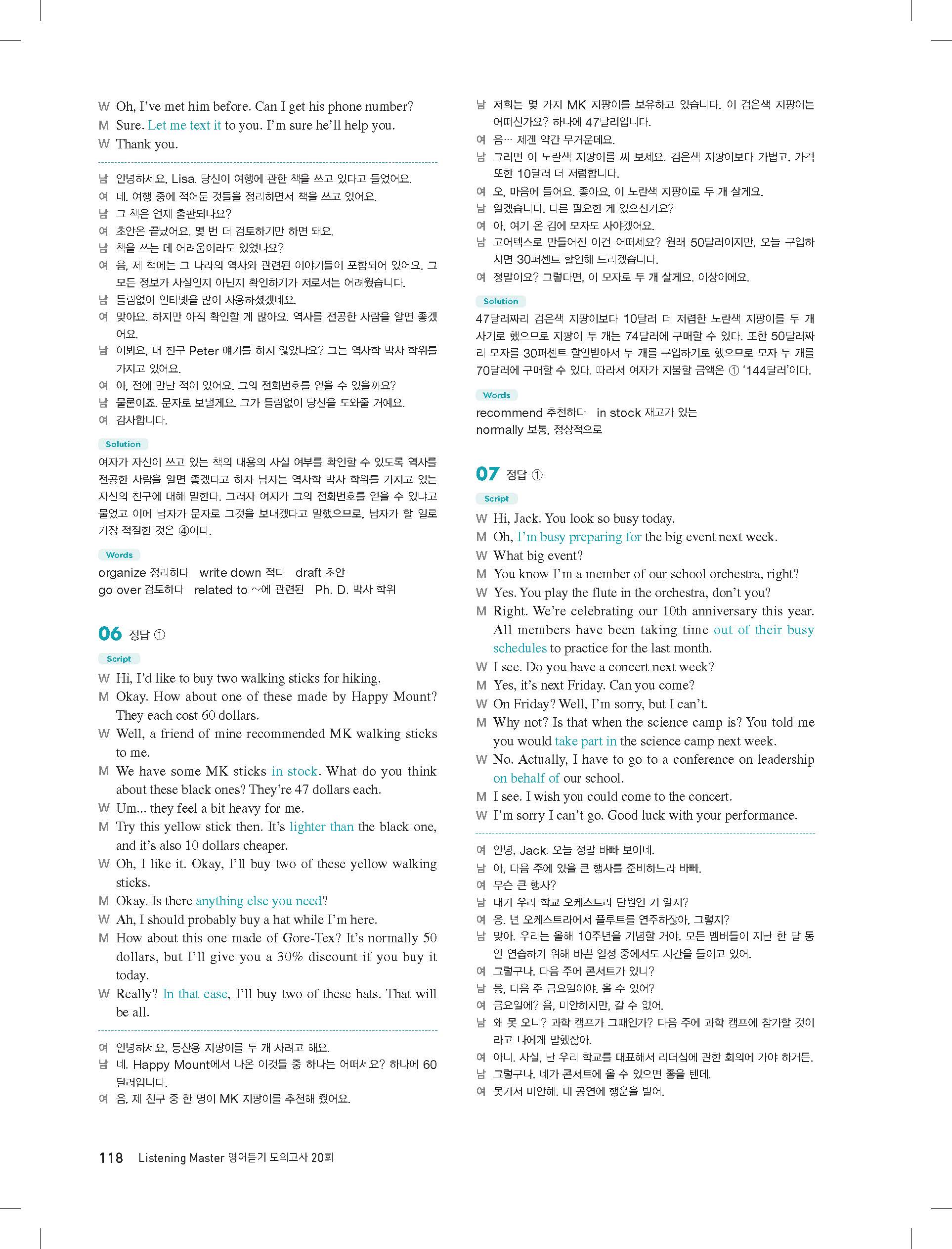 리스닝마스터 영어듣기 모의고사 20회 이투스 답지 사진답지 빠른답지 모바일최적화