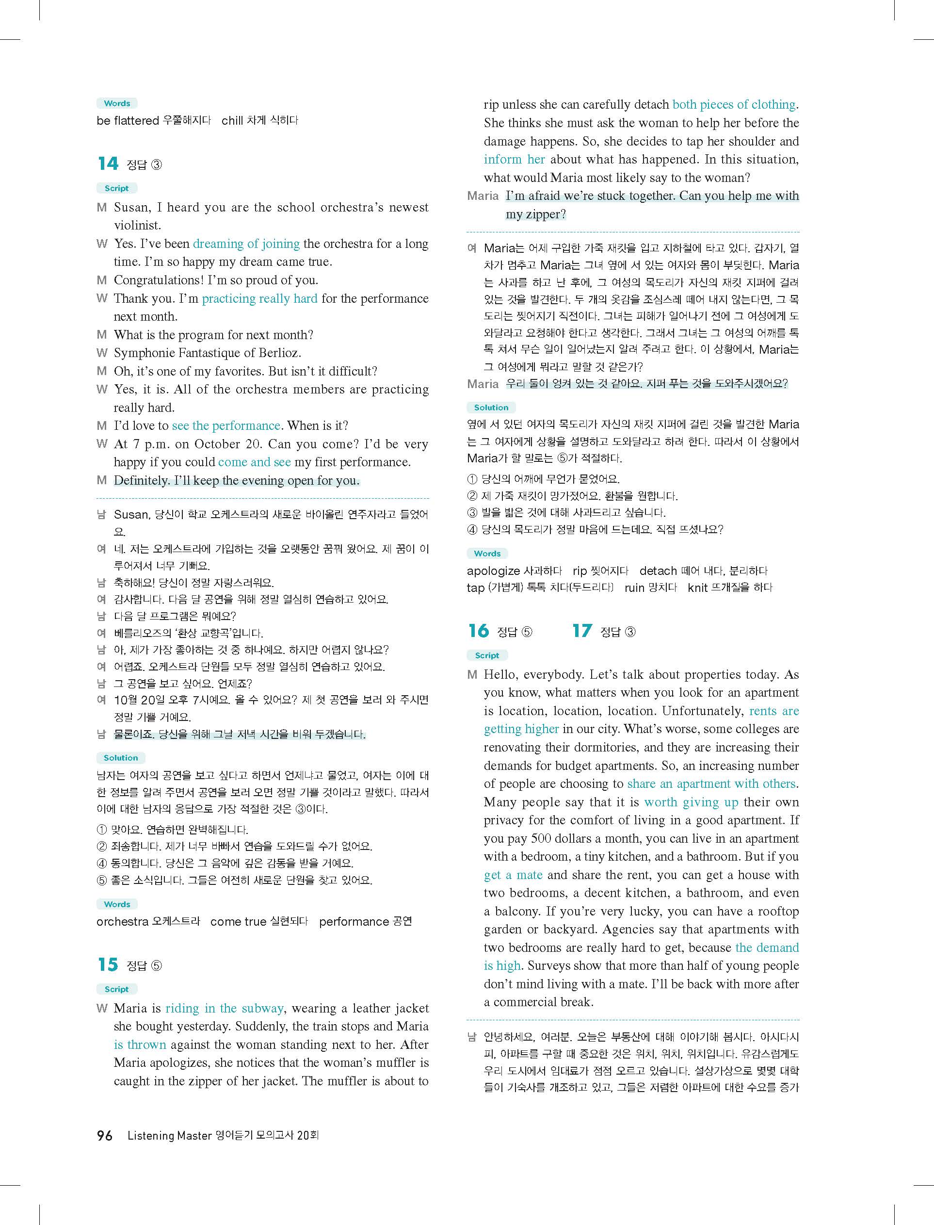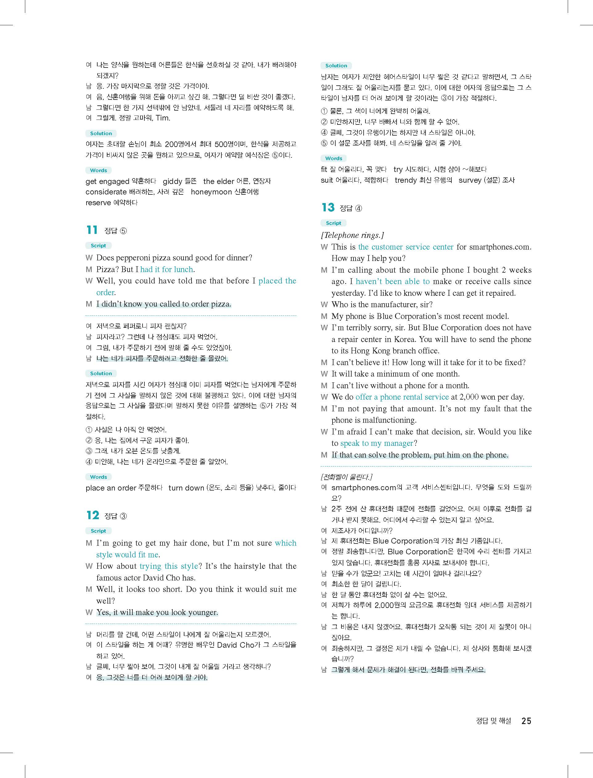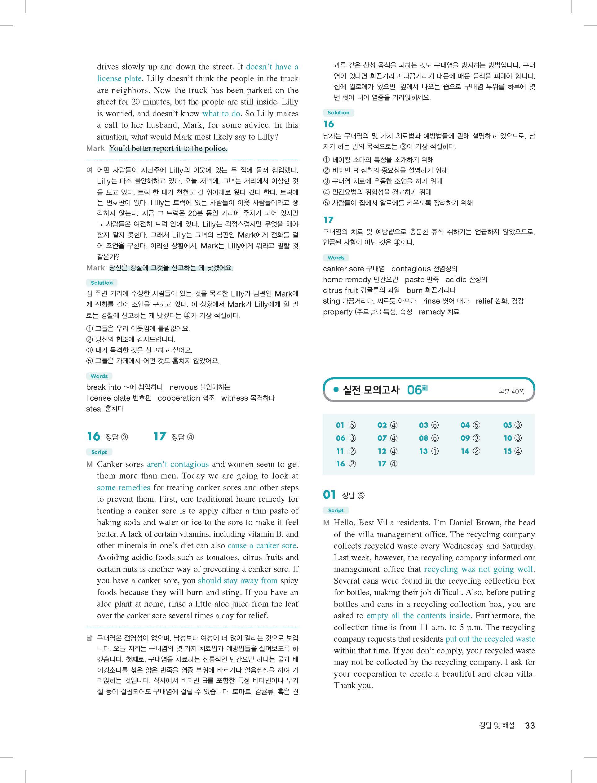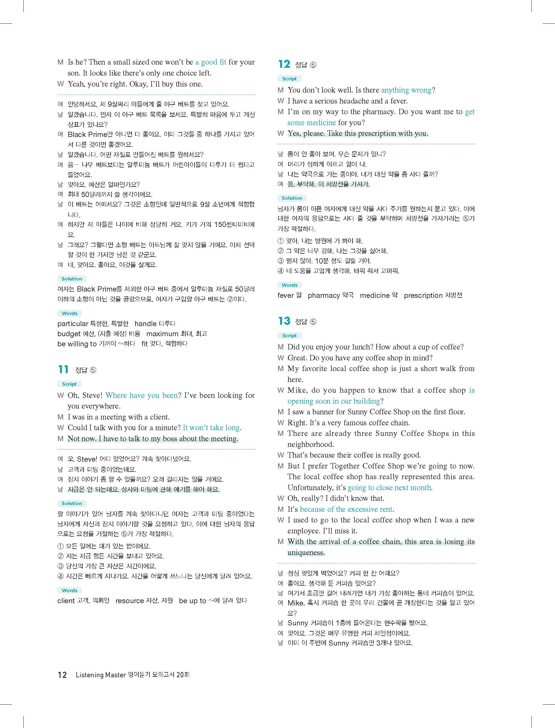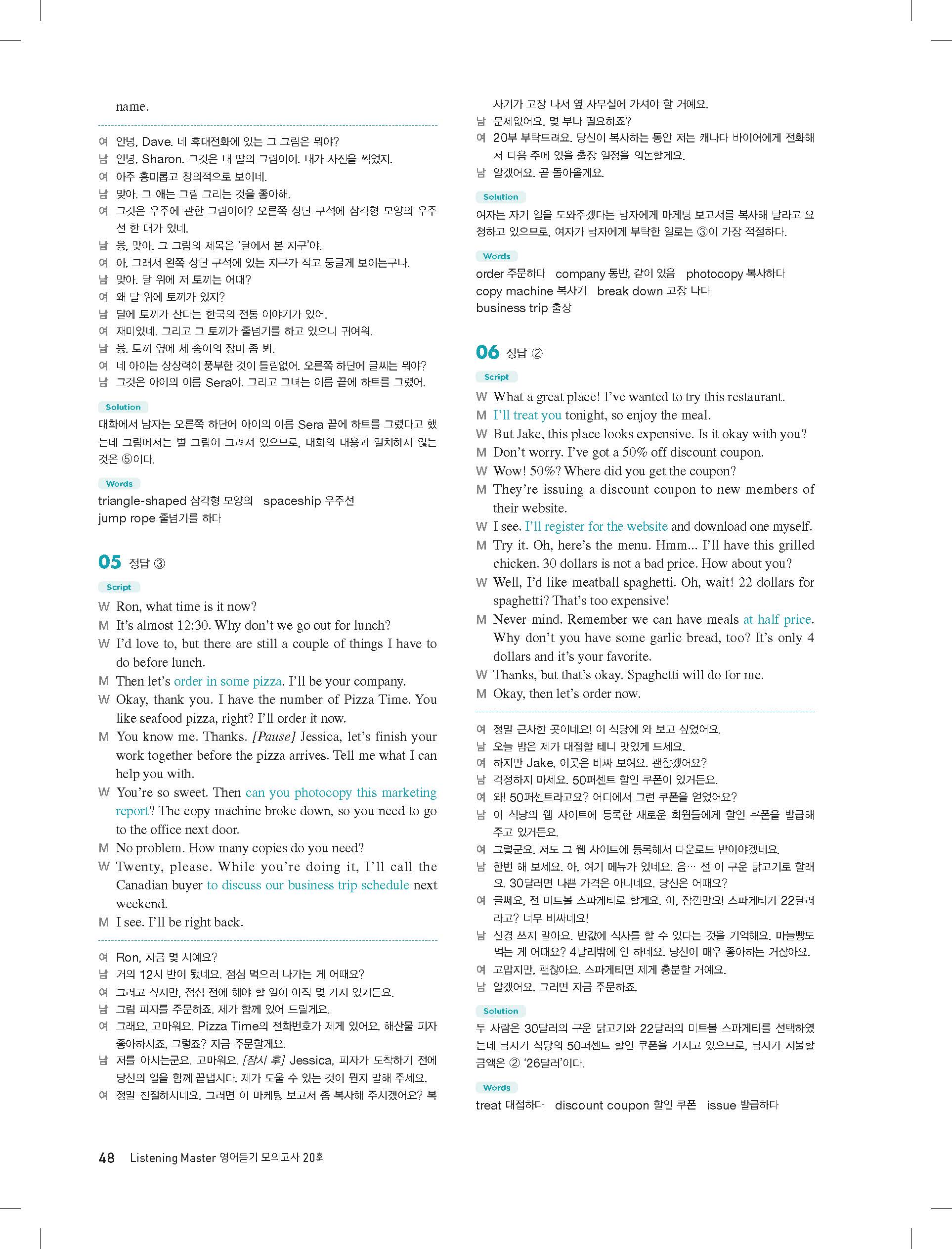 리스닝마스터 영어듣기 모의고사 20회 이투스 답지 사진답지 빠른답지 모바일최적화