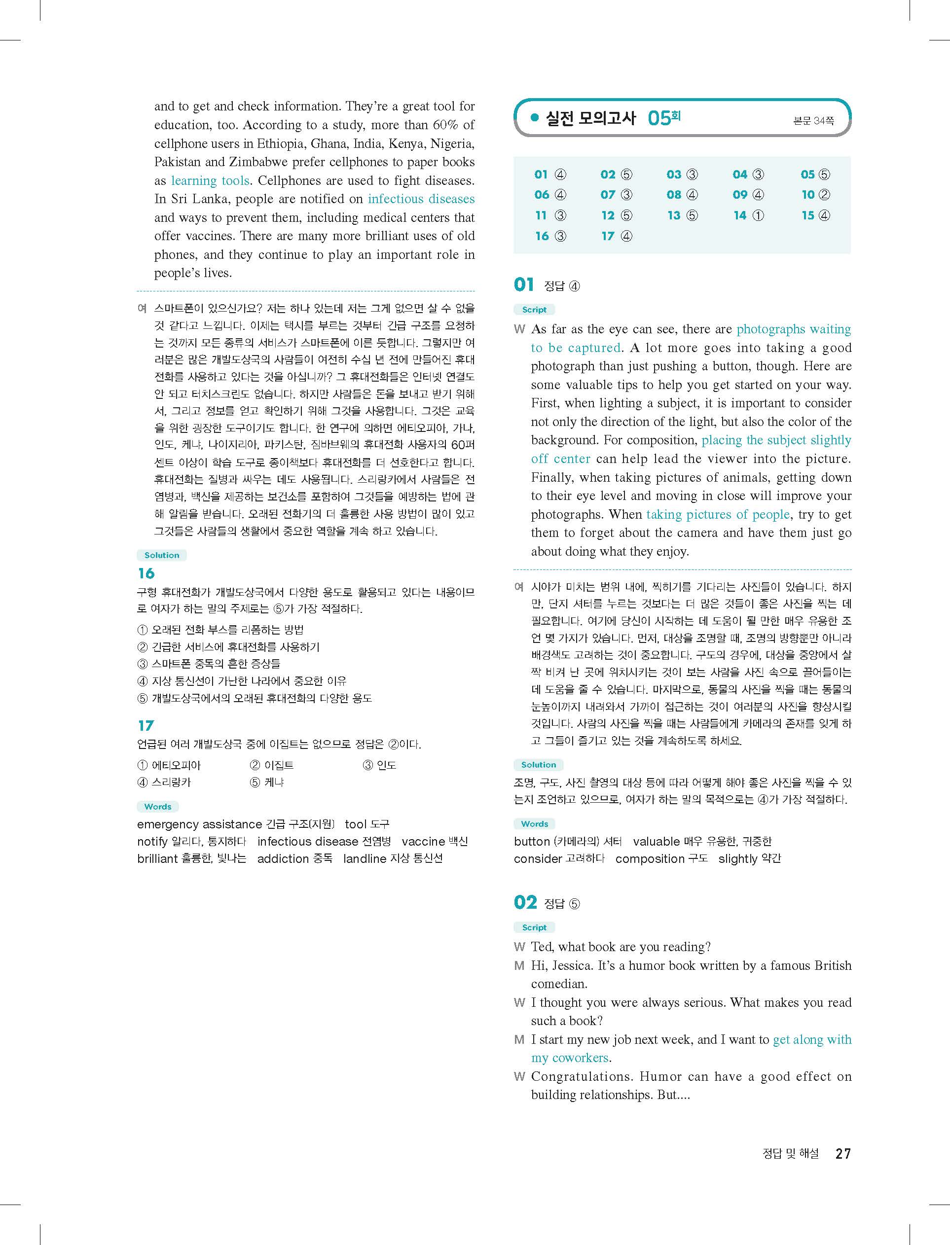 다운로드 받을필요 없이 바로 볼수 있는 모바일에 최적화된 답지 입니다