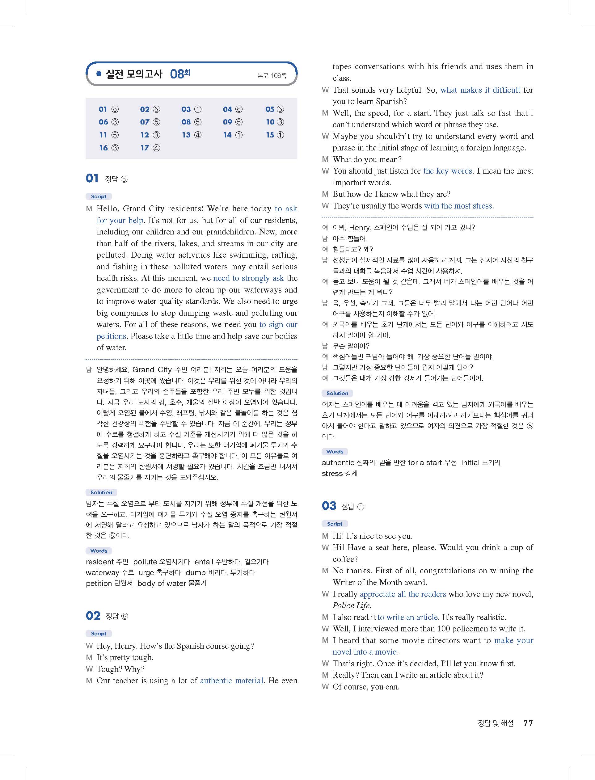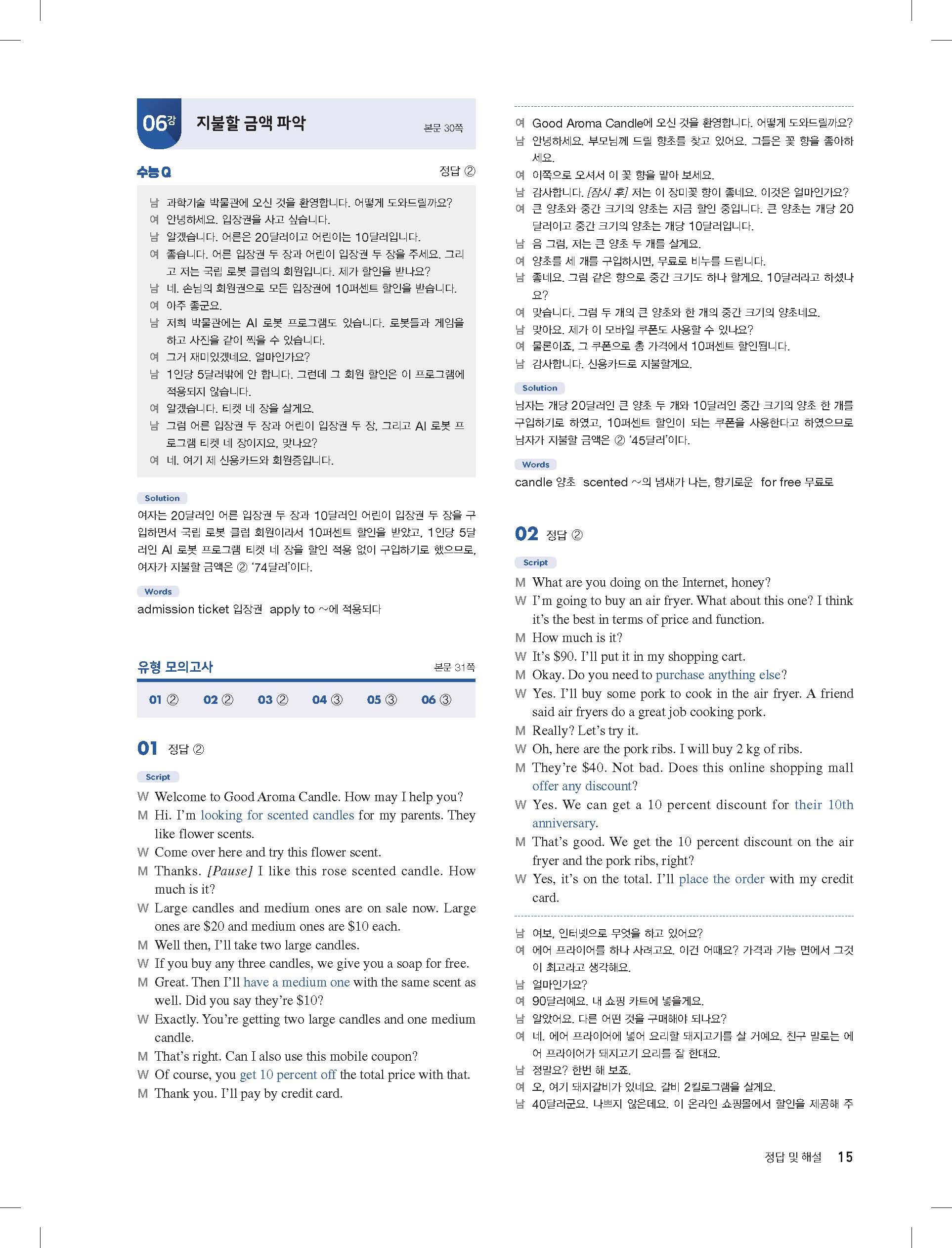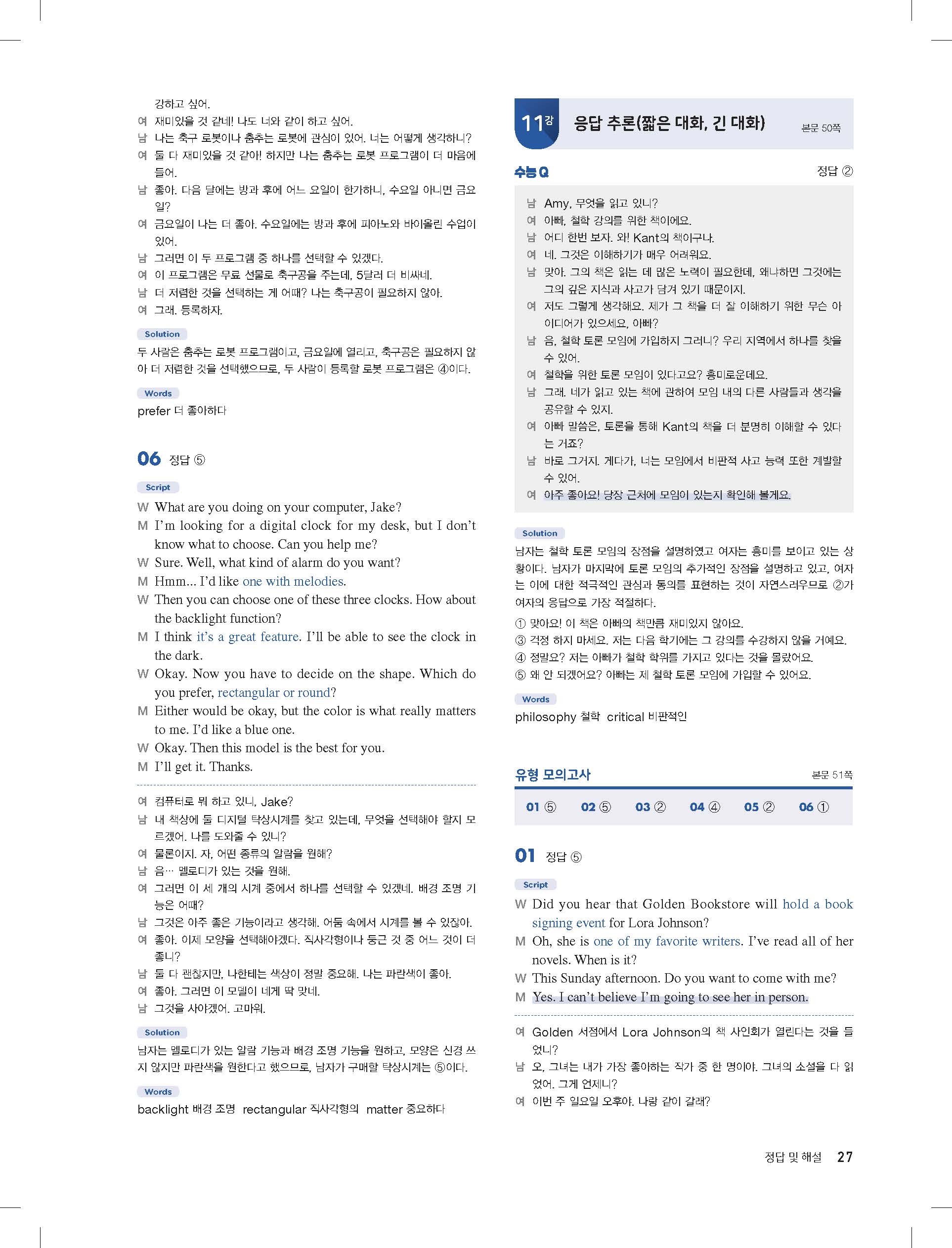 다운로드 받을필요 없이 바로 볼수 있는 모바일에 최적화된 답지 입니다