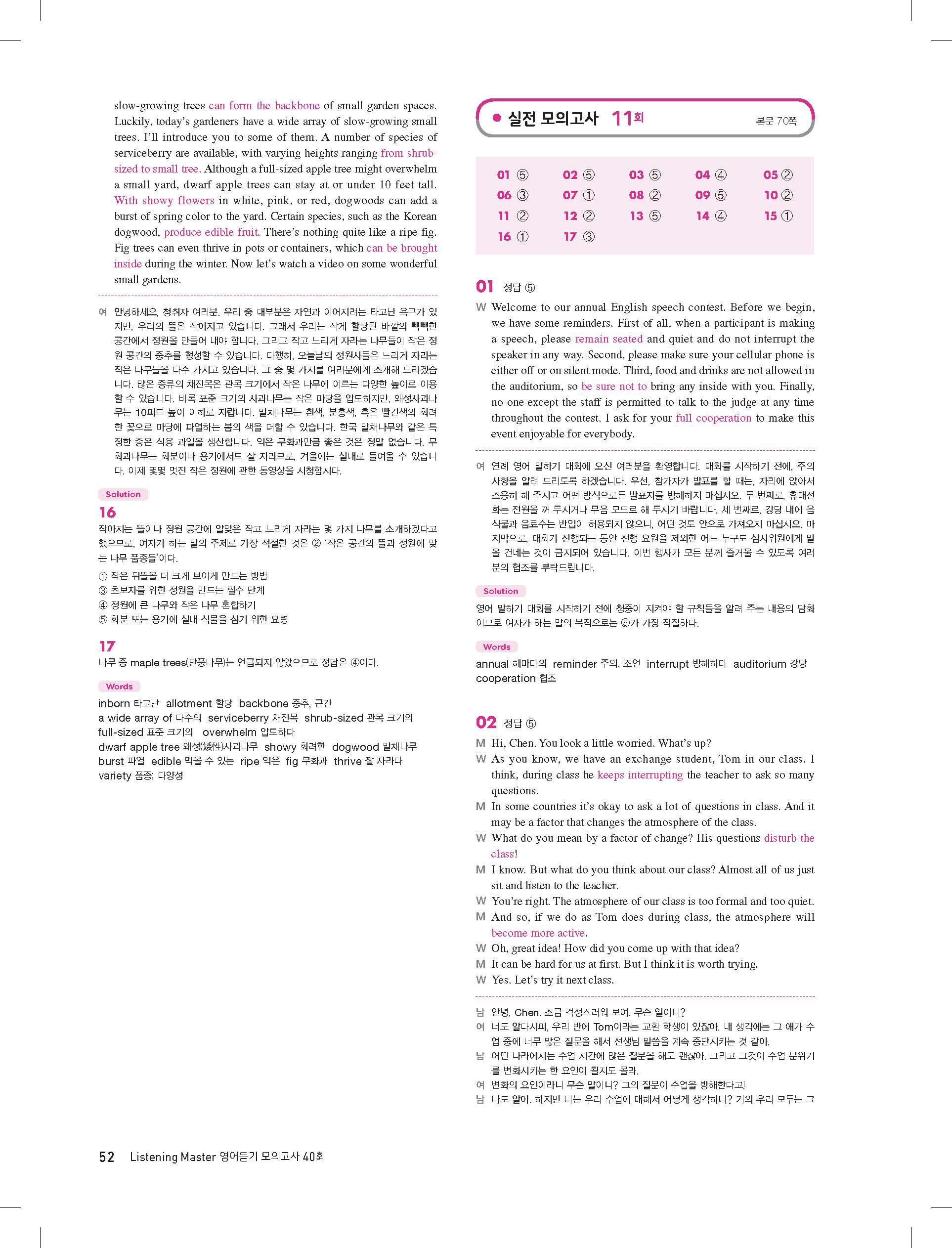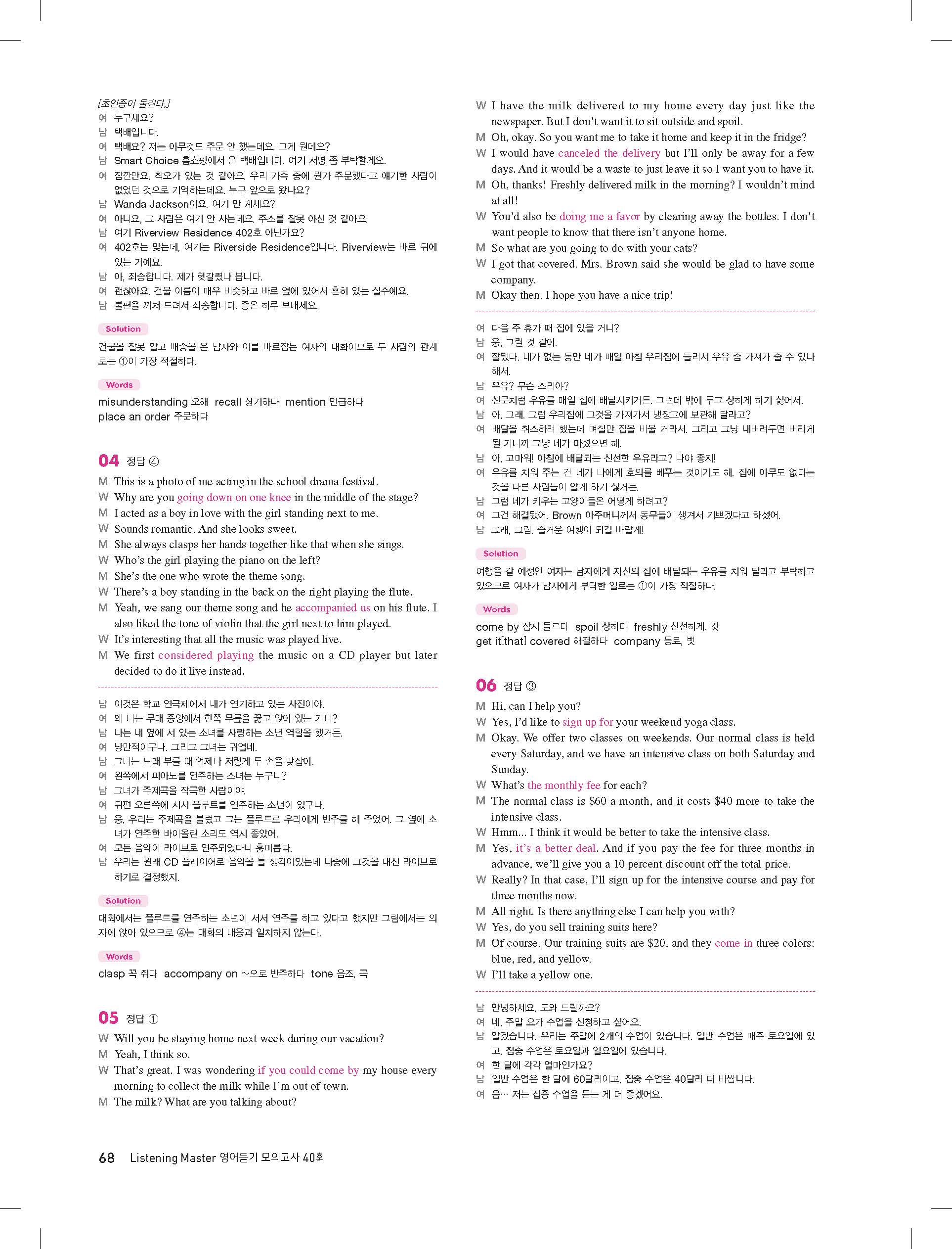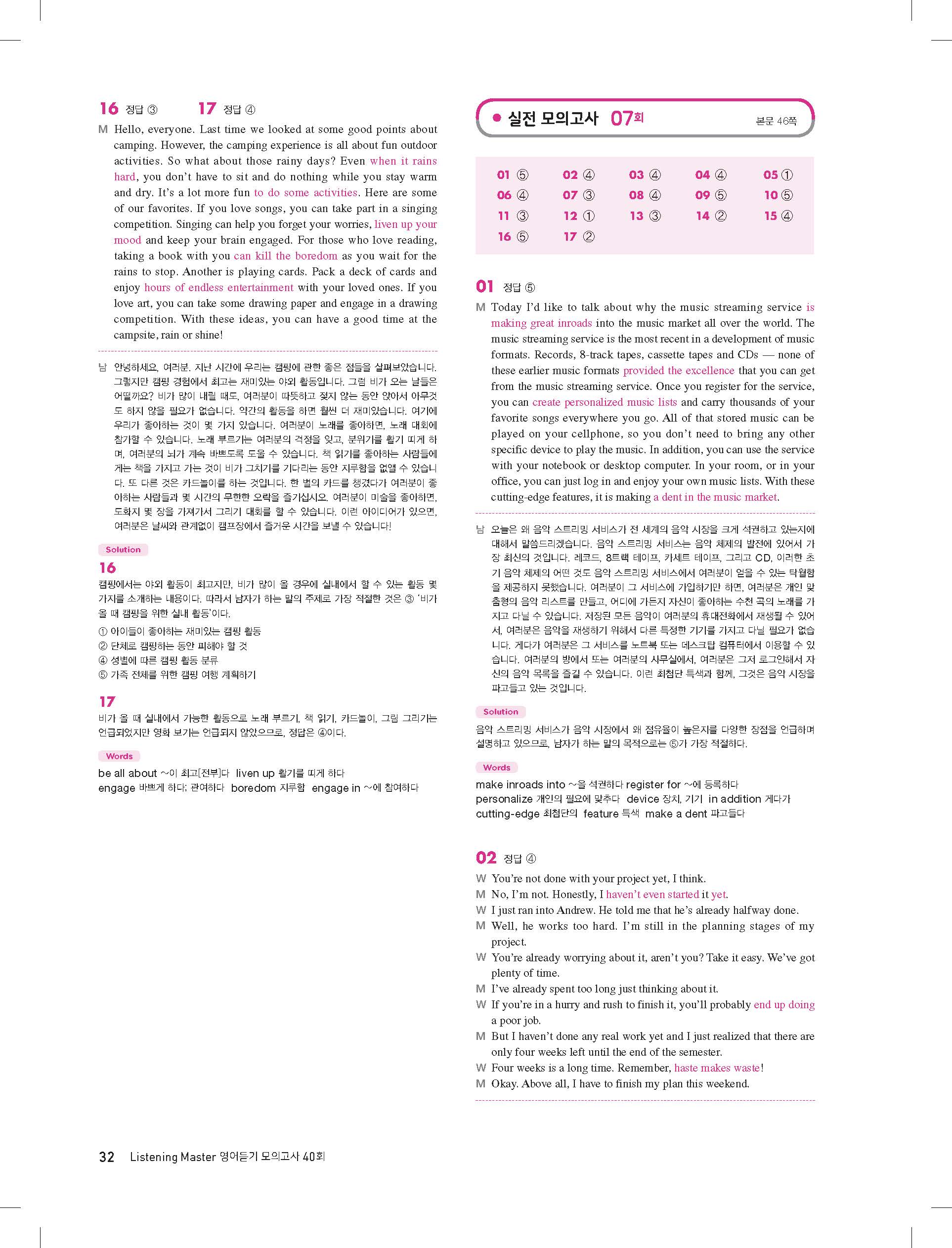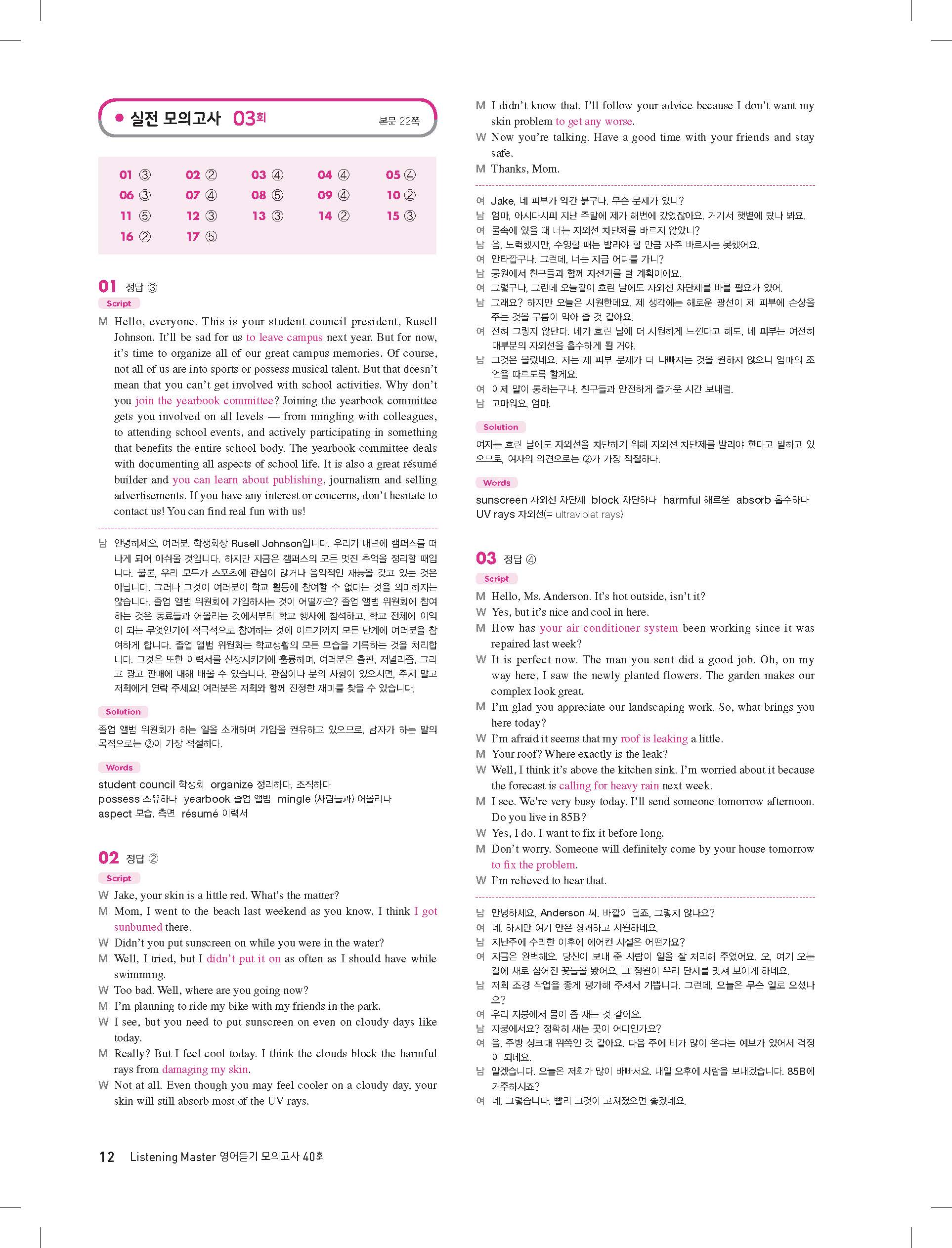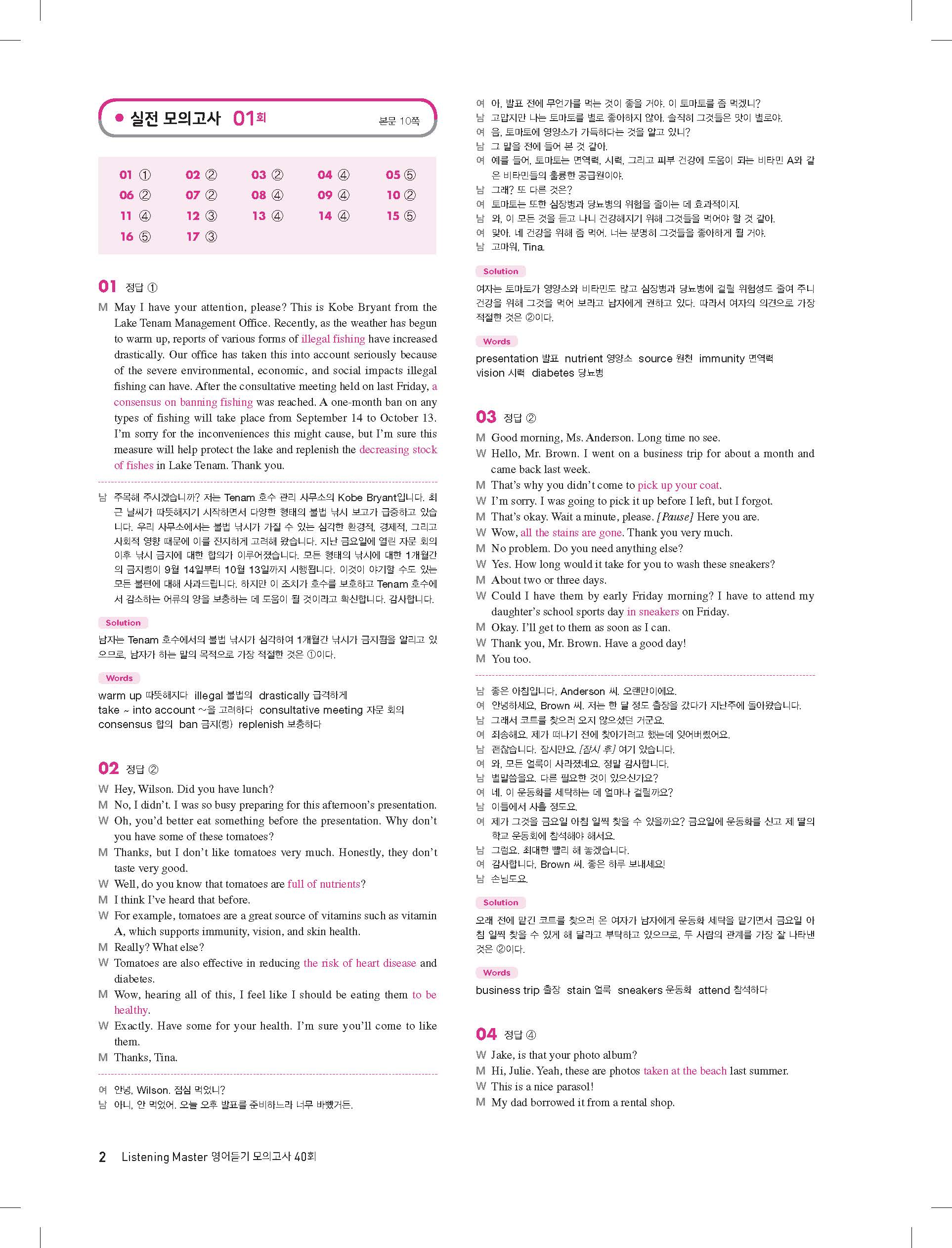 리스닝마스터 영어듣기 모의고사 40회 이투스 답지 사진답지 빠른답지 모바일최적화