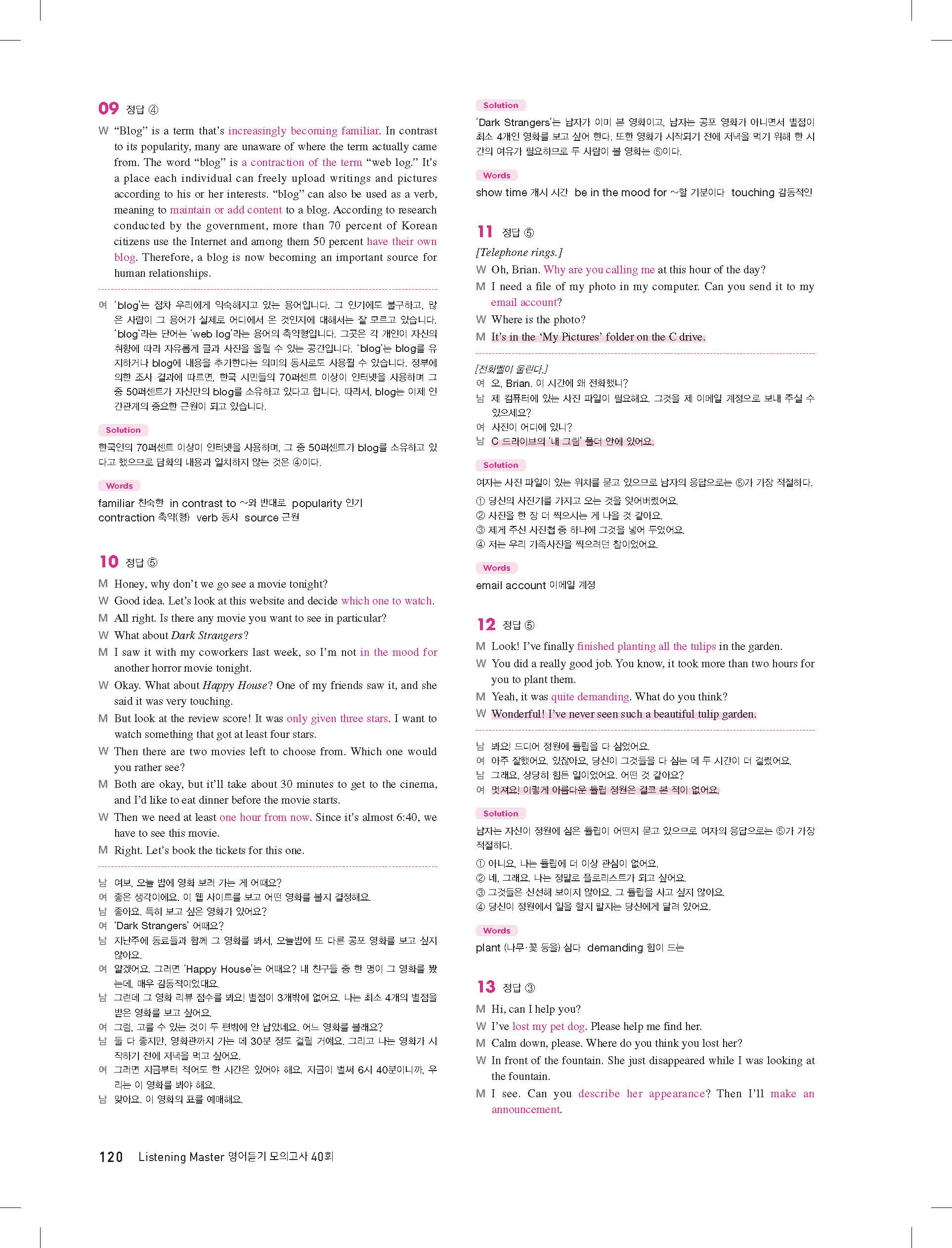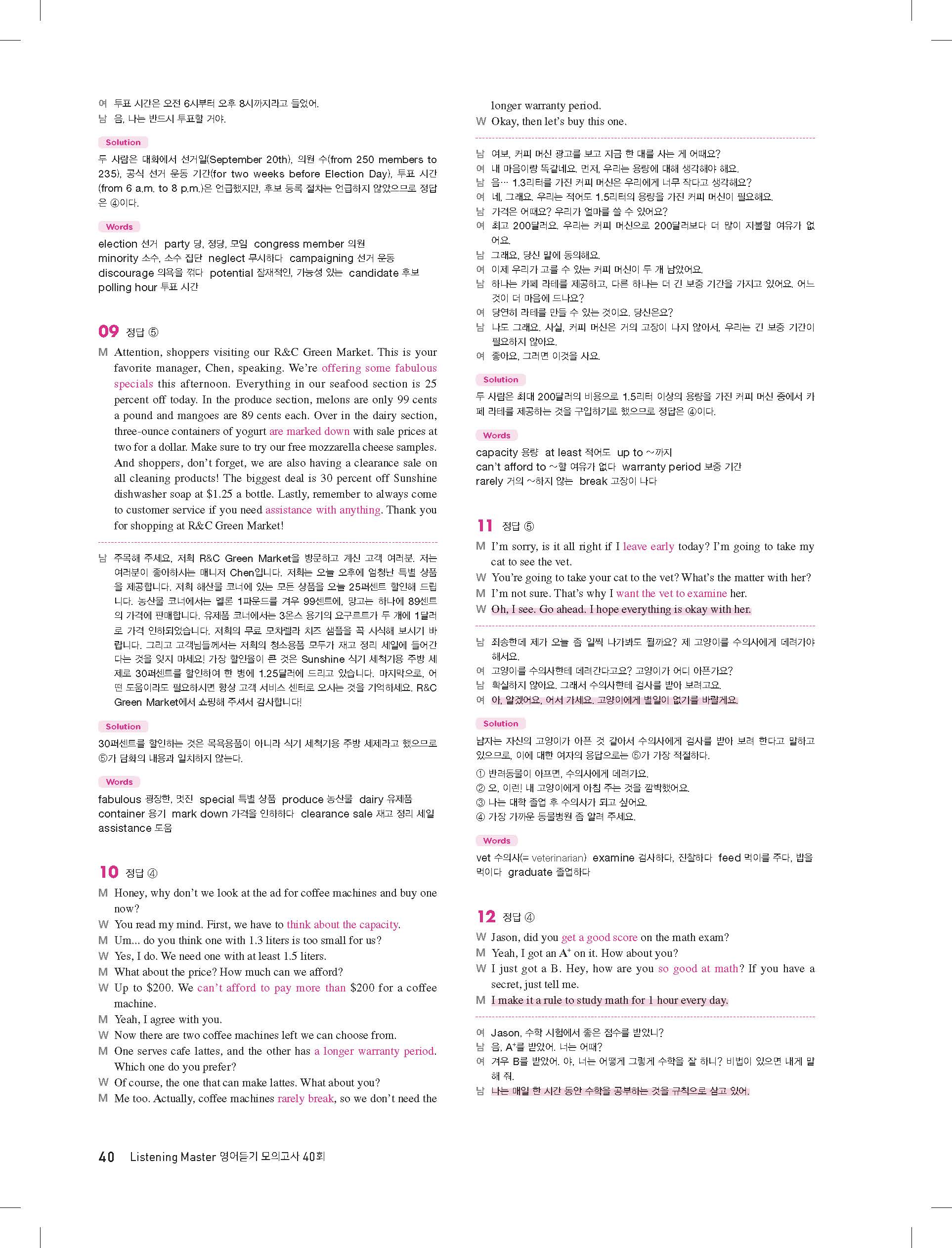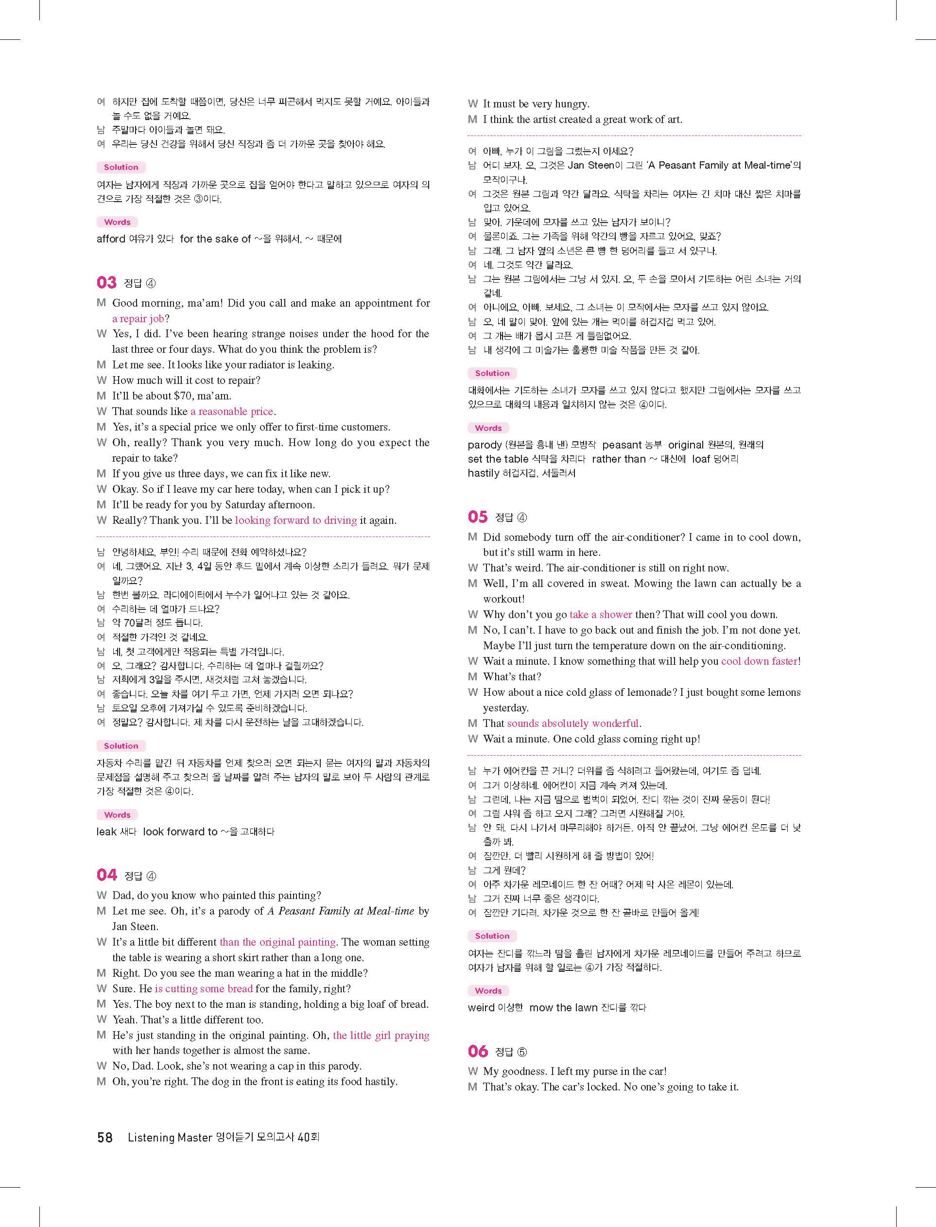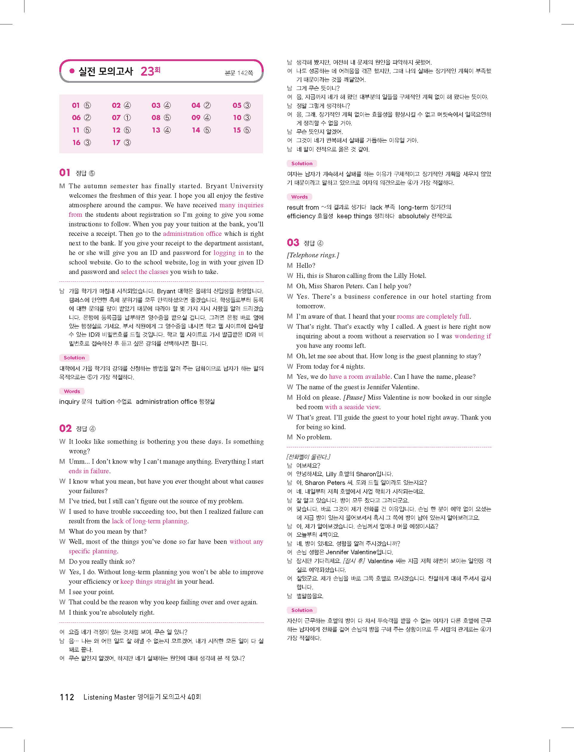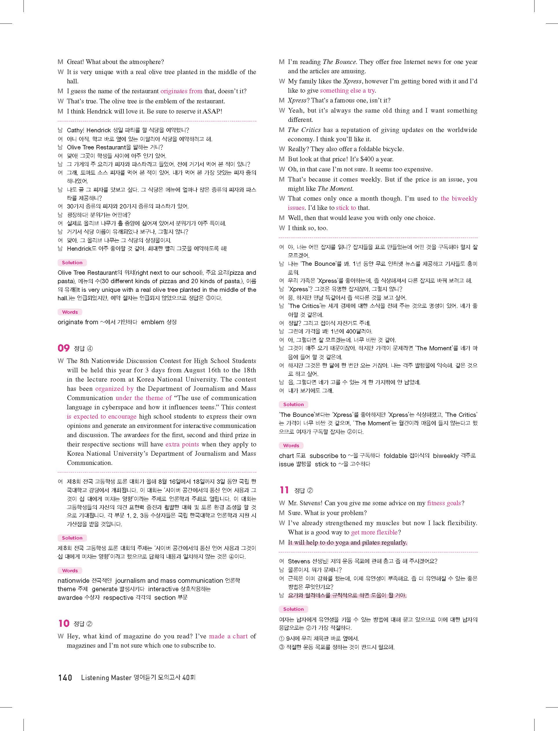 리스닝마스터 영어듣기 모의고사 40회 이투스 답지 사진답지 빠른답지 모바일최적화