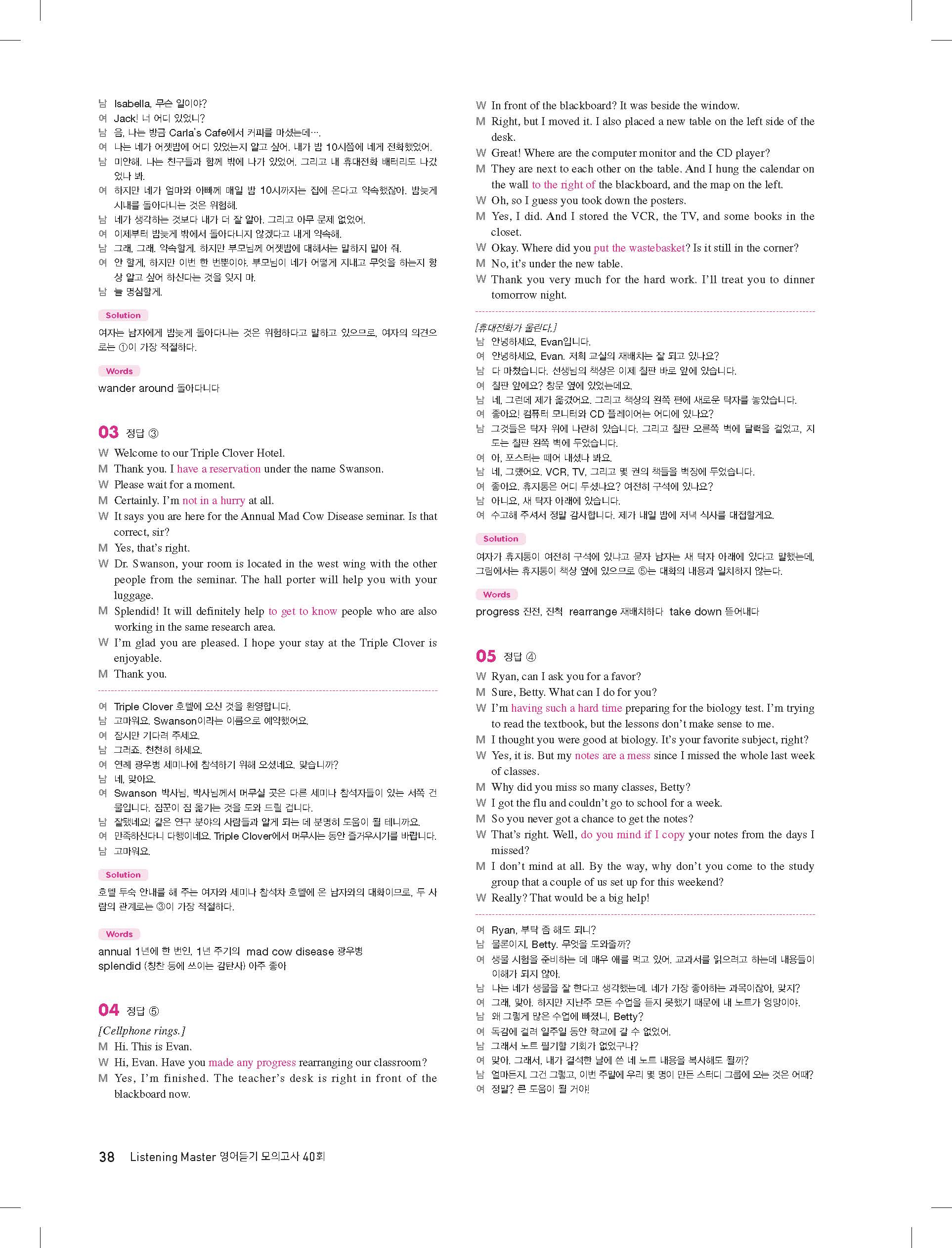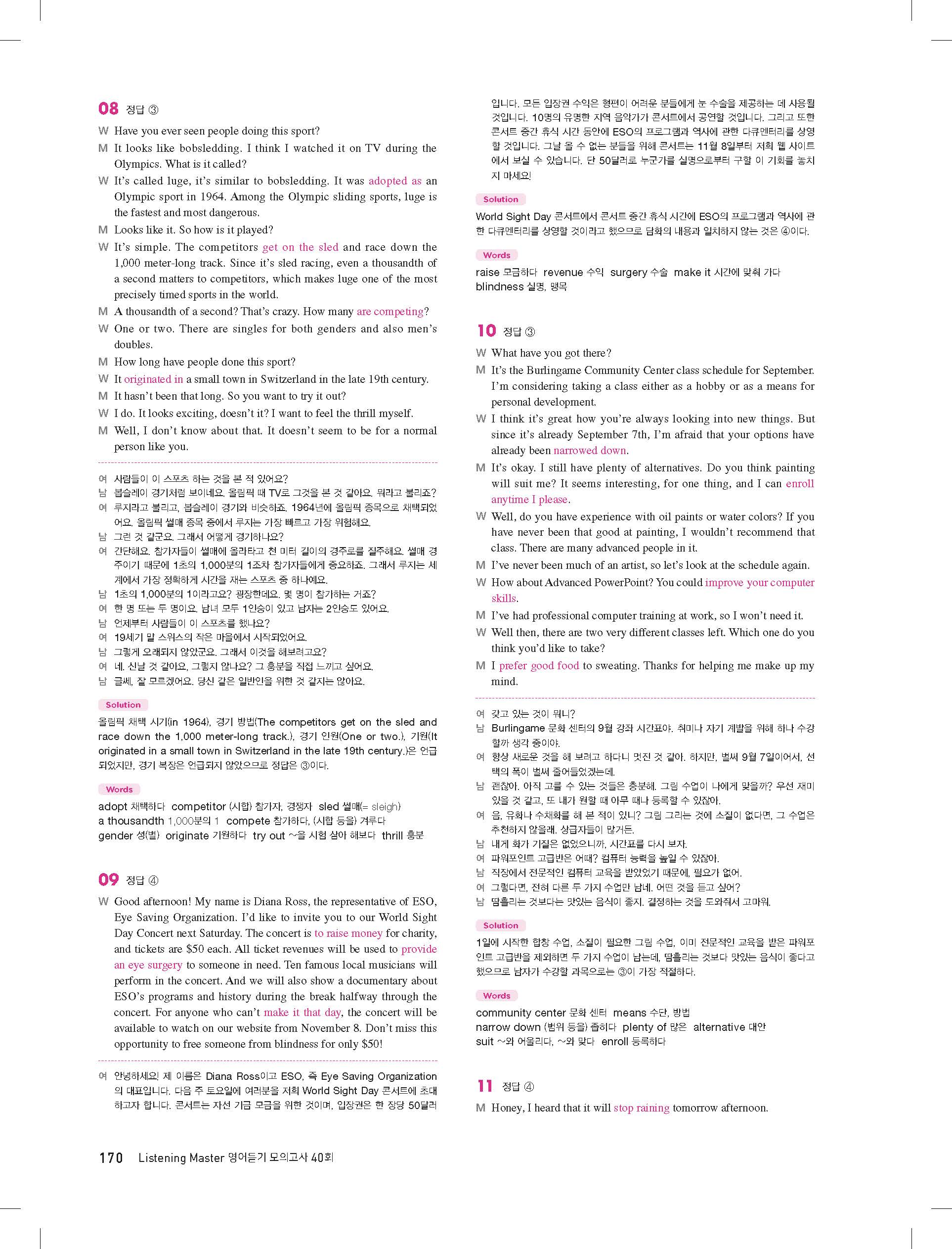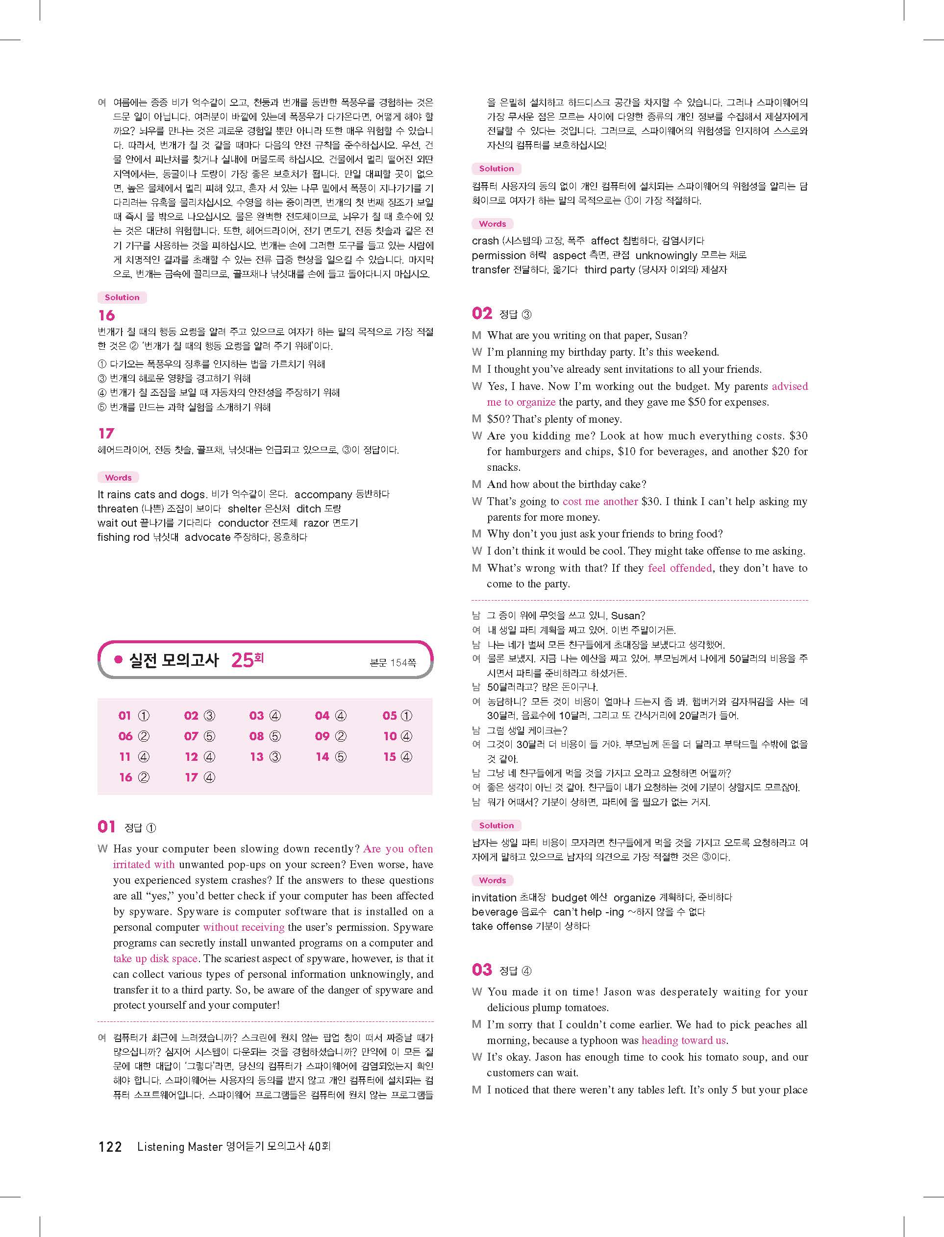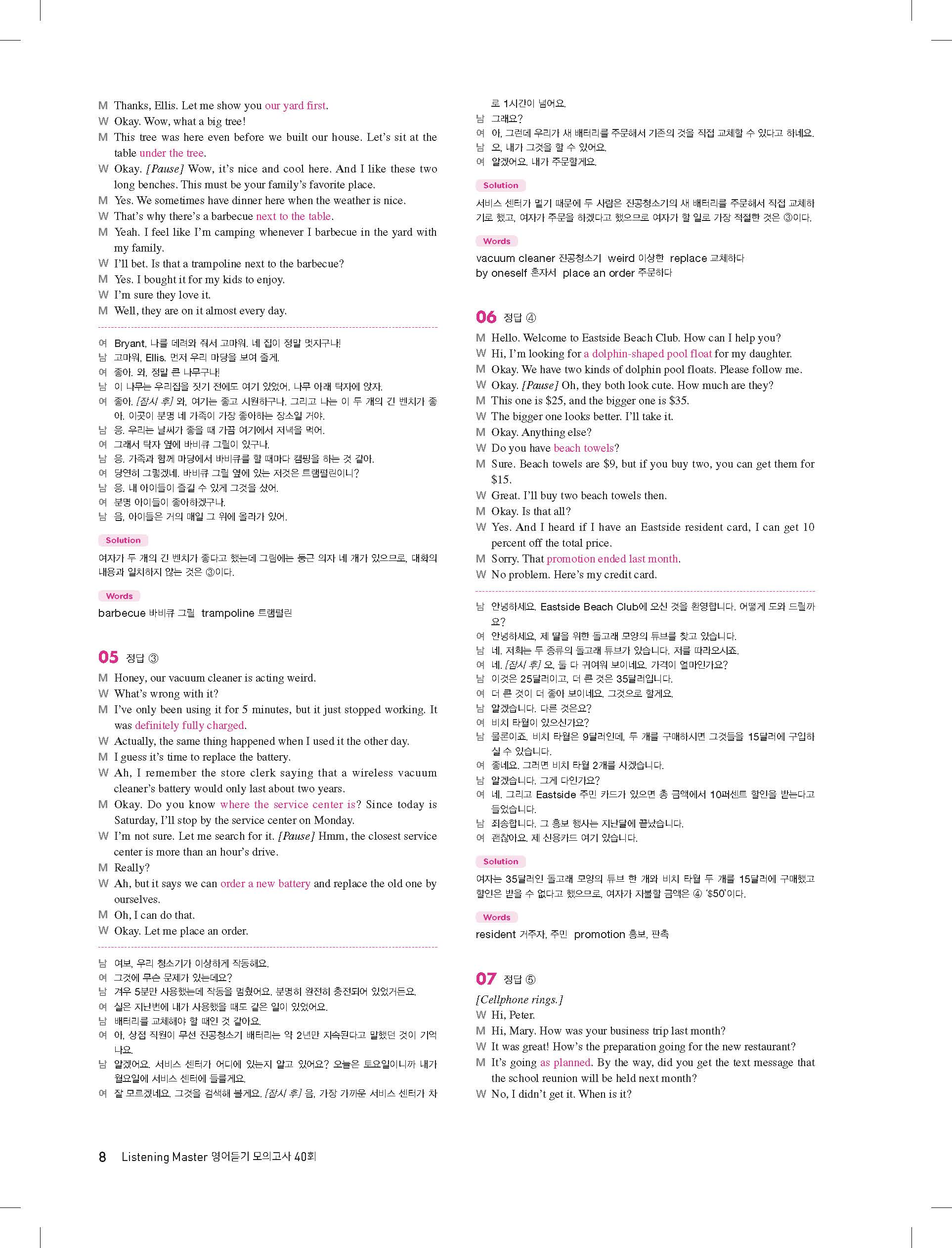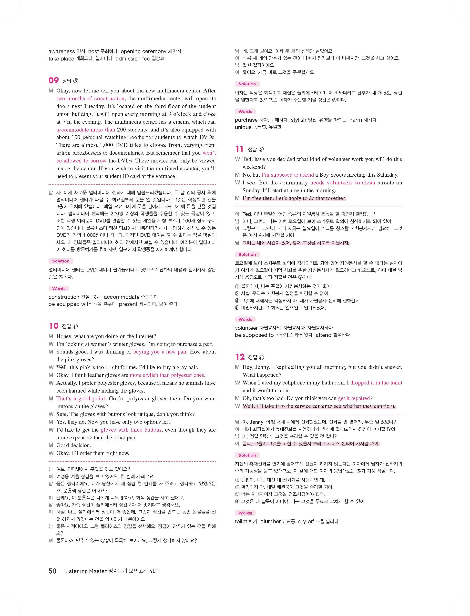 리스닝마스터 영어듣기 모의고사 40회 이투스 답지 사진답지 빠른답지 모바일최적화