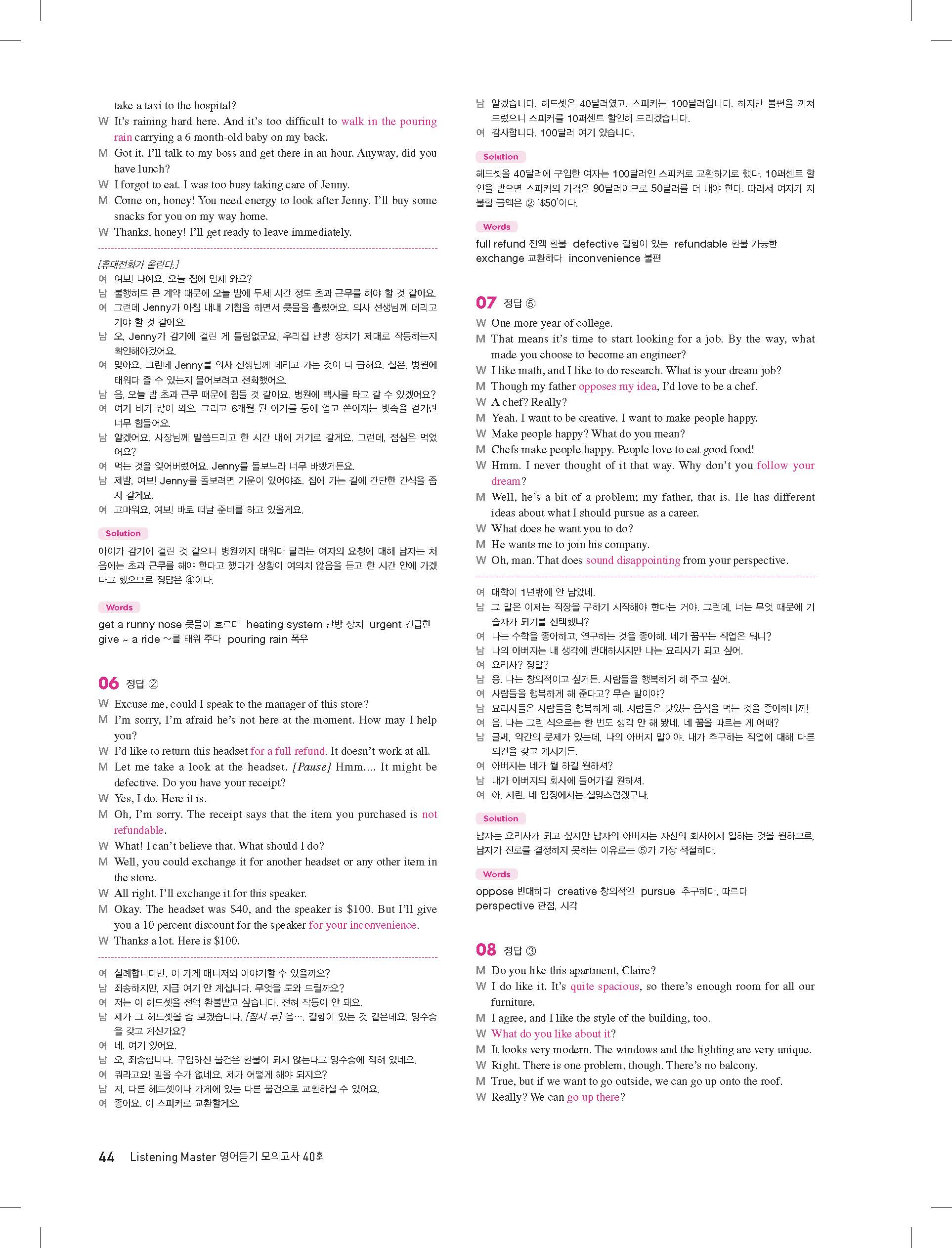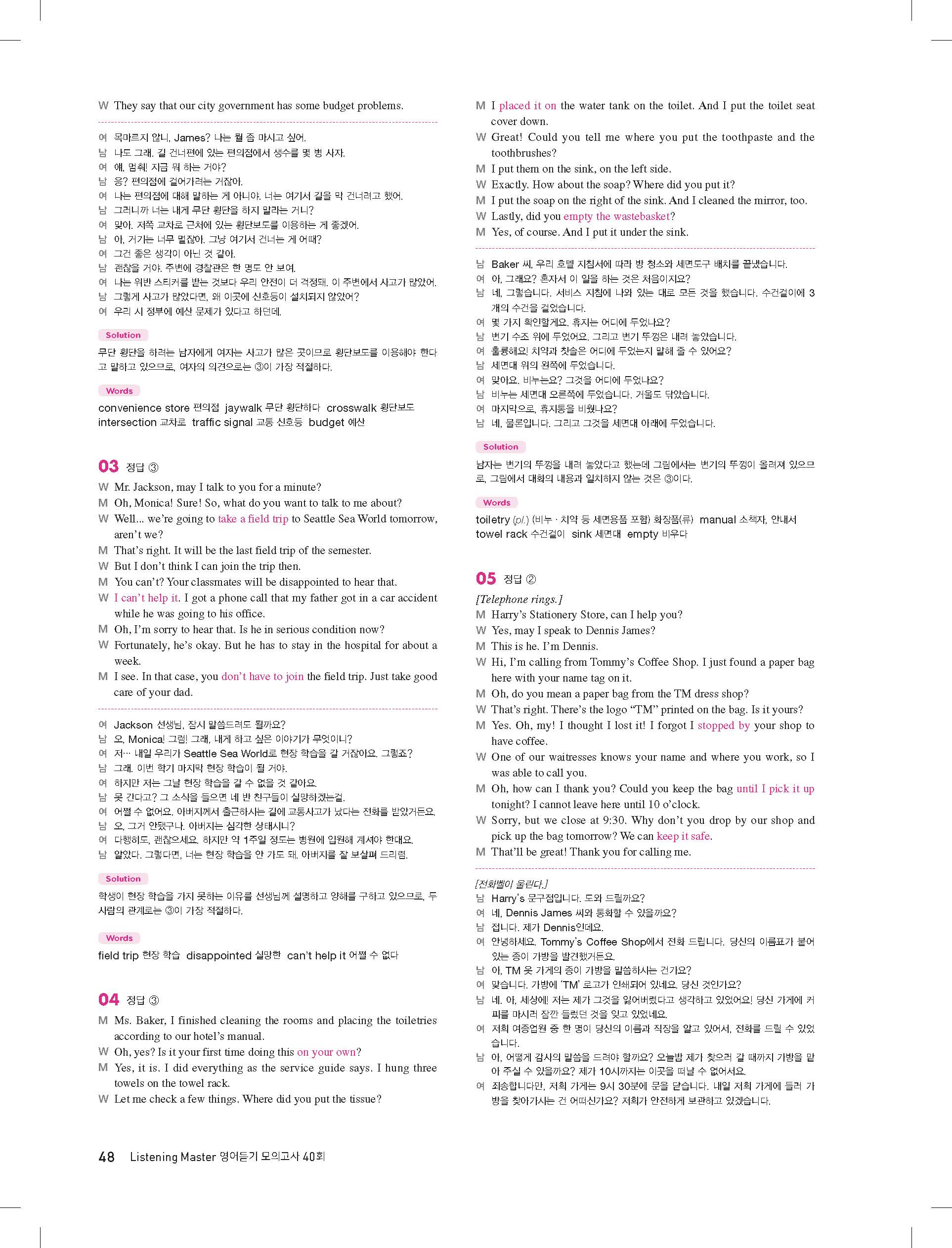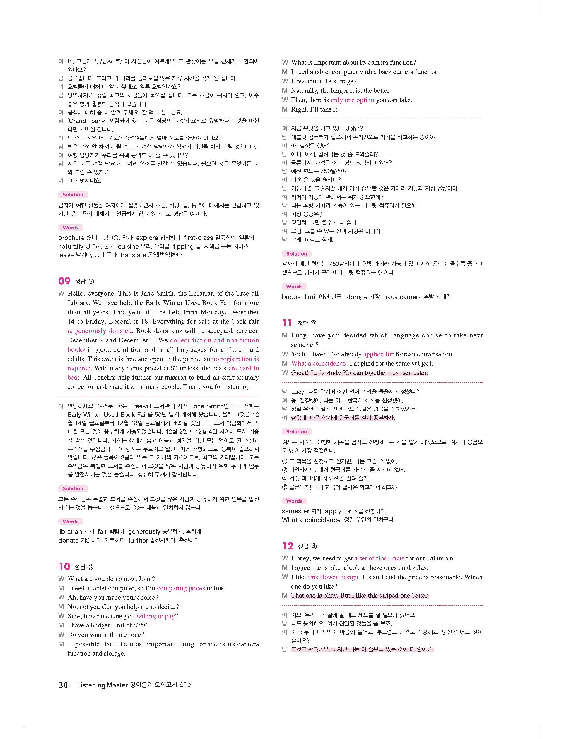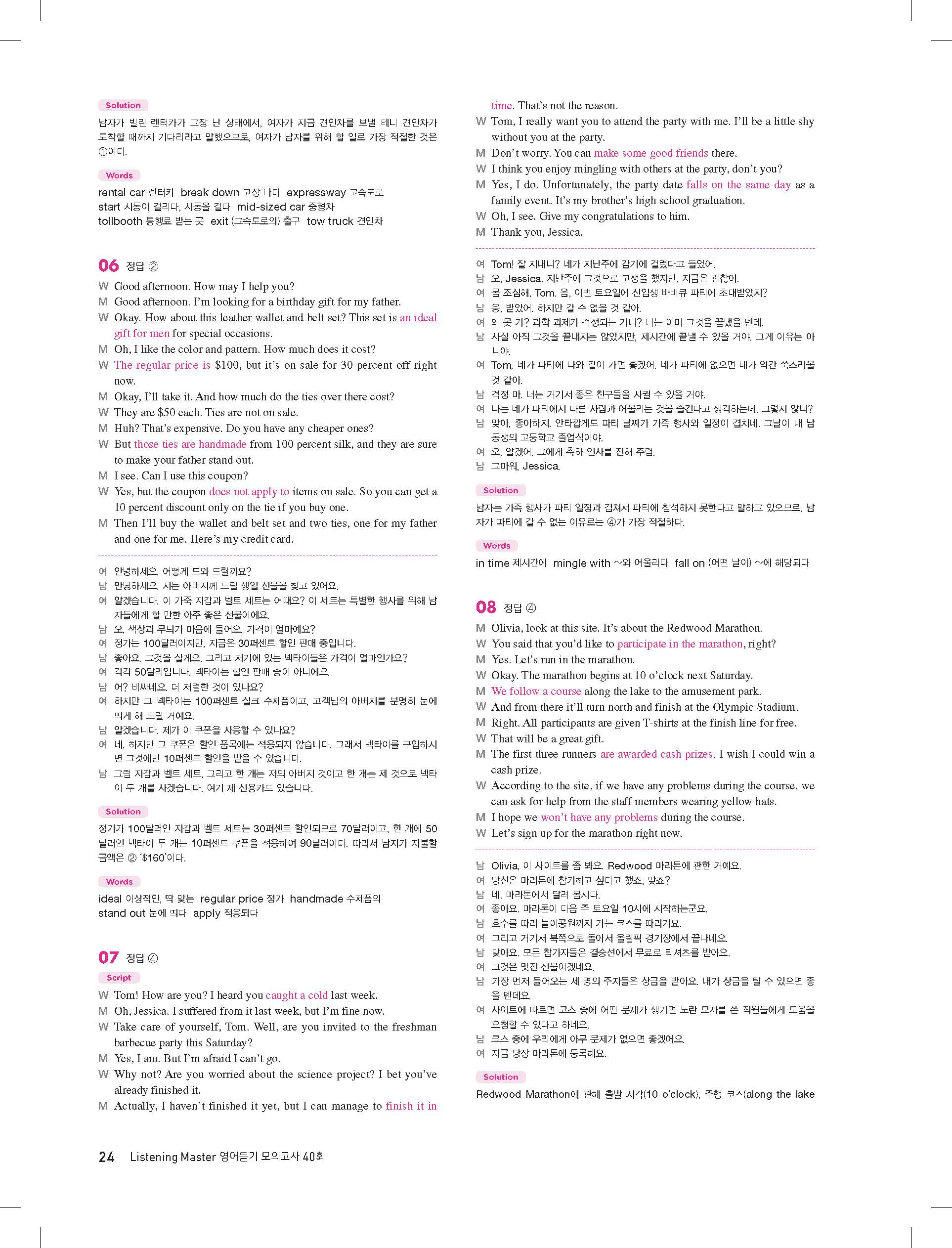 리스닝마스터 영어듣기 모의고사 40회 이투스 답지 사진답지 빠른답지 모바일최적화