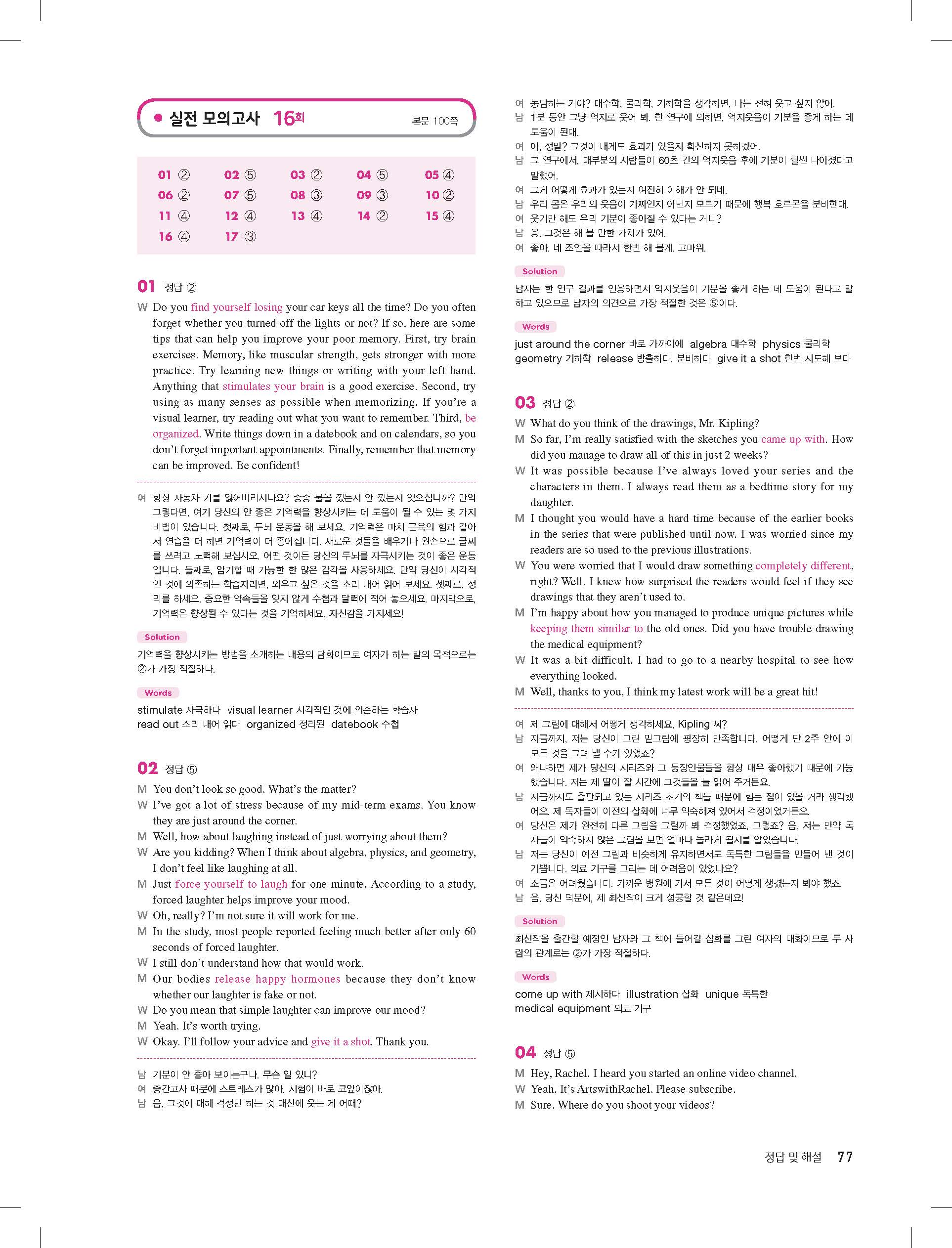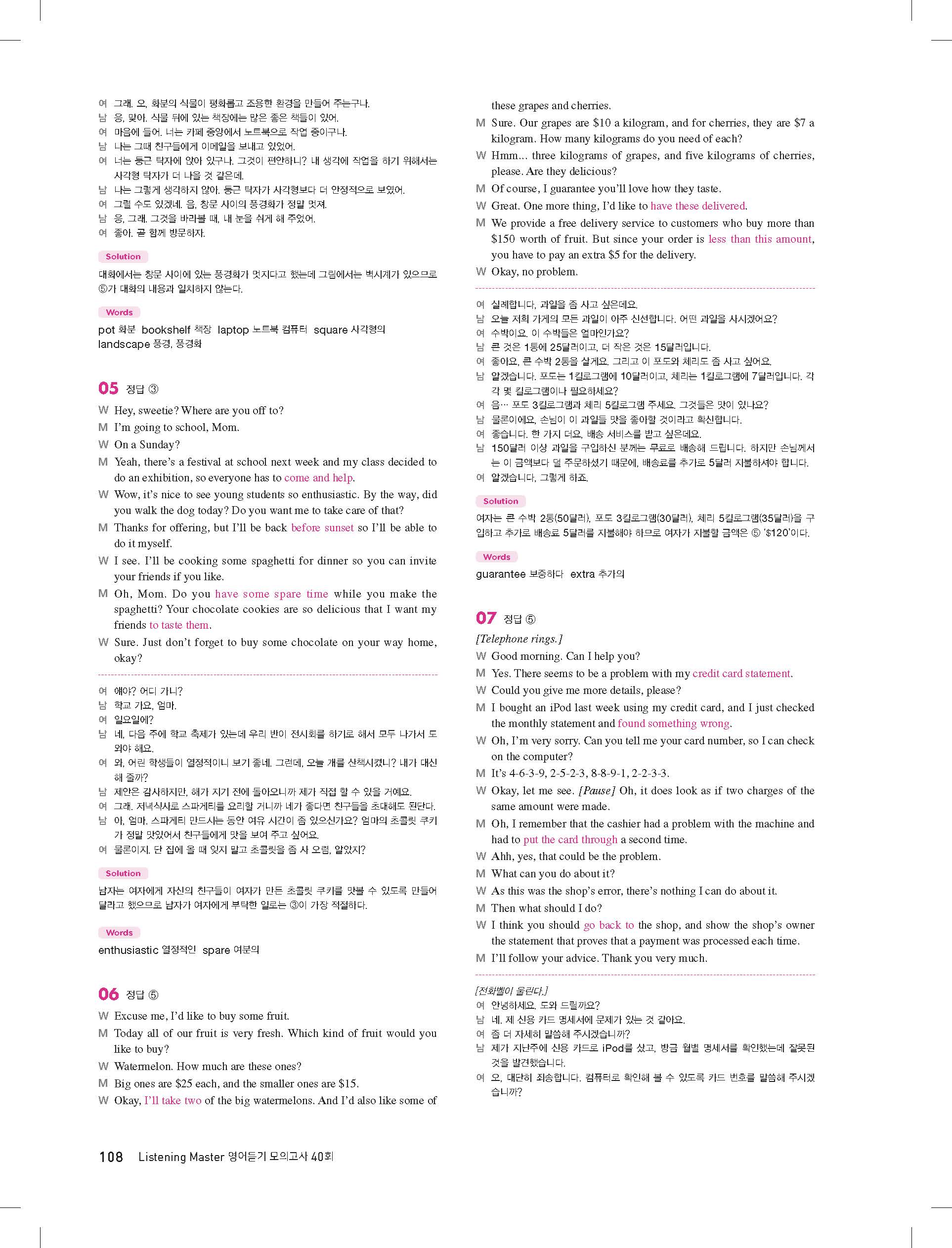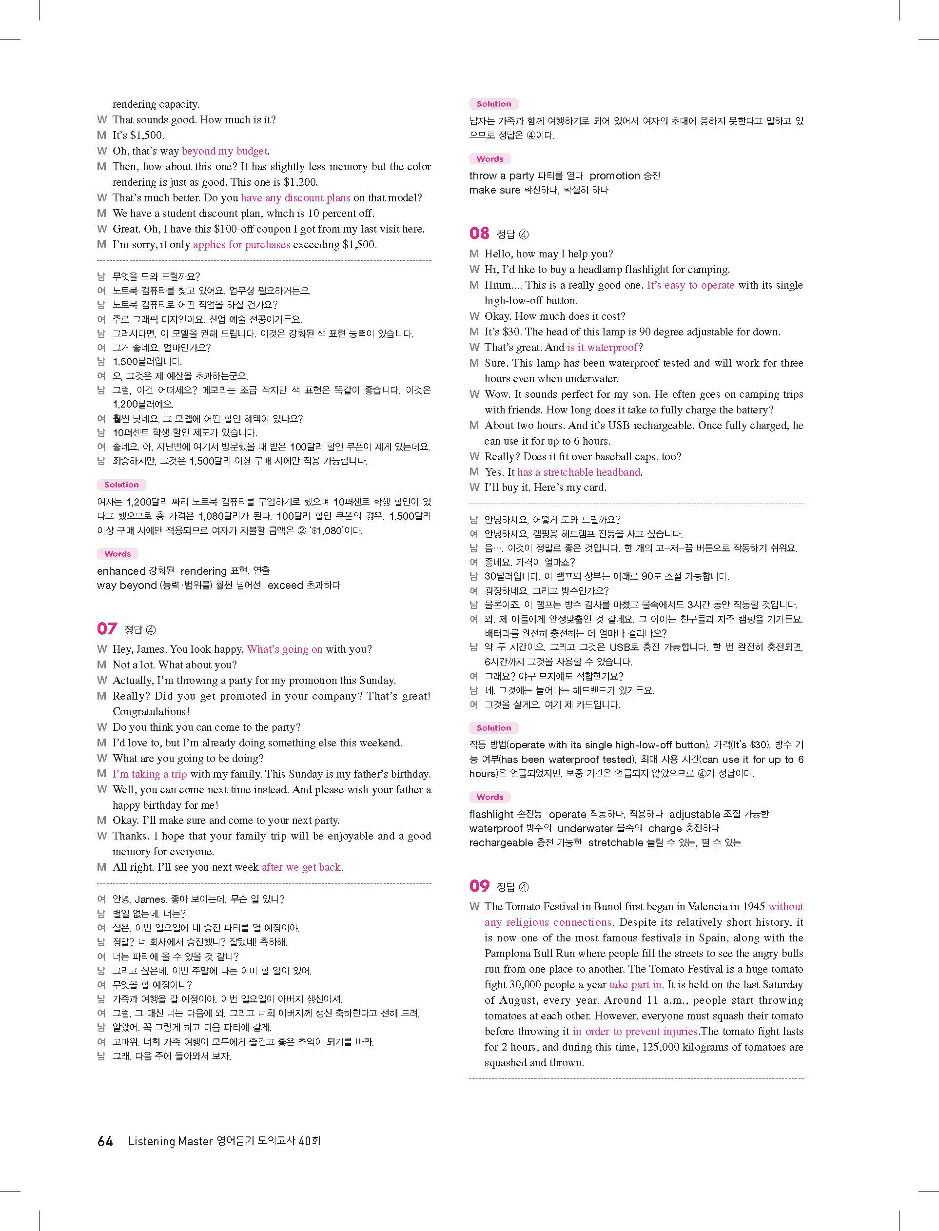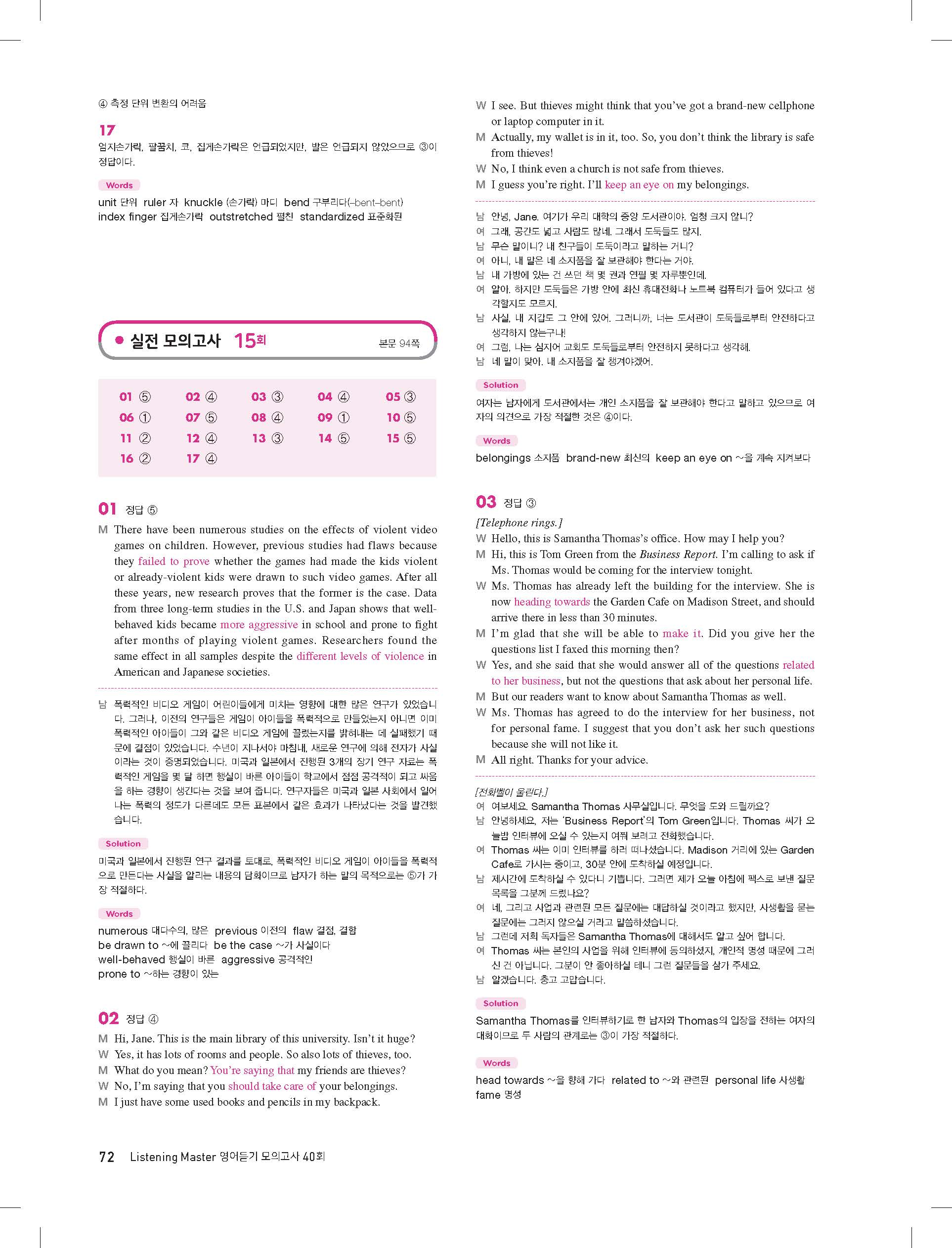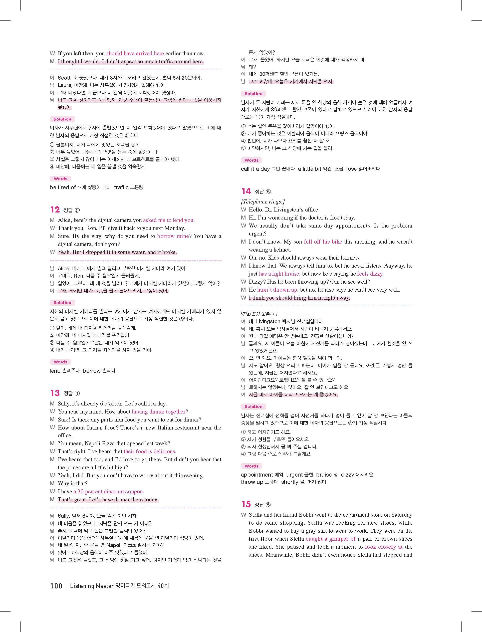 리스닝마스터 영어듣기 모의고사 40회 이투스 답지 사진답지 빠른답지 모바일최적화