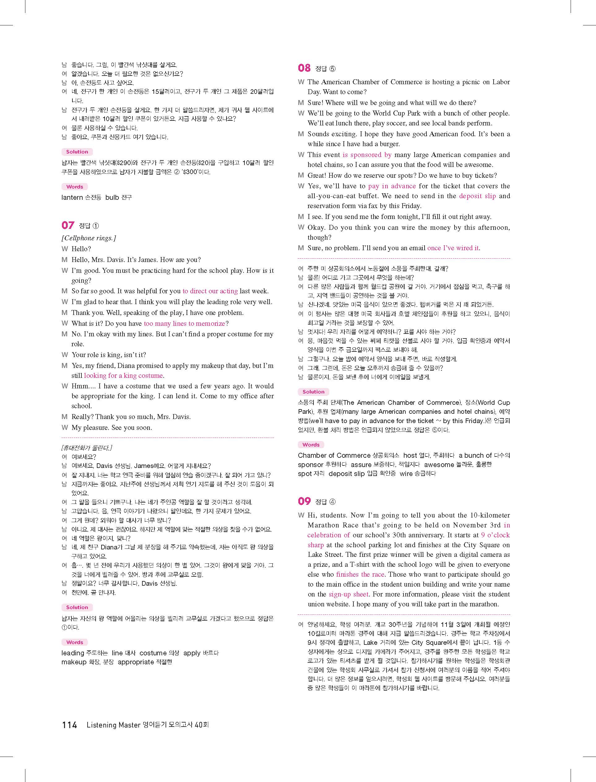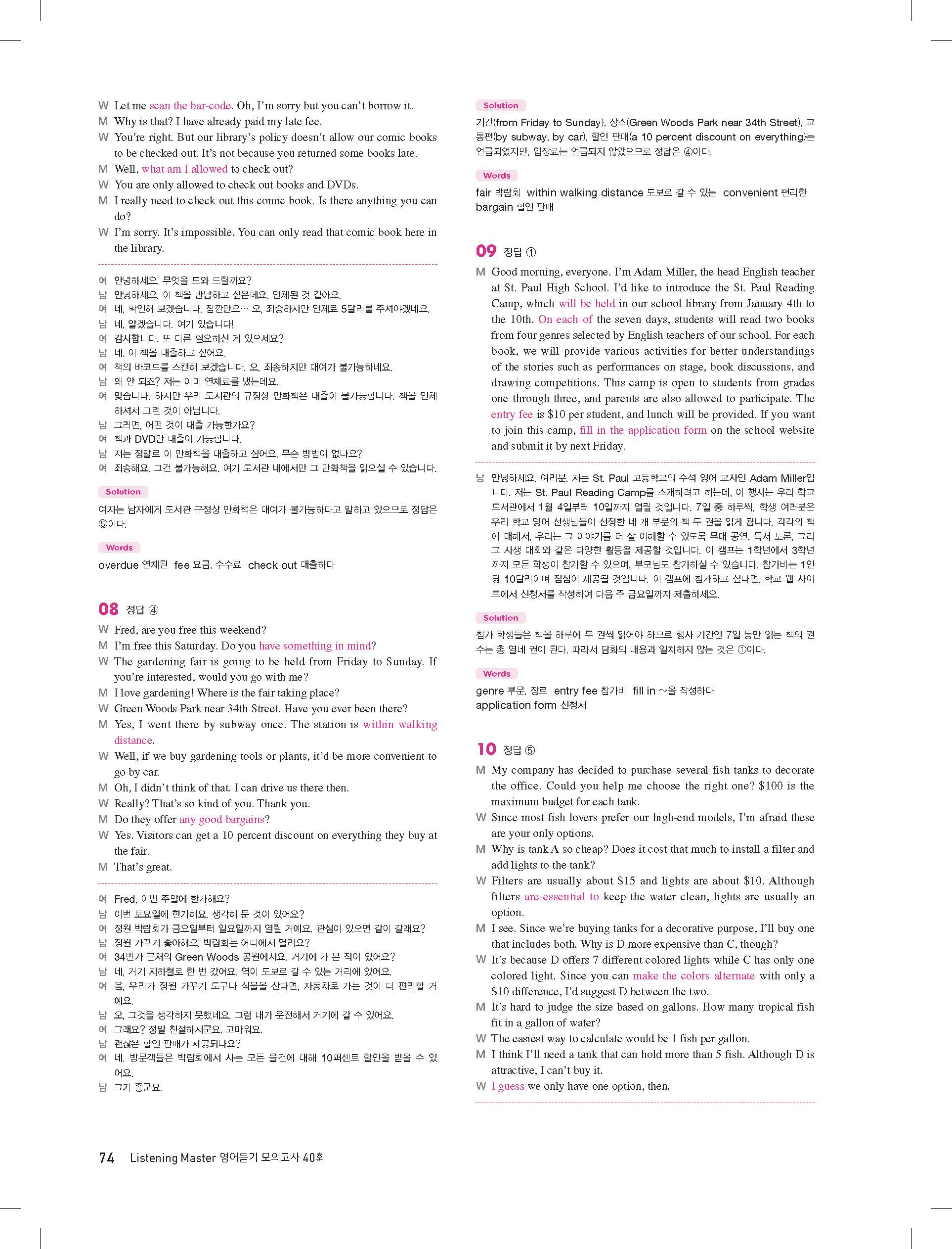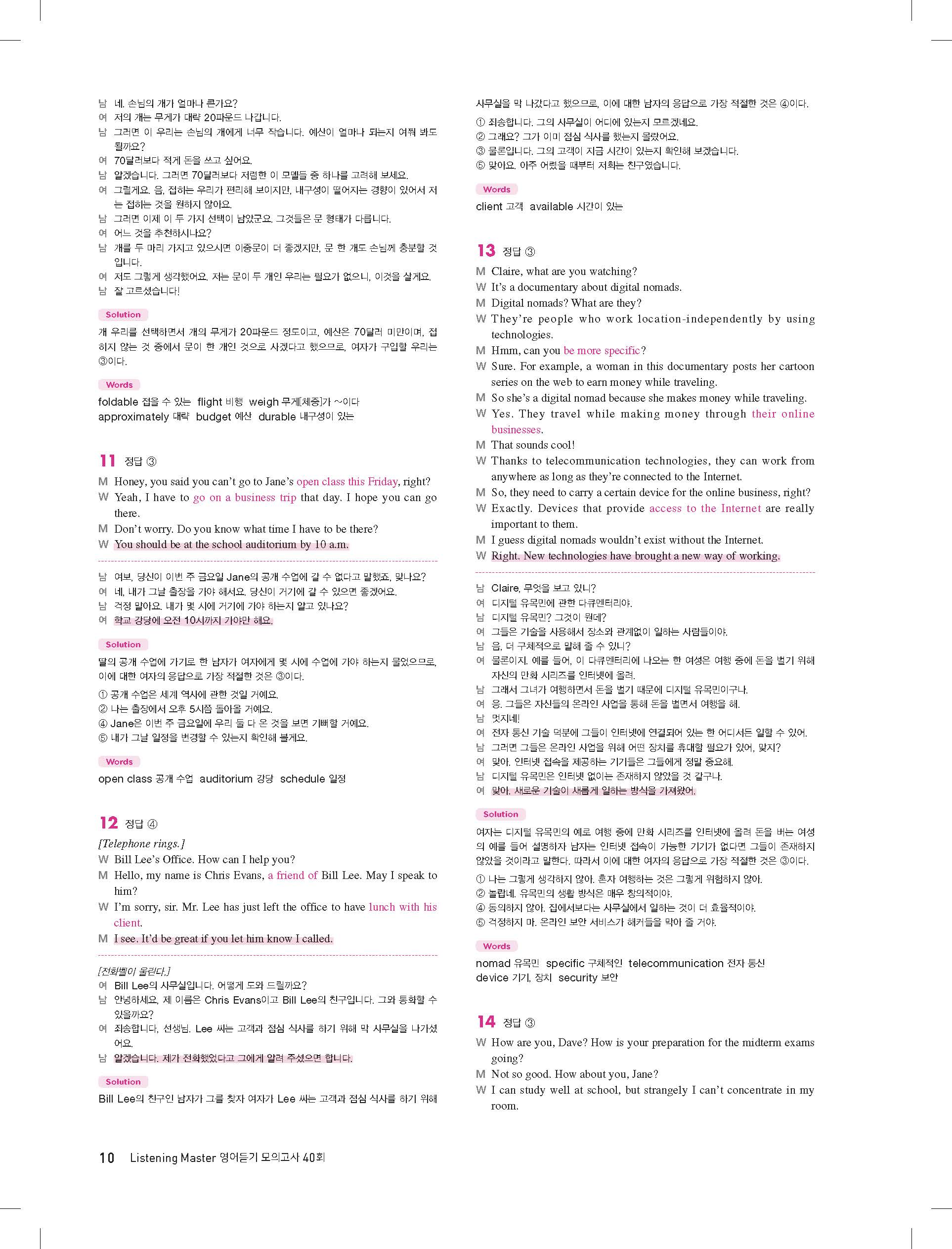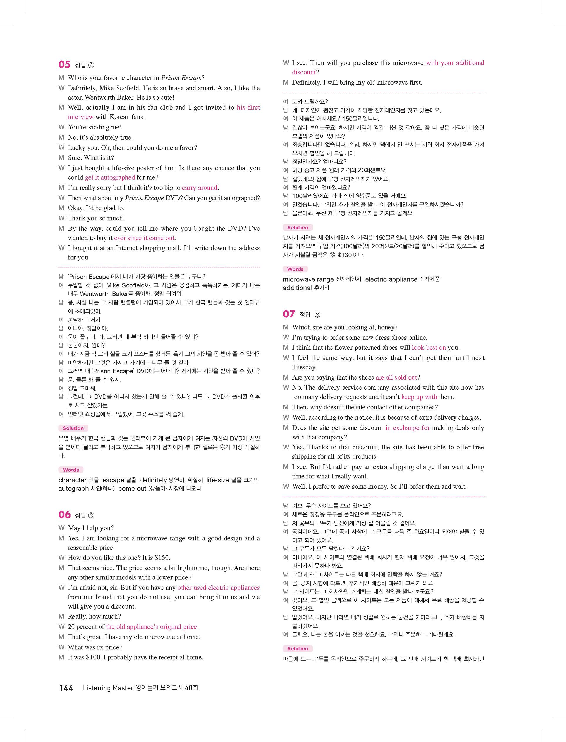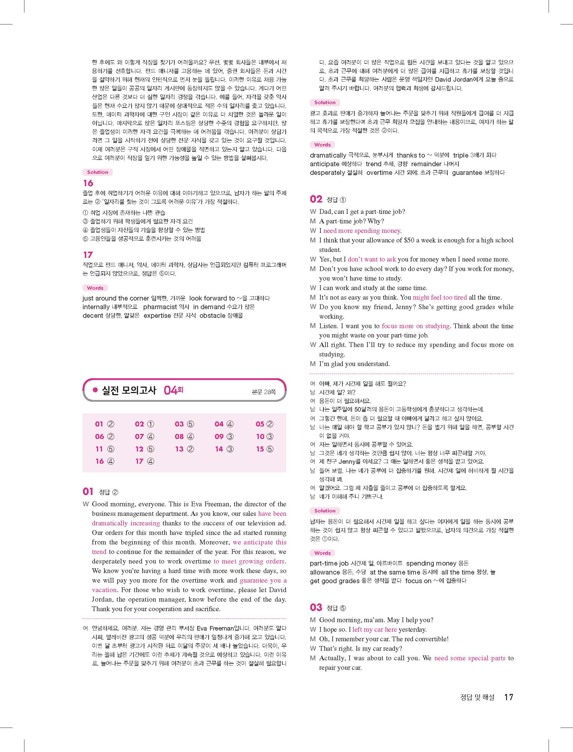 리스닝마스터 영어듣기 모의고사 40회 이투스 답지 사진답지 빠른답지 모바일최적화
