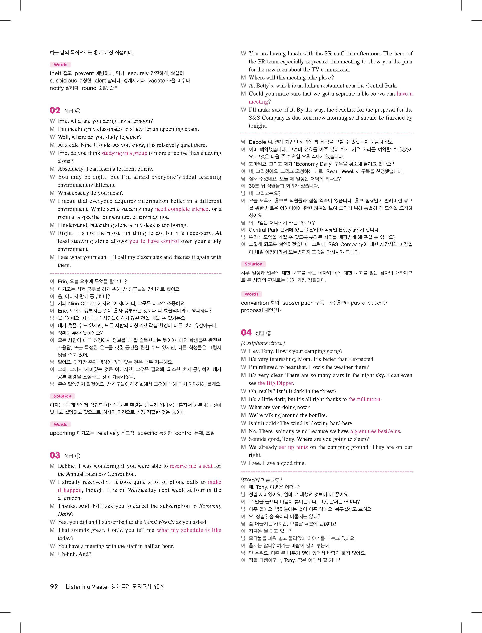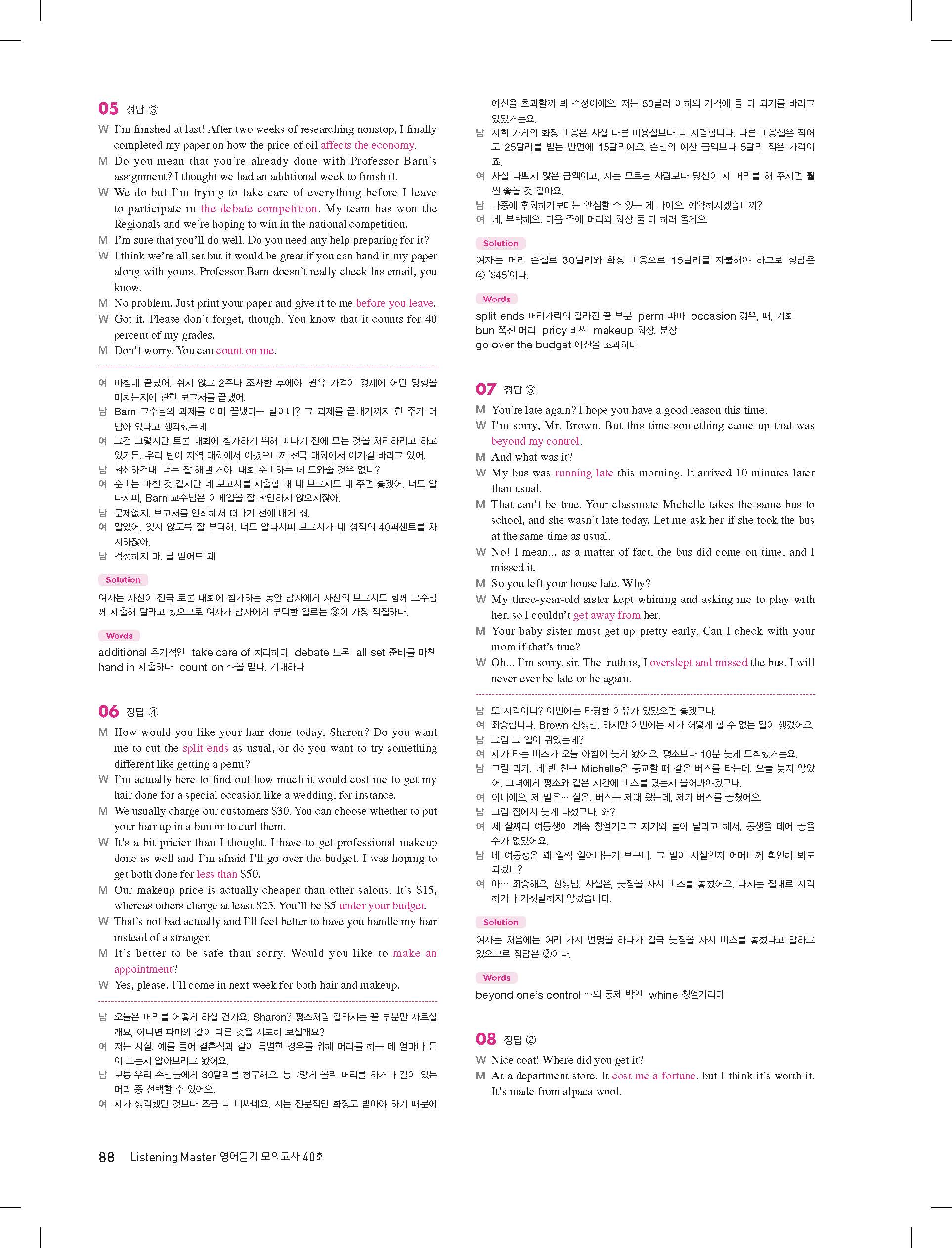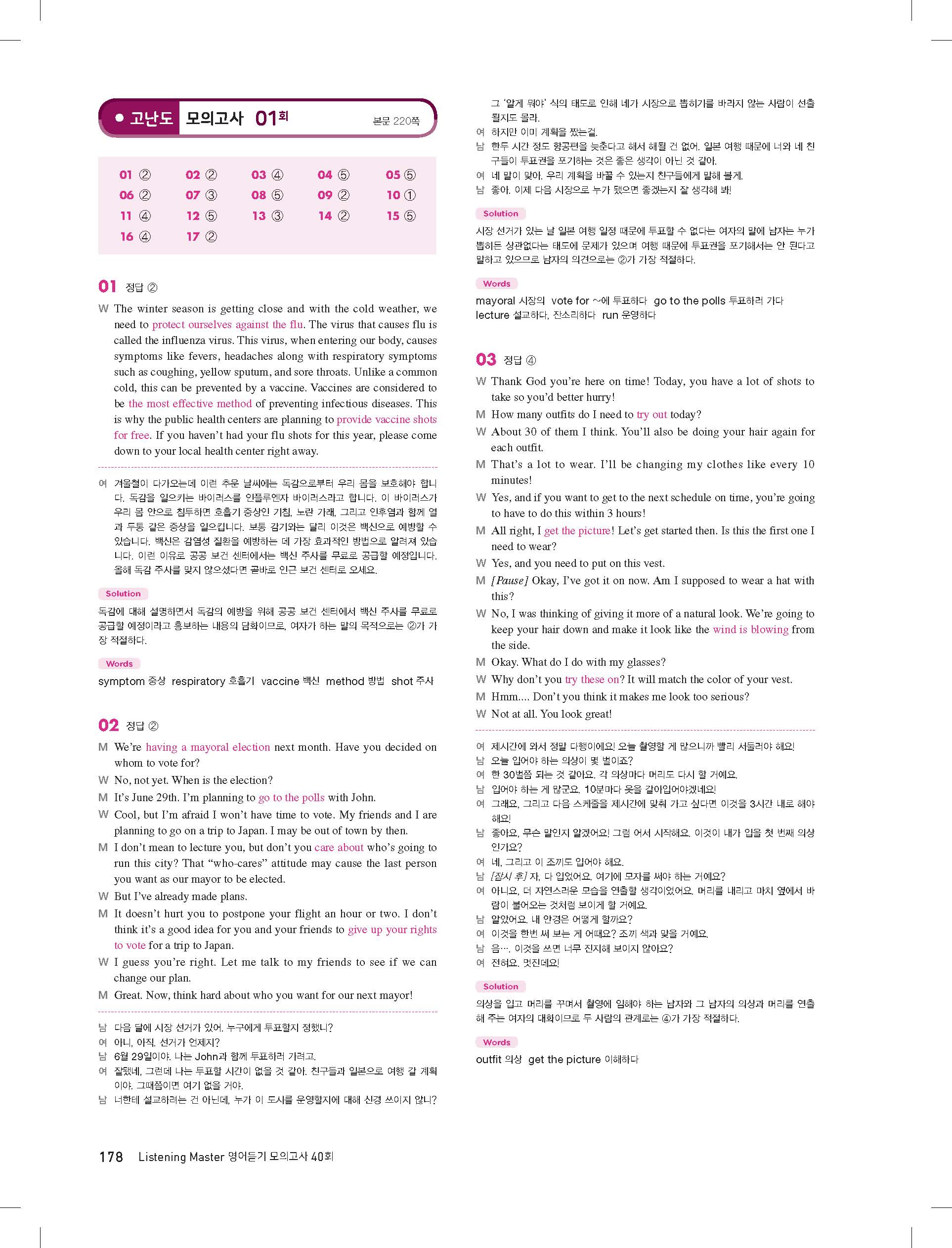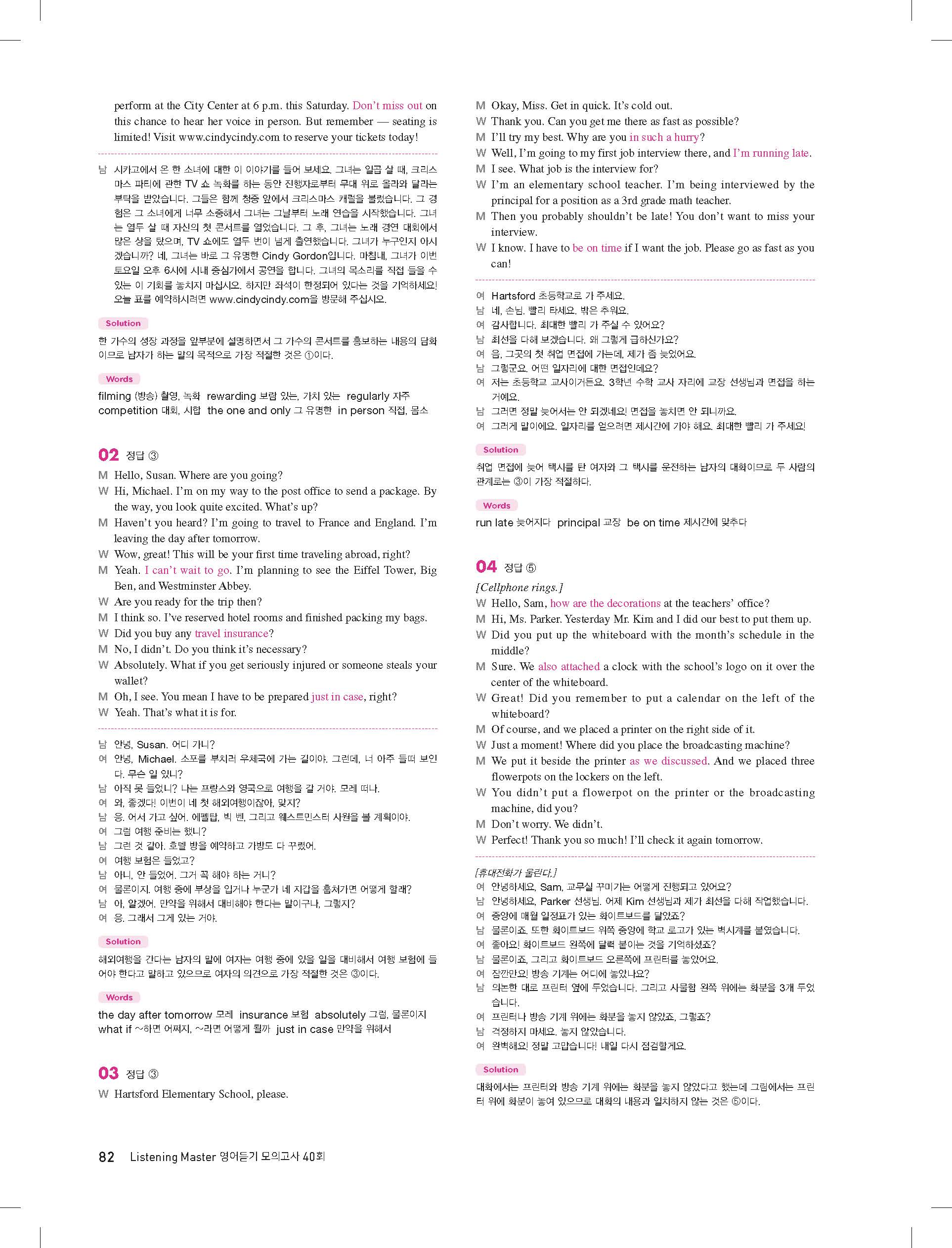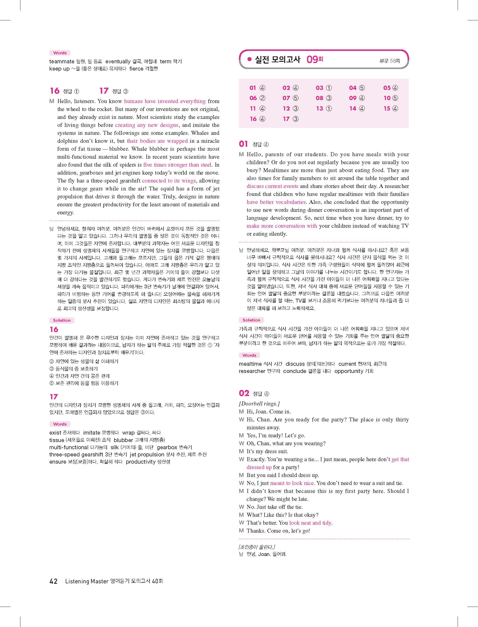 리스닝마스터 영어듣기 모의고사 40회 이투스 답지 사진답지 빠른답지 모바일최적화