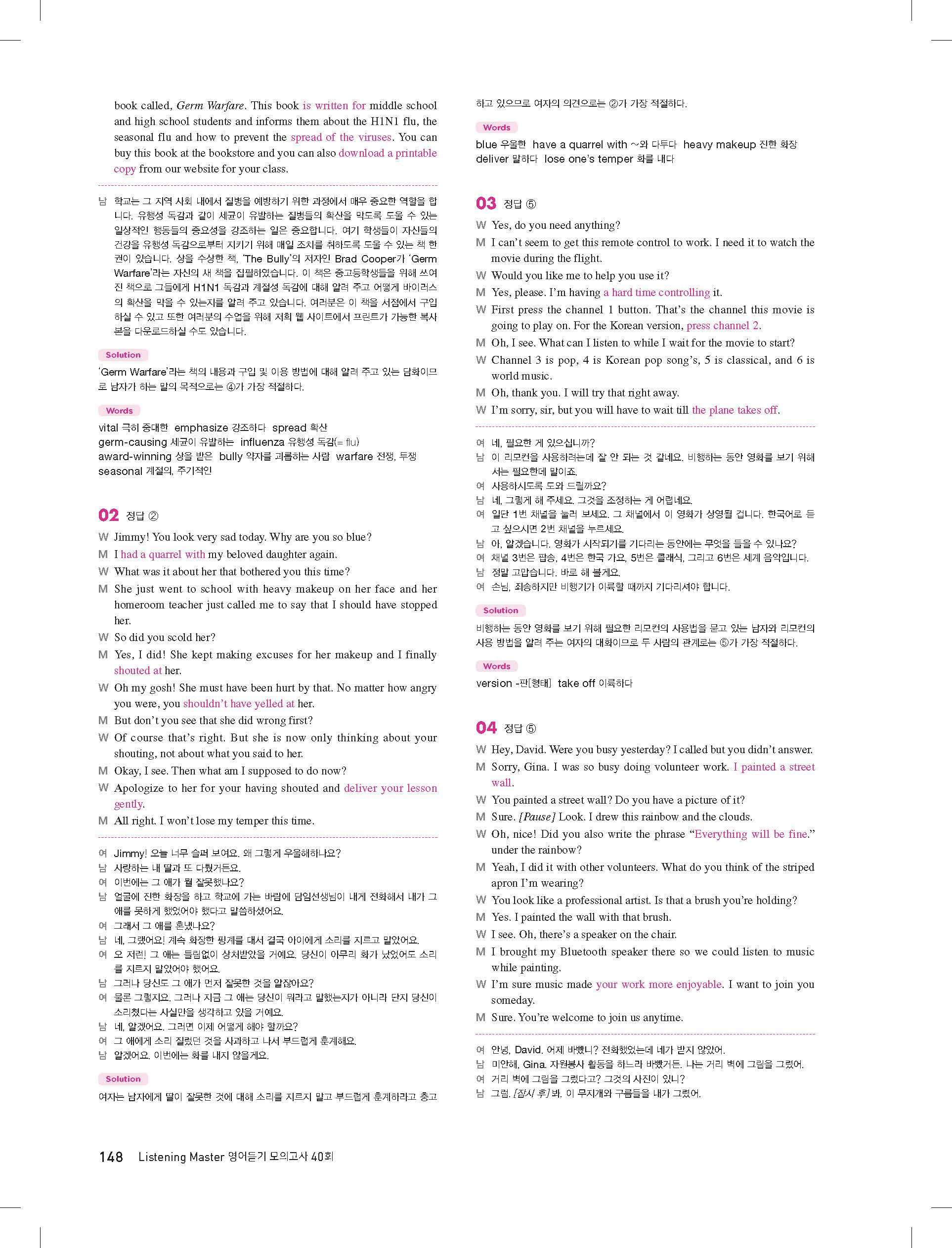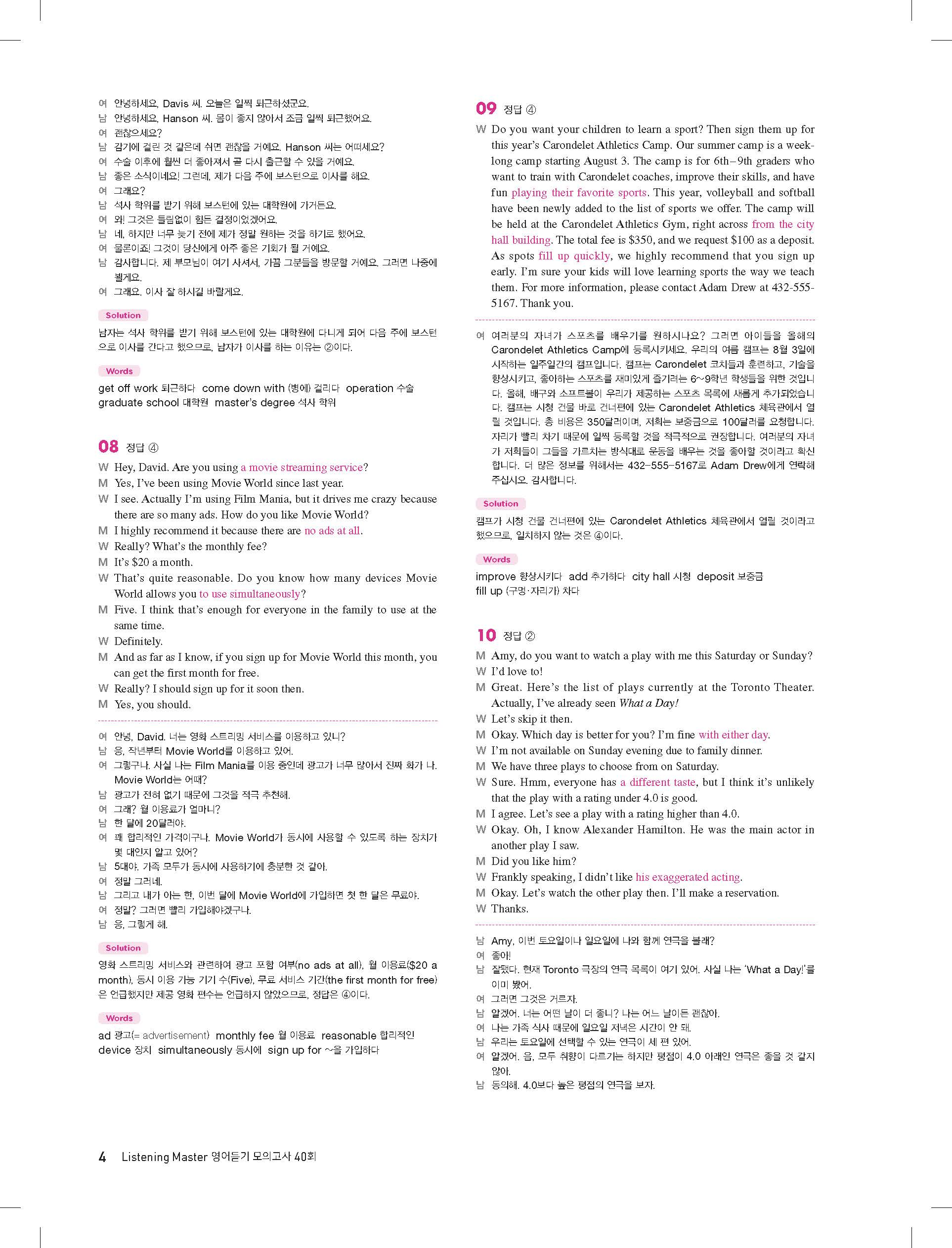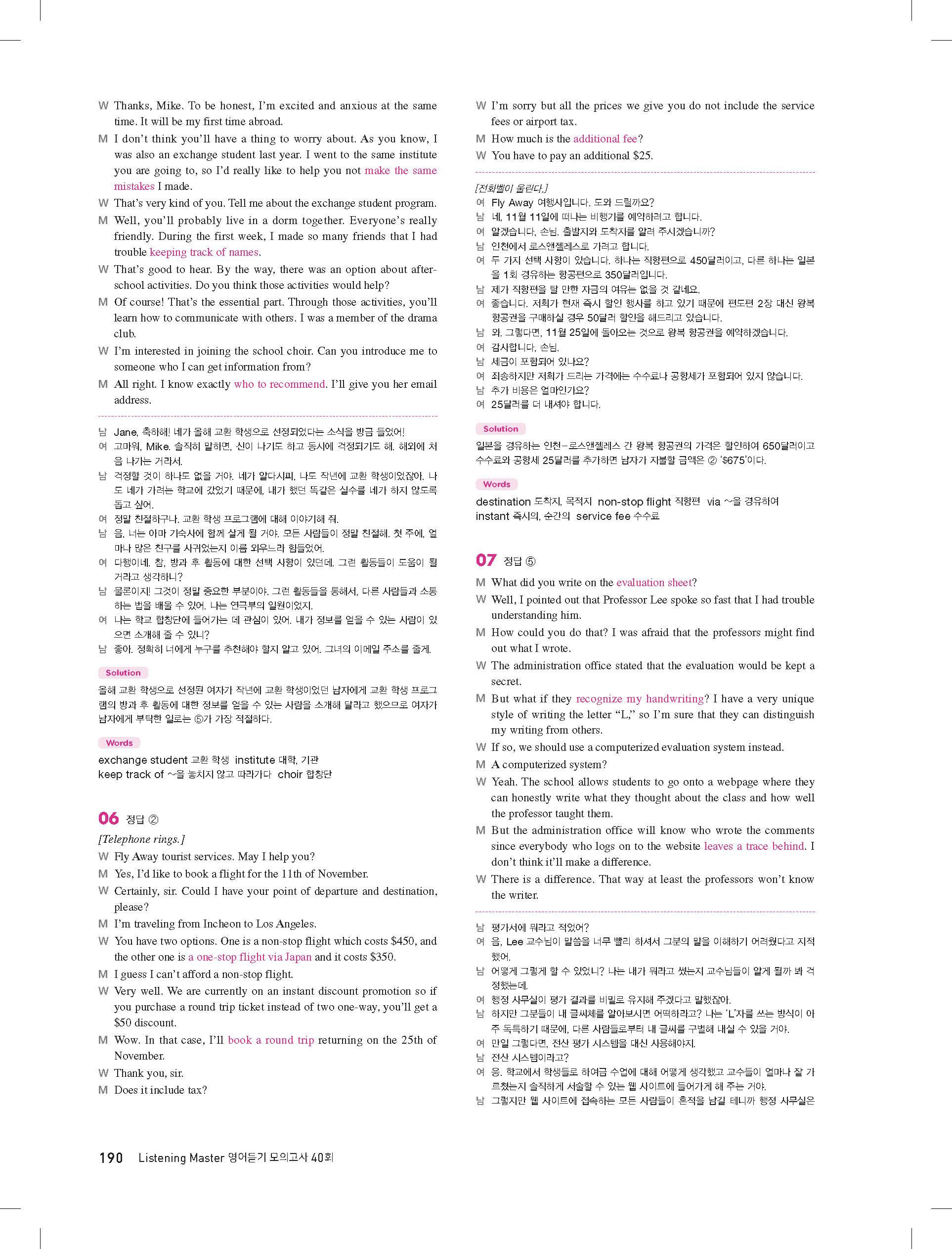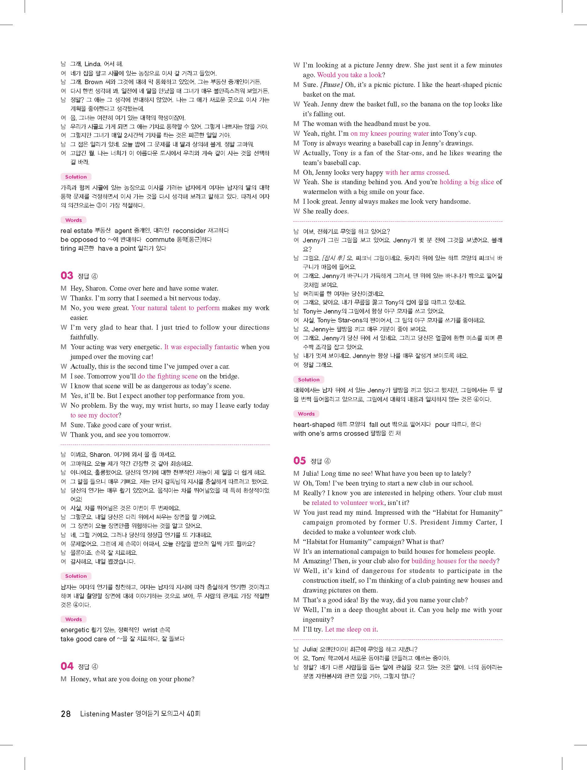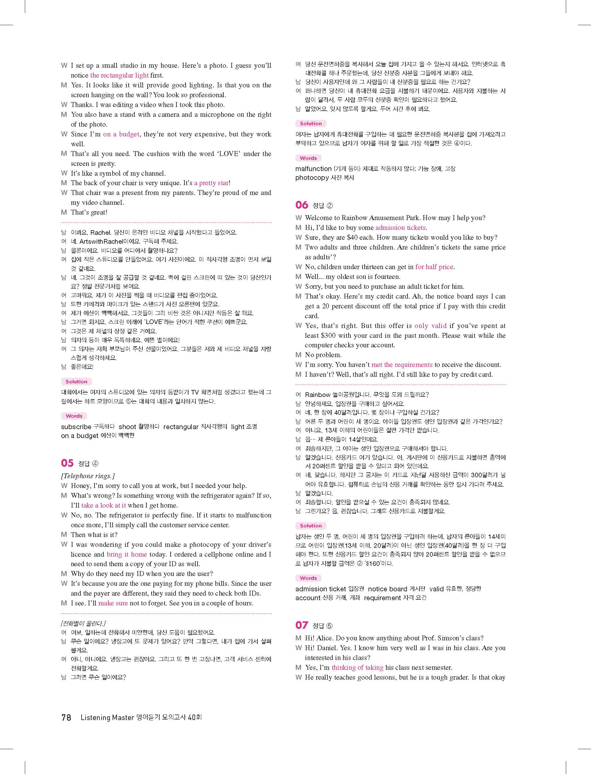 리스닝마스터 영어듣기 모의고사 40회 이투스 답지 사진답지 빠른답지 모바일최적화