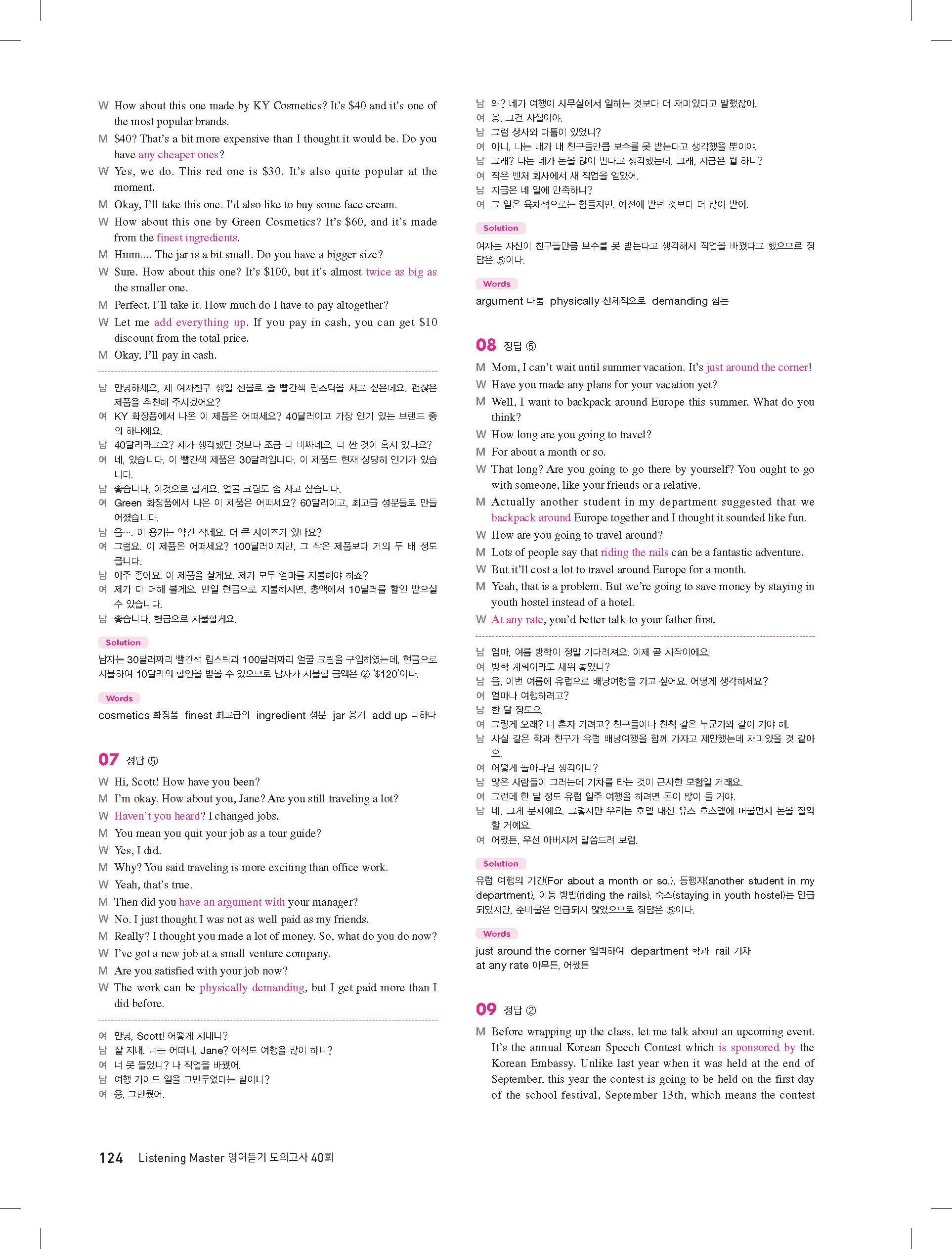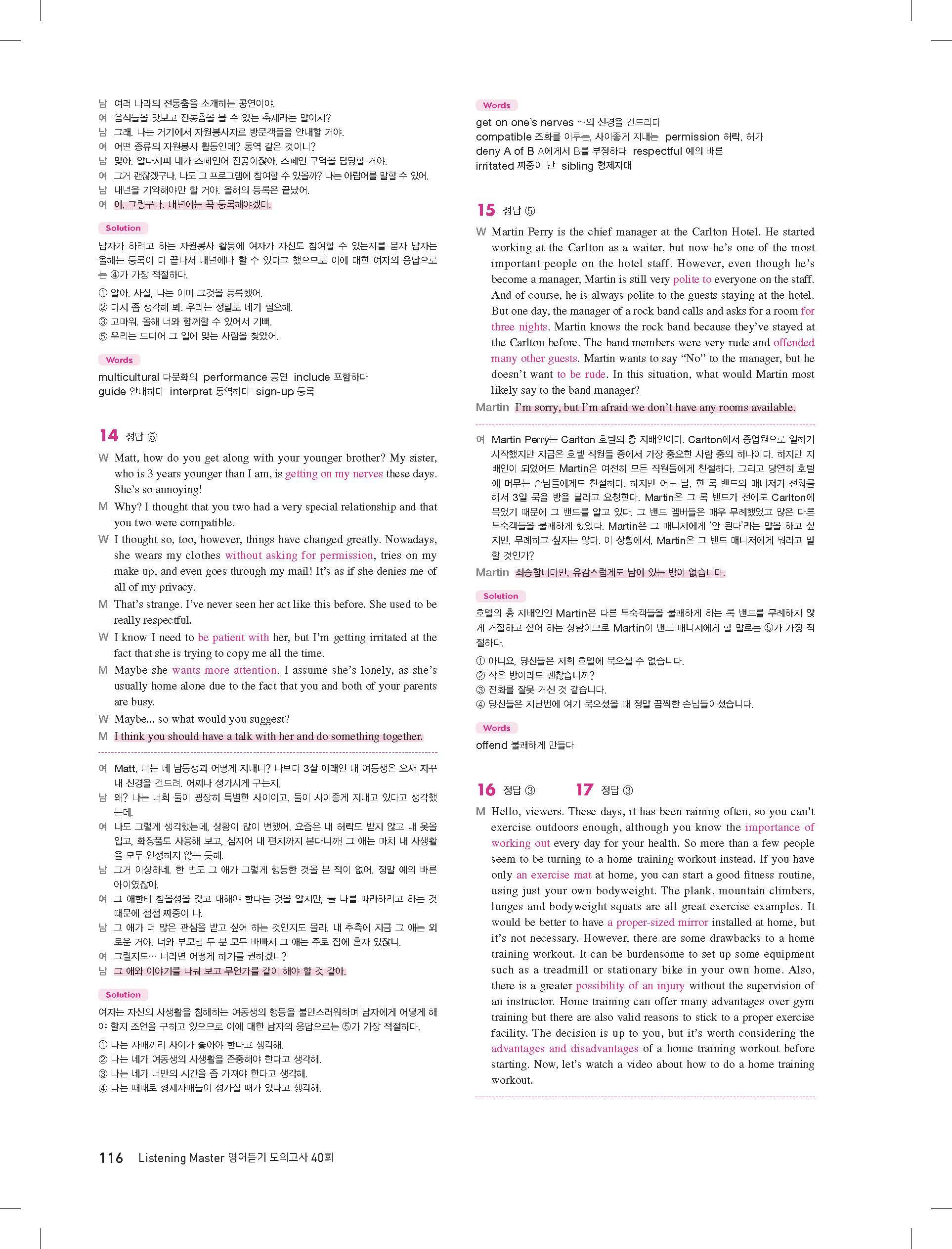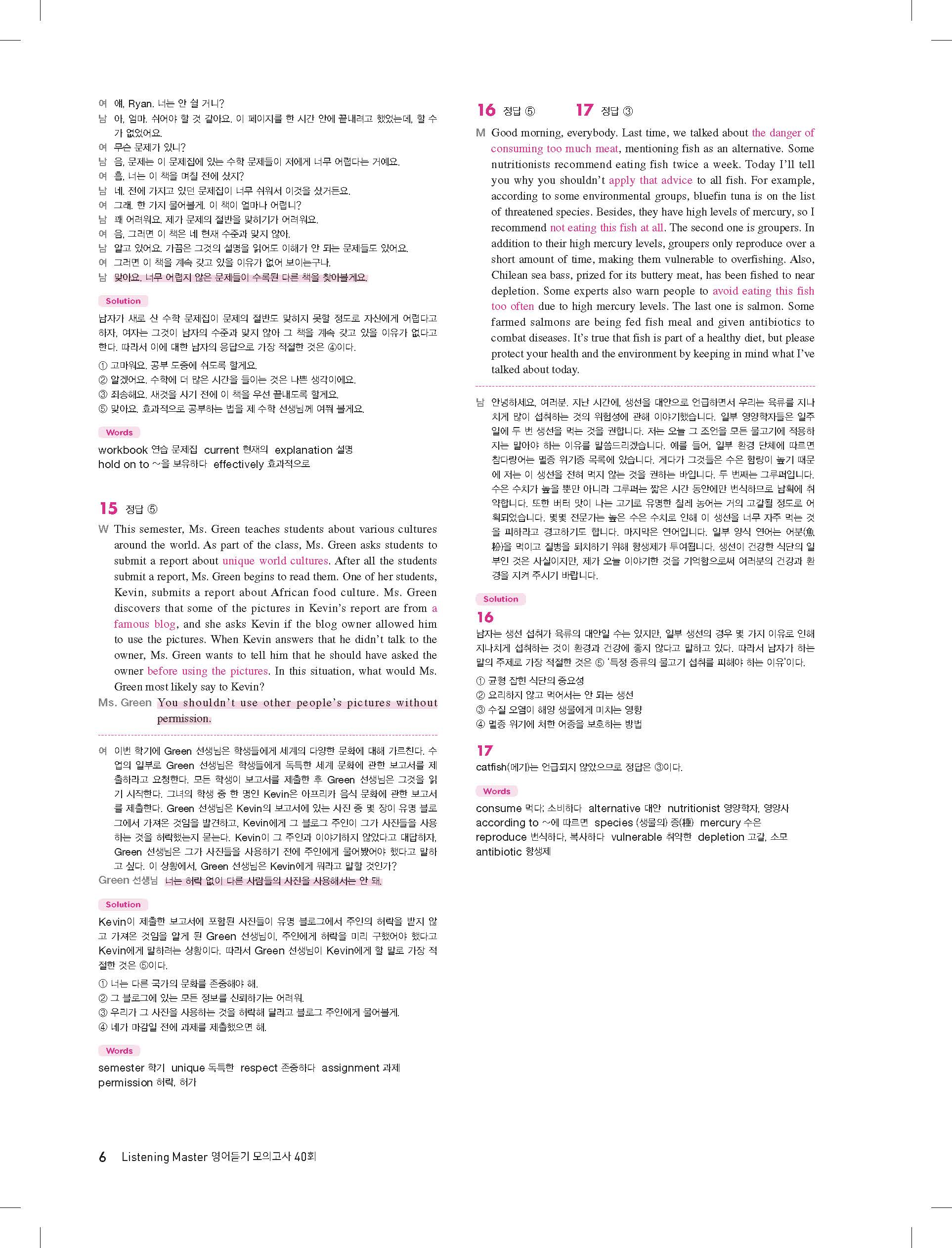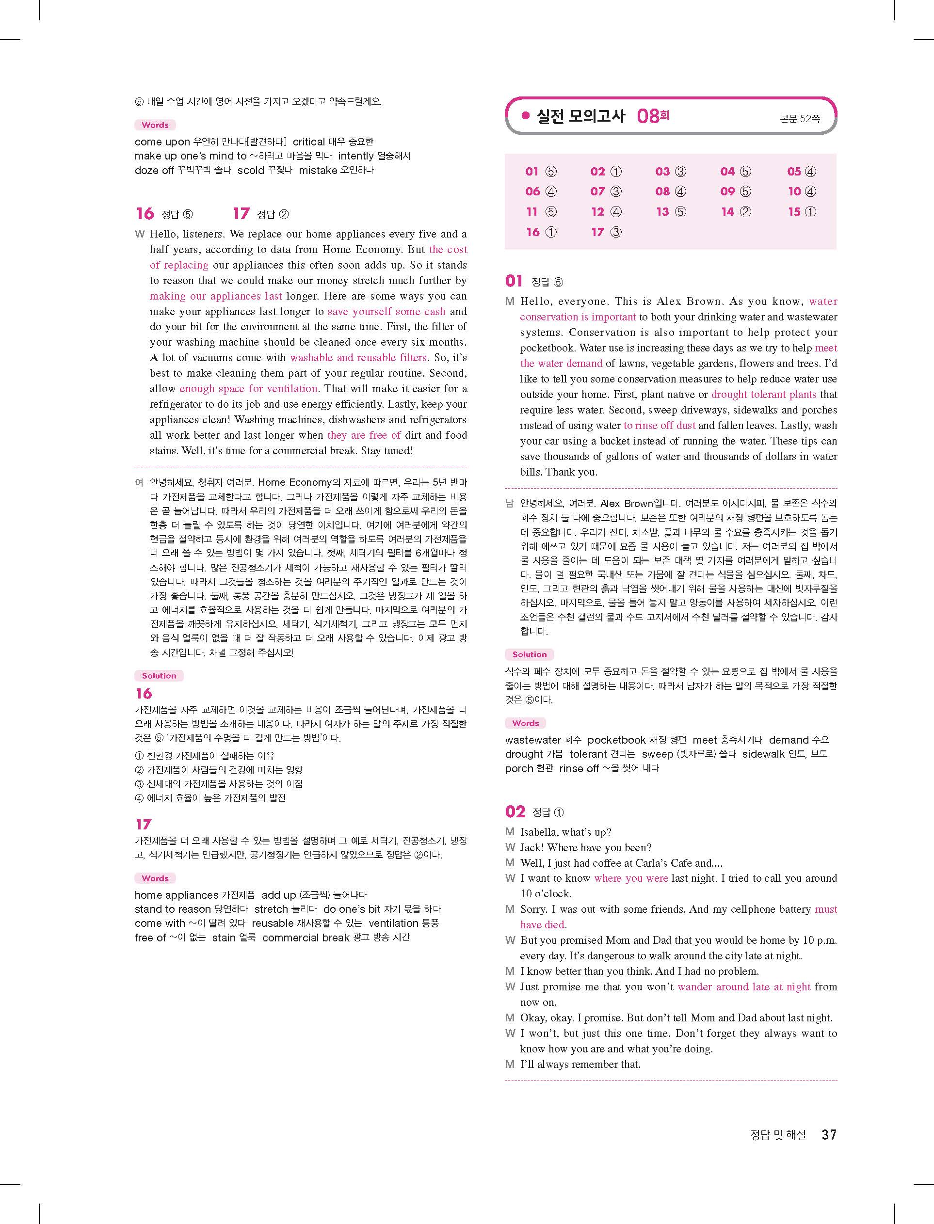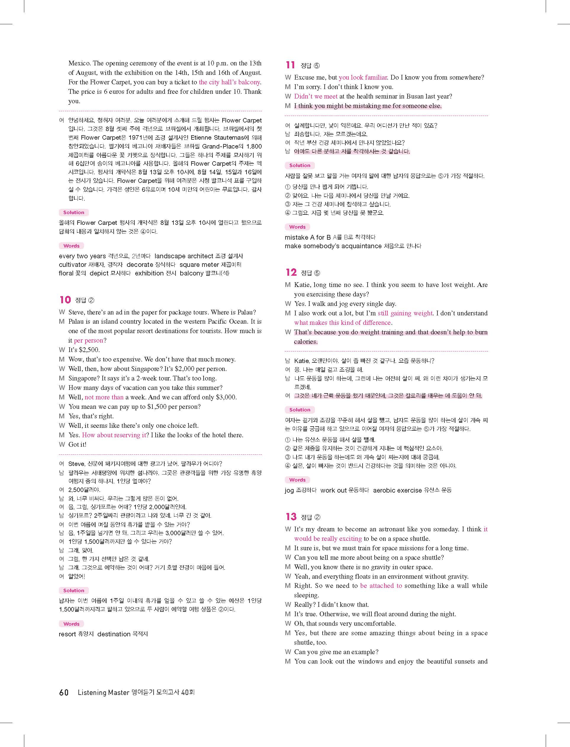 리스닝마스터 영어듣기 모의고사 40회 이투스 답지 사진답지 빠른답지 모바일최적화