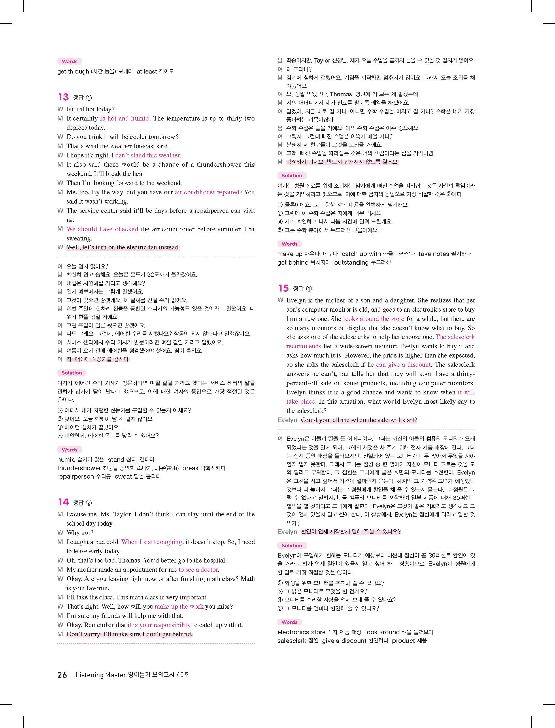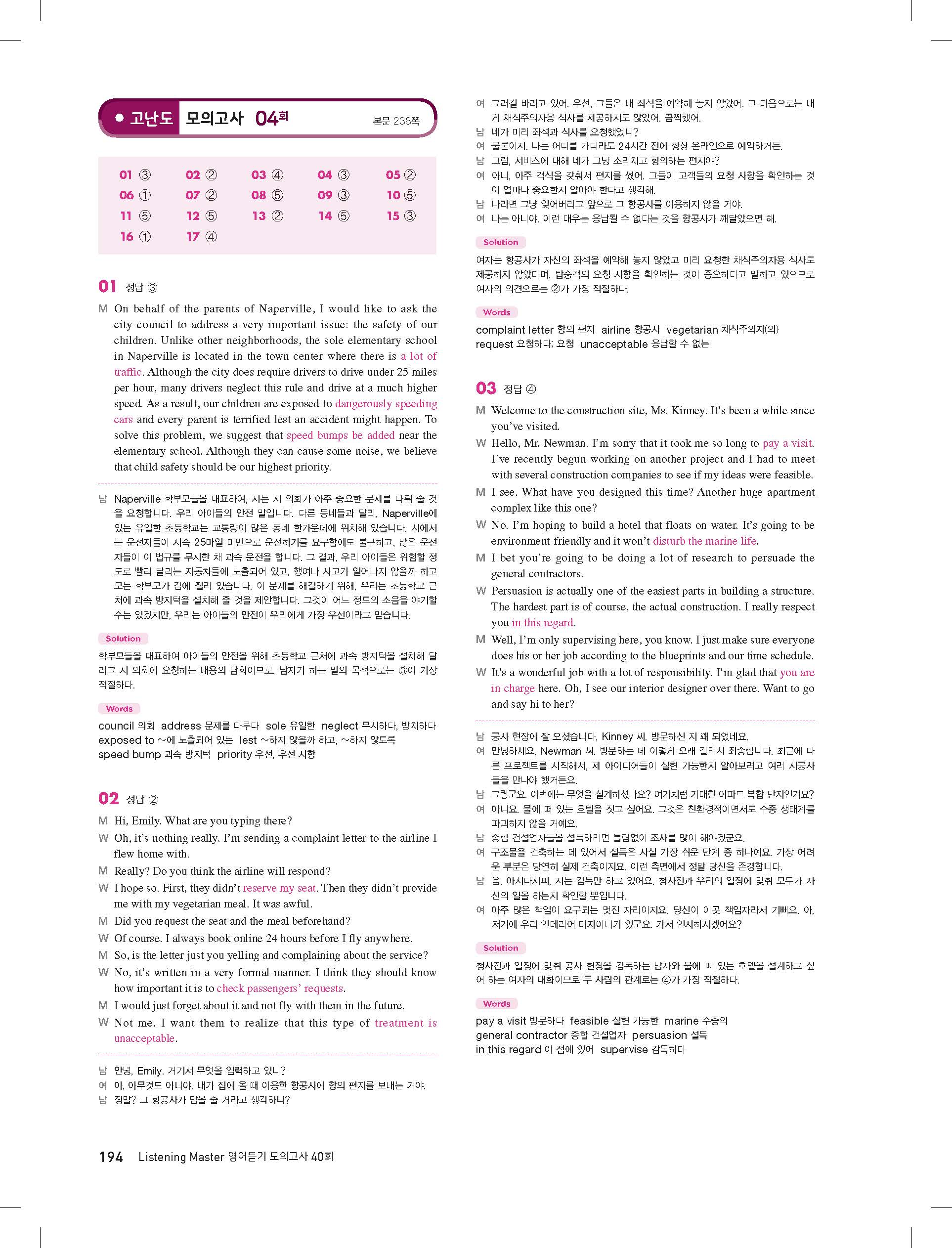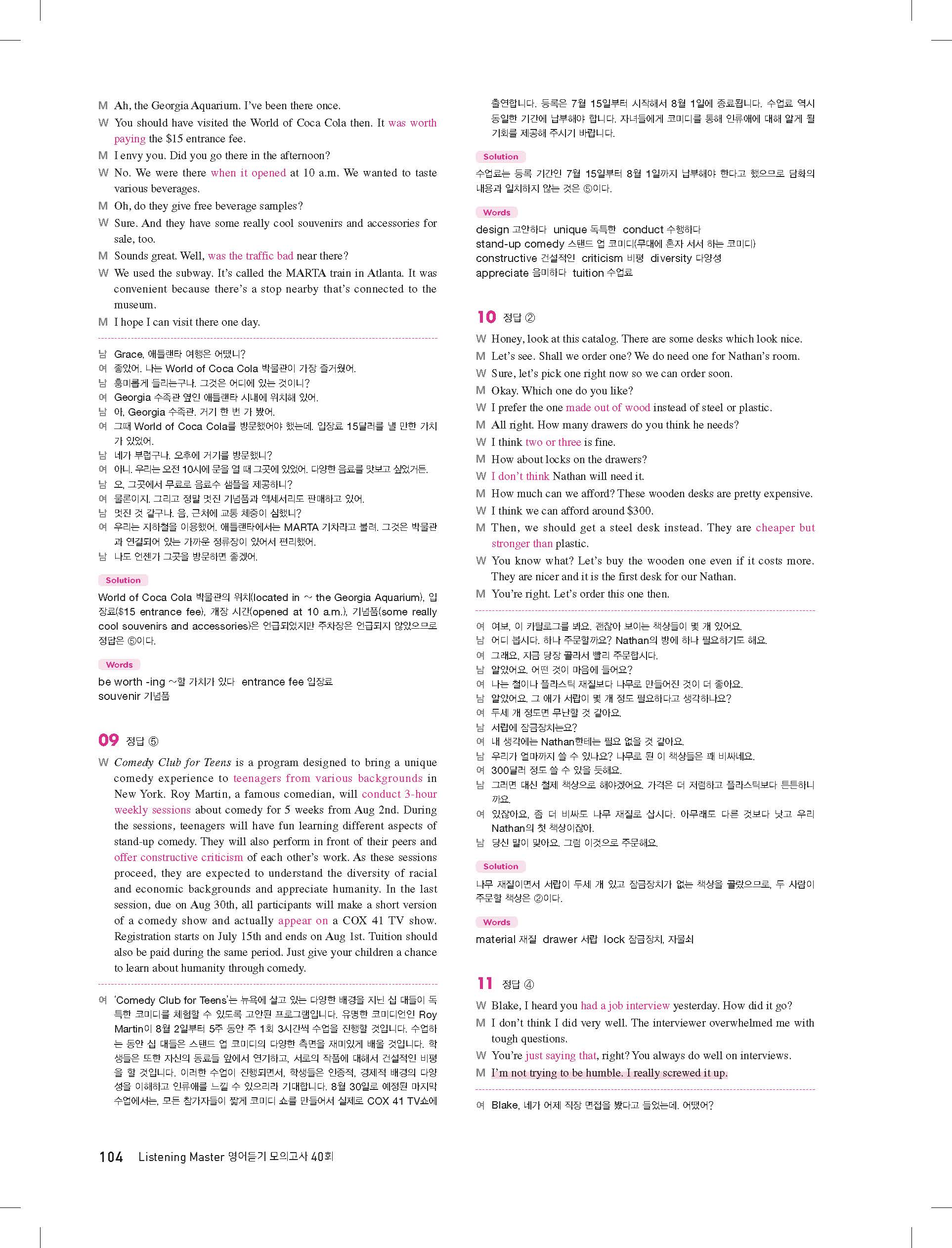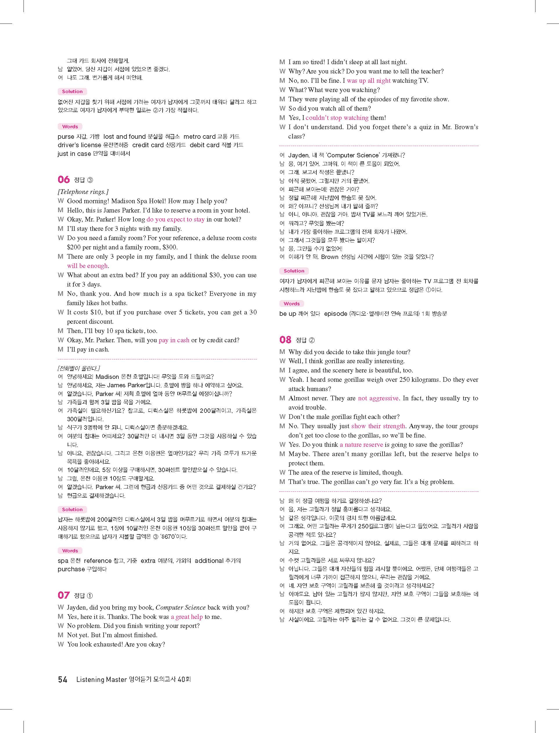 리스닝마스터 영어듣기 모의고사 40회 이투스 답지 사진답지 빠른답지 모바일최적화