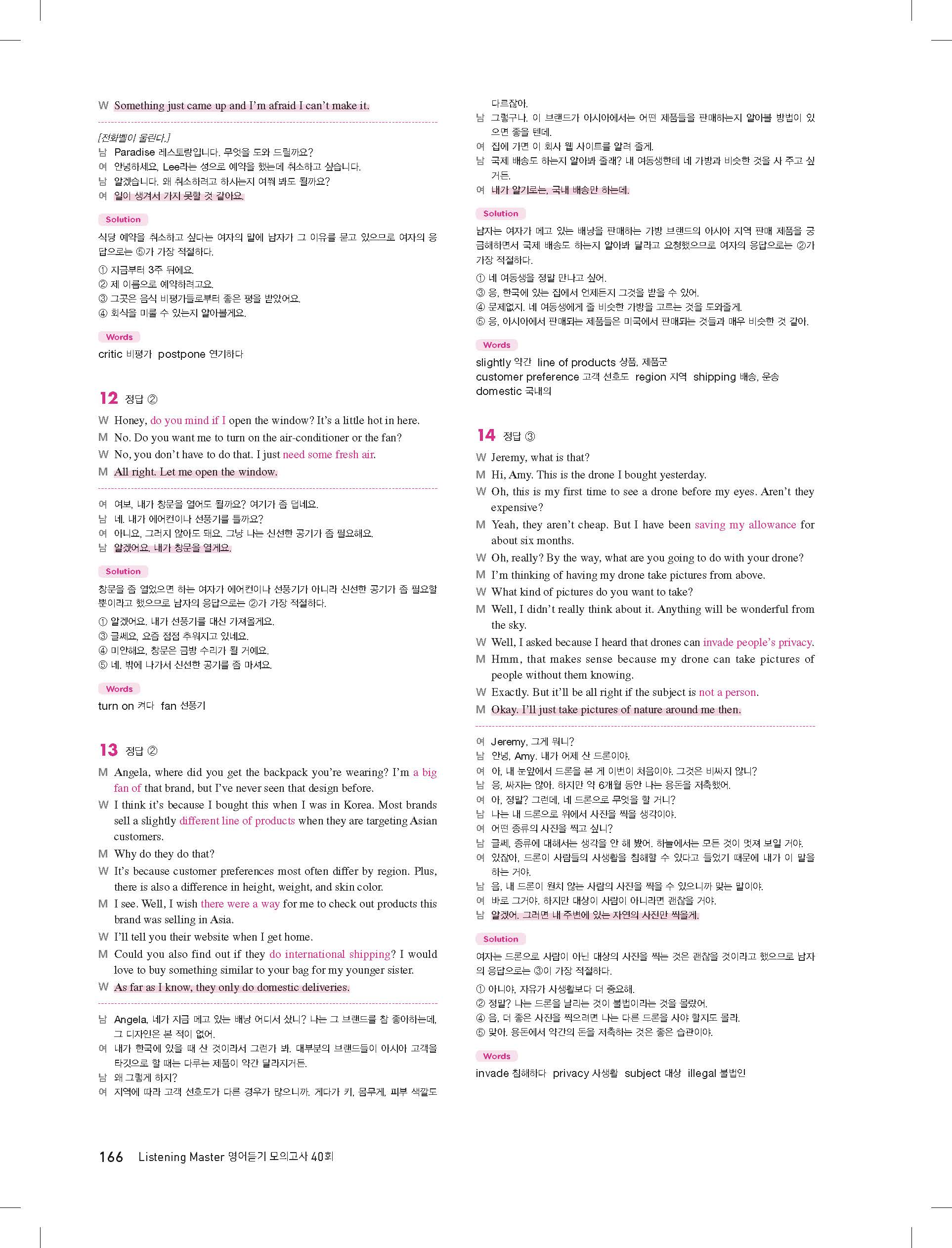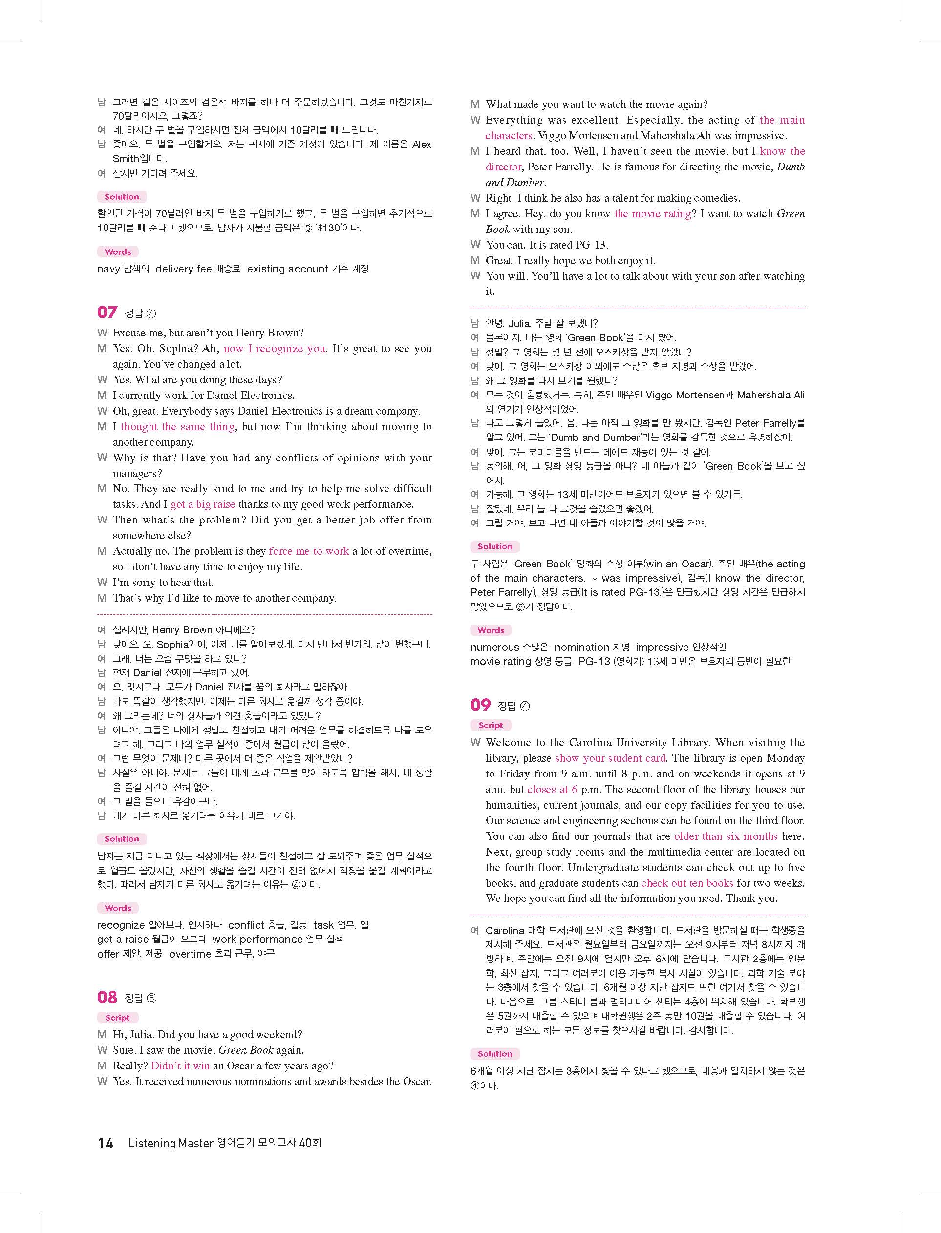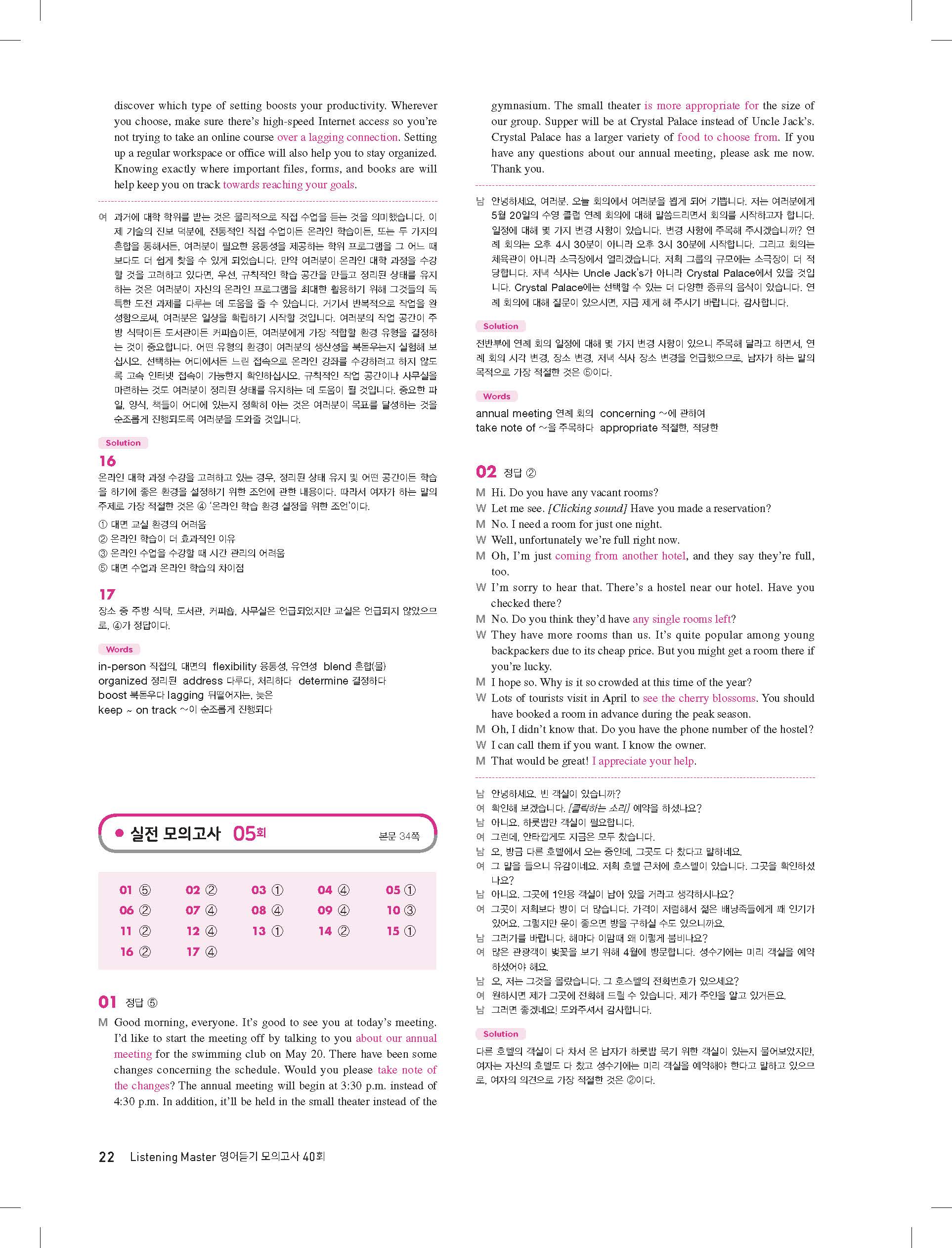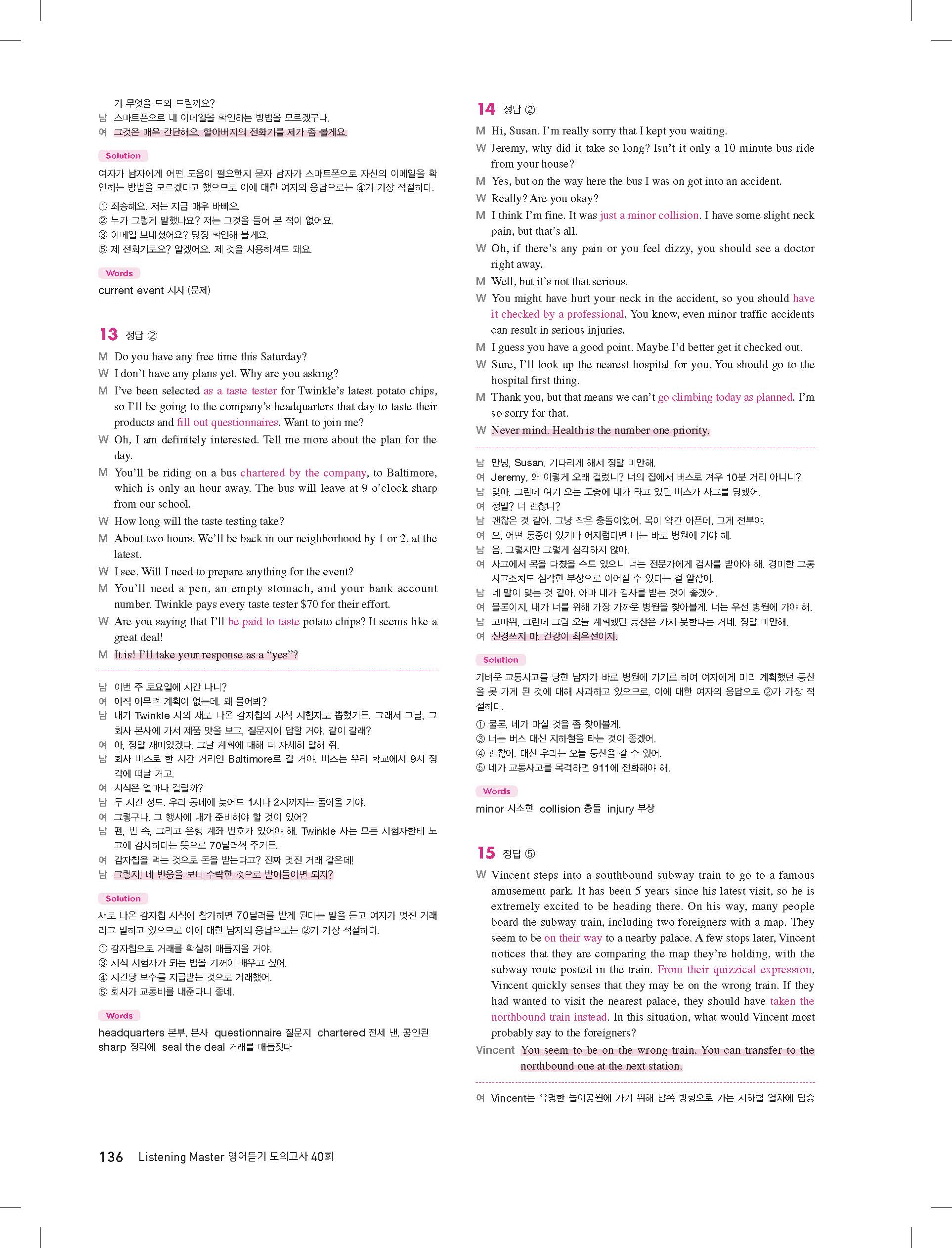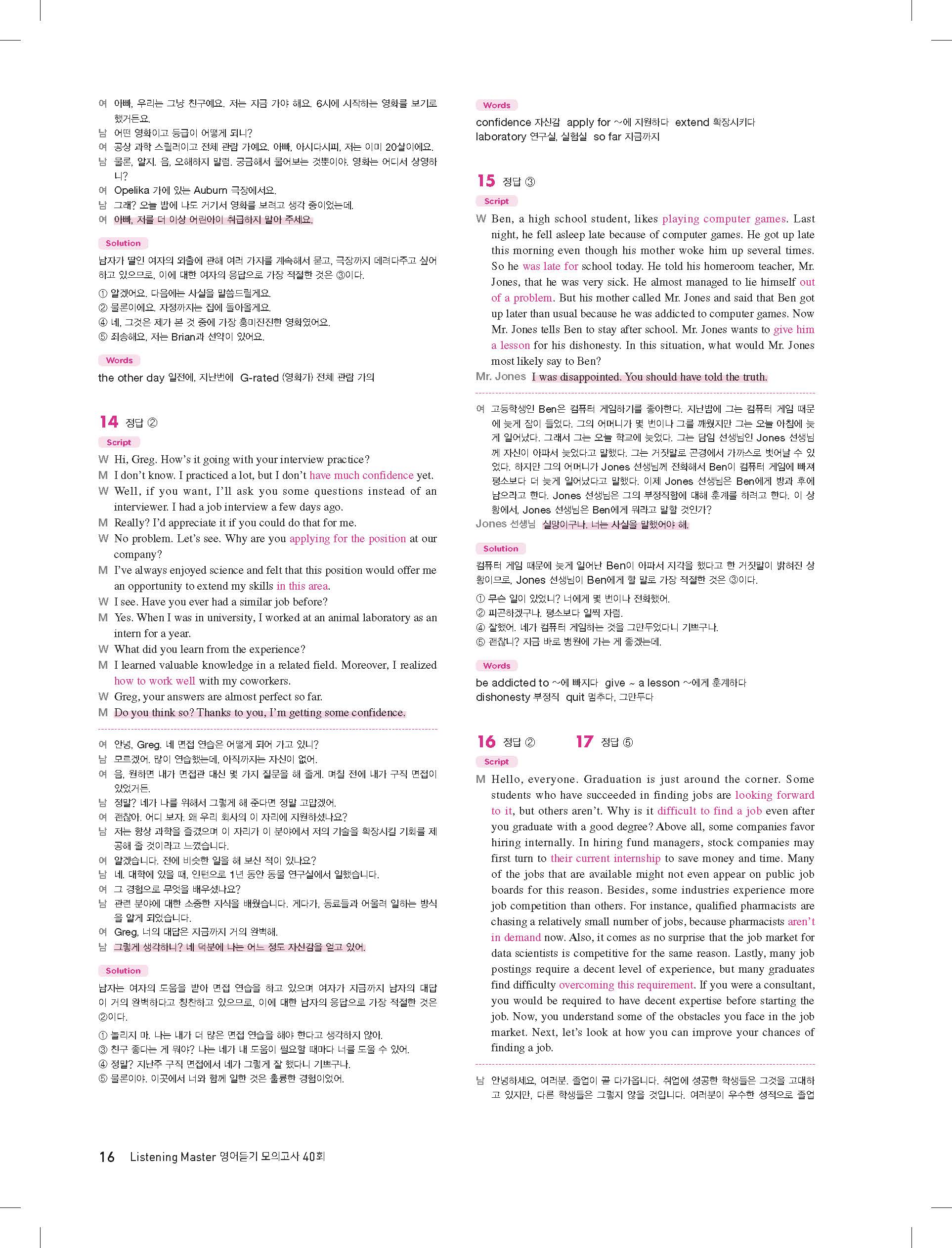 리스닝마스터 영어듣기 모의고사 40회 이투스 답지 사진답지 빠른답지 모바일최적화