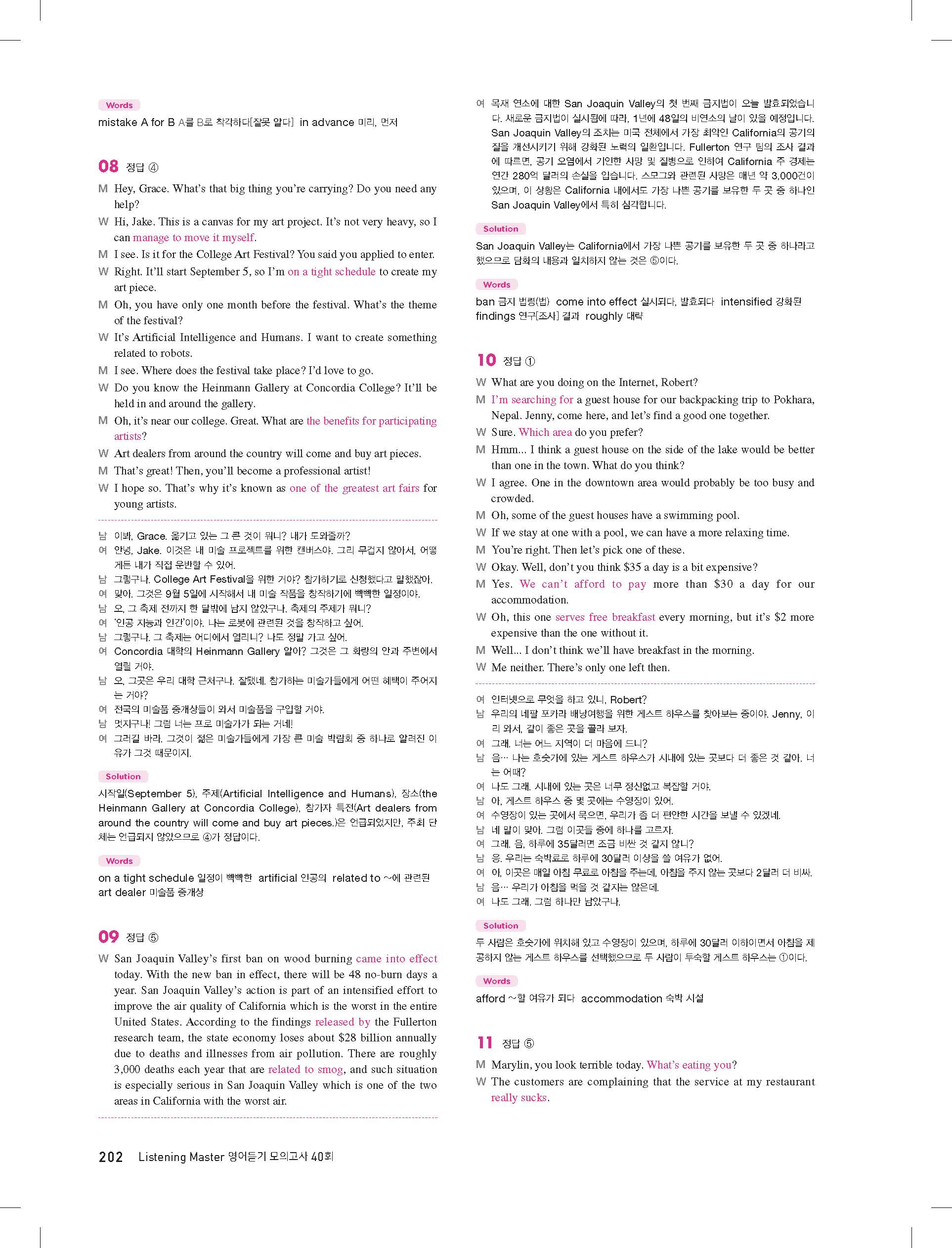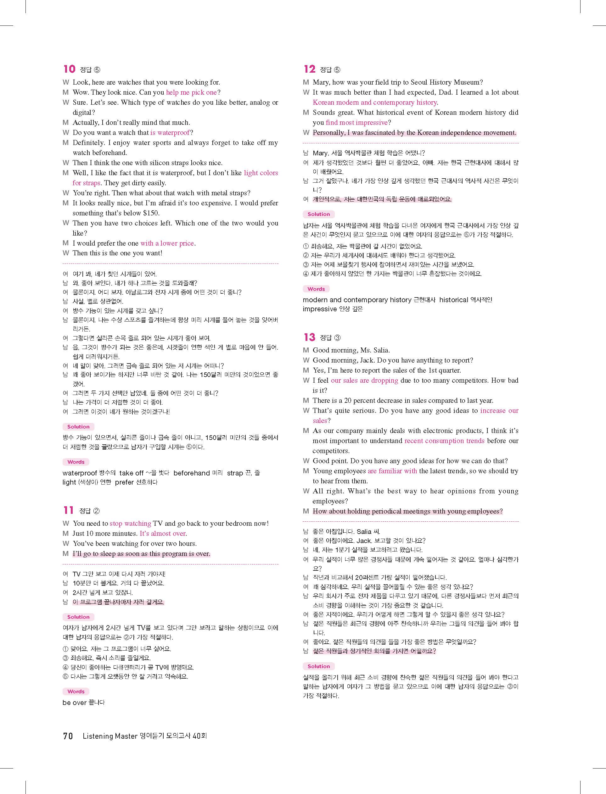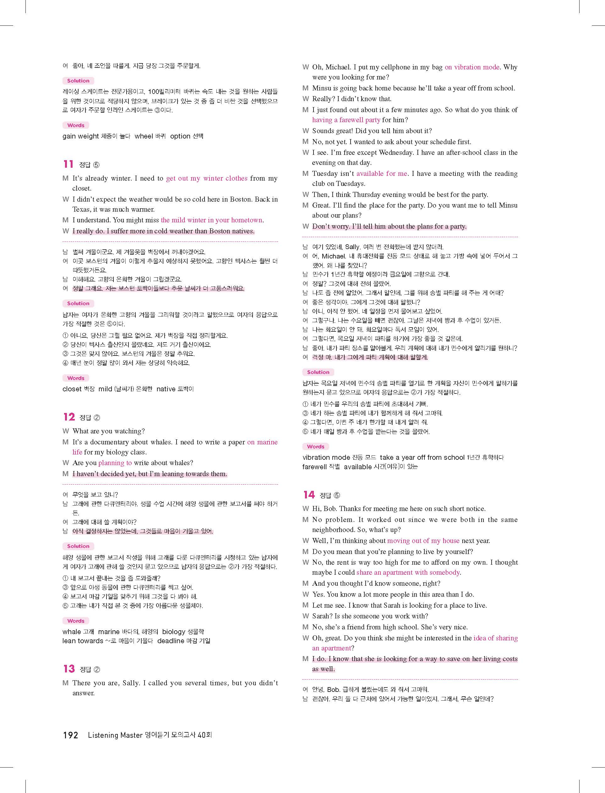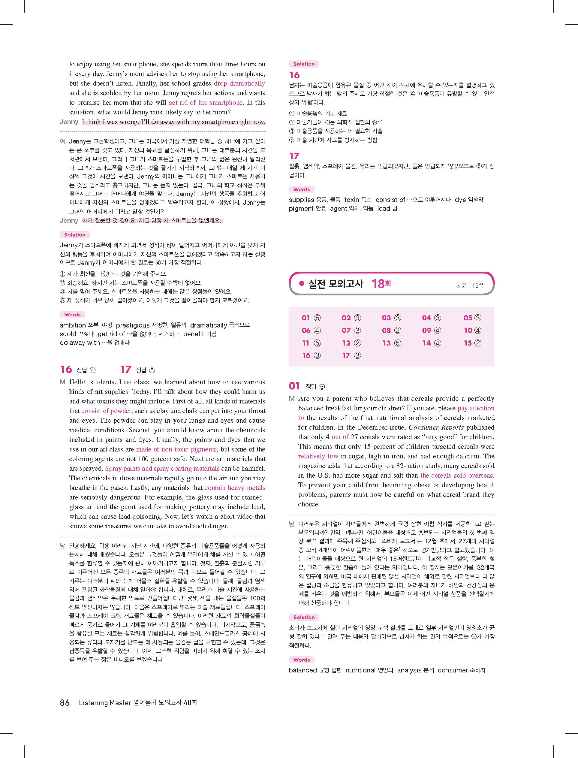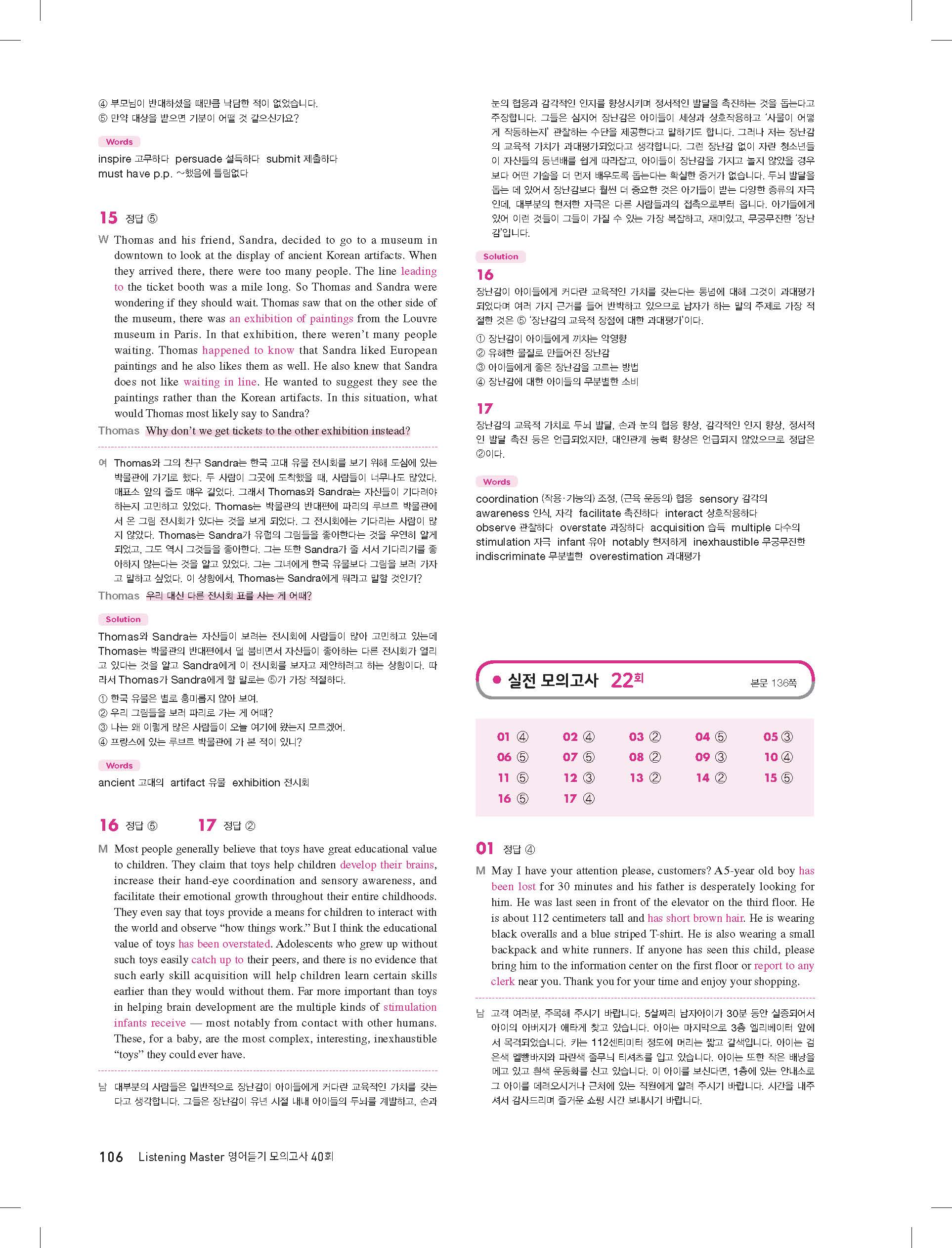 리스닝마스터 영어듣기 모의고사 40회 이투스 답지 사진답지 빠른답지 모바일최적화