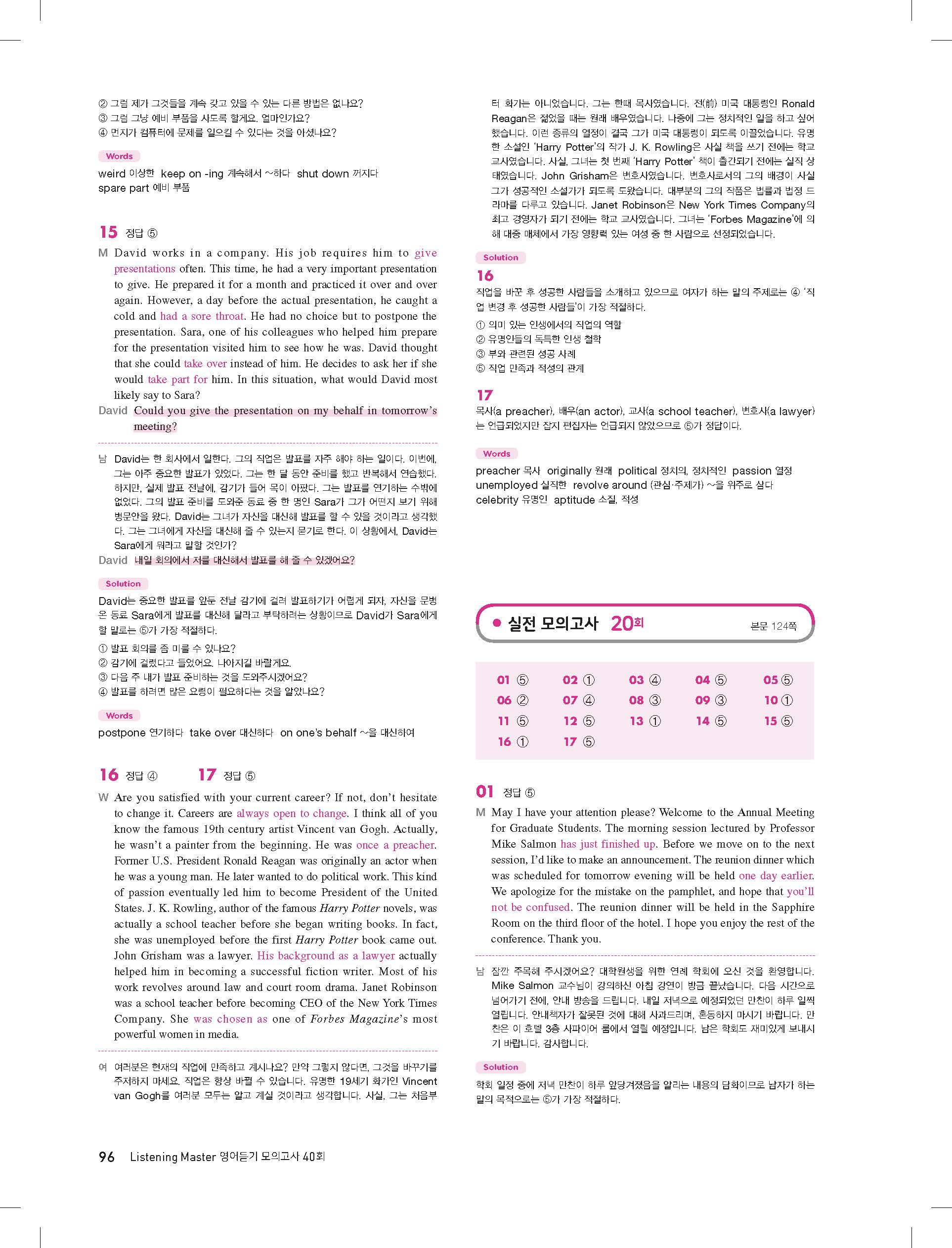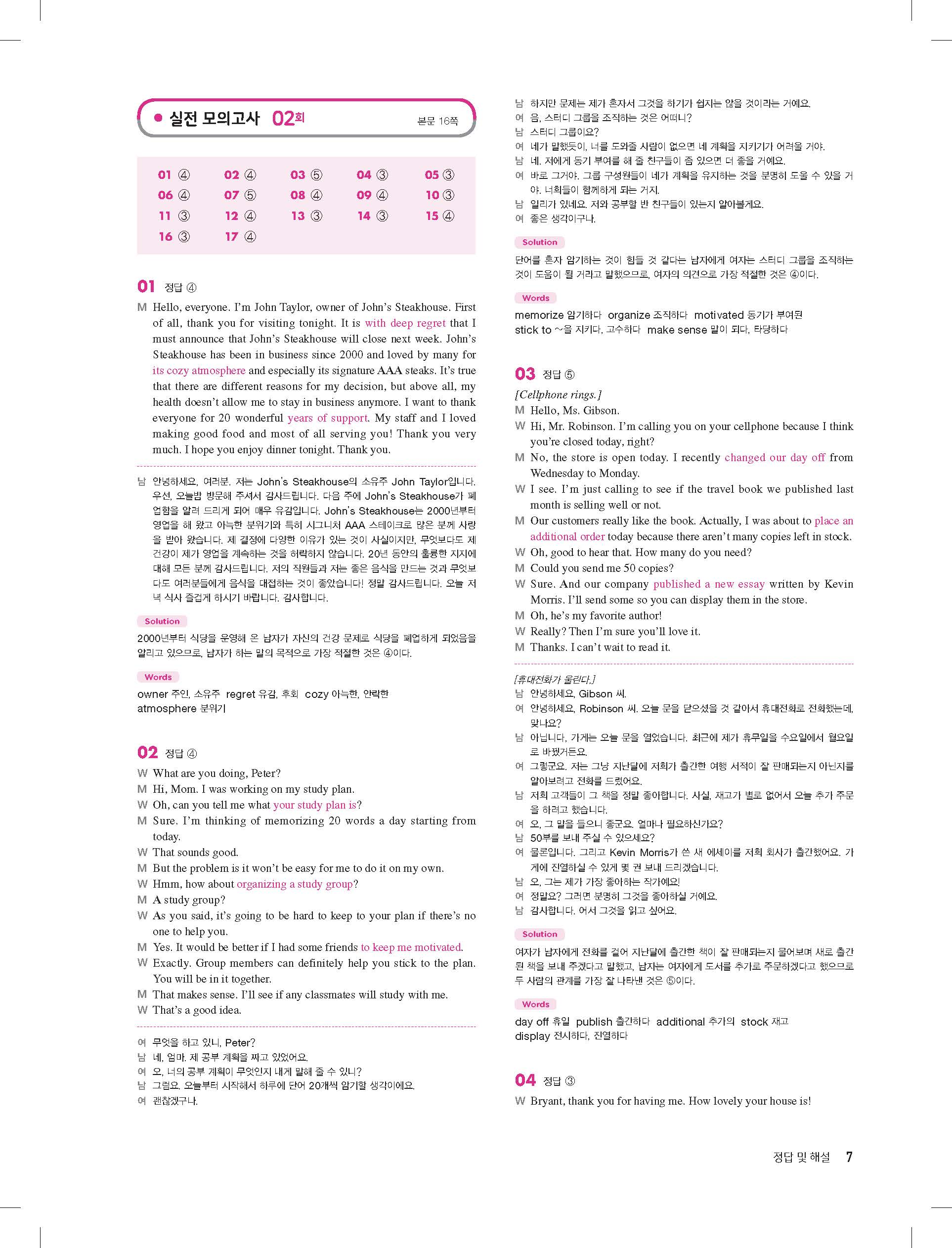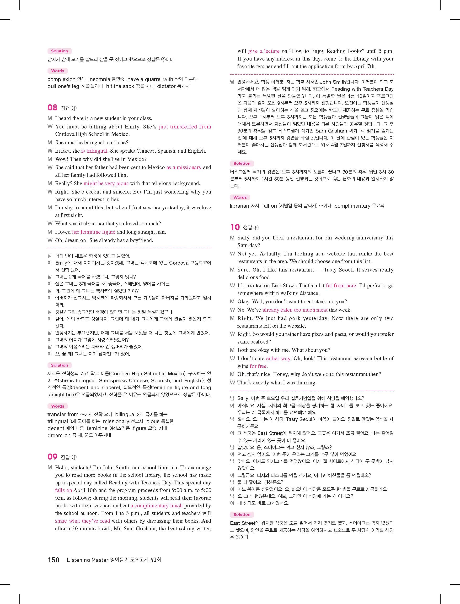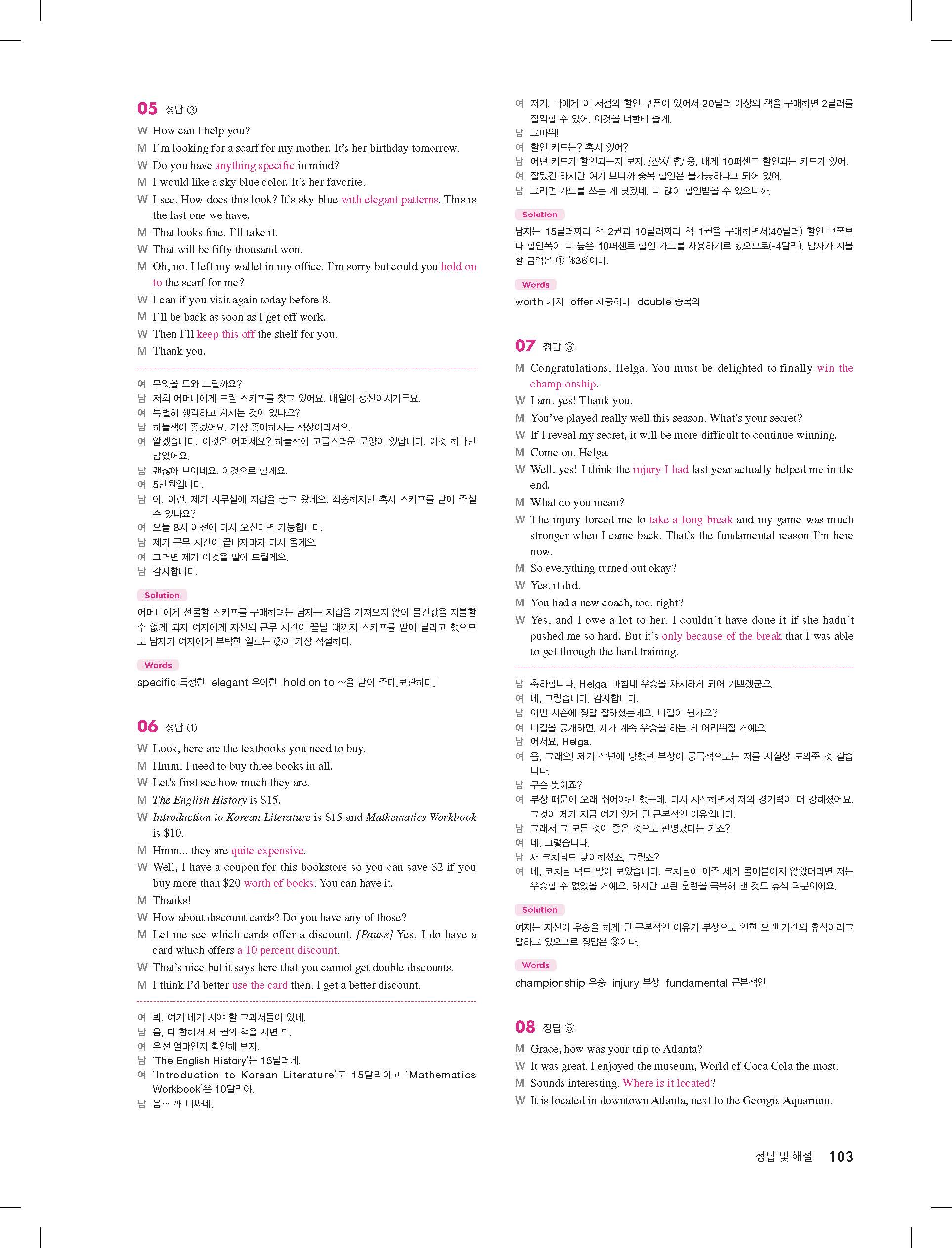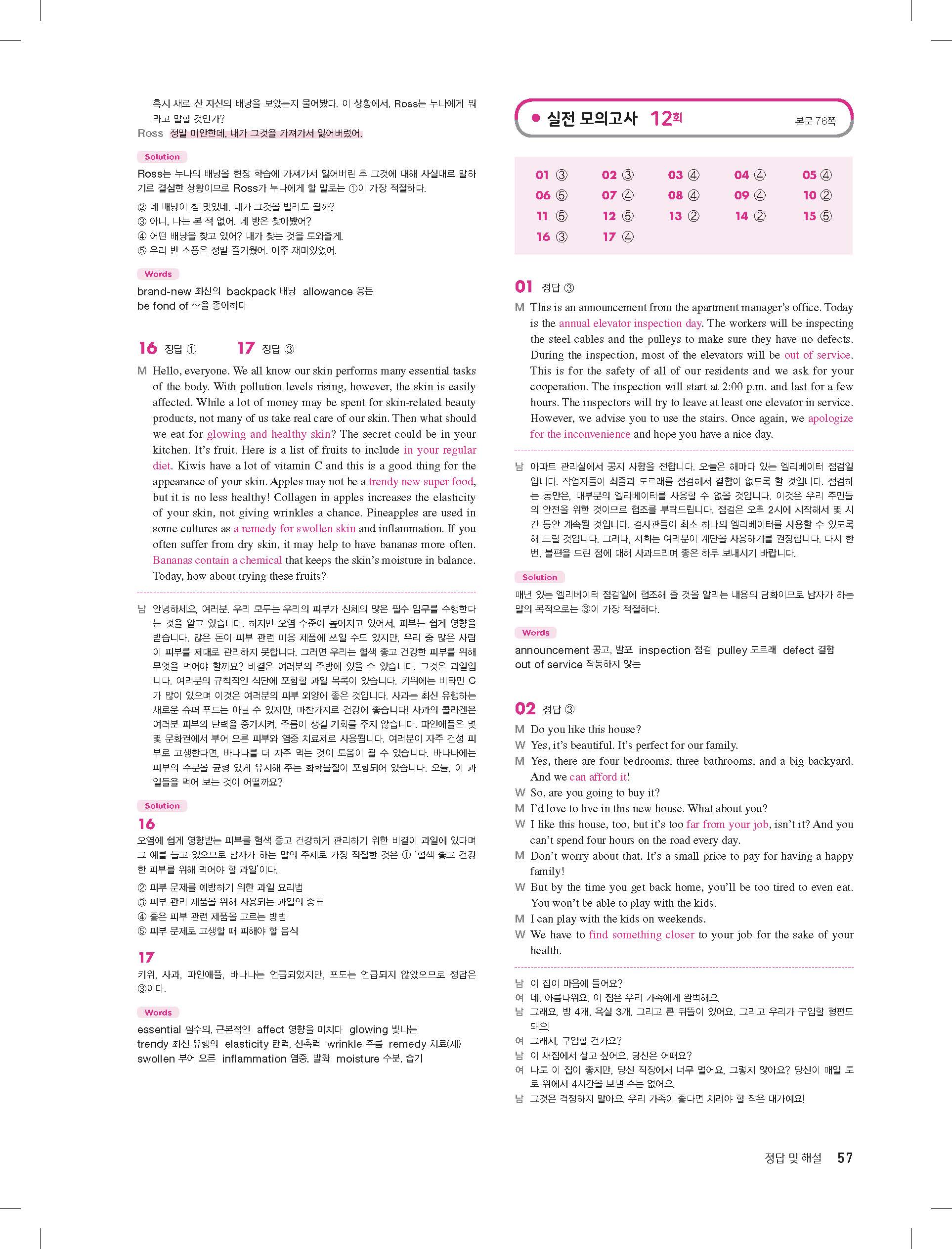 리스닝마스터 영어듣기 모의고사 40회 이투스 답지 사진답지 빠른답지 모바일최적화
