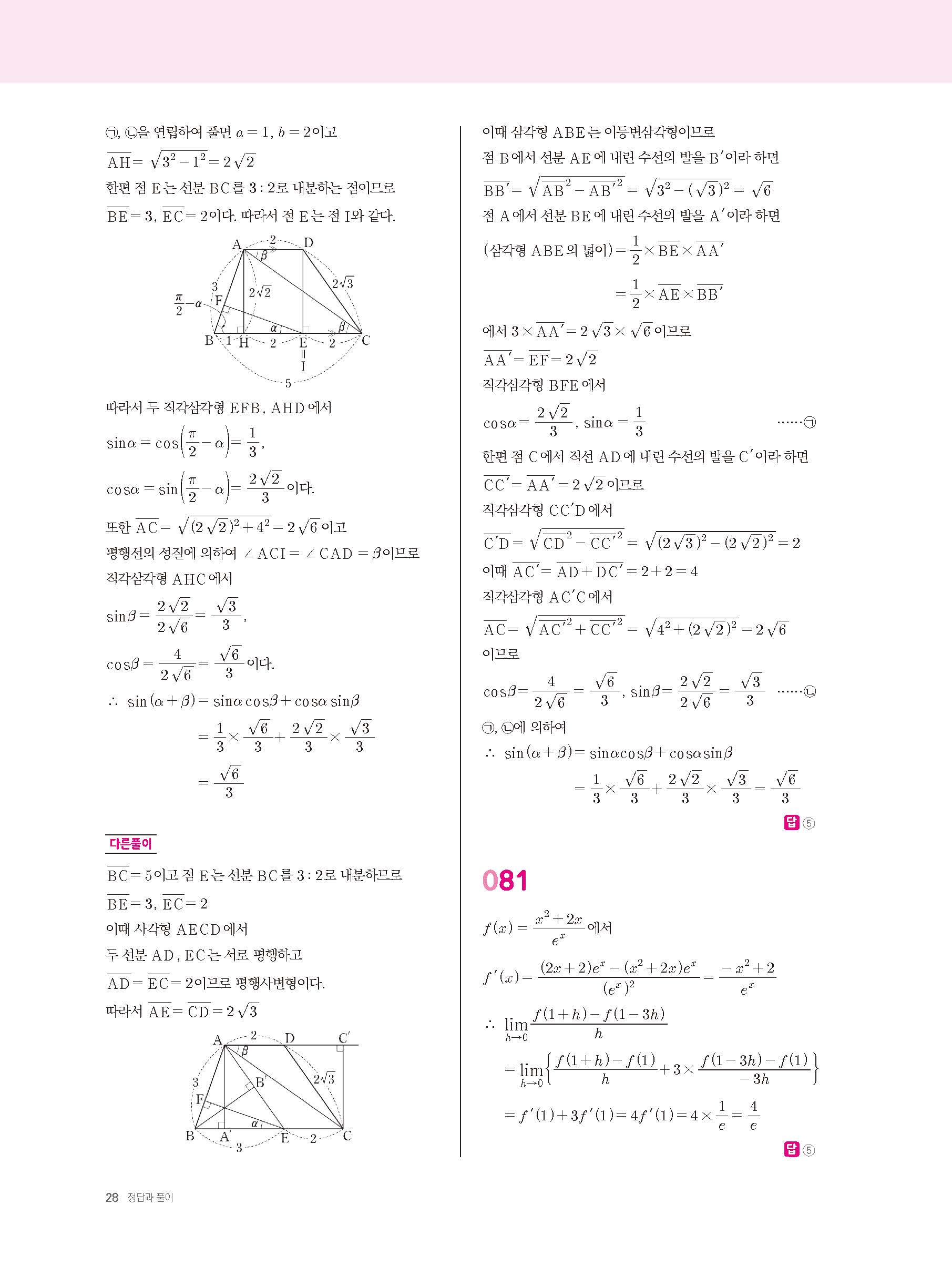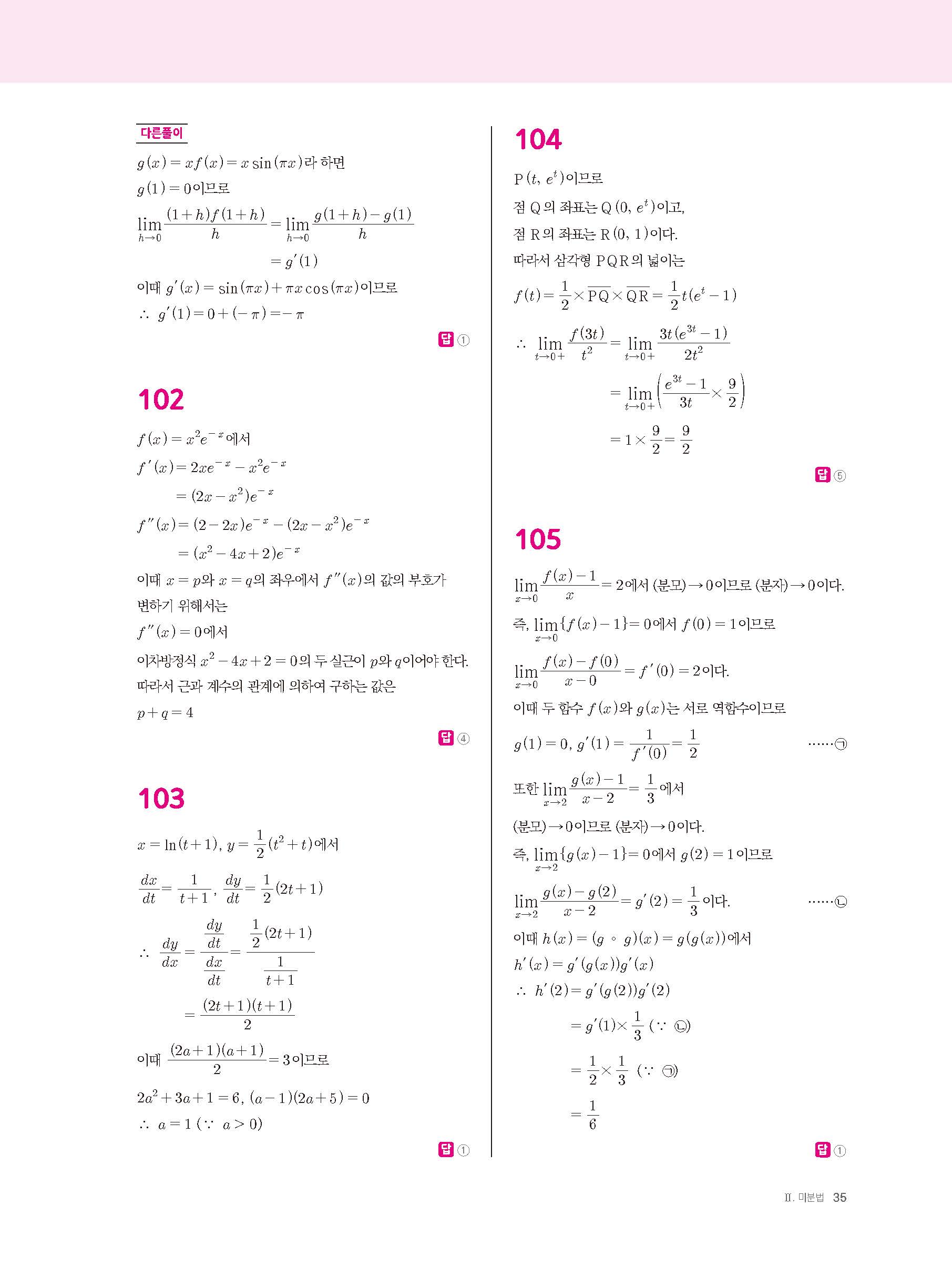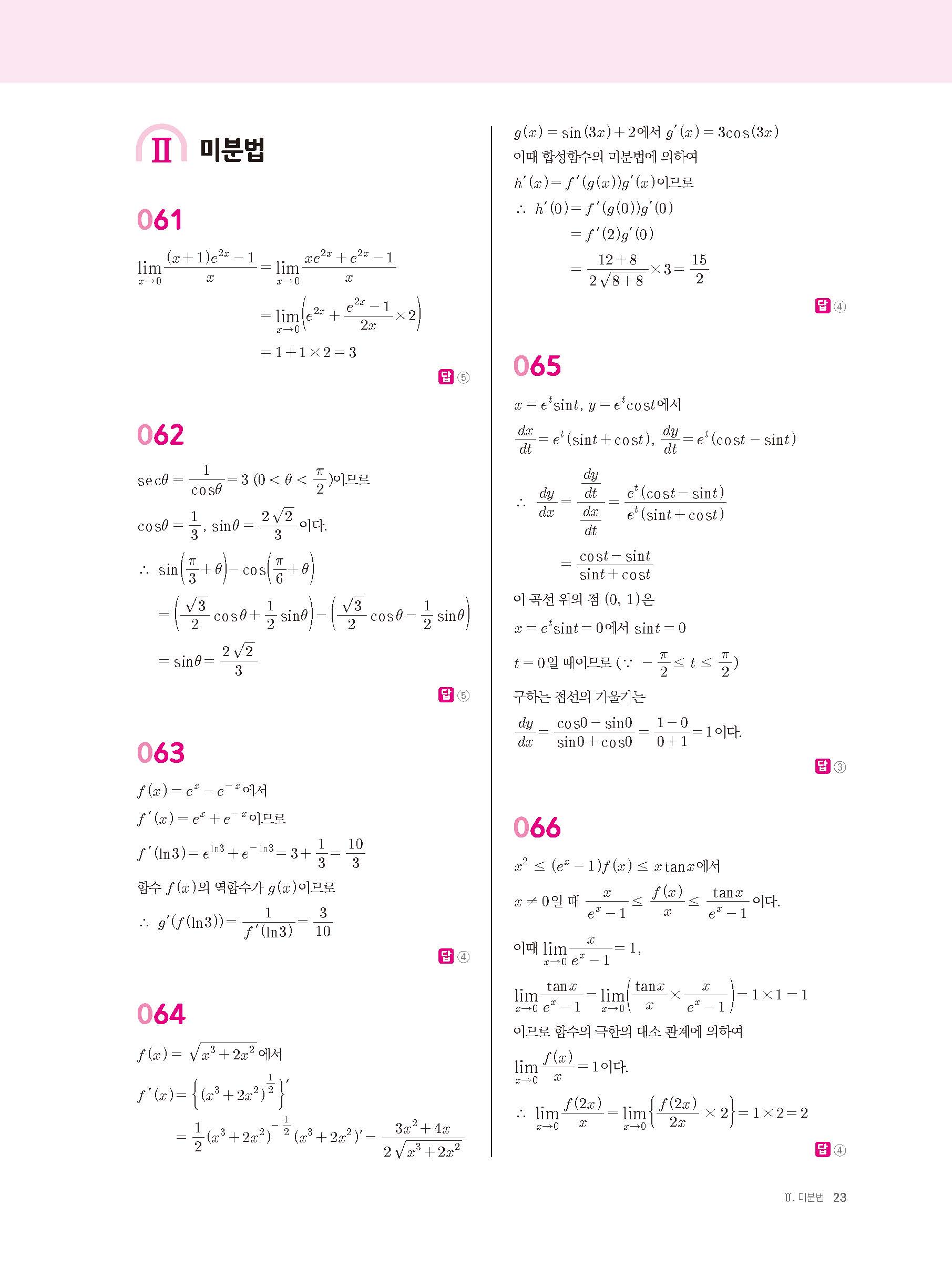이투스북 new 어삼쉬사 미적분 답지 사진답지 빠른답지 모바일최적화