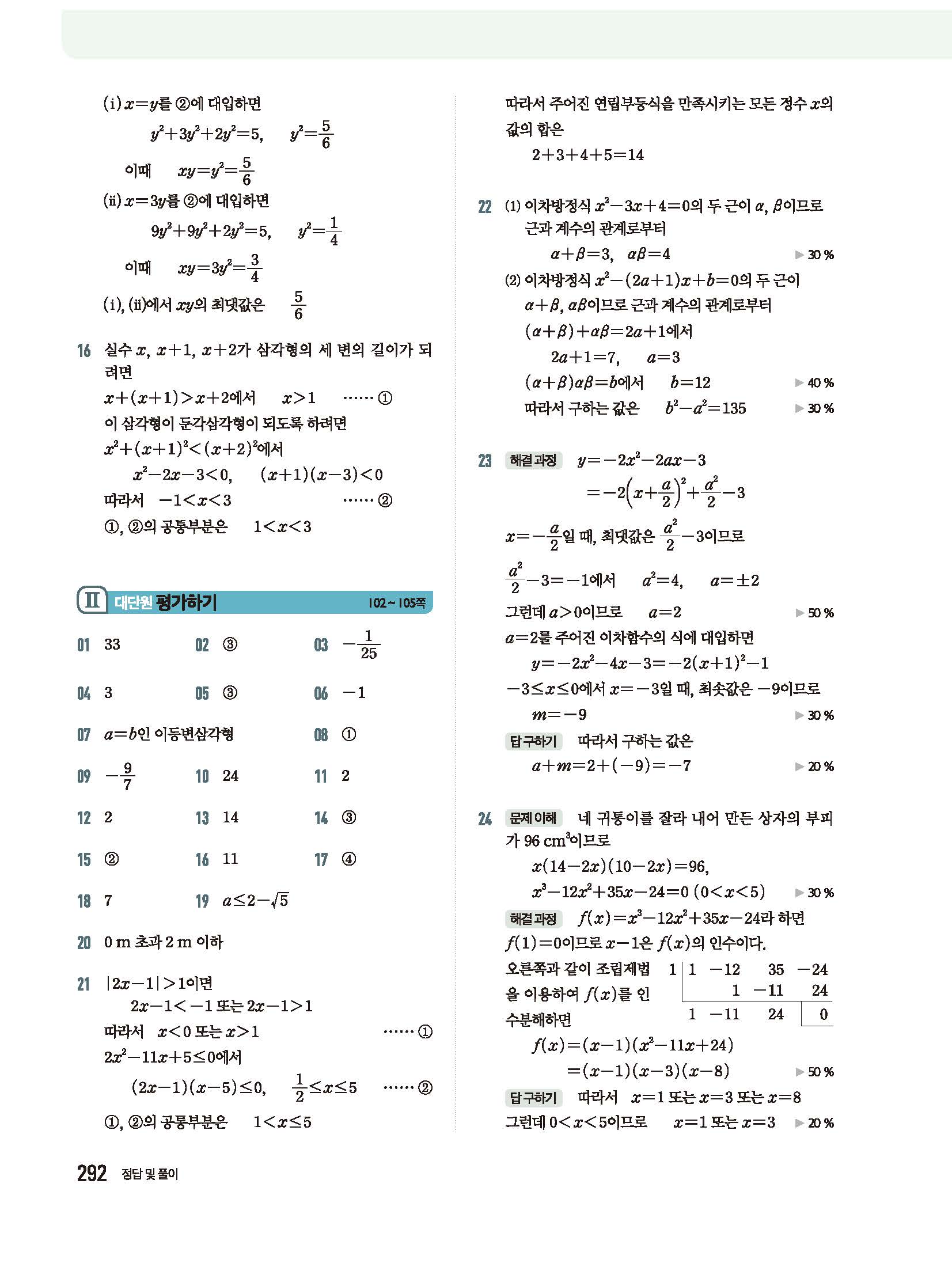답지는 각 문제에 대한 상세한 풀이 과정을 포함하고 있어, 학생들이 문제를 쉽게 이해하고 해결할 수 있습니다. 특히 수학의 기초 개념부터 고난도 문제까지 명확한 해설을 제공합니다. - 오답 정리와 학습 보완