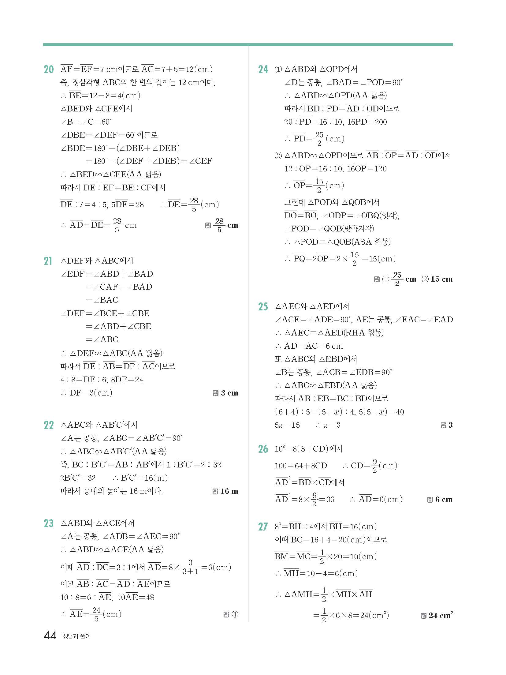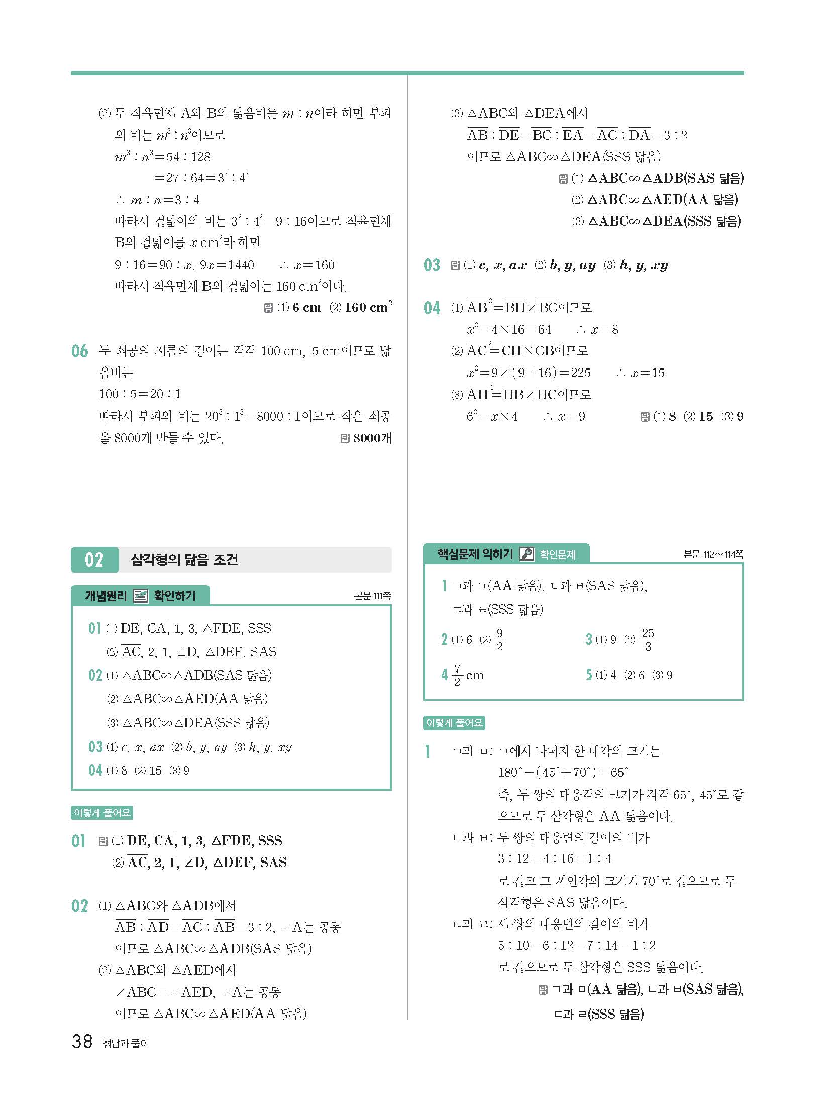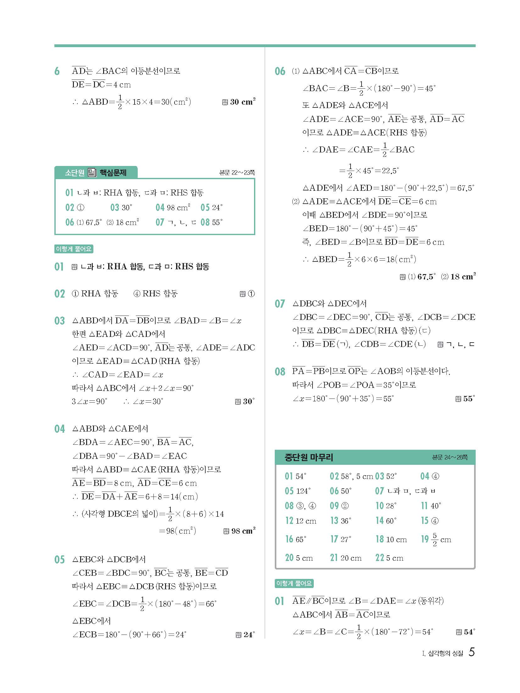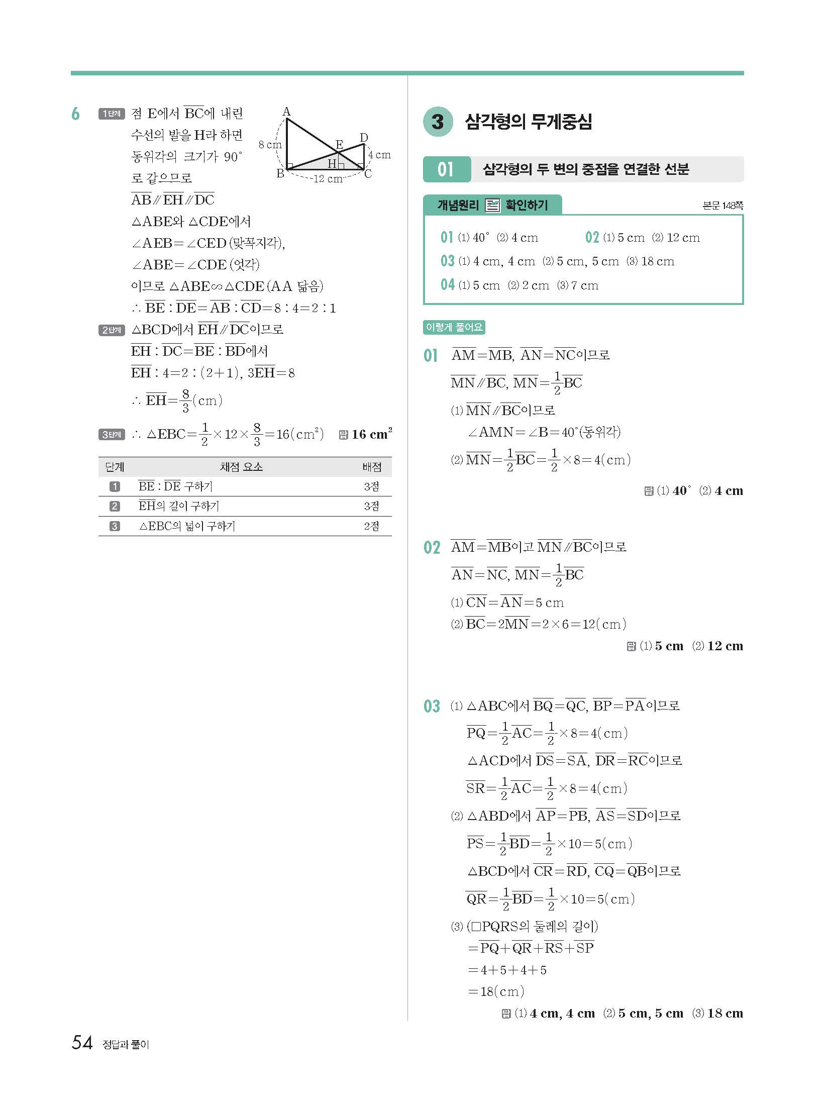 개정 개념원리중등수학 2-2 답지 사진답지 빠른답지 모바일최적화