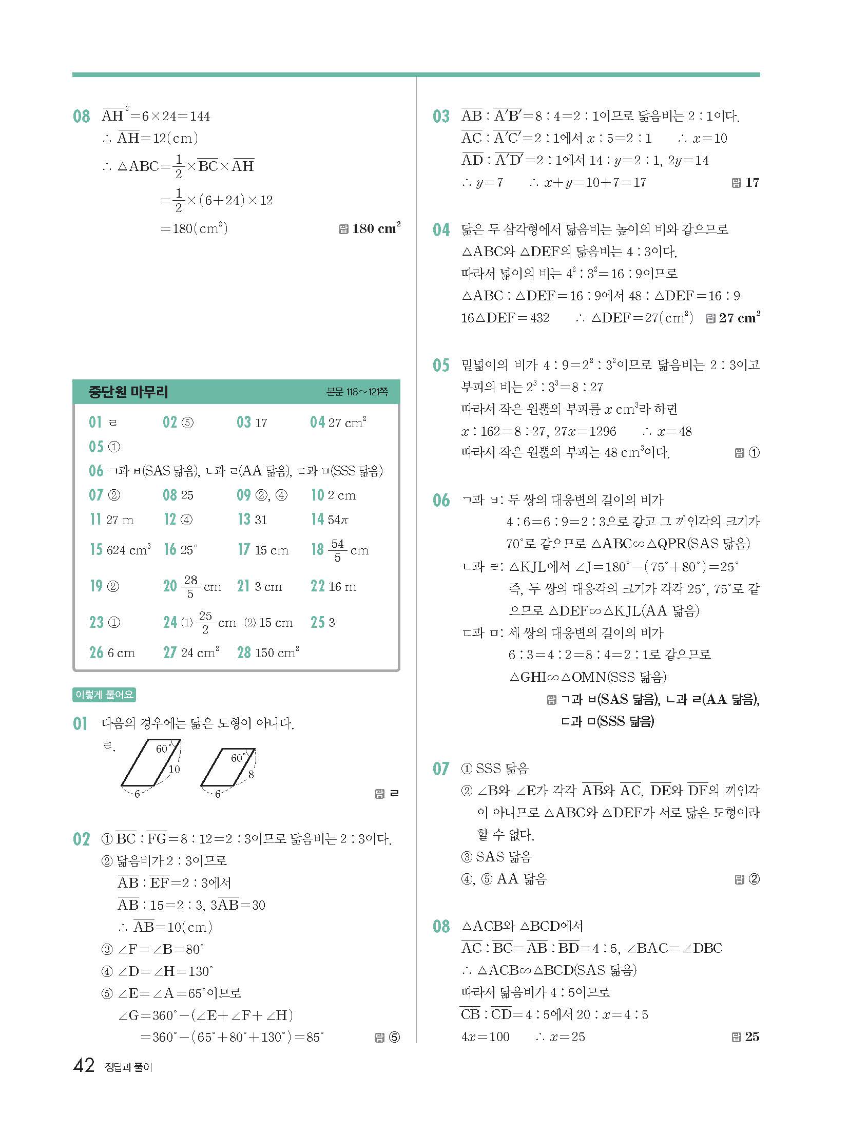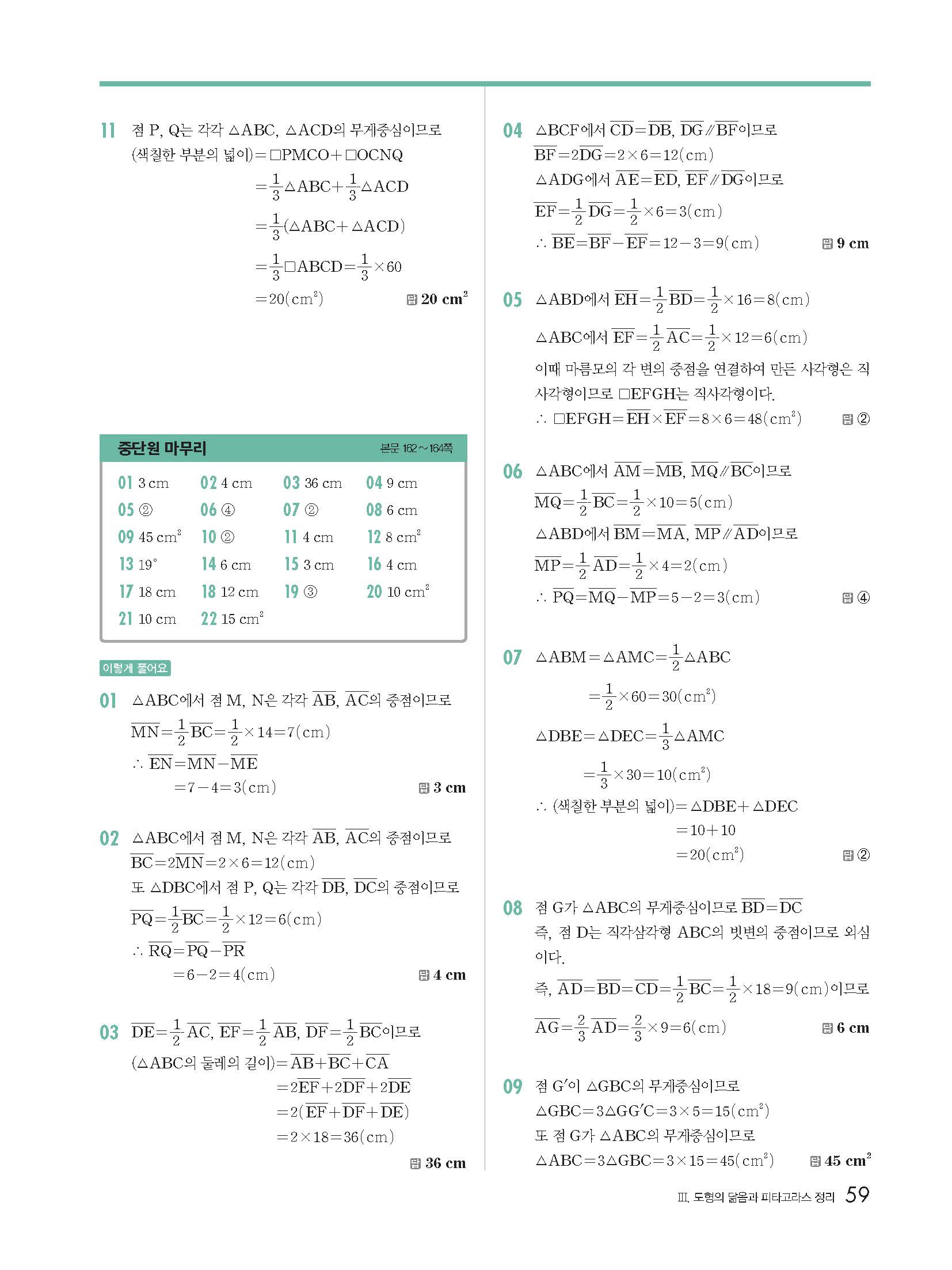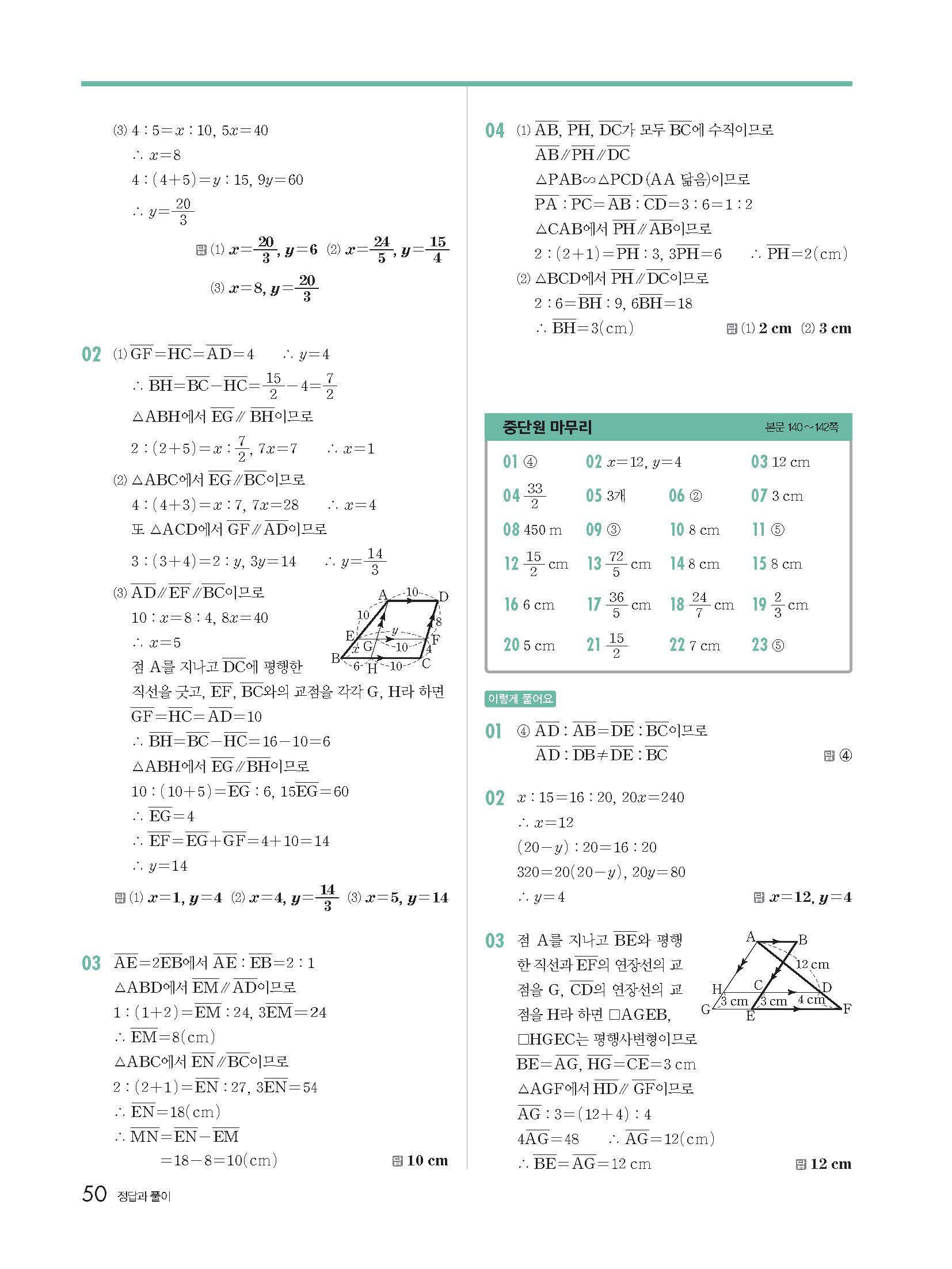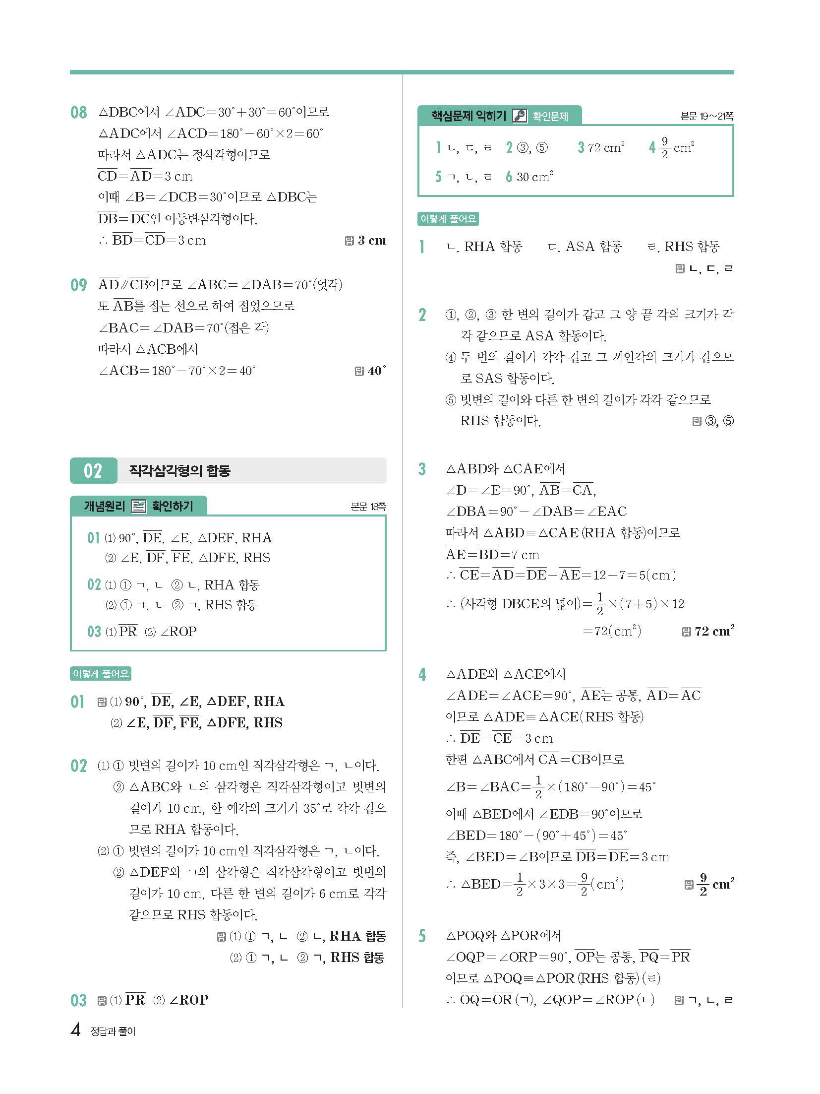 개정 개념원리중등수학 2-2 답지 사진답지 빠른답지 모바일최적화