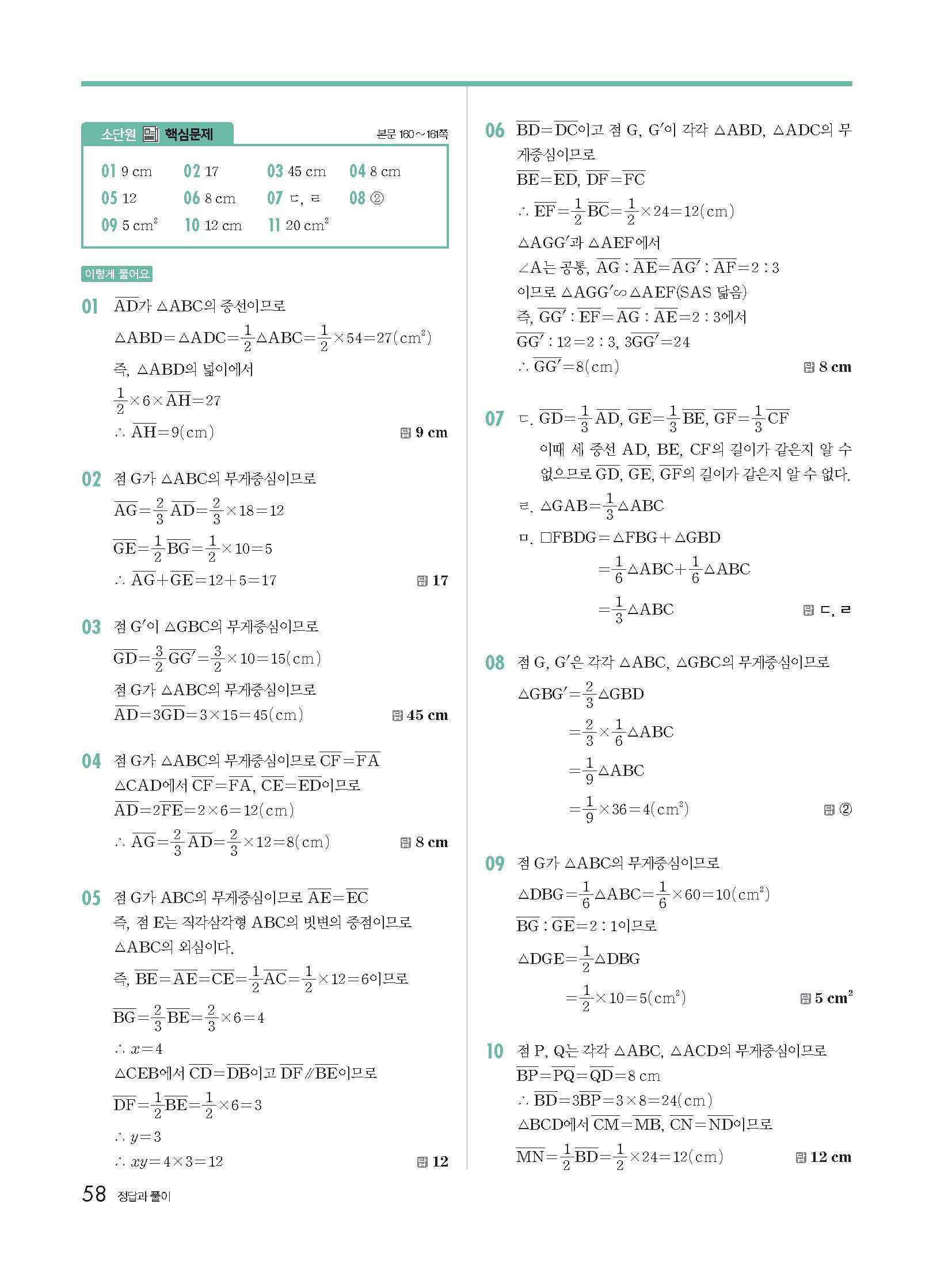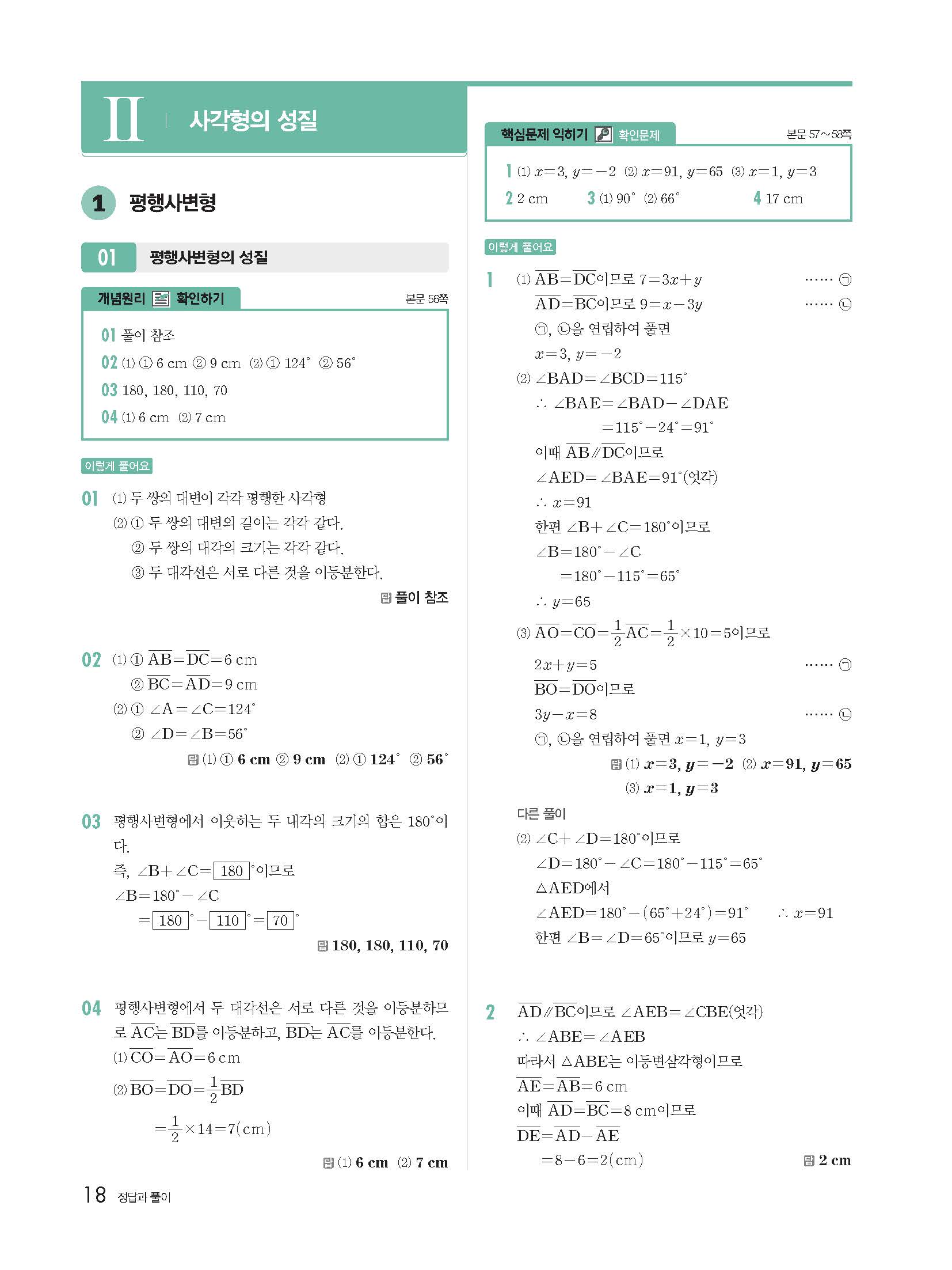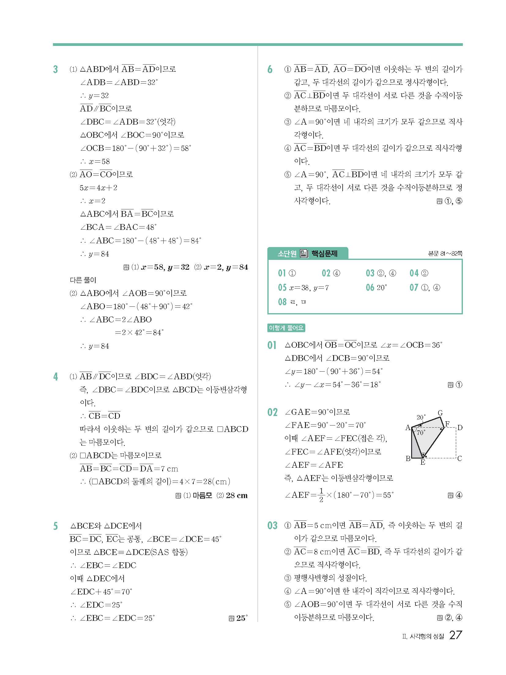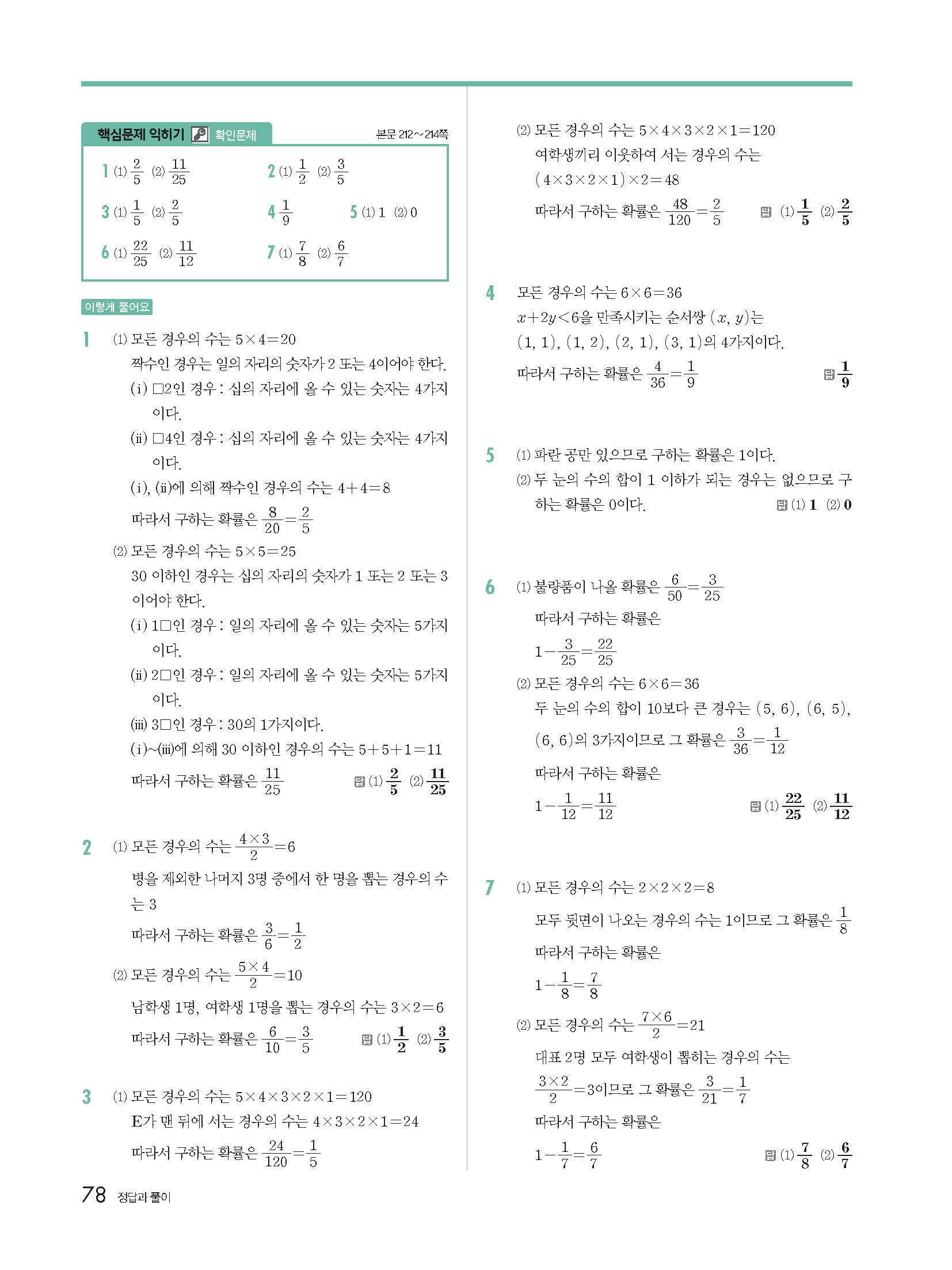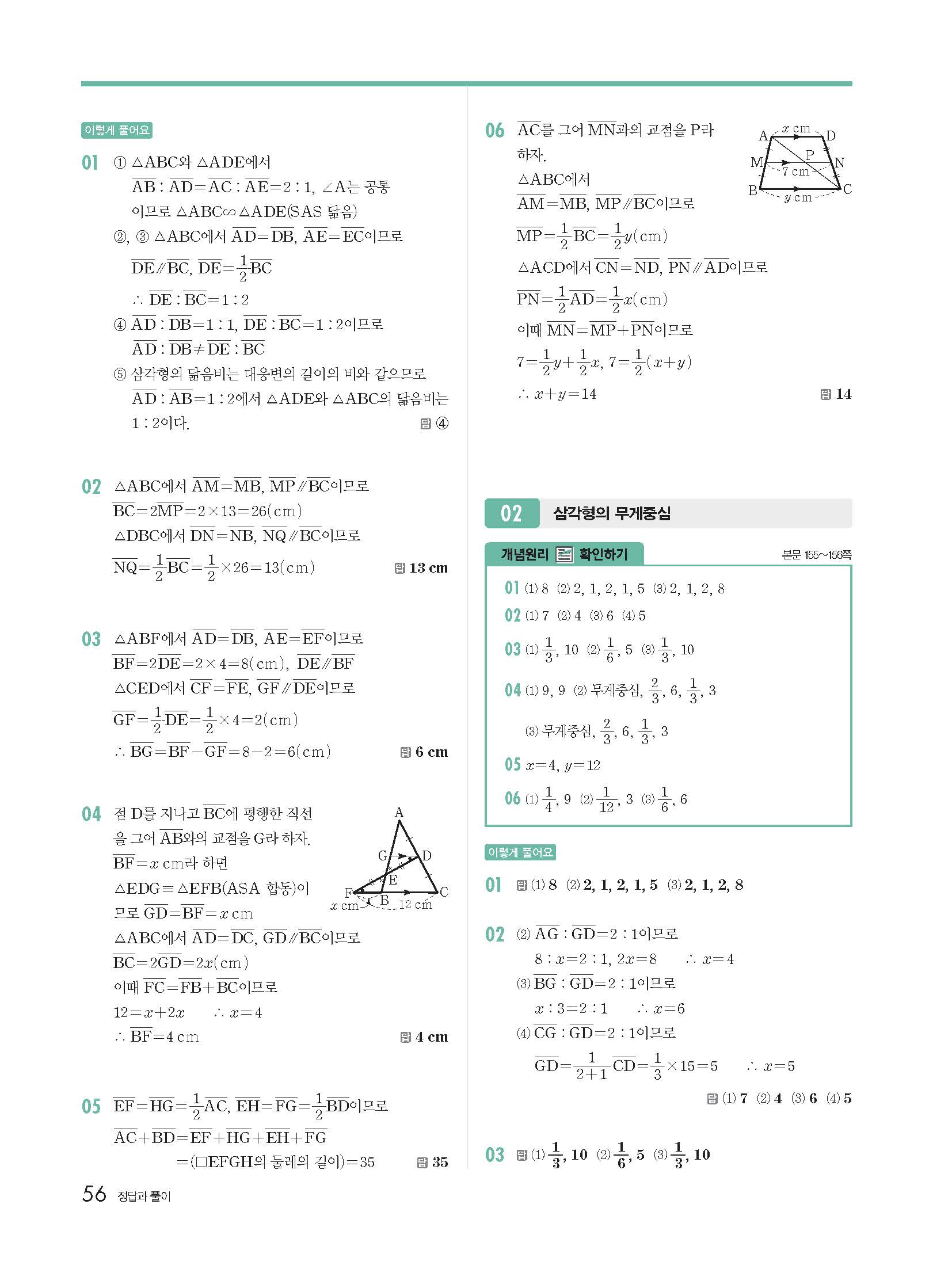 개정 개념원리중등수학 2-2 답지 사진답지 빠른답지 모바일최적화