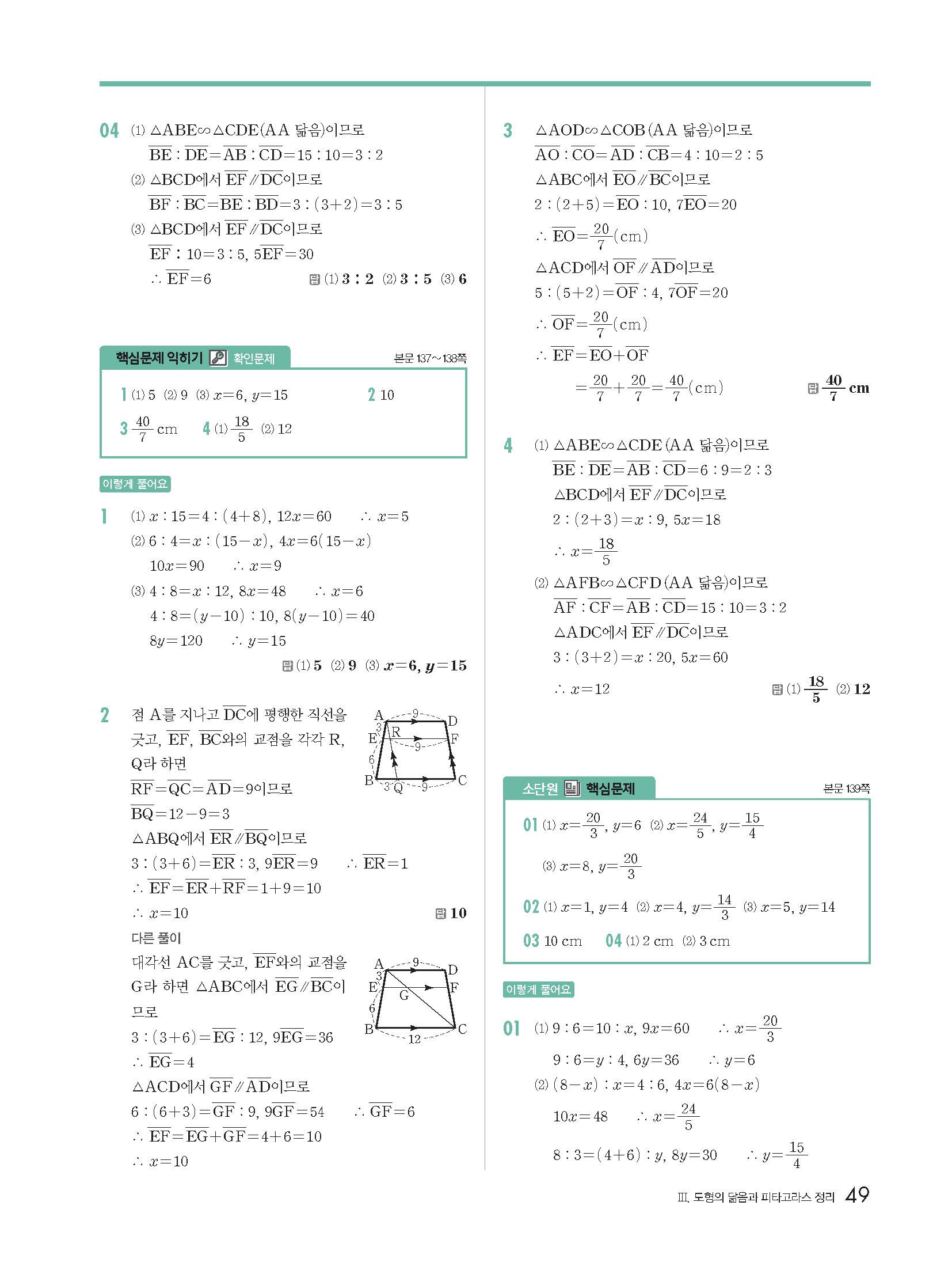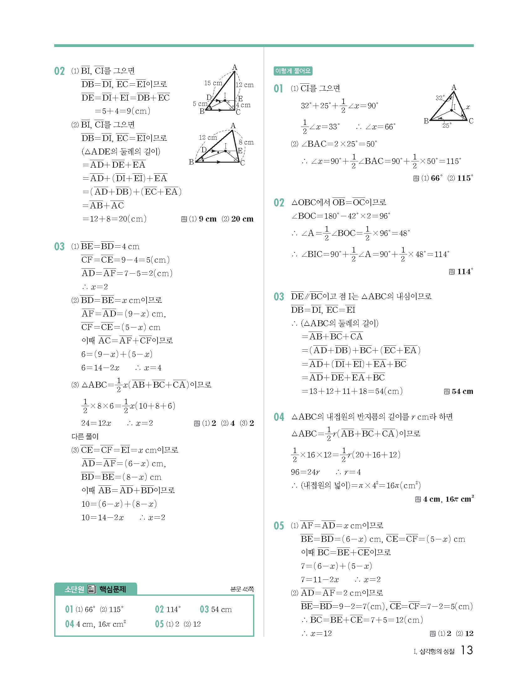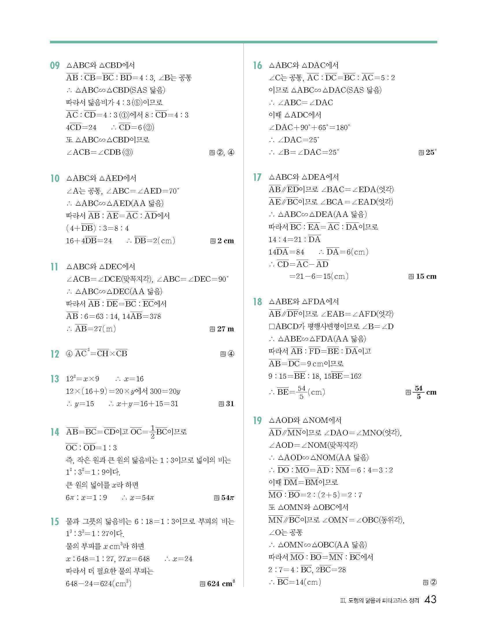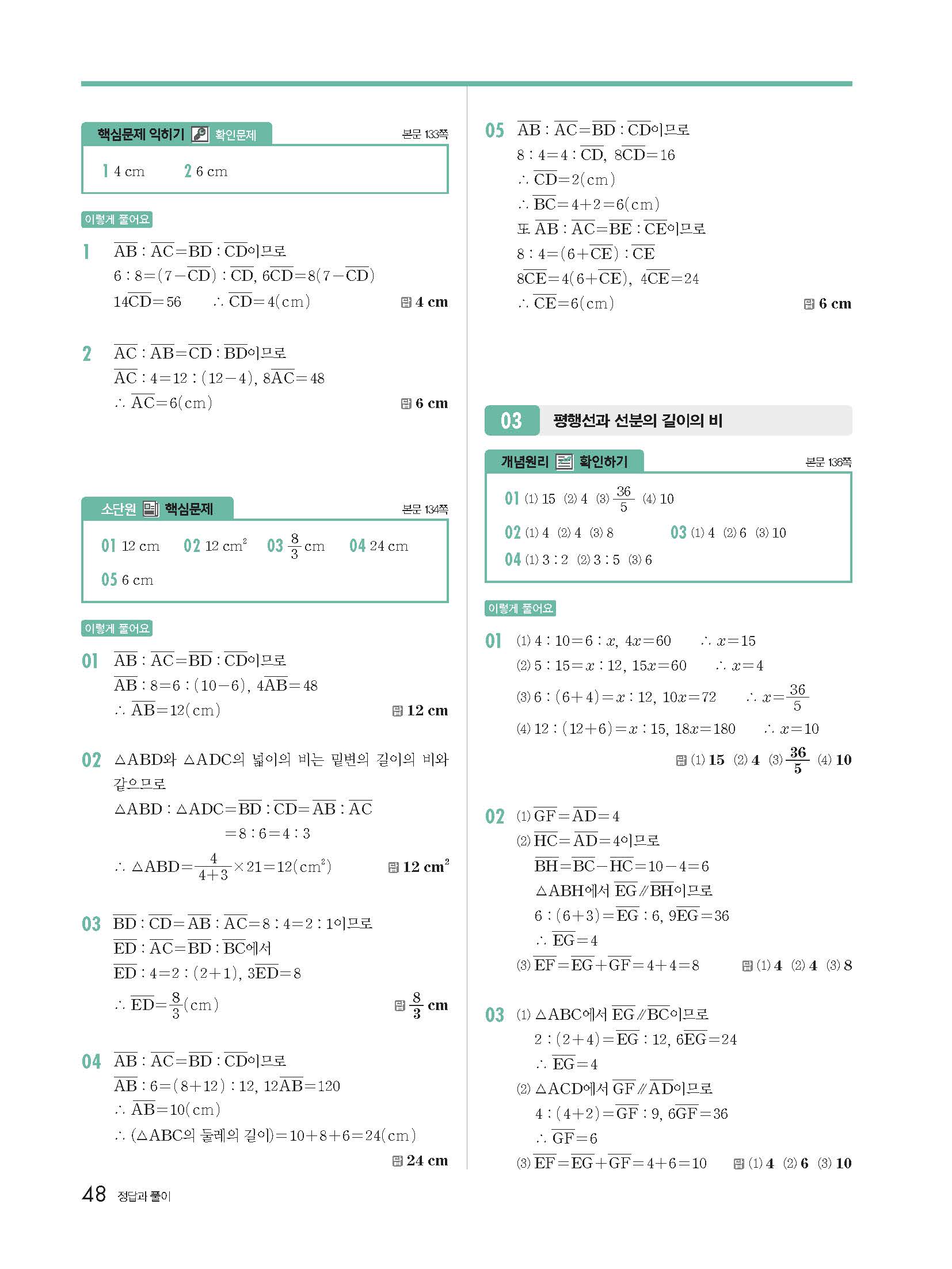 개정 개념원리중등수학 2-2 답지 사진답지 빠른답지 모바일최적화
