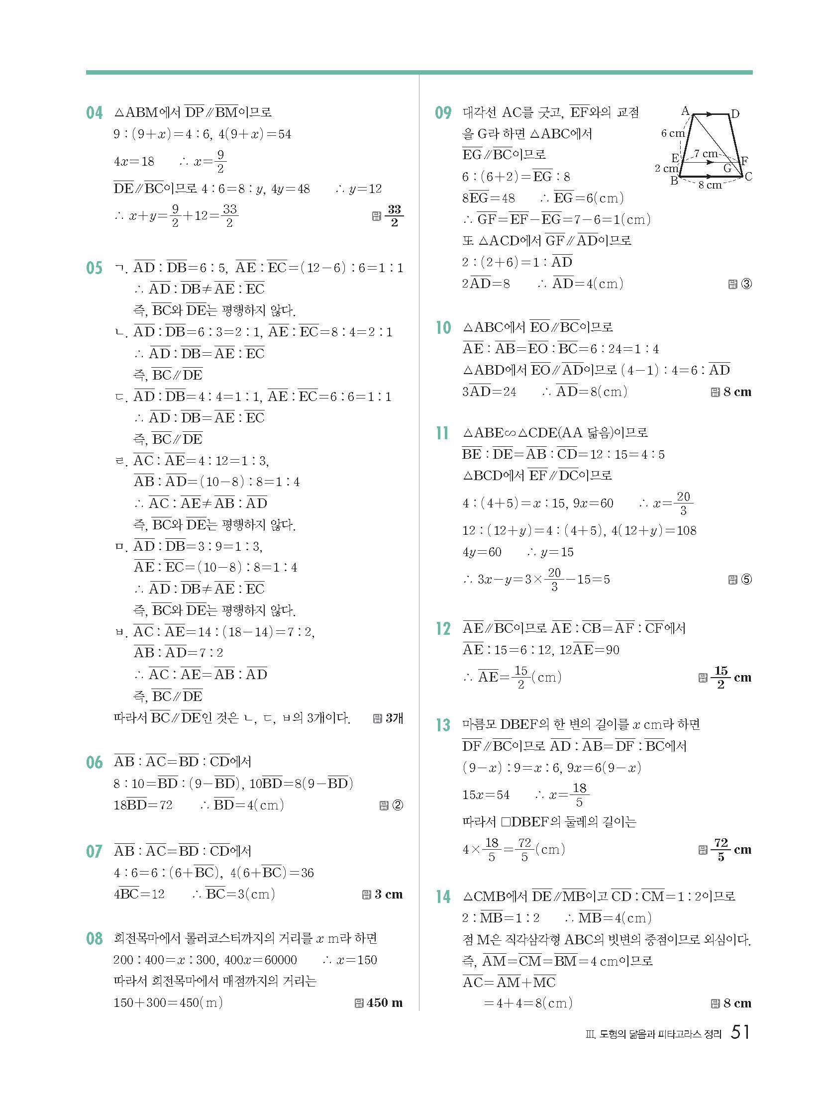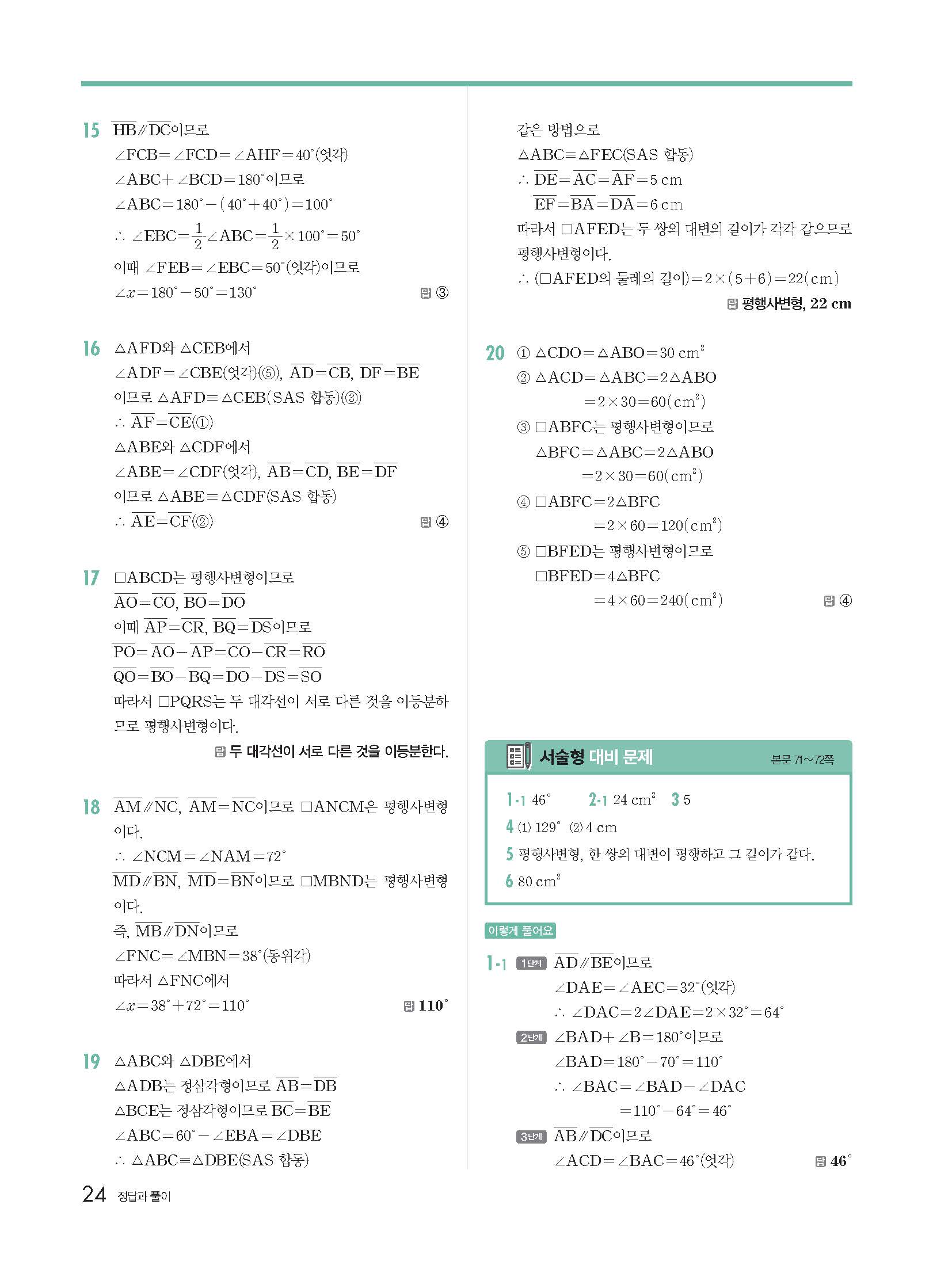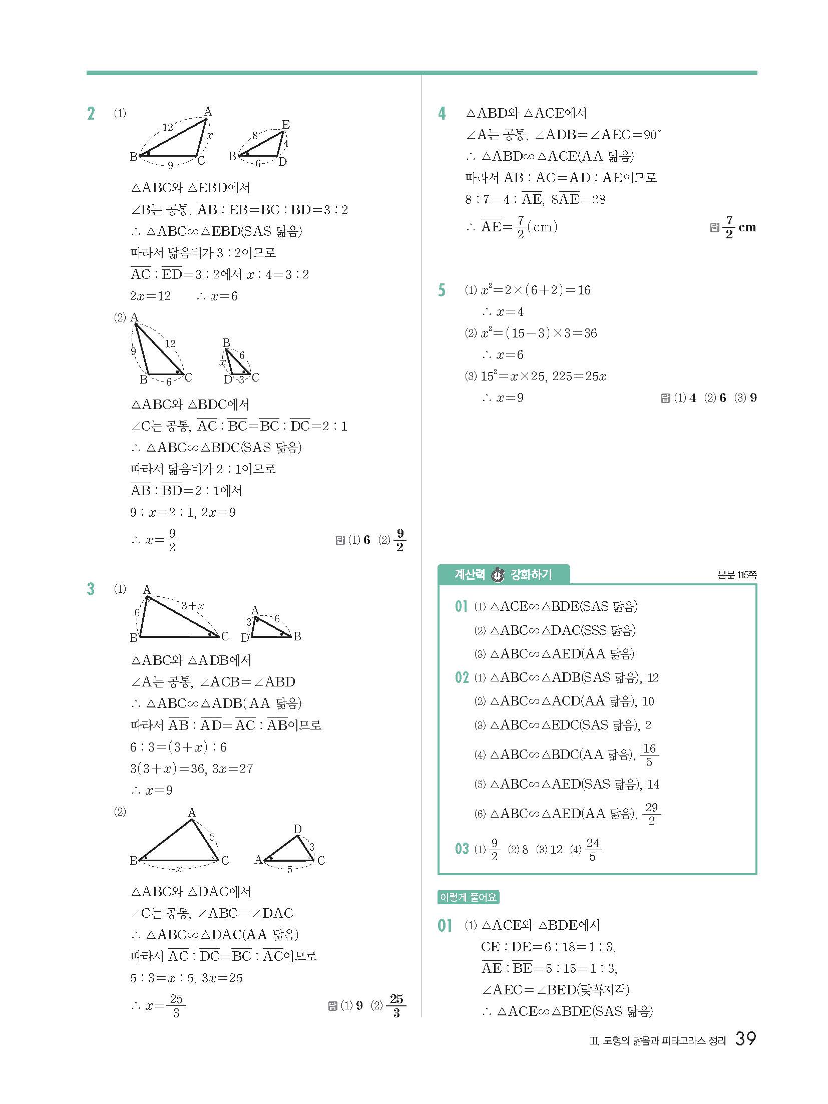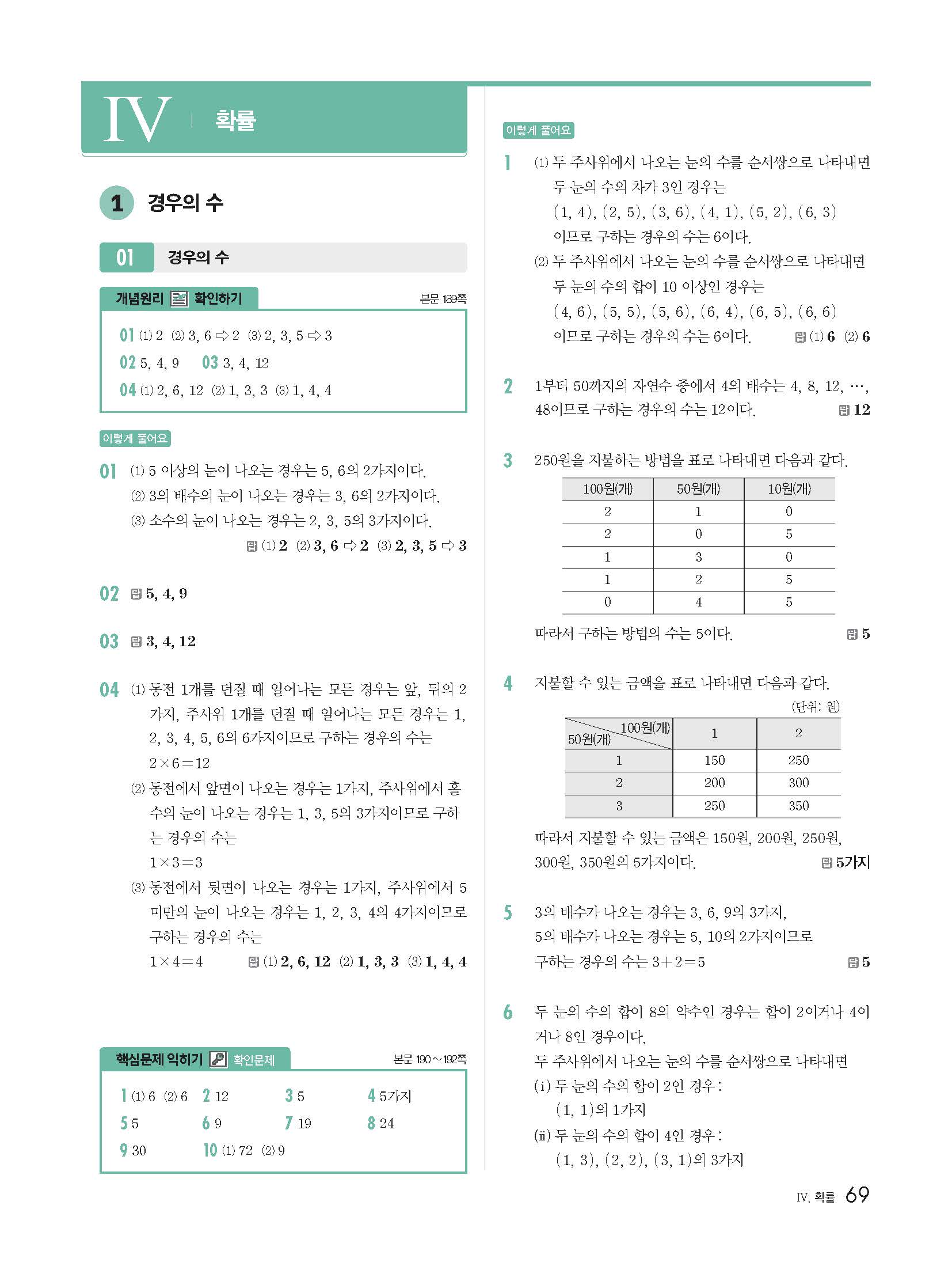 개정 개념원리중등수학 2-2 답지 사진답지 빠른답지 모바일최적화