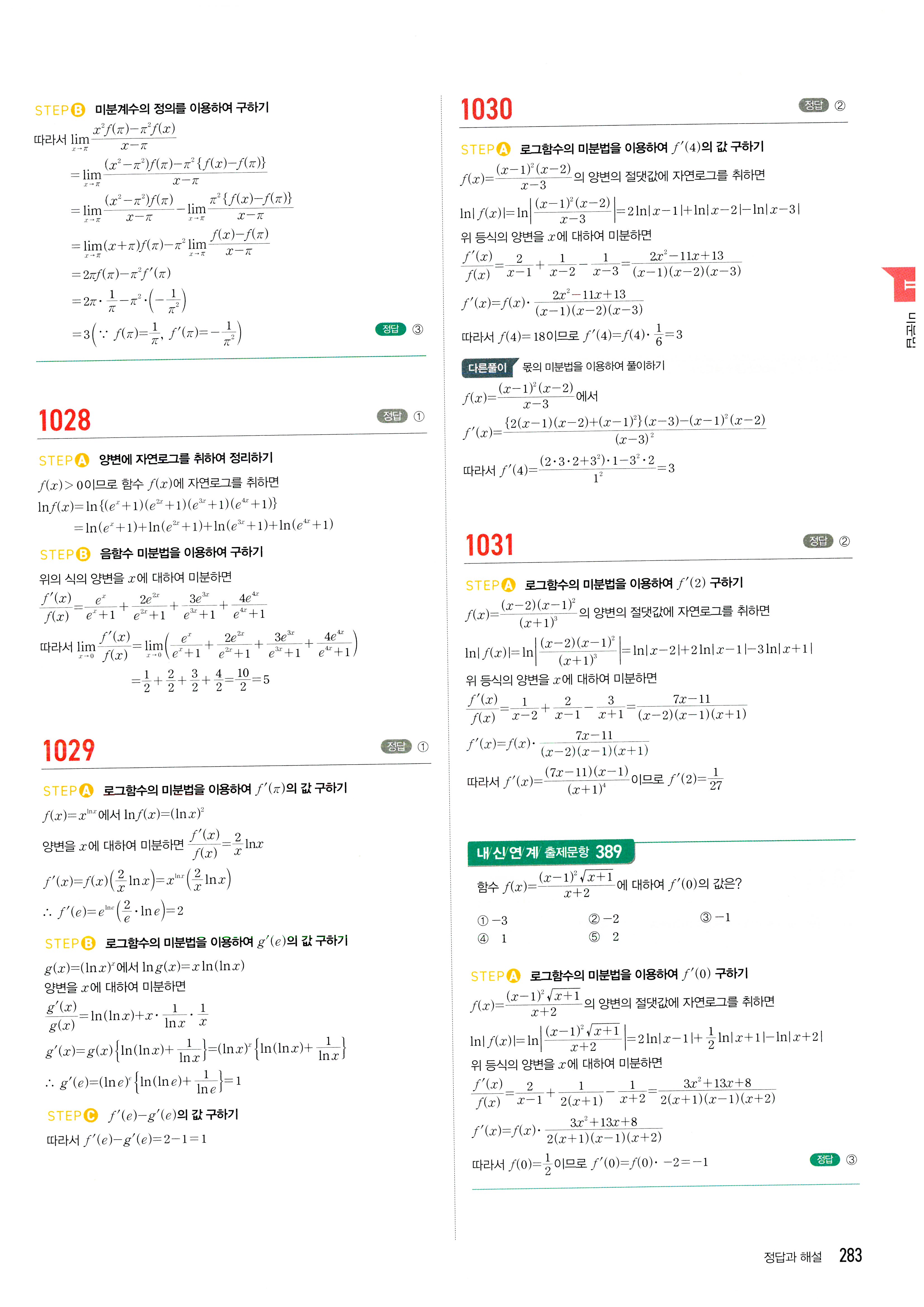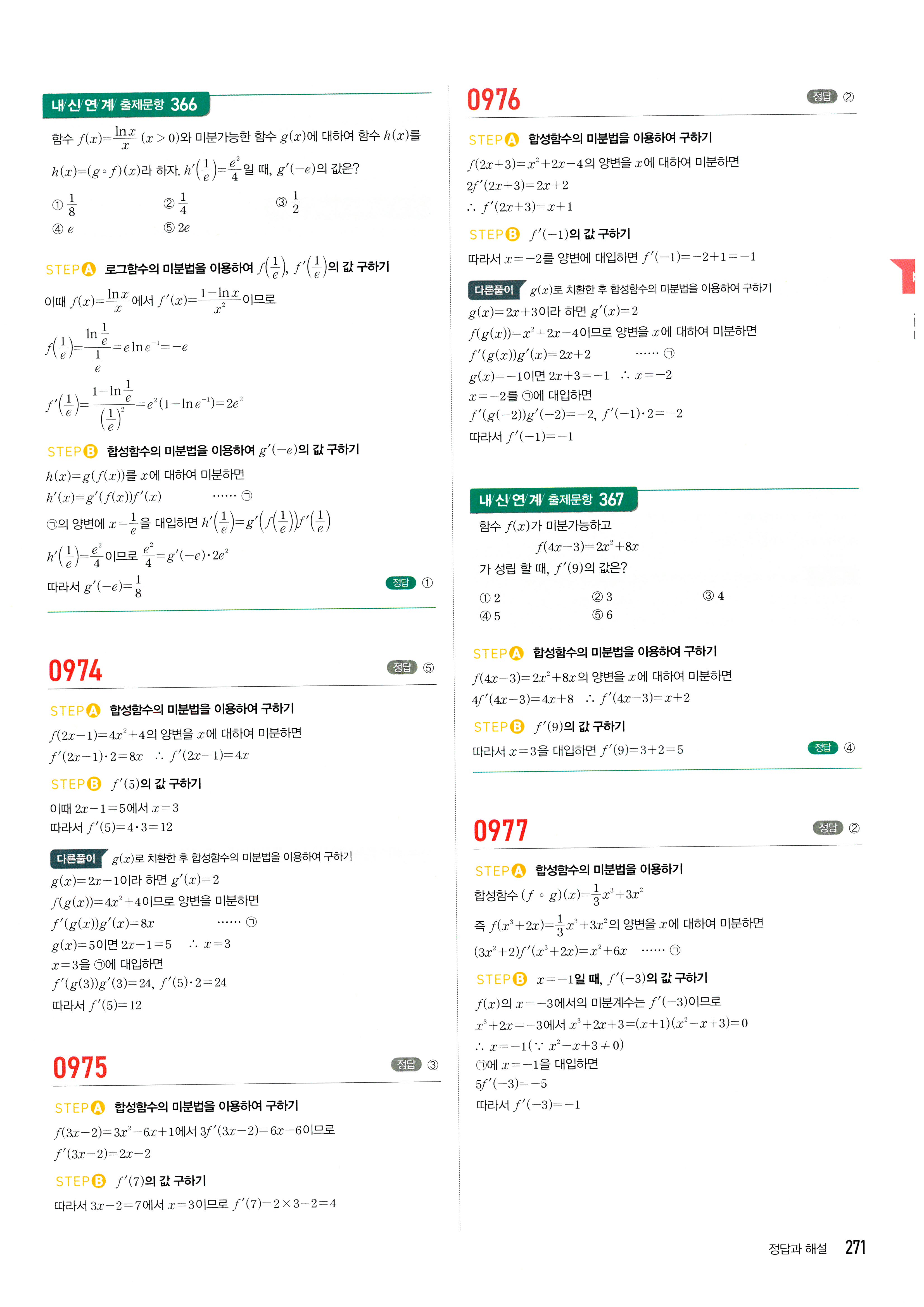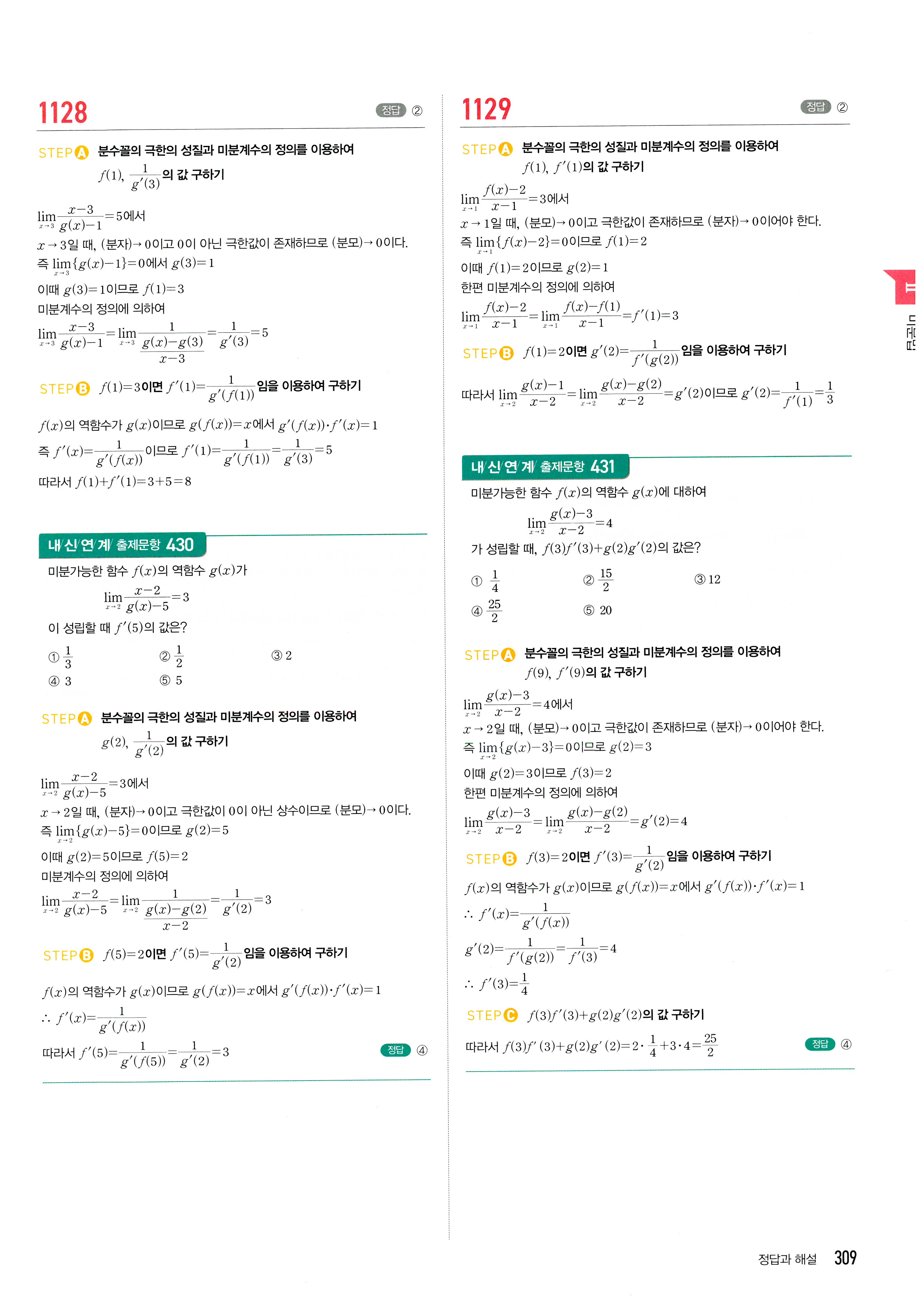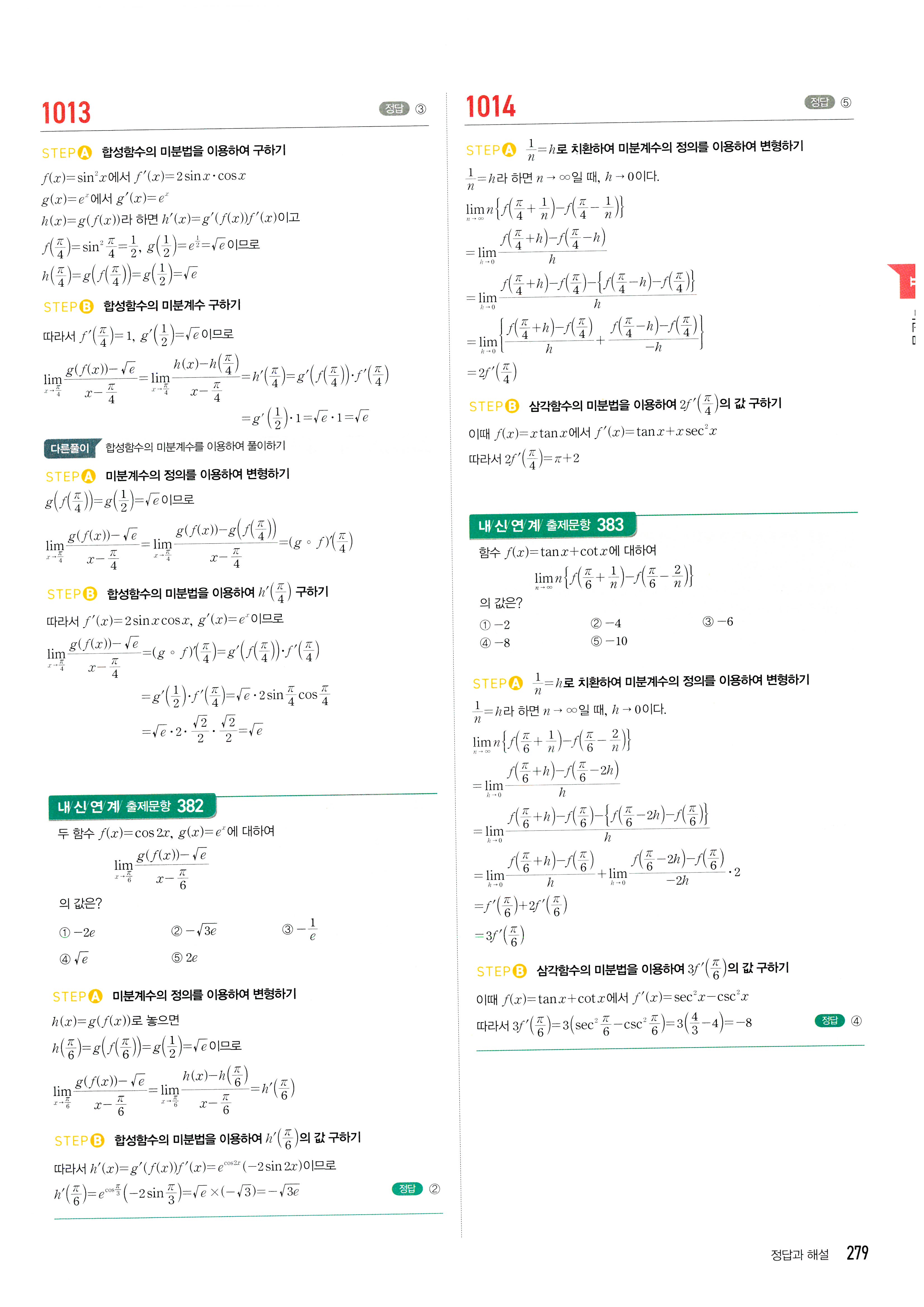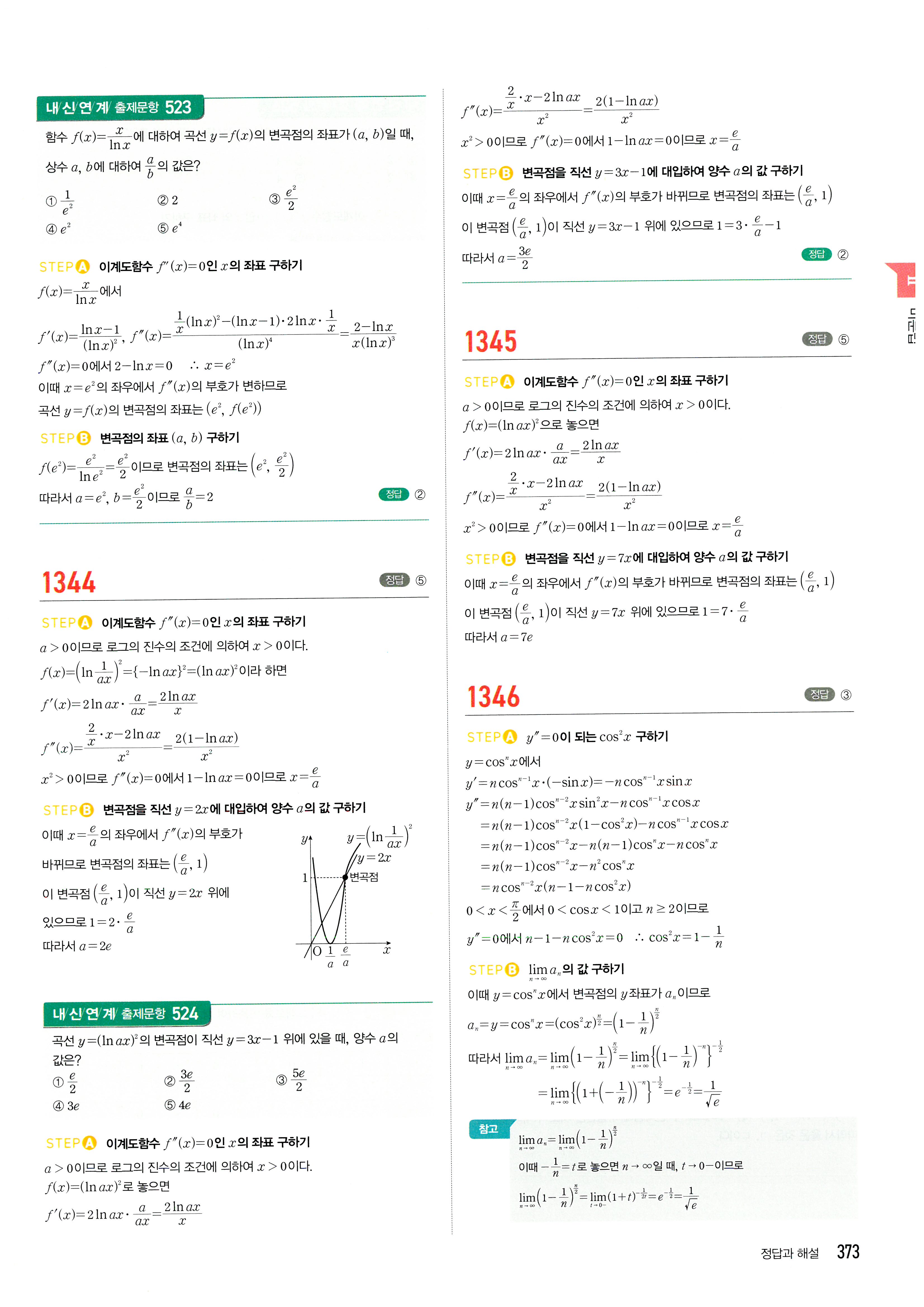 마플시너지 미적분 중반부 답지 해설지 사진답지 빠른답지 모바일최적화
