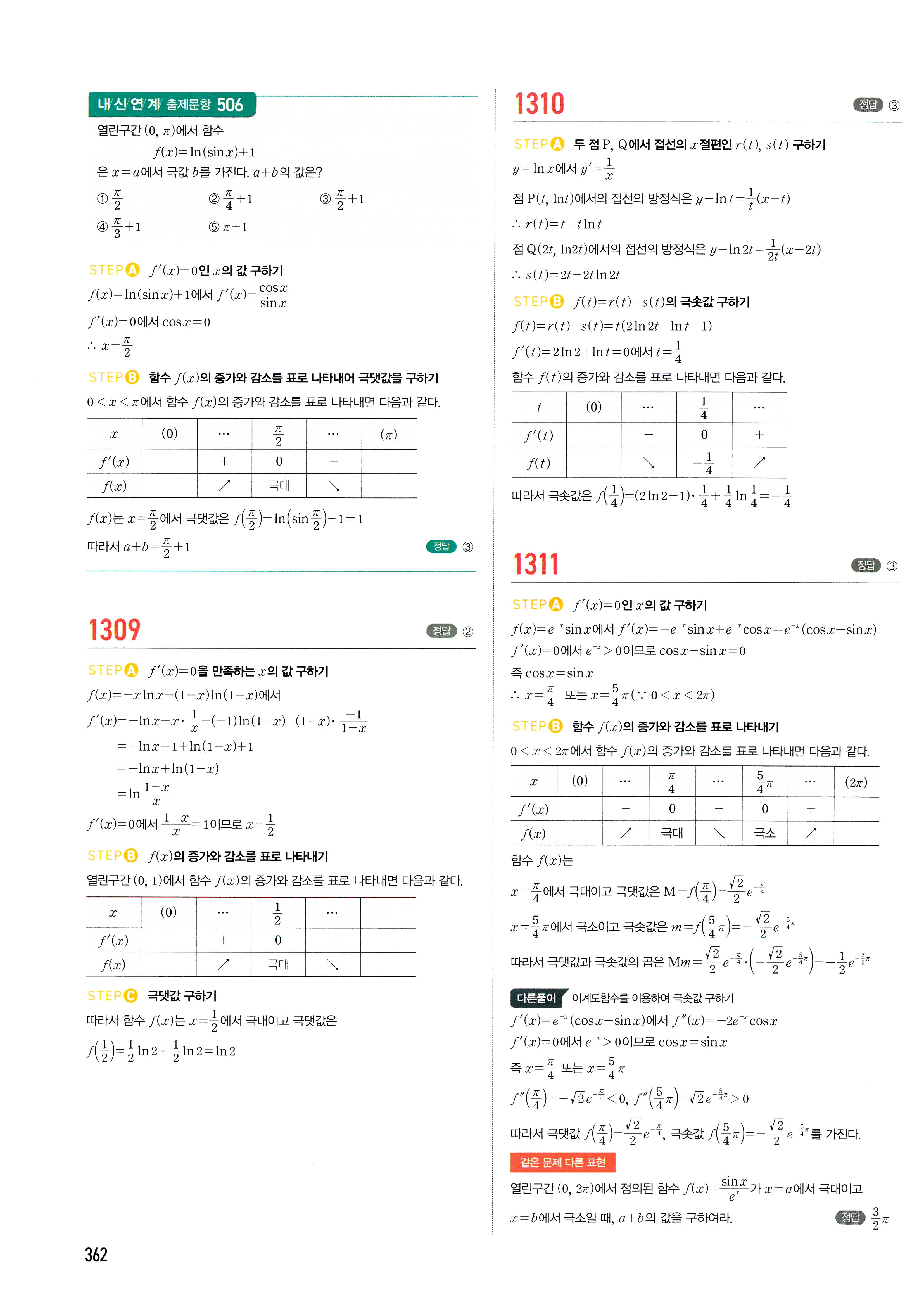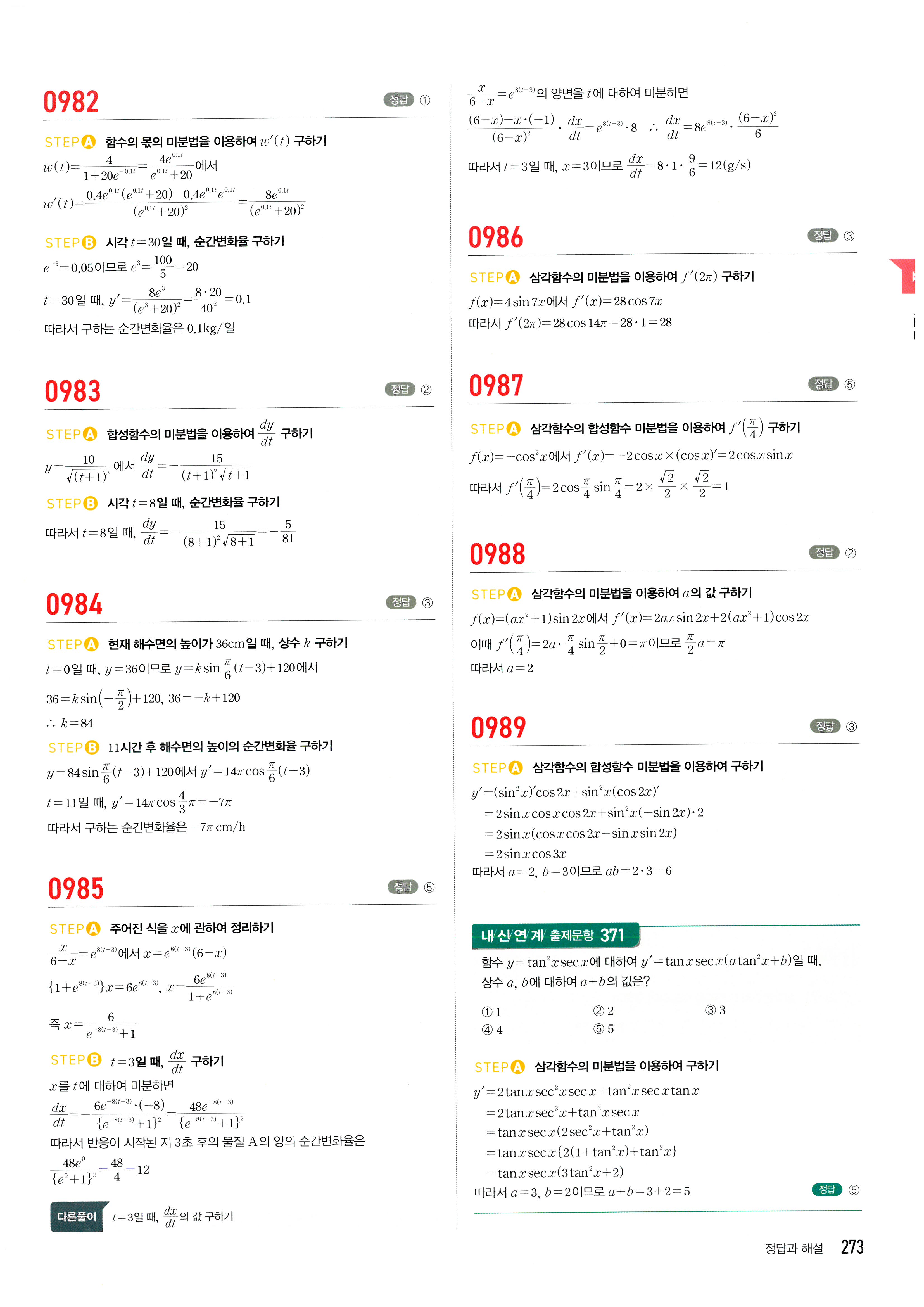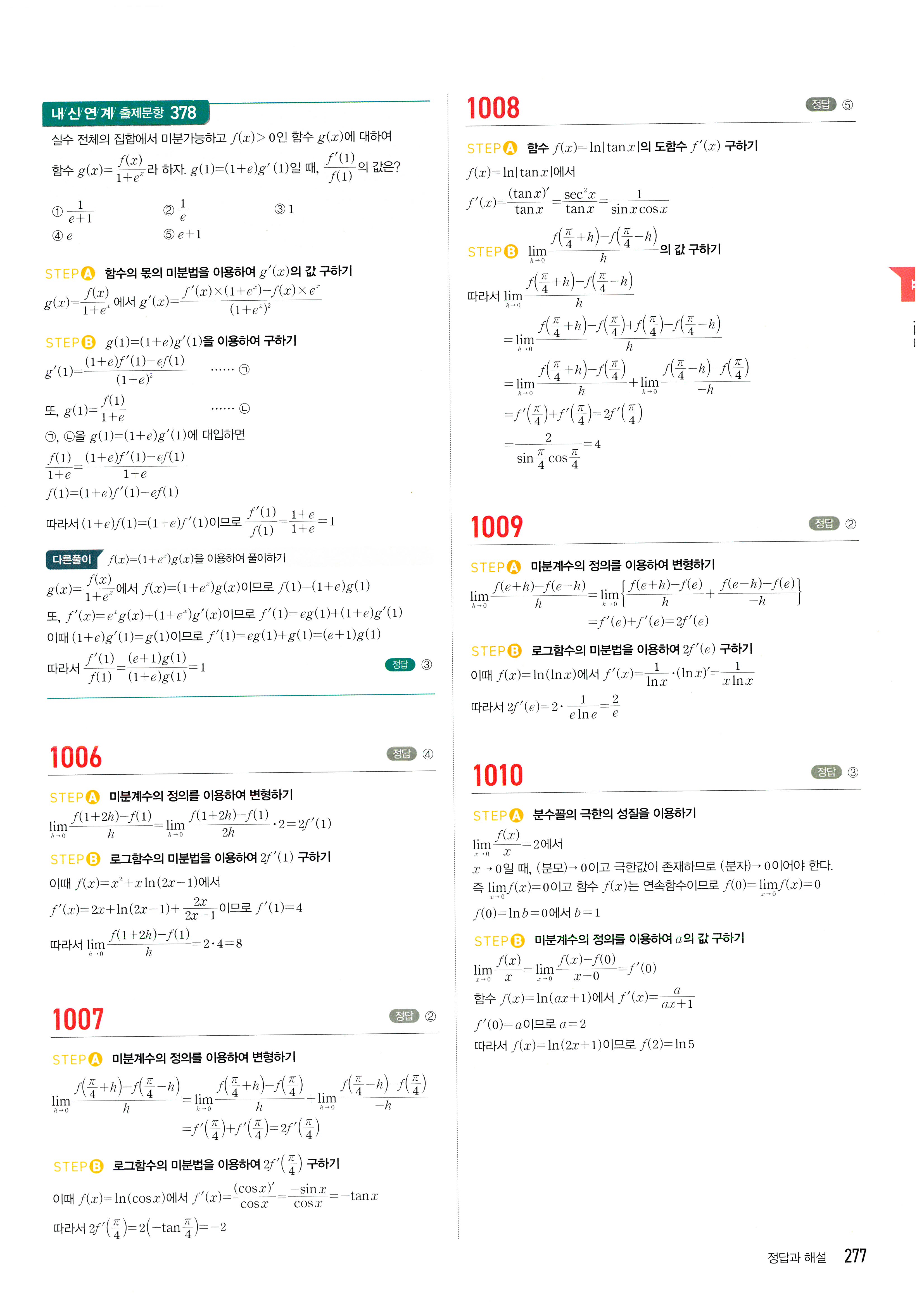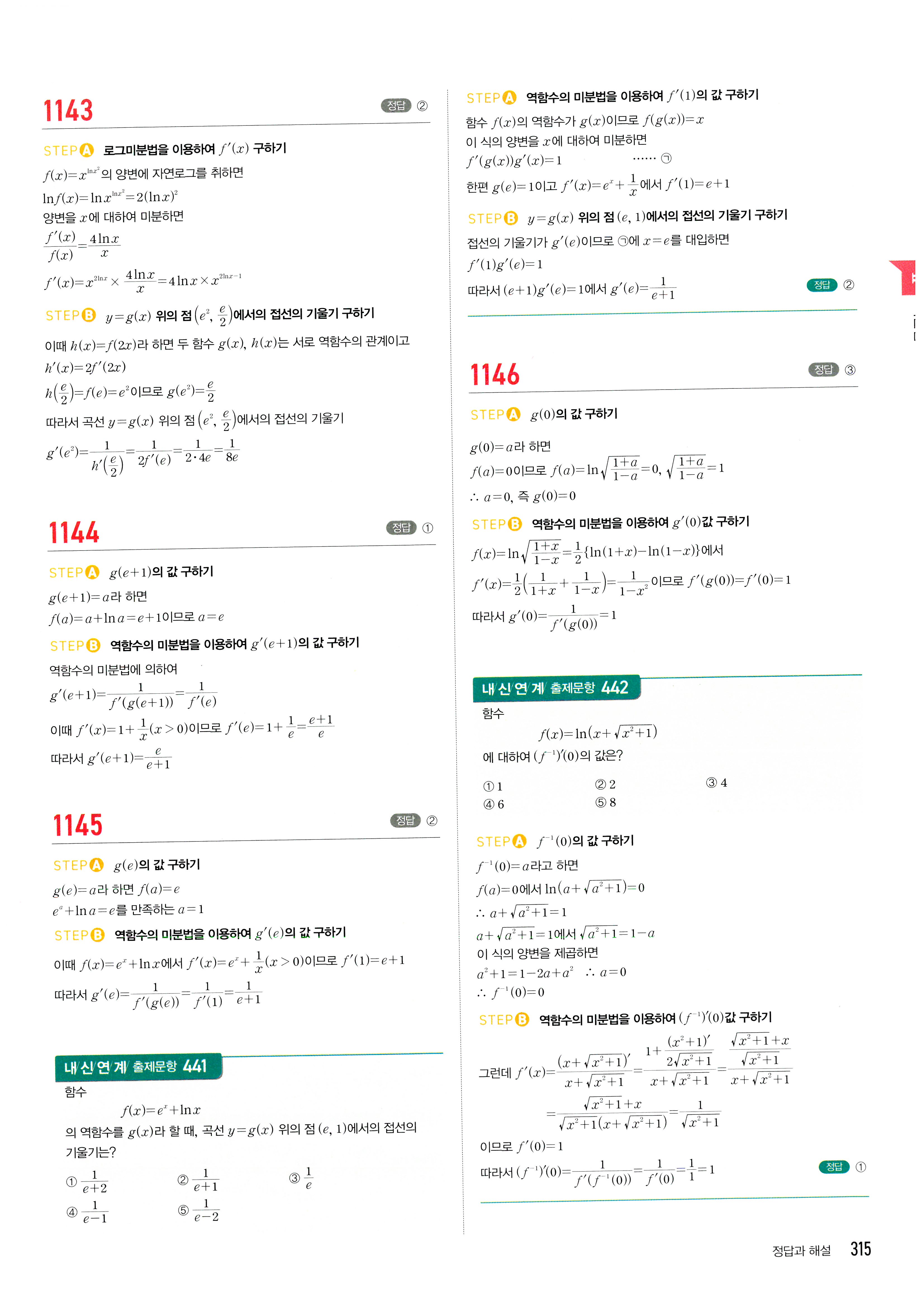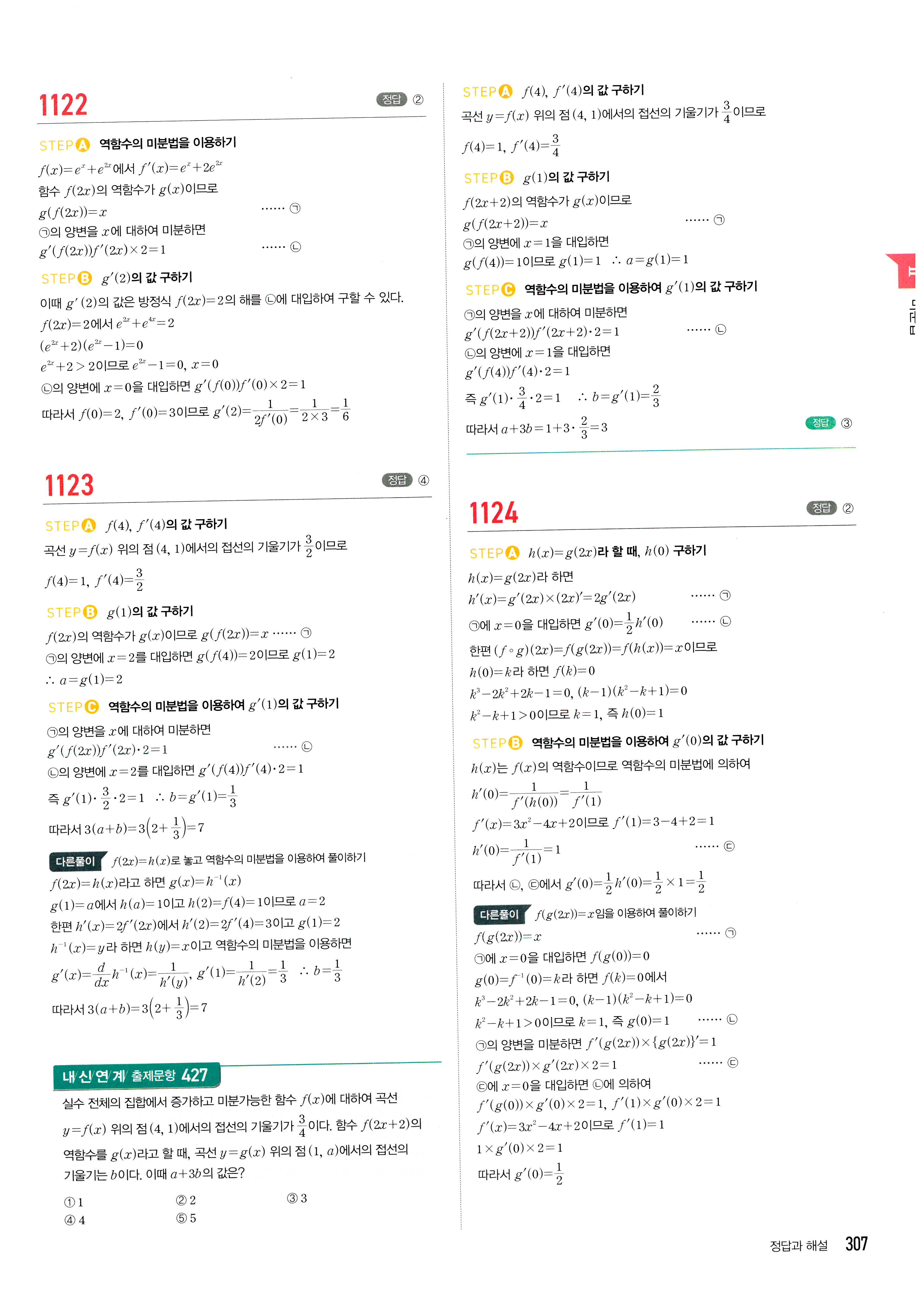 마플시너지 미적분 중반부 답지 해설지 사진답지 빠른답지 모바일최적화