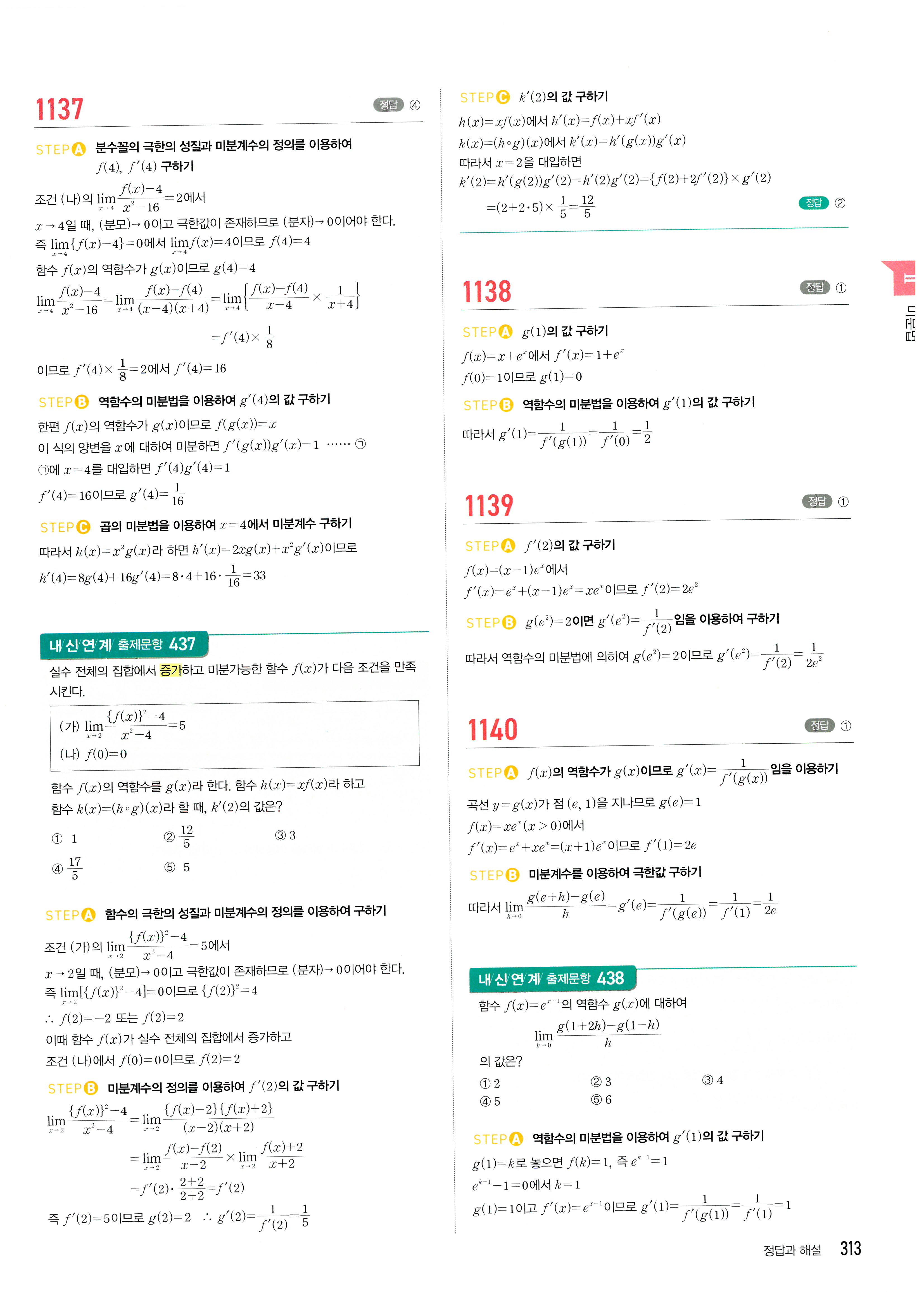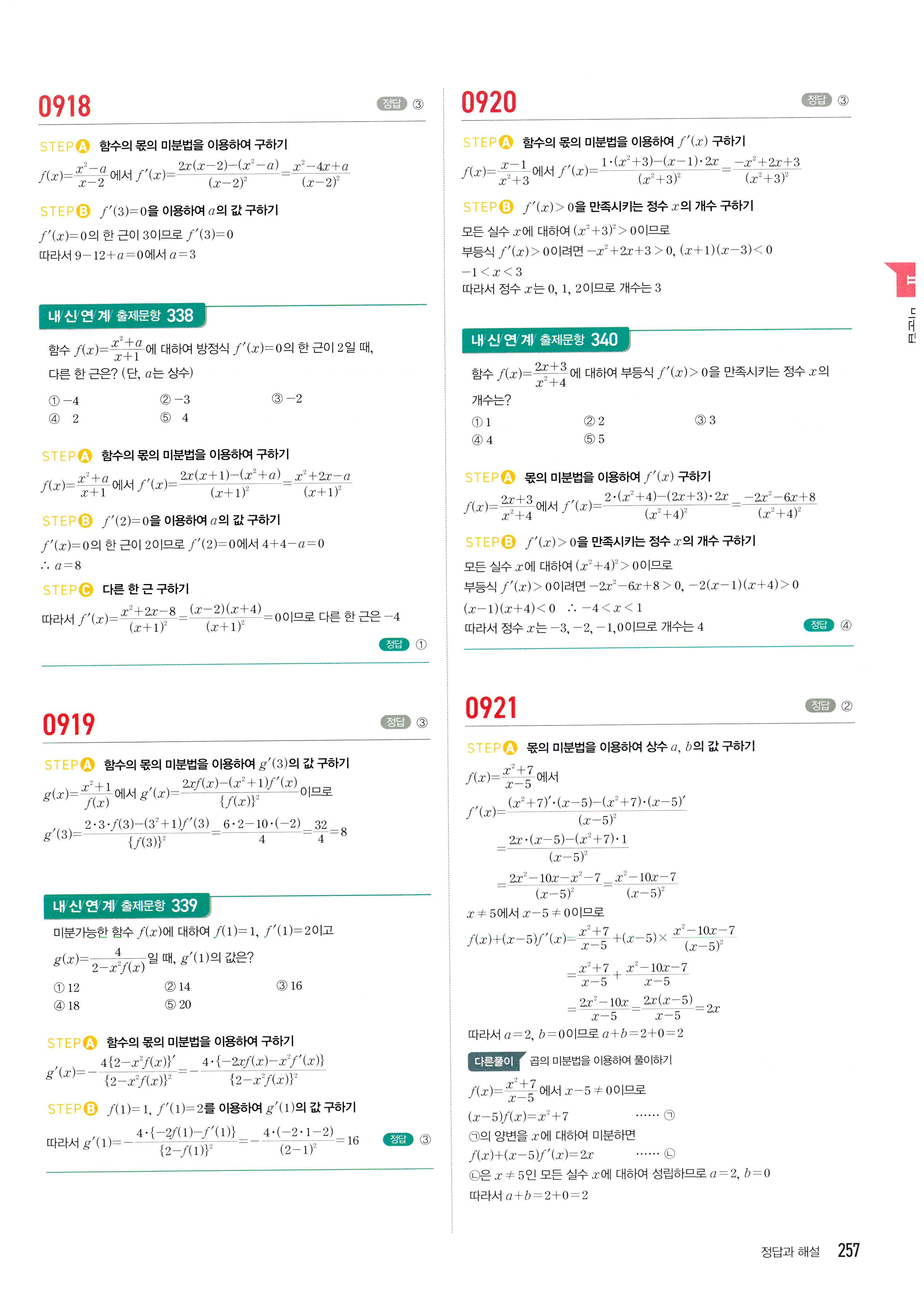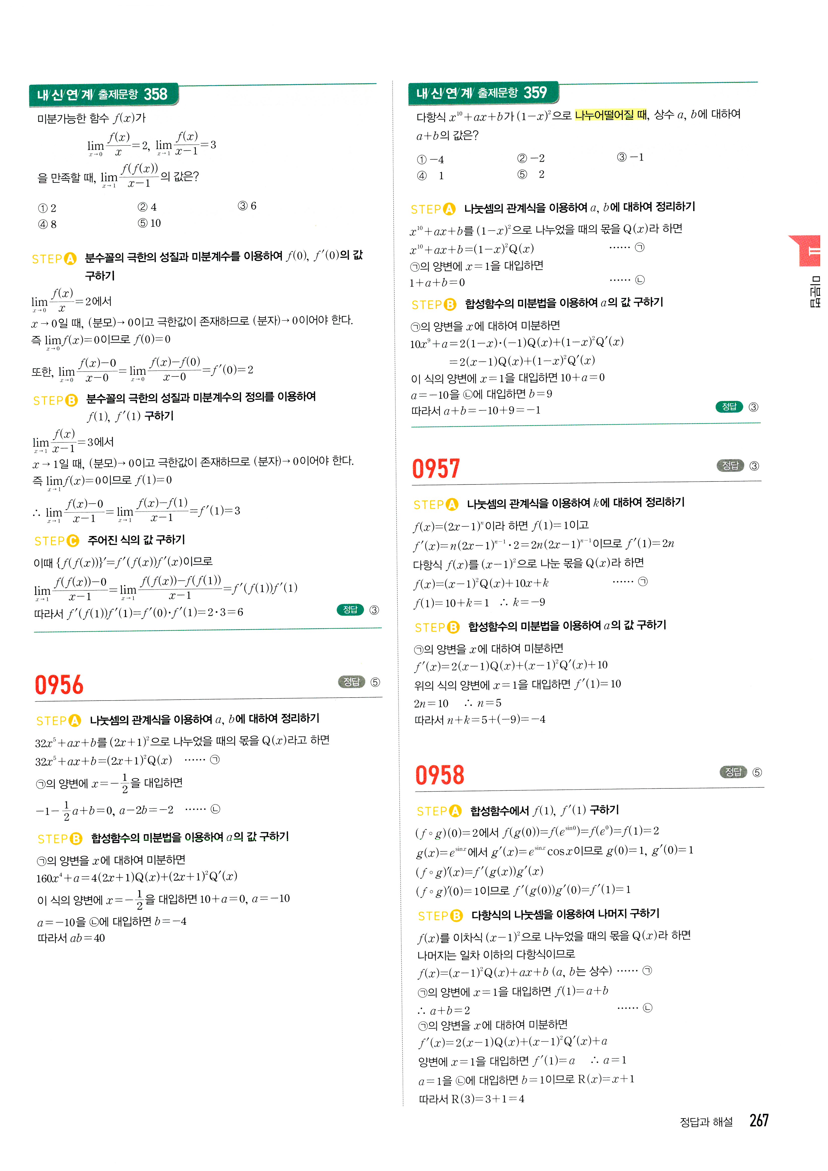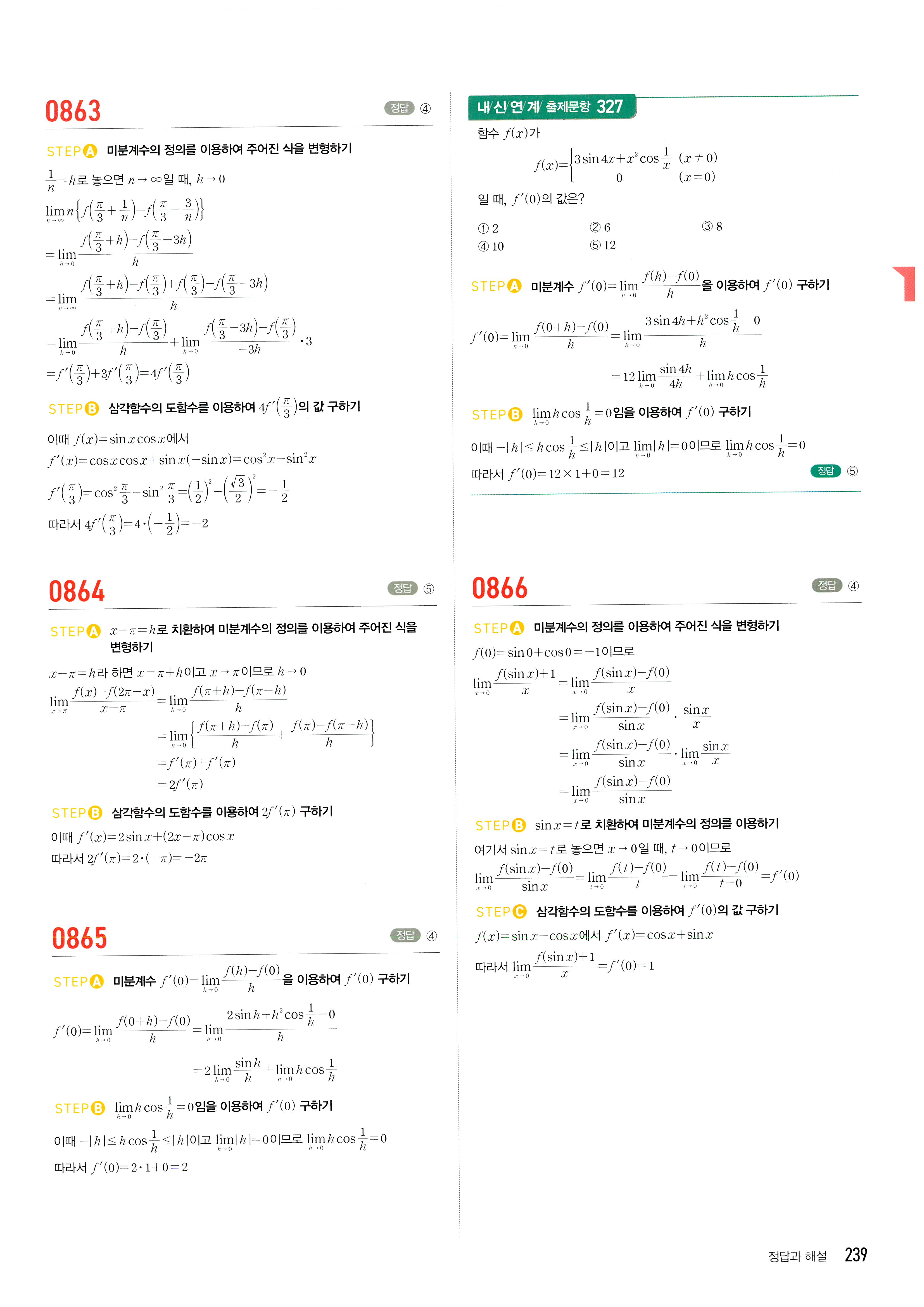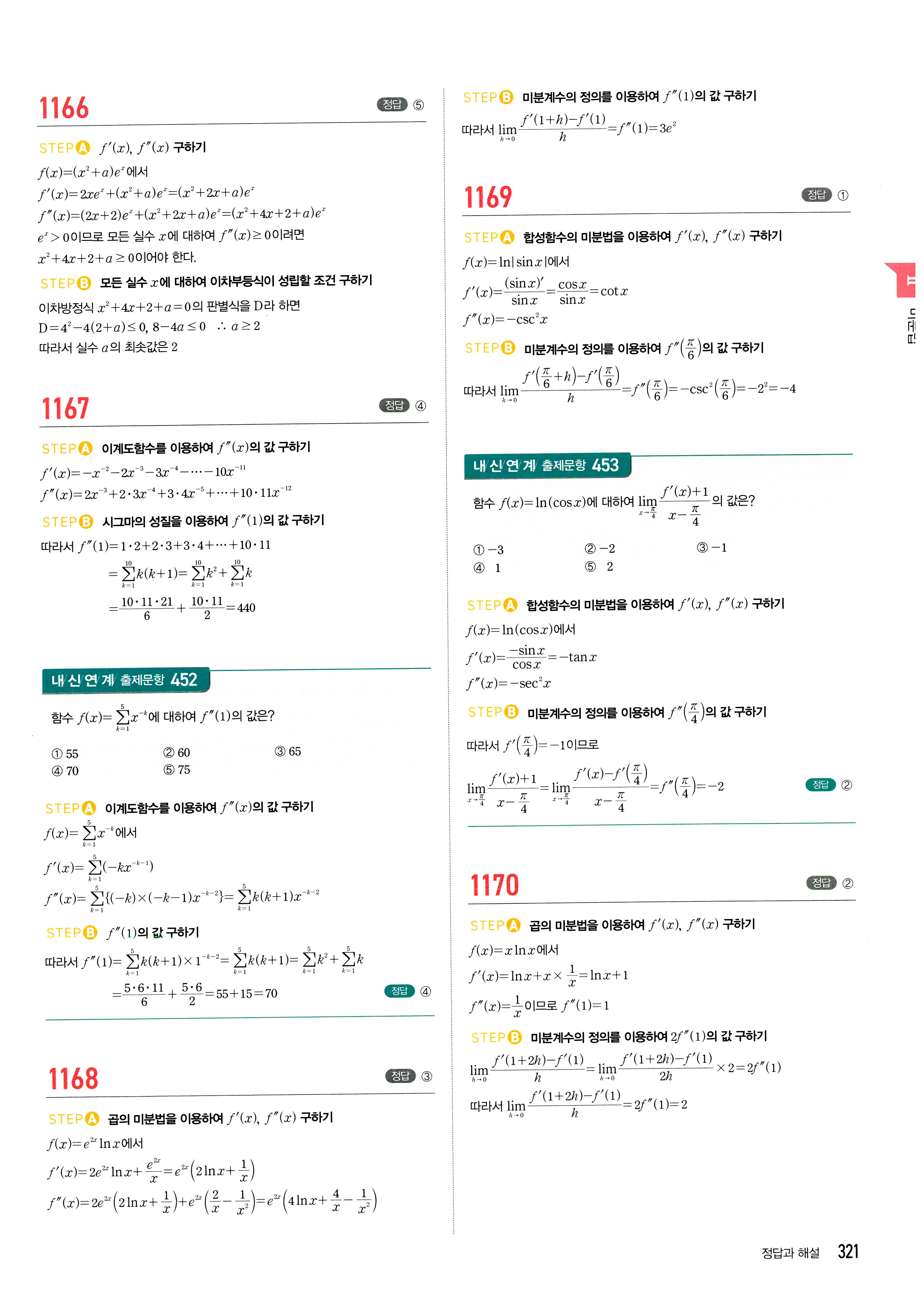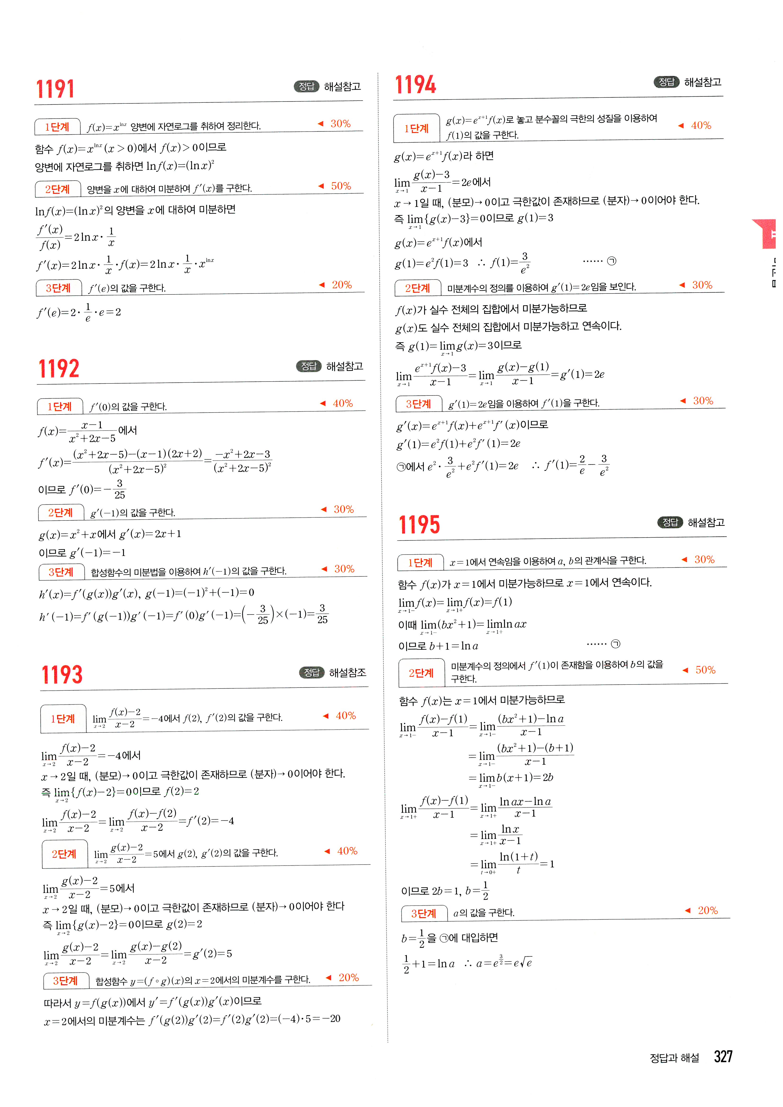 마플시너지 미적분 중반부 답지 해설지 사진답지 빠른답지 모바일최적화