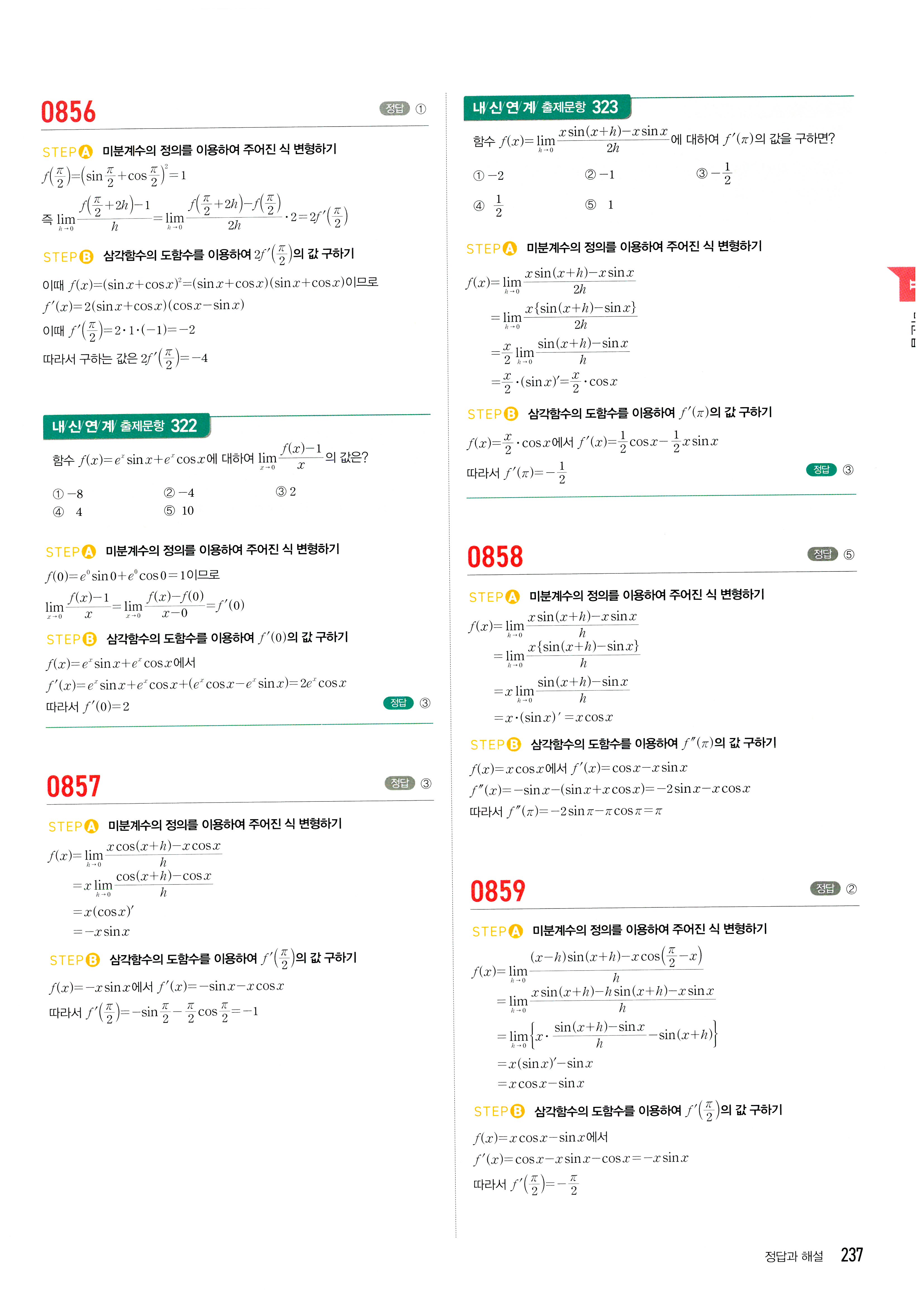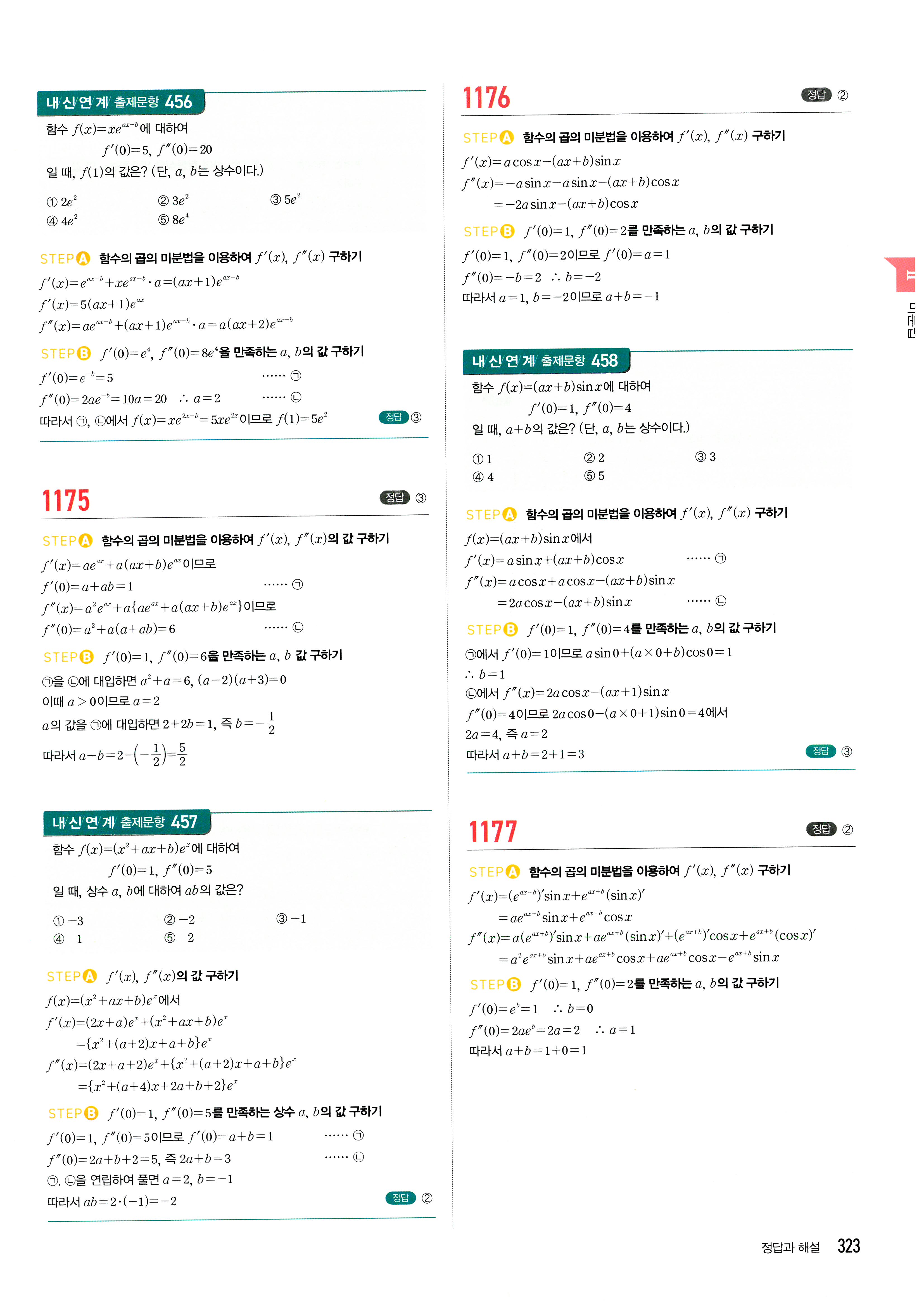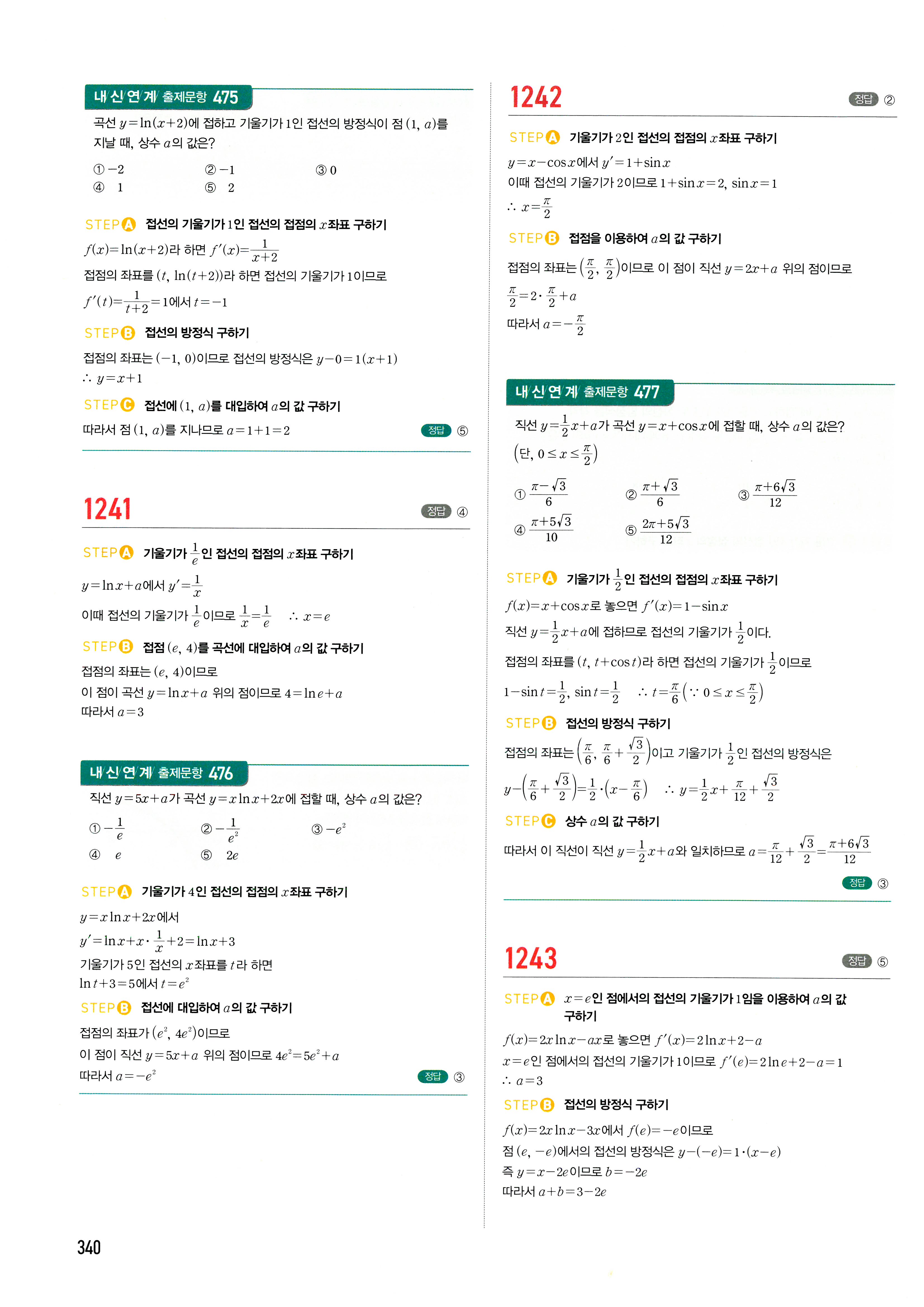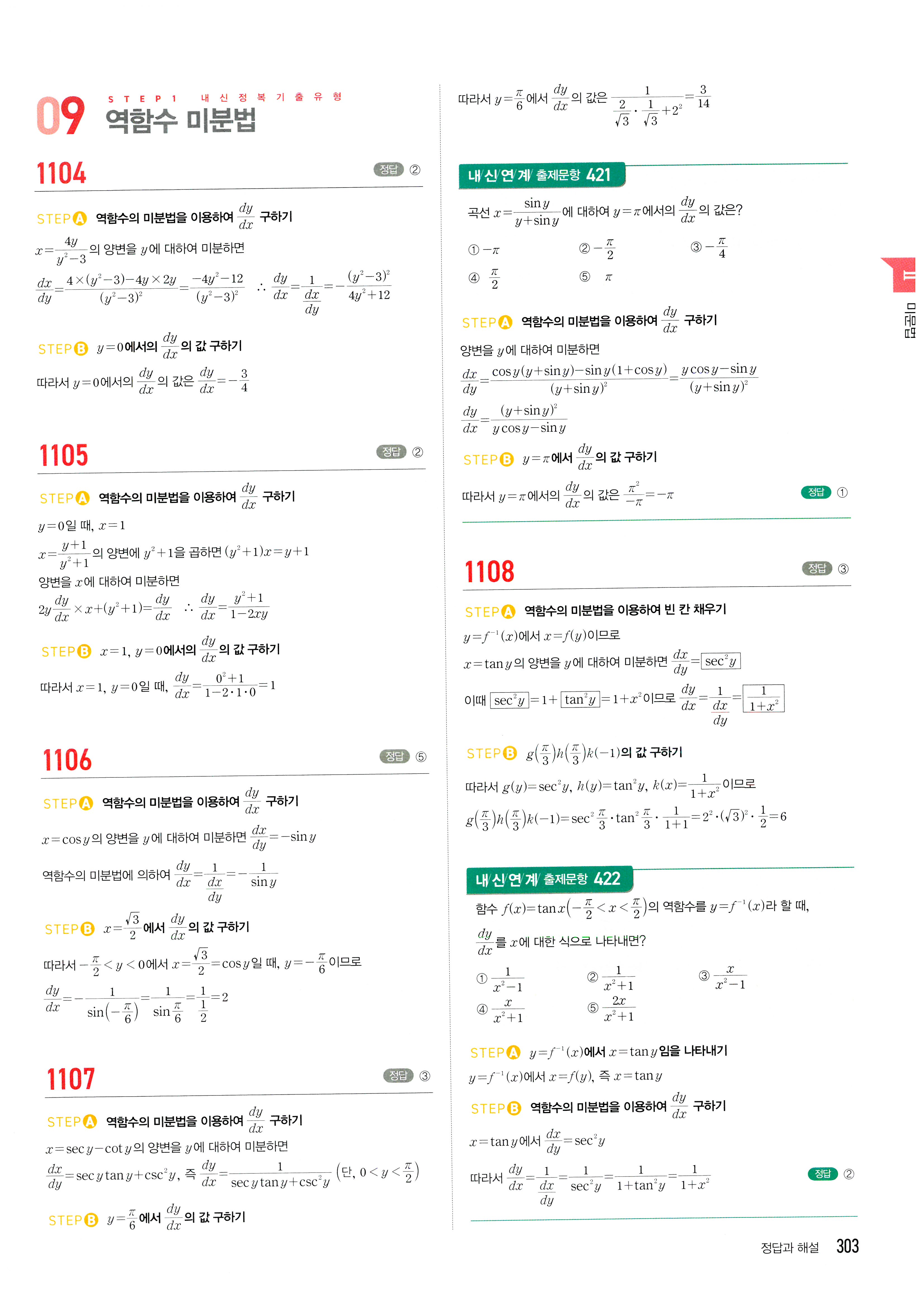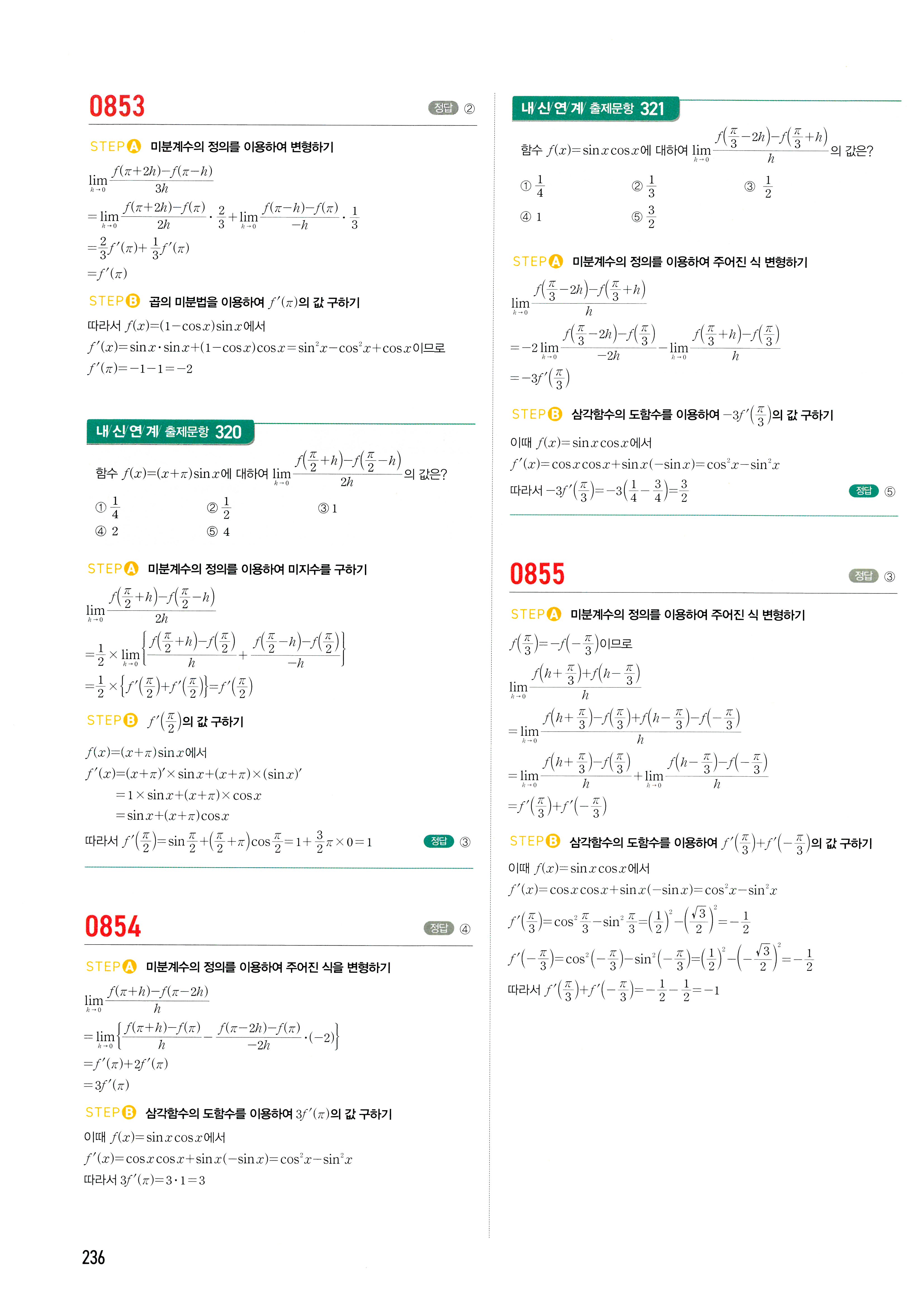 마플시너지 미적분 중반부 답지 해설지 사진답지 빠른답지 모바일최적화