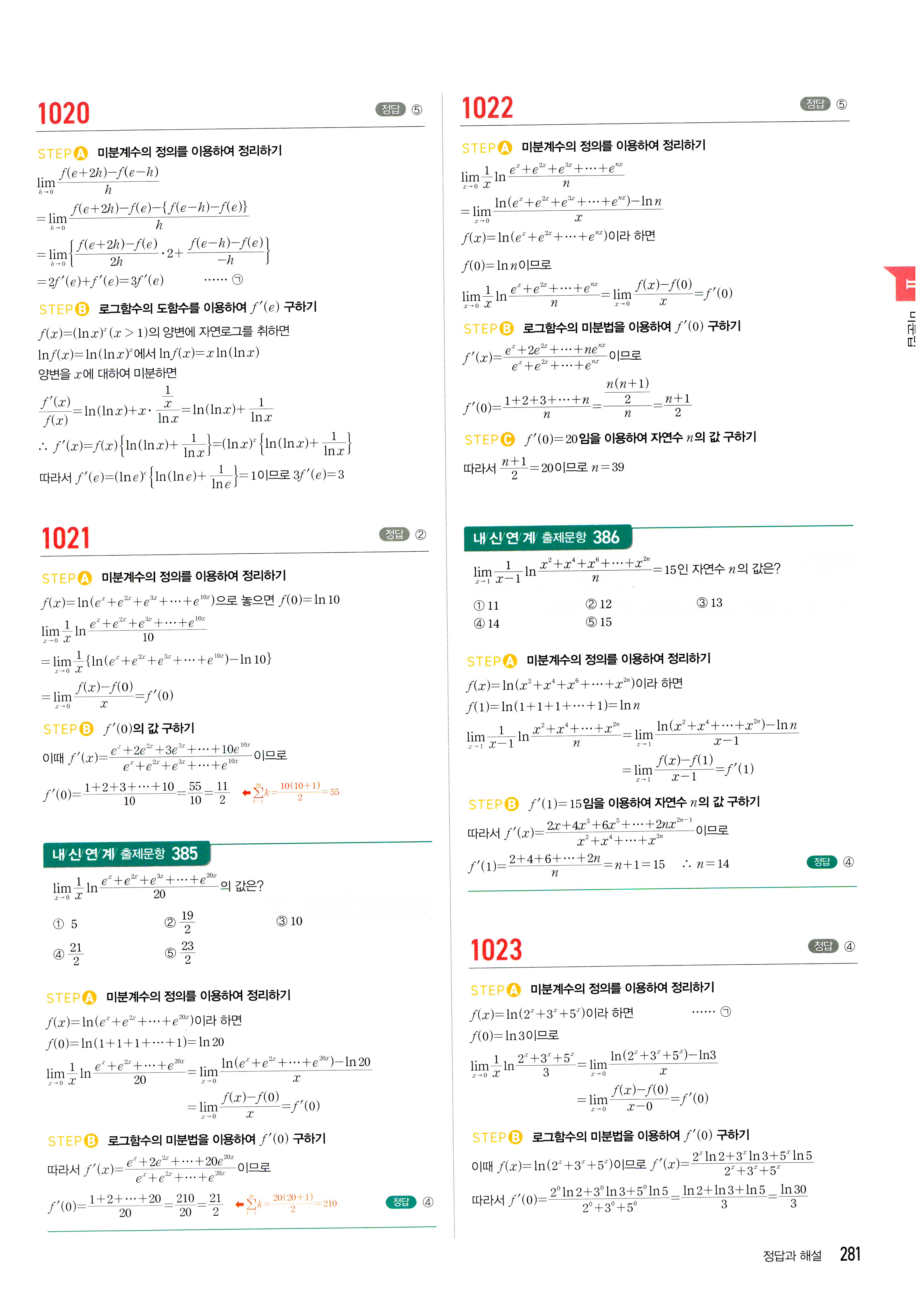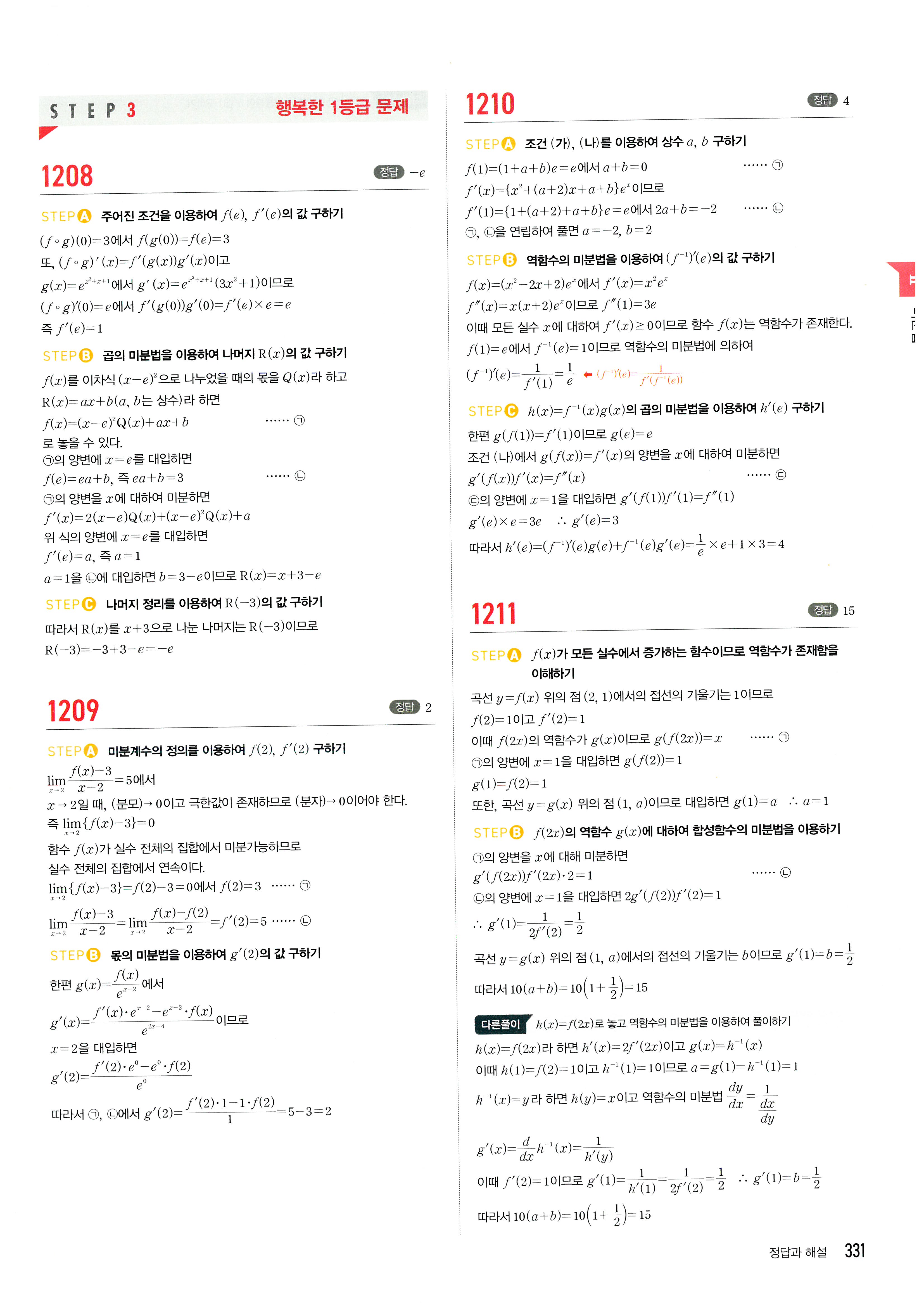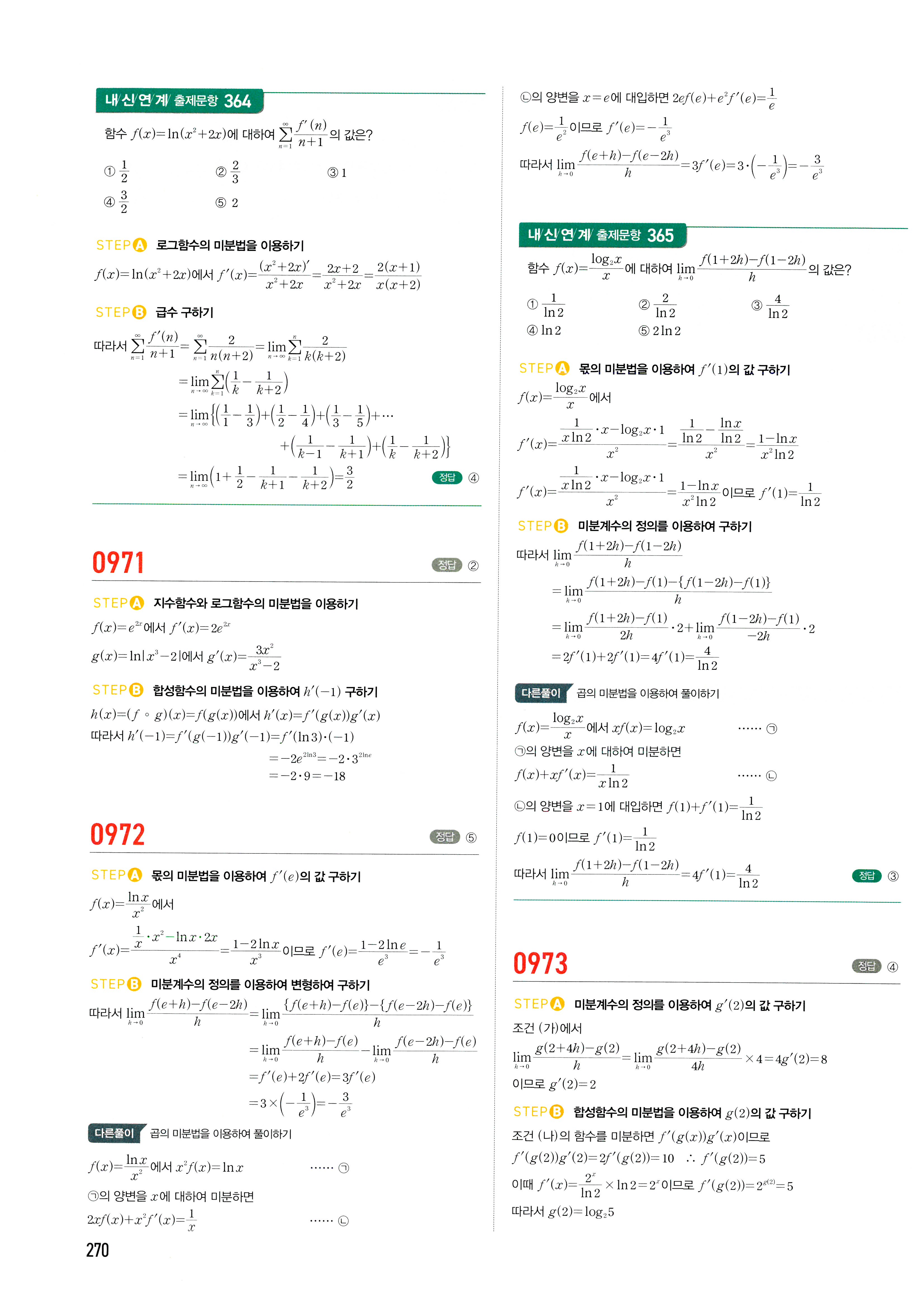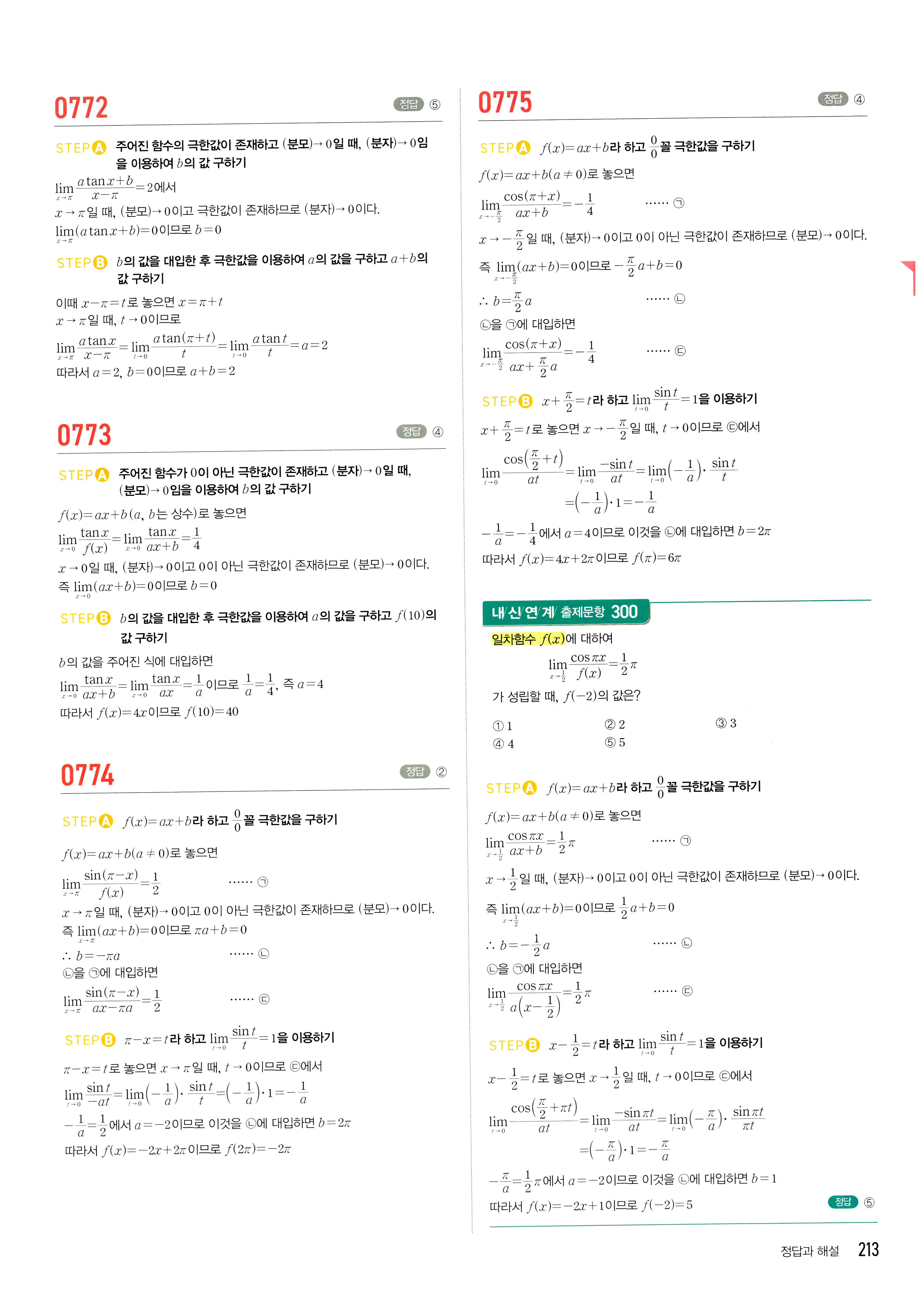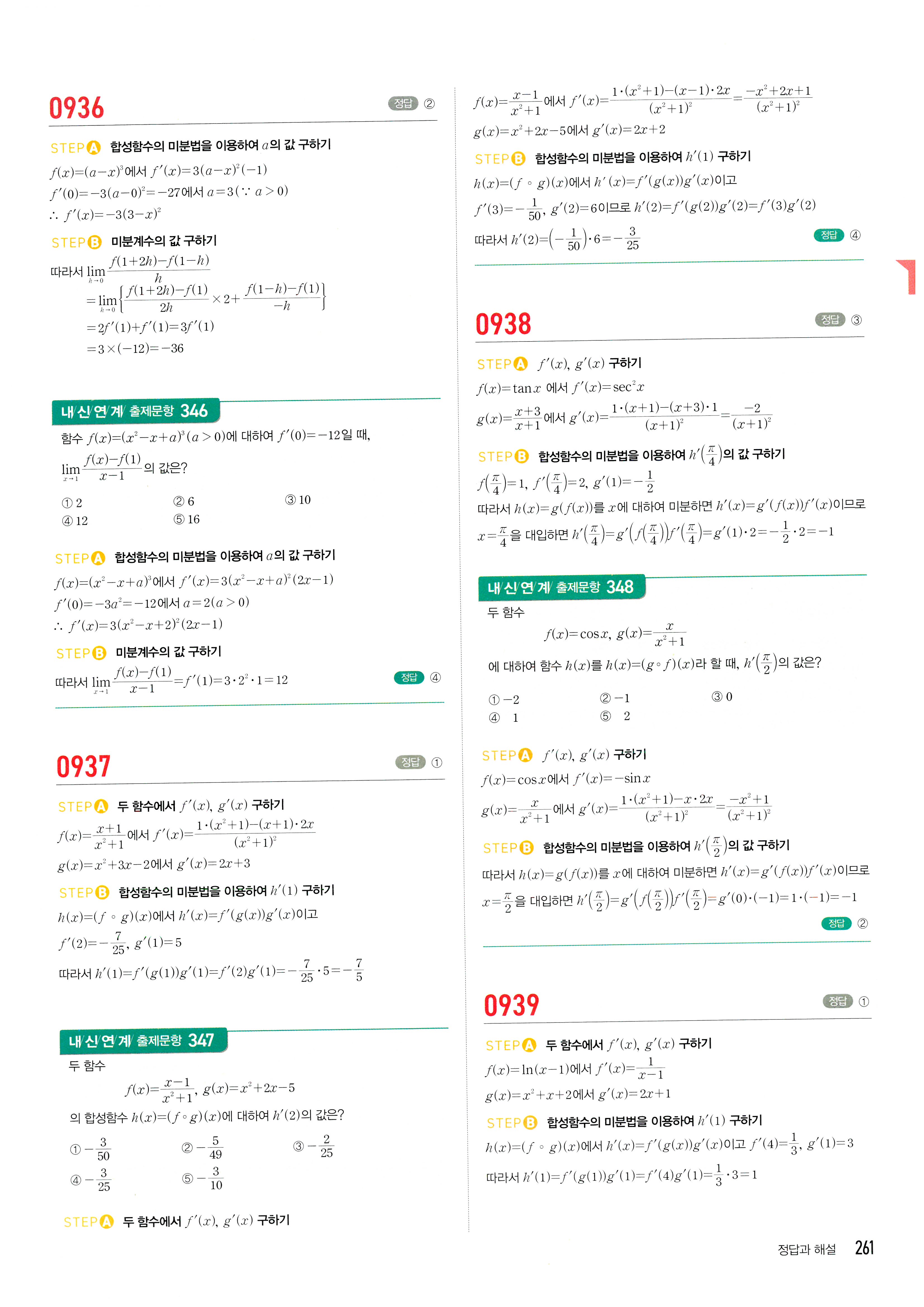 마플시너지 미적분 중반부 답지 해설지 사진답지 빠른답지 모바일최적화