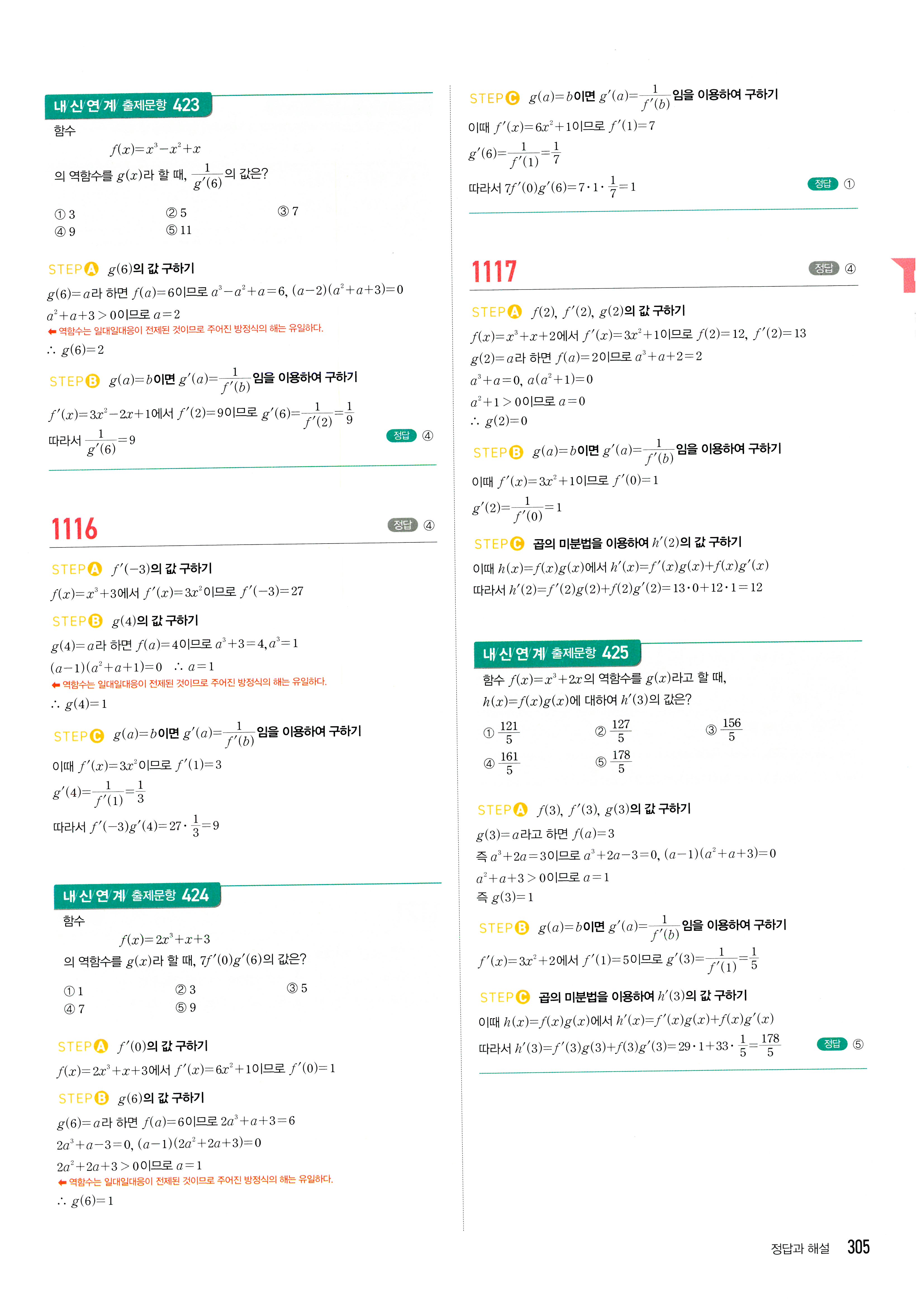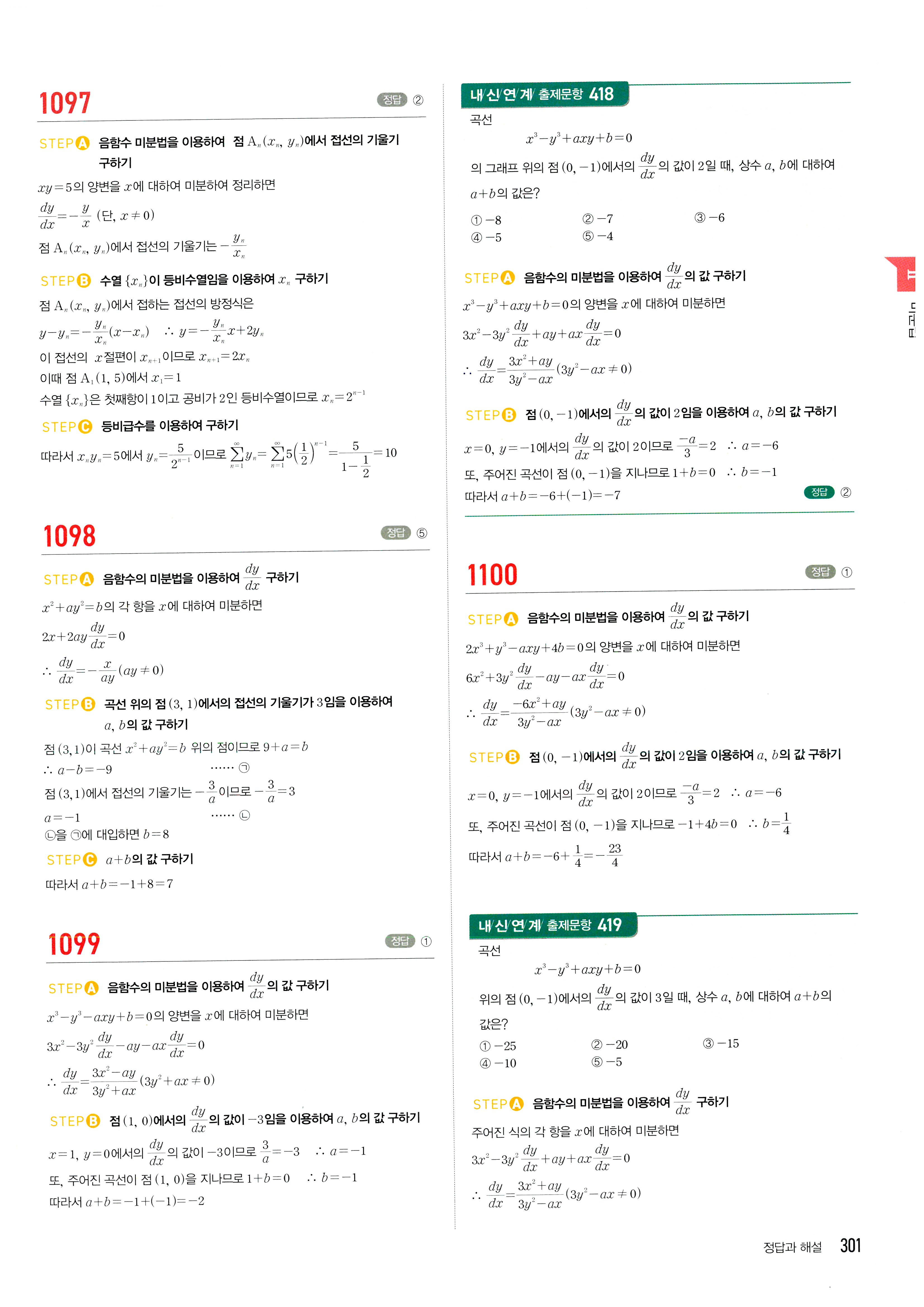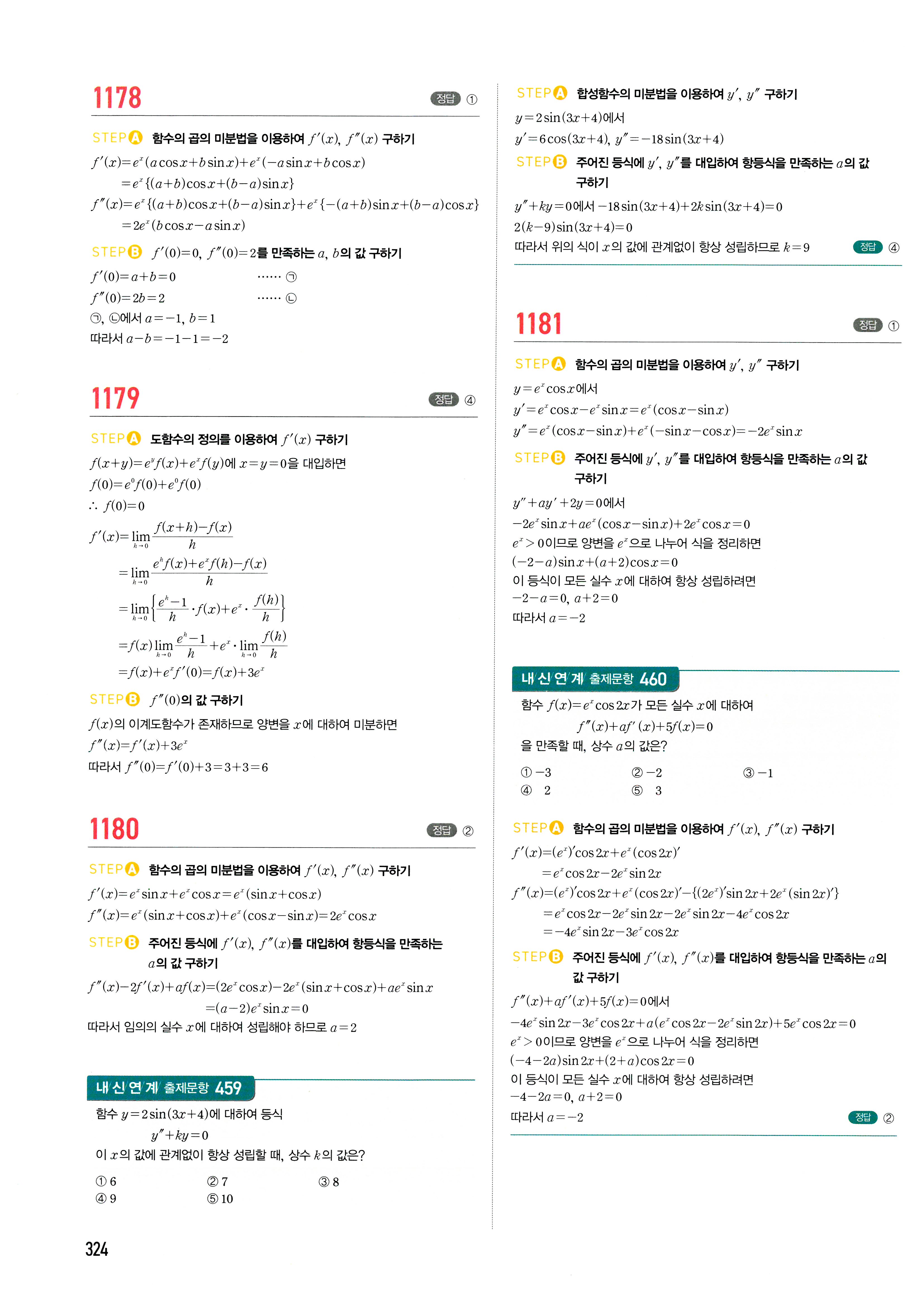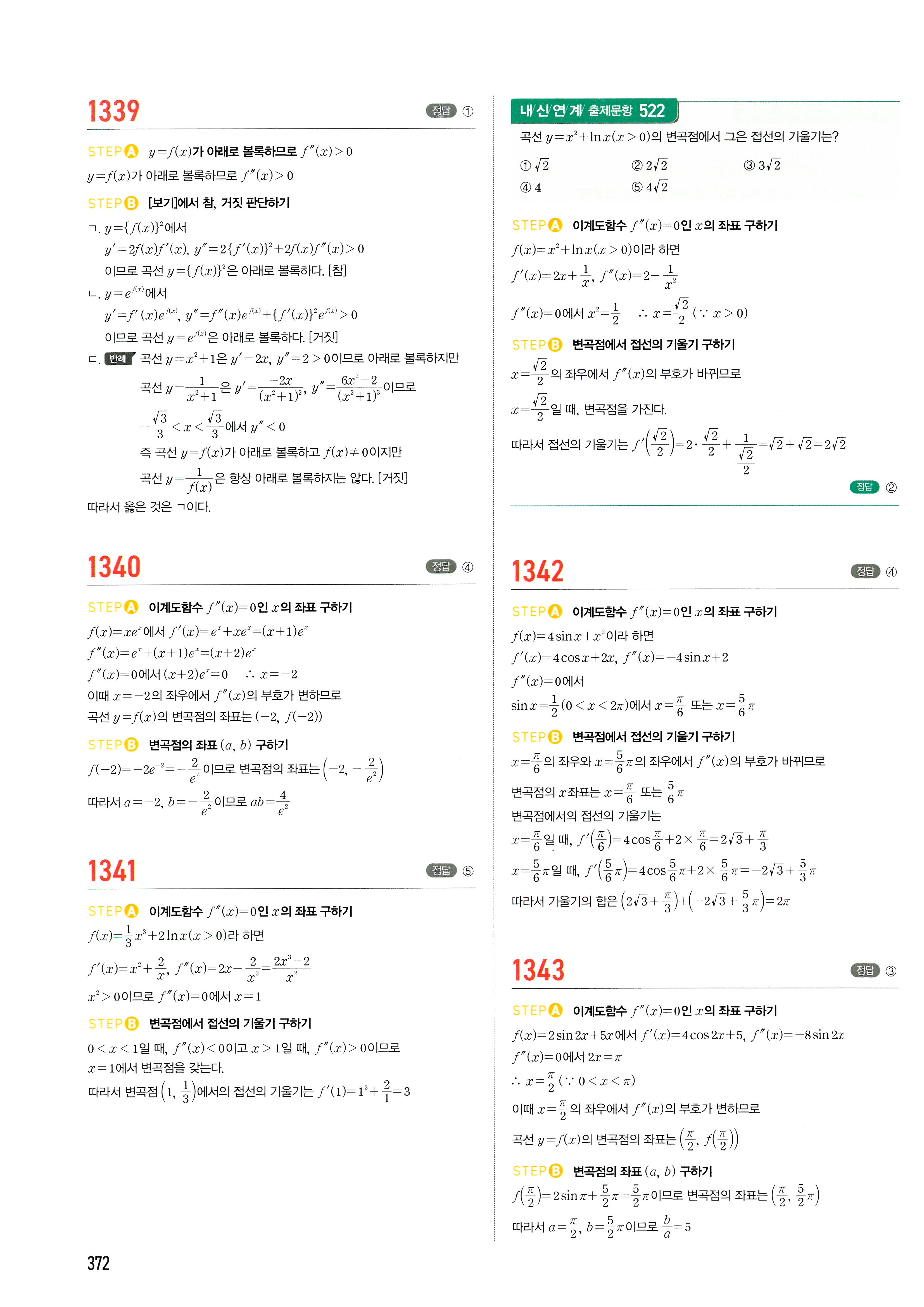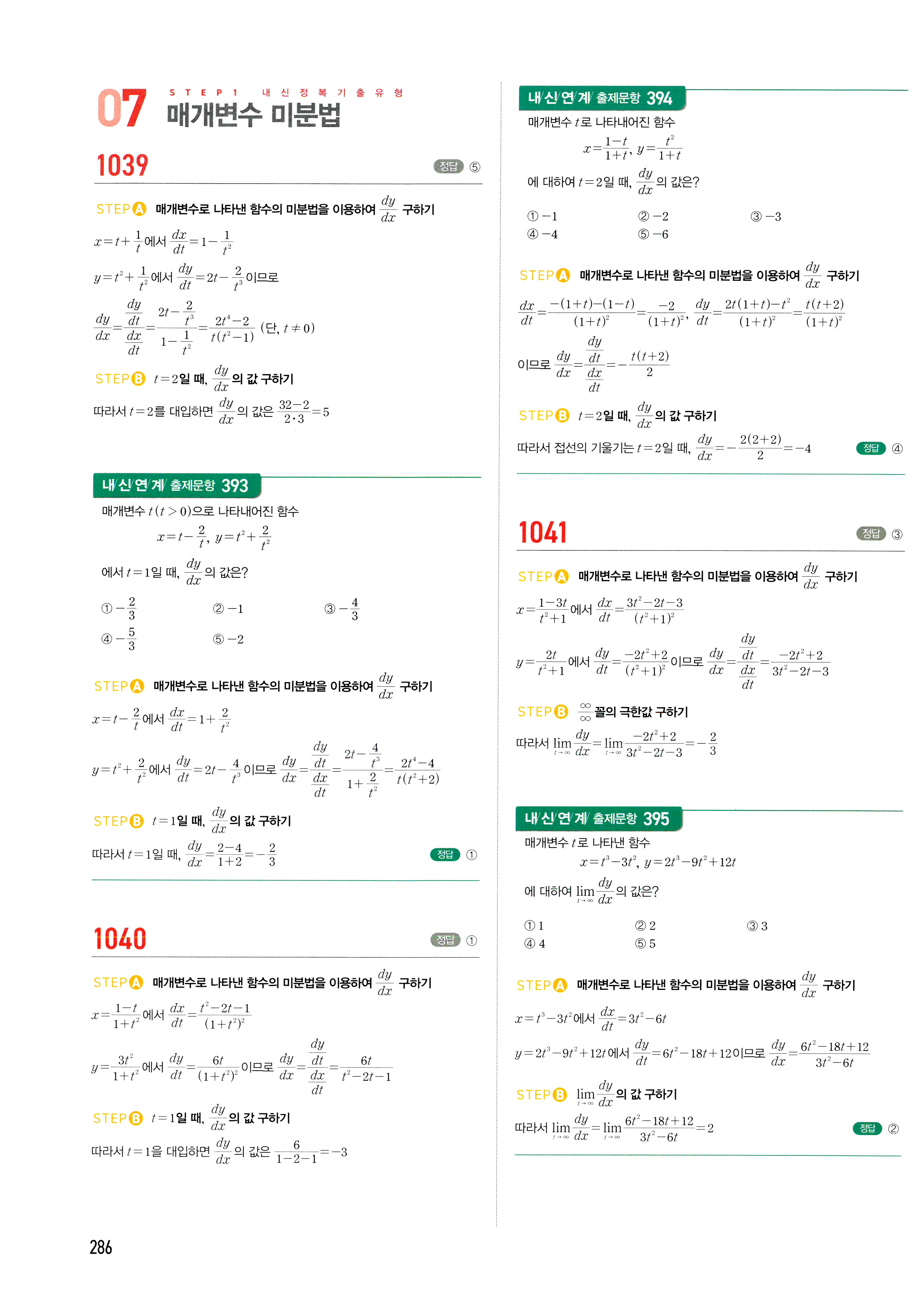 마플시너지 미적분 중반부 답지 해설지 사진답지 빠른답지 모바일최적화