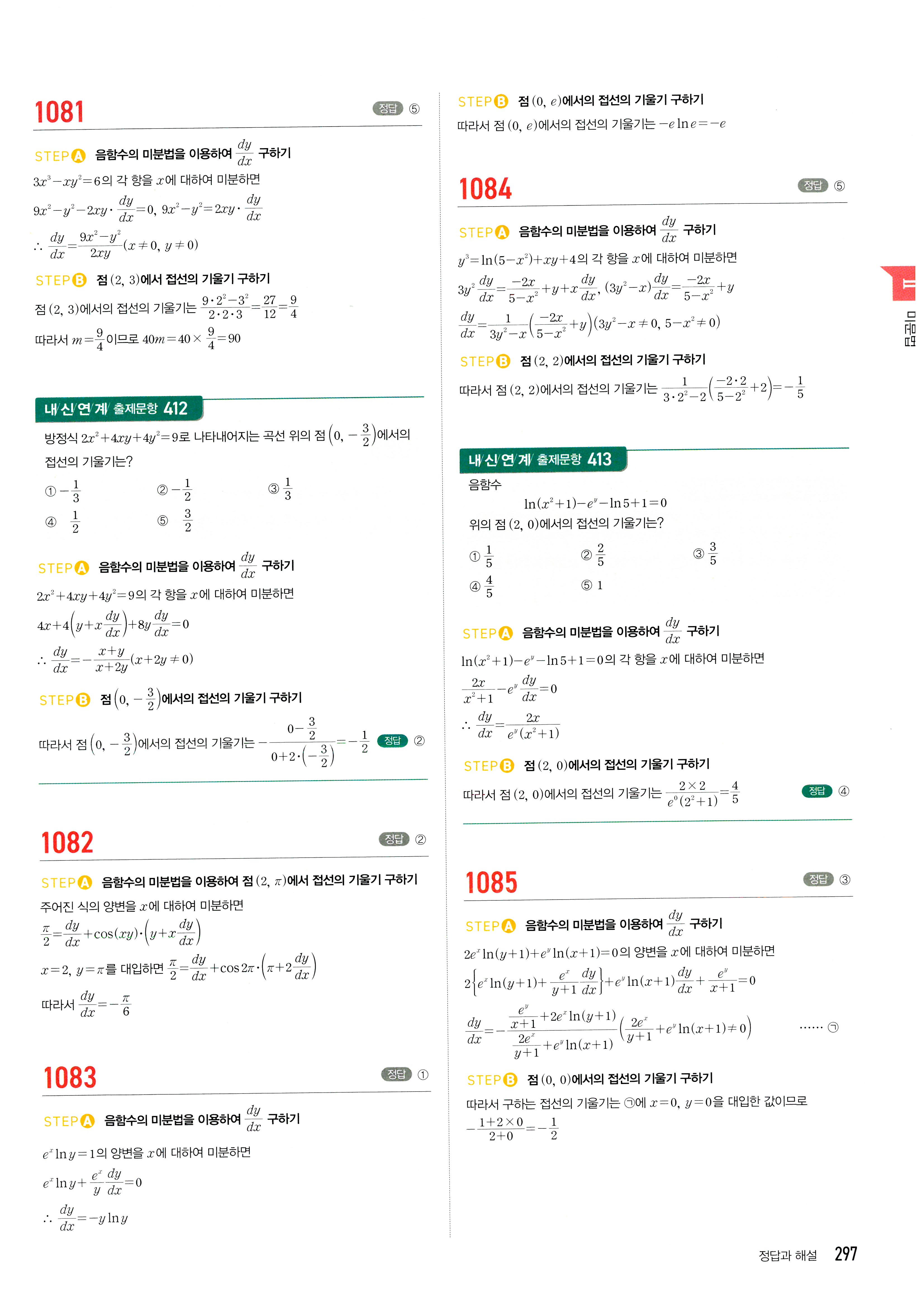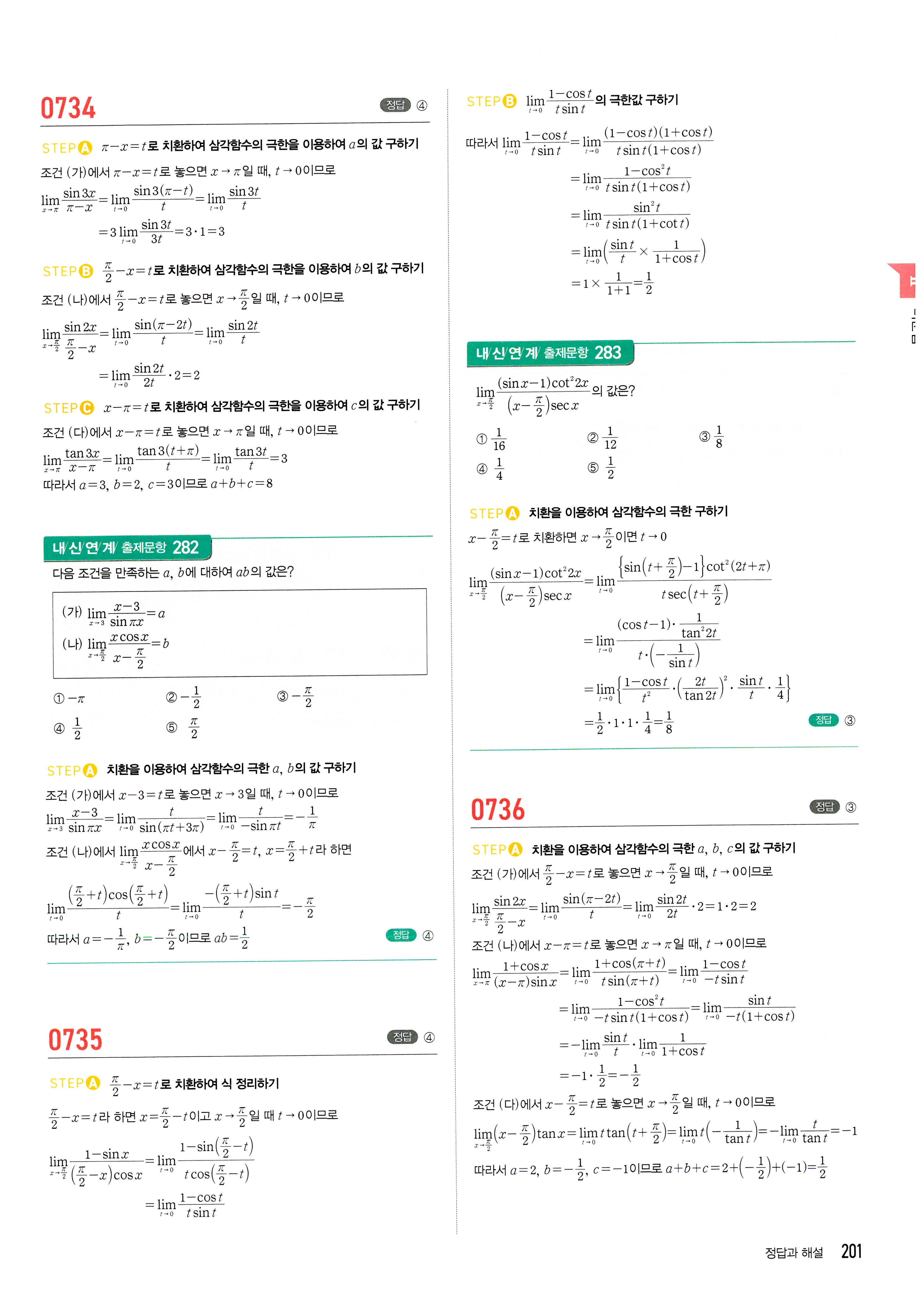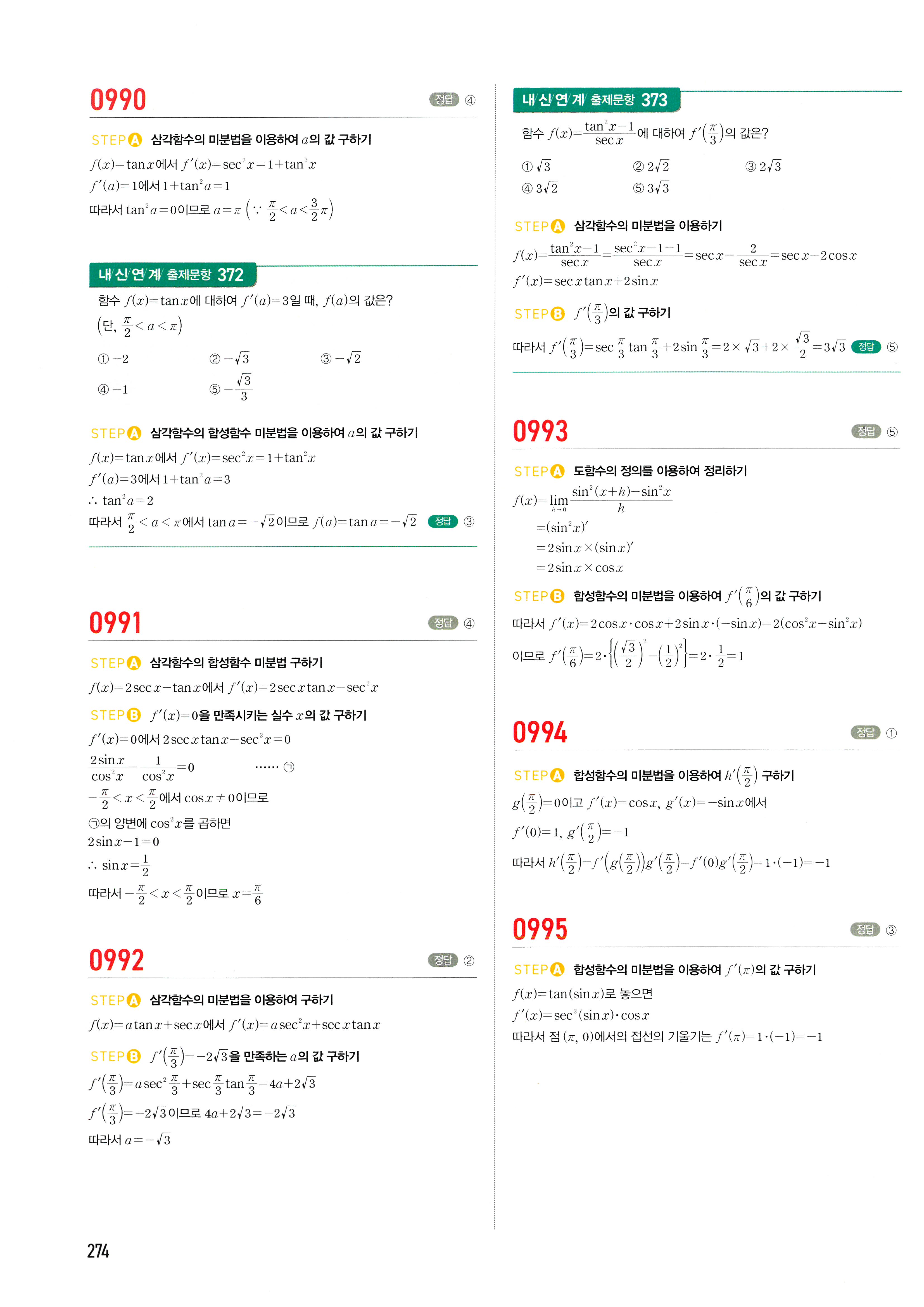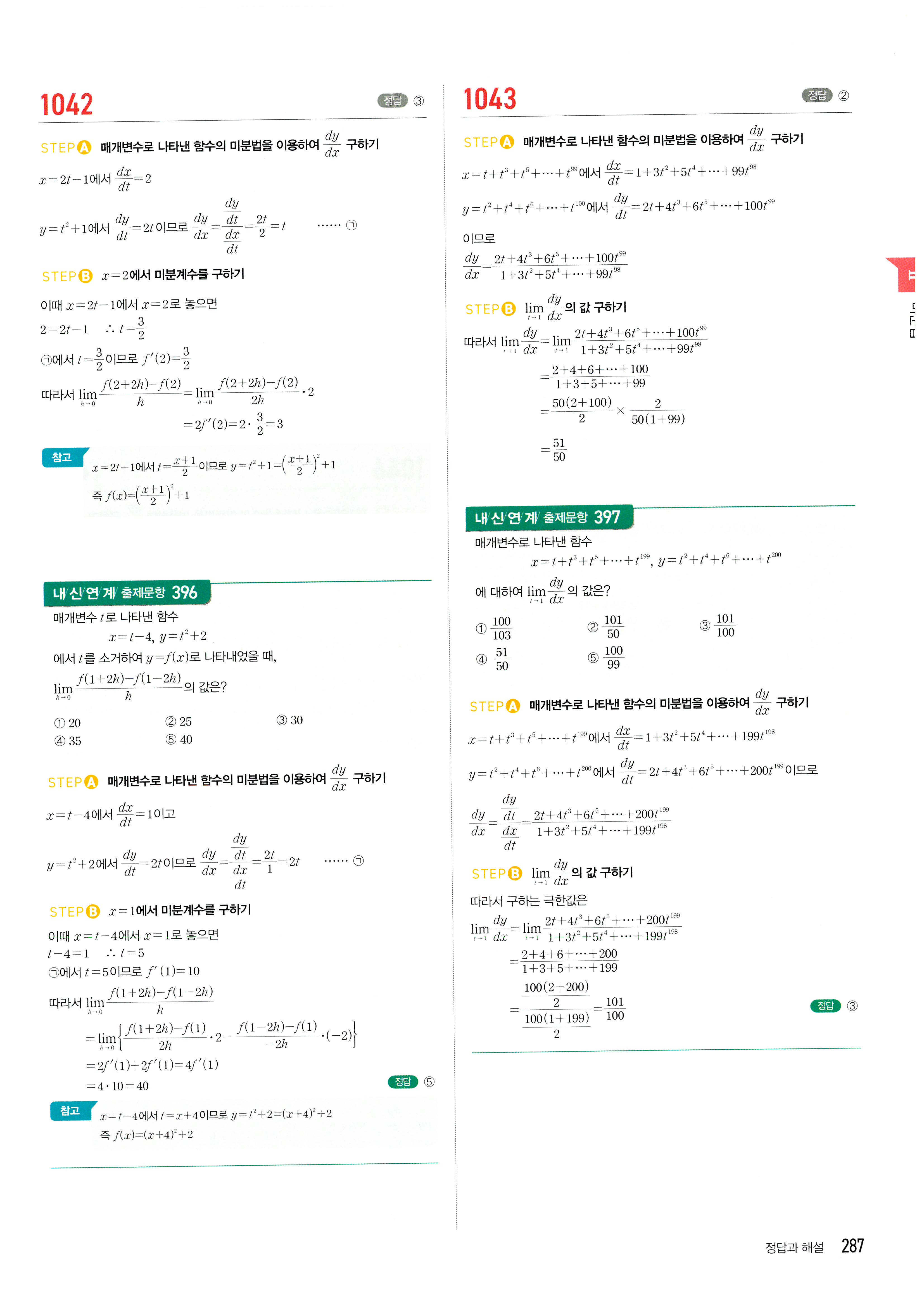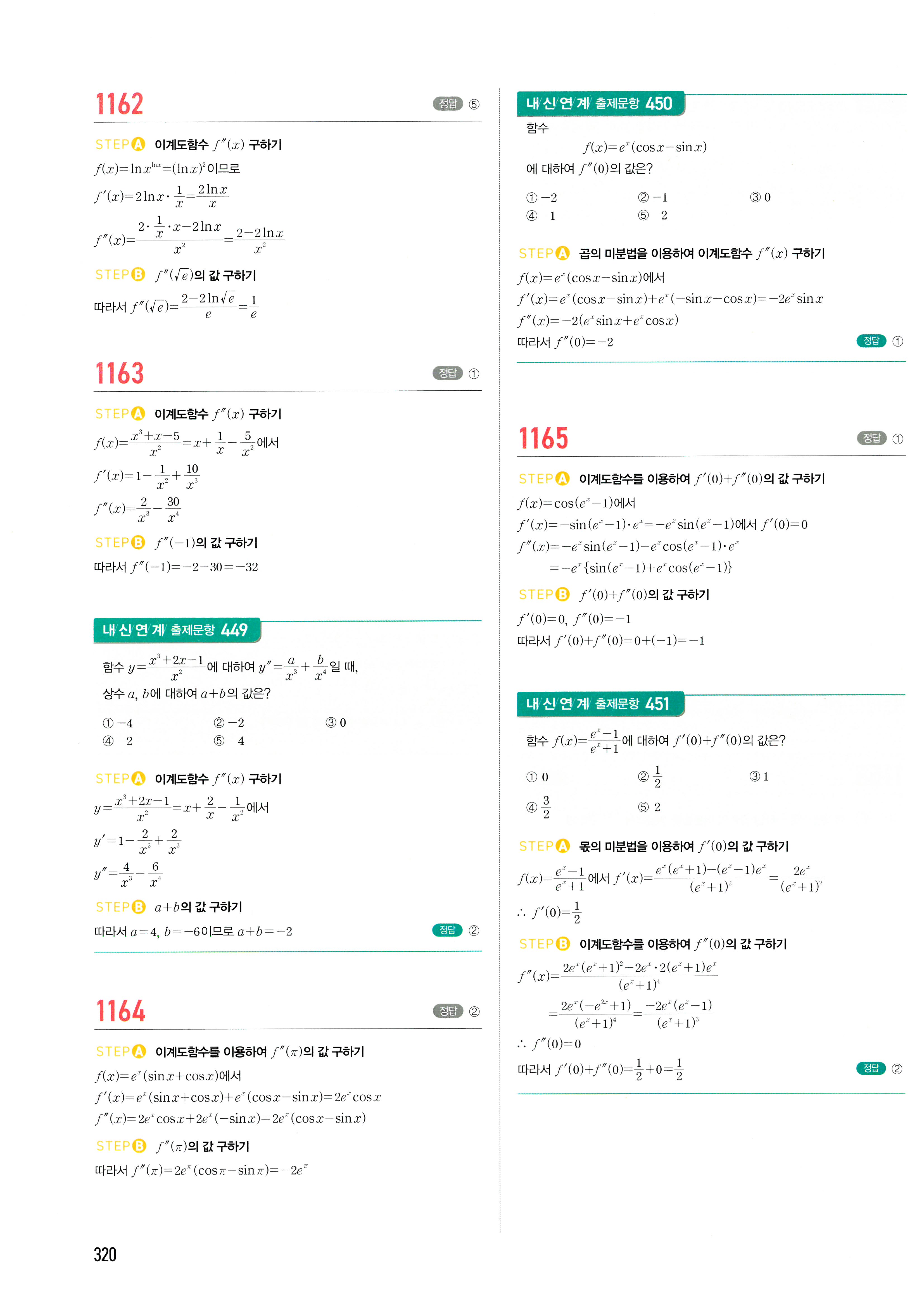 마플시너지 미적분 중반부 답지 해설지 사진답지 빠른답지 모바일최적화