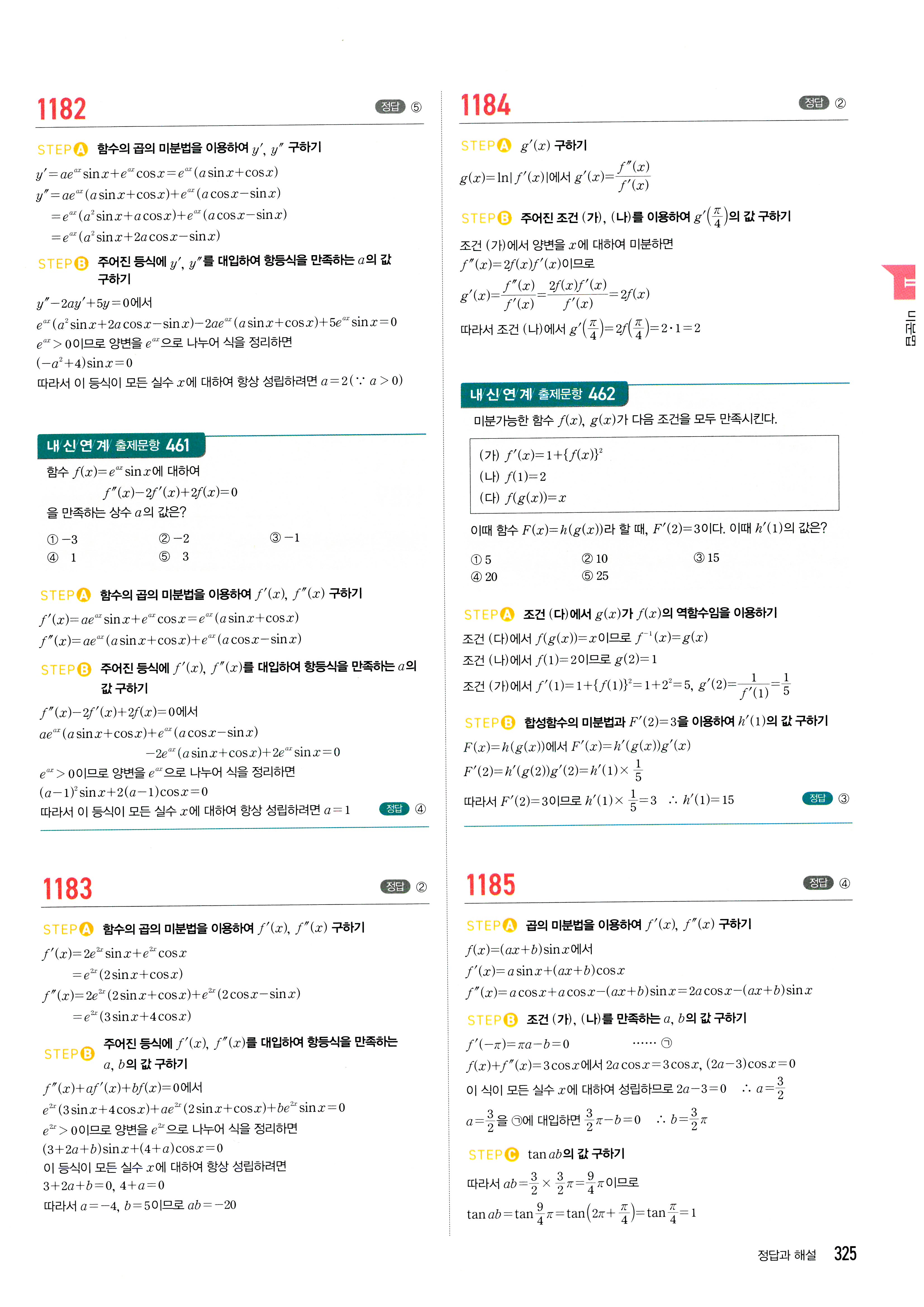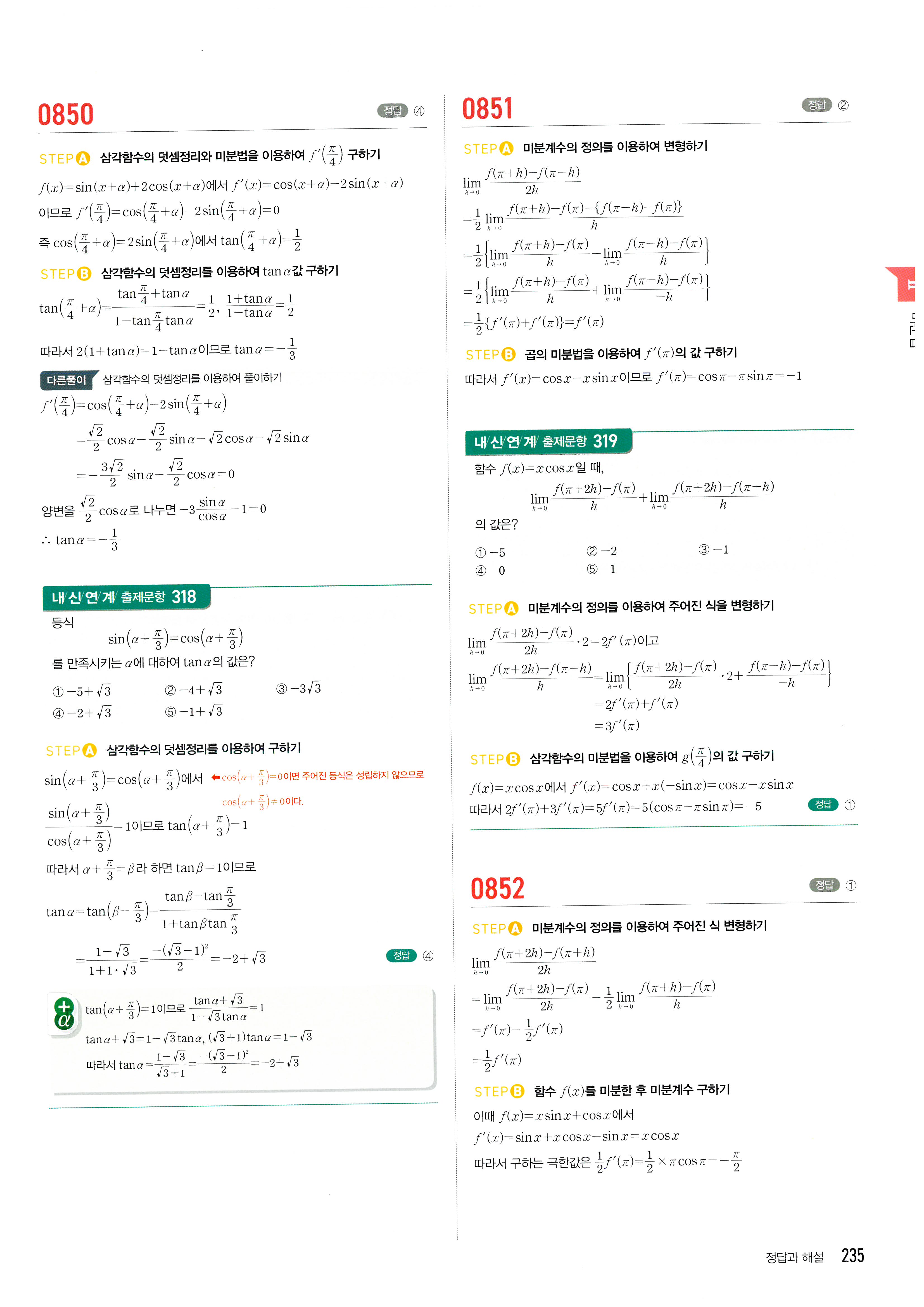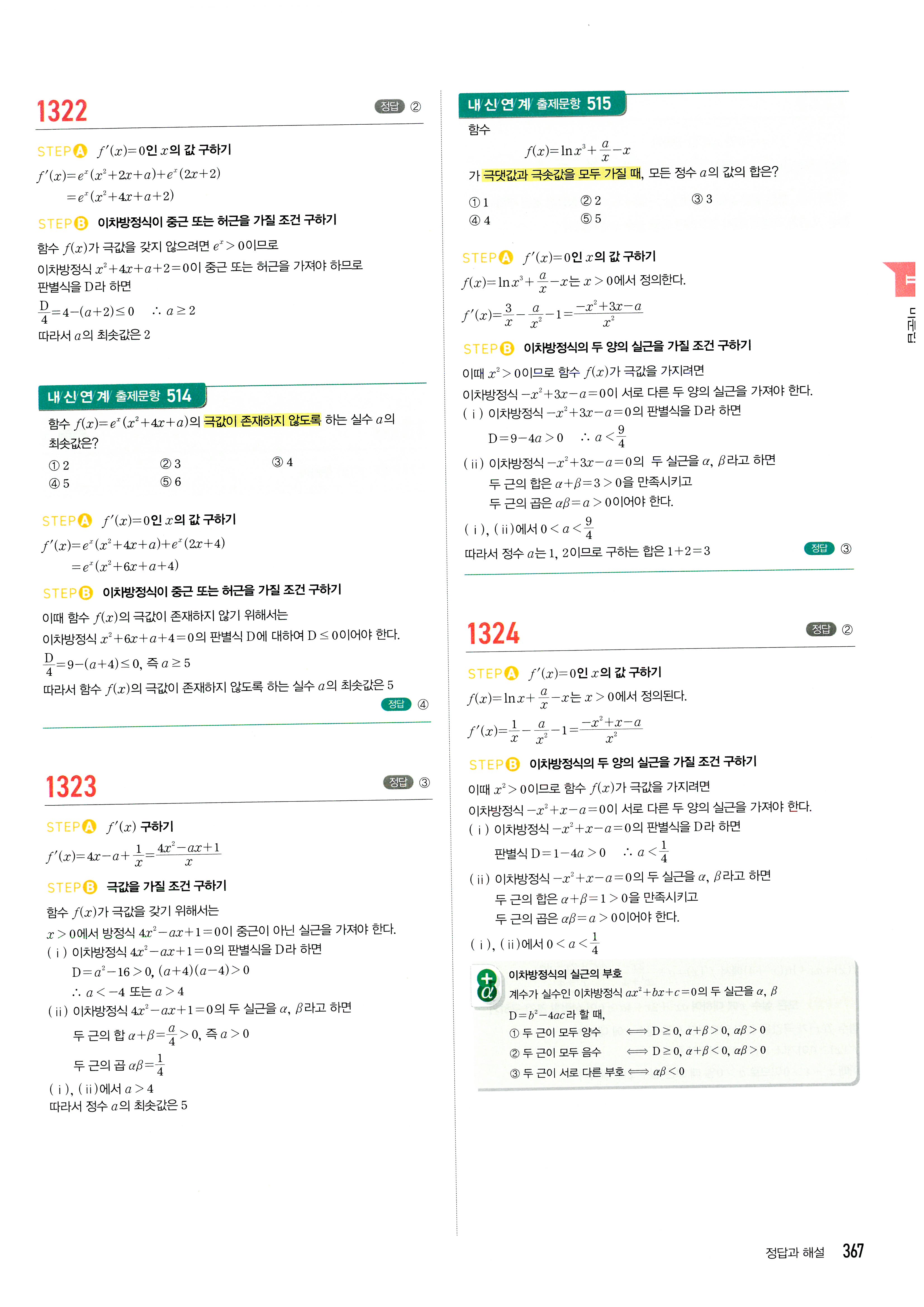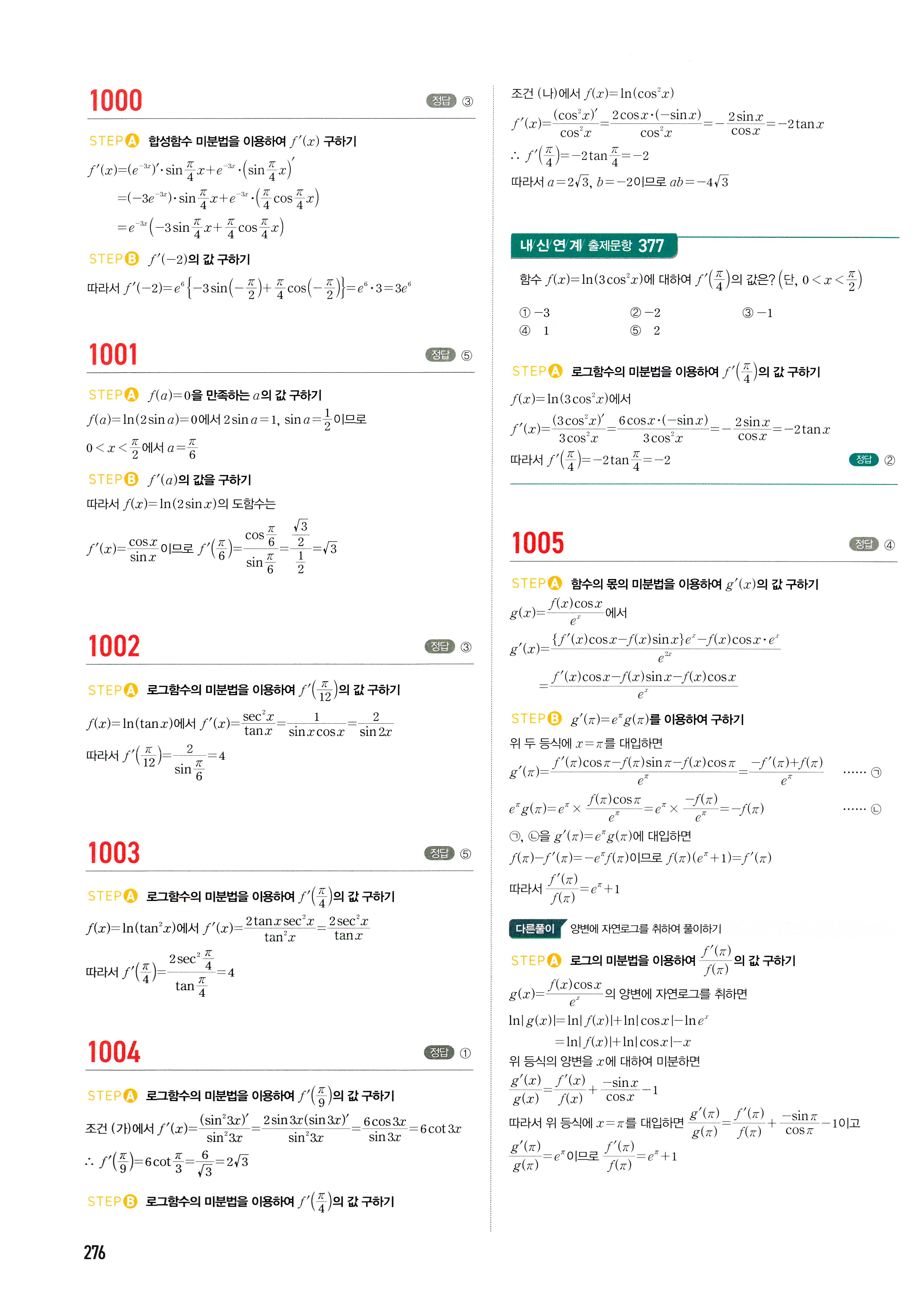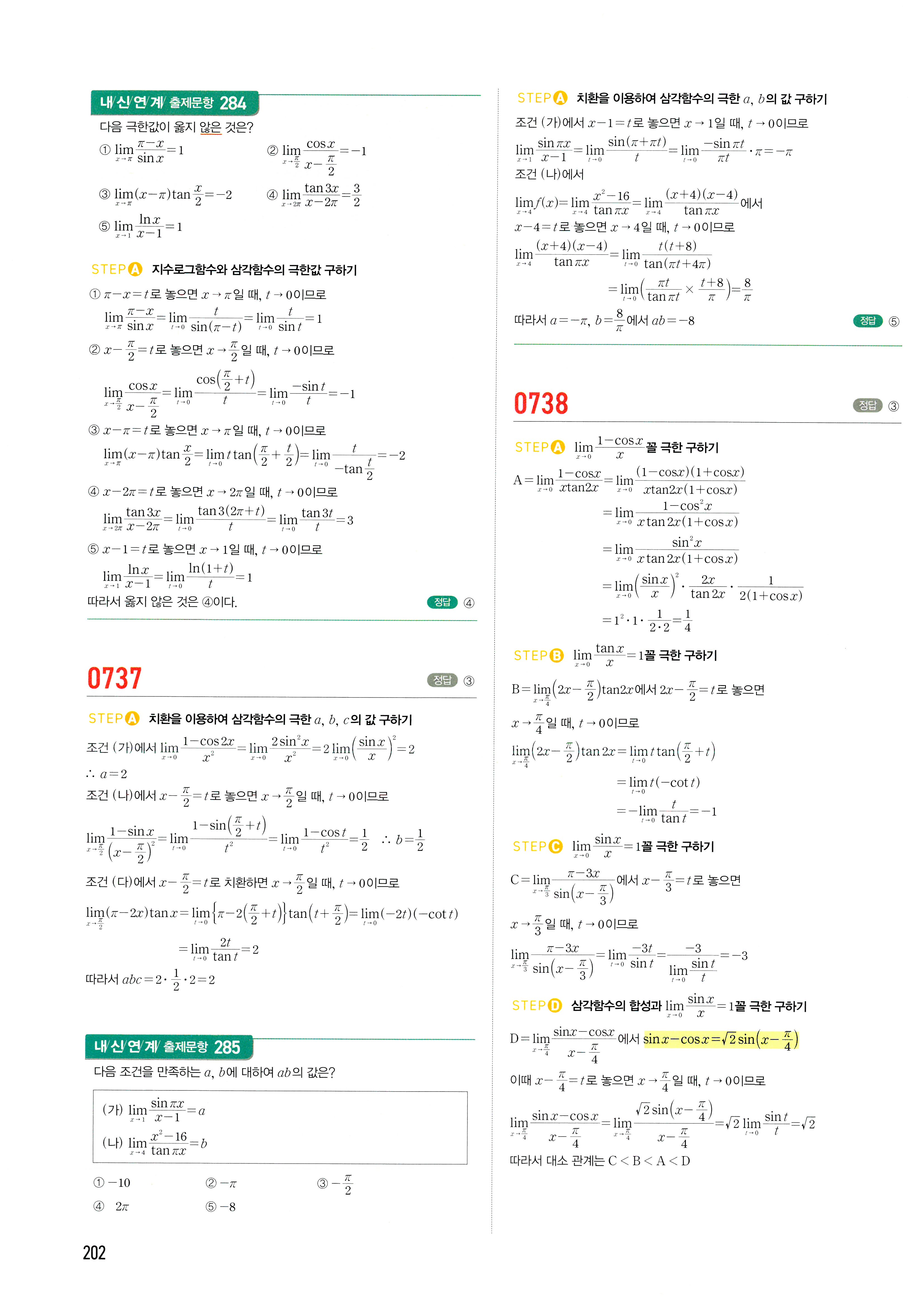 마플시너지 미적분 중반부 답지 해설지 사진답지 빠른답지 모바일최적화
