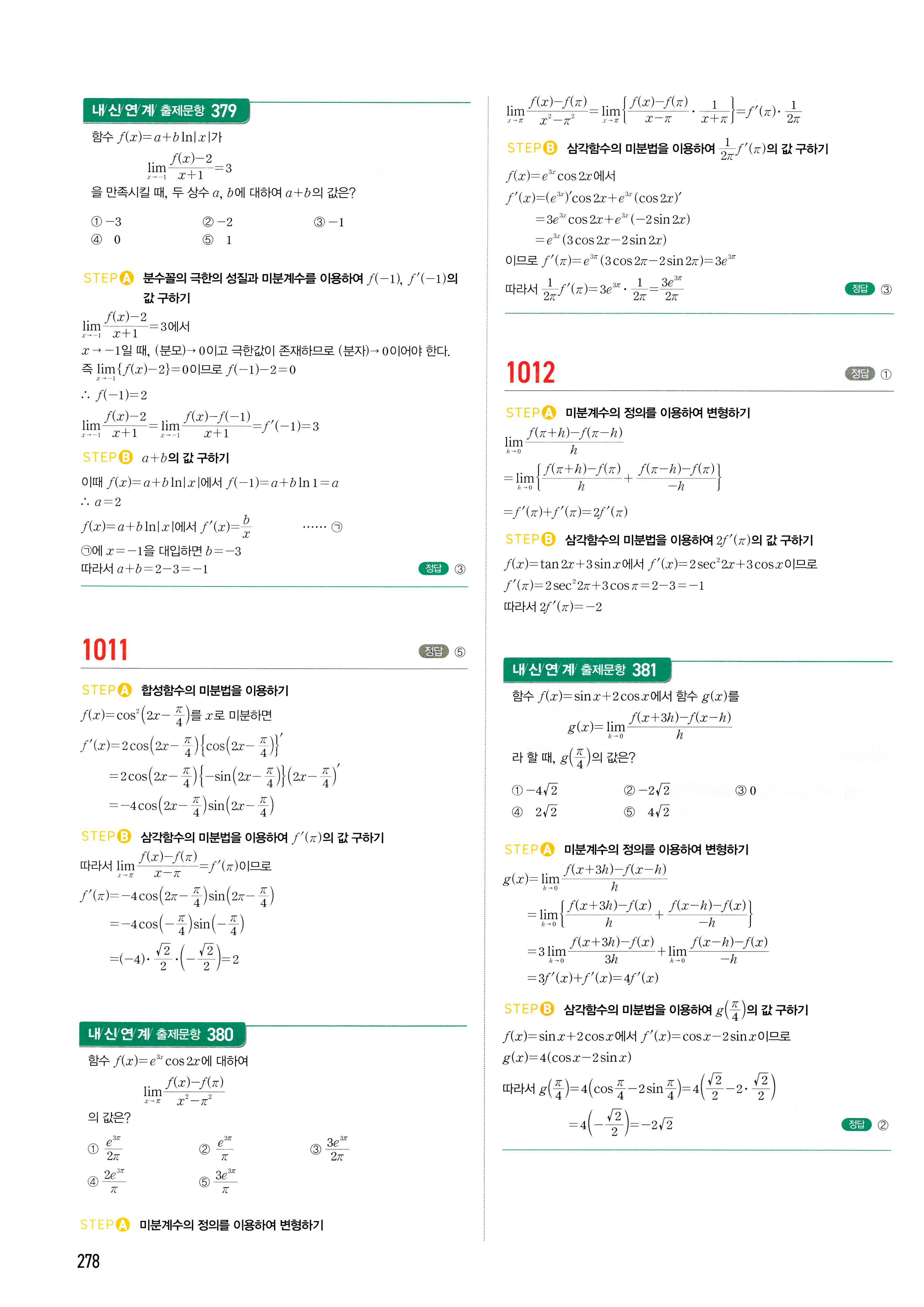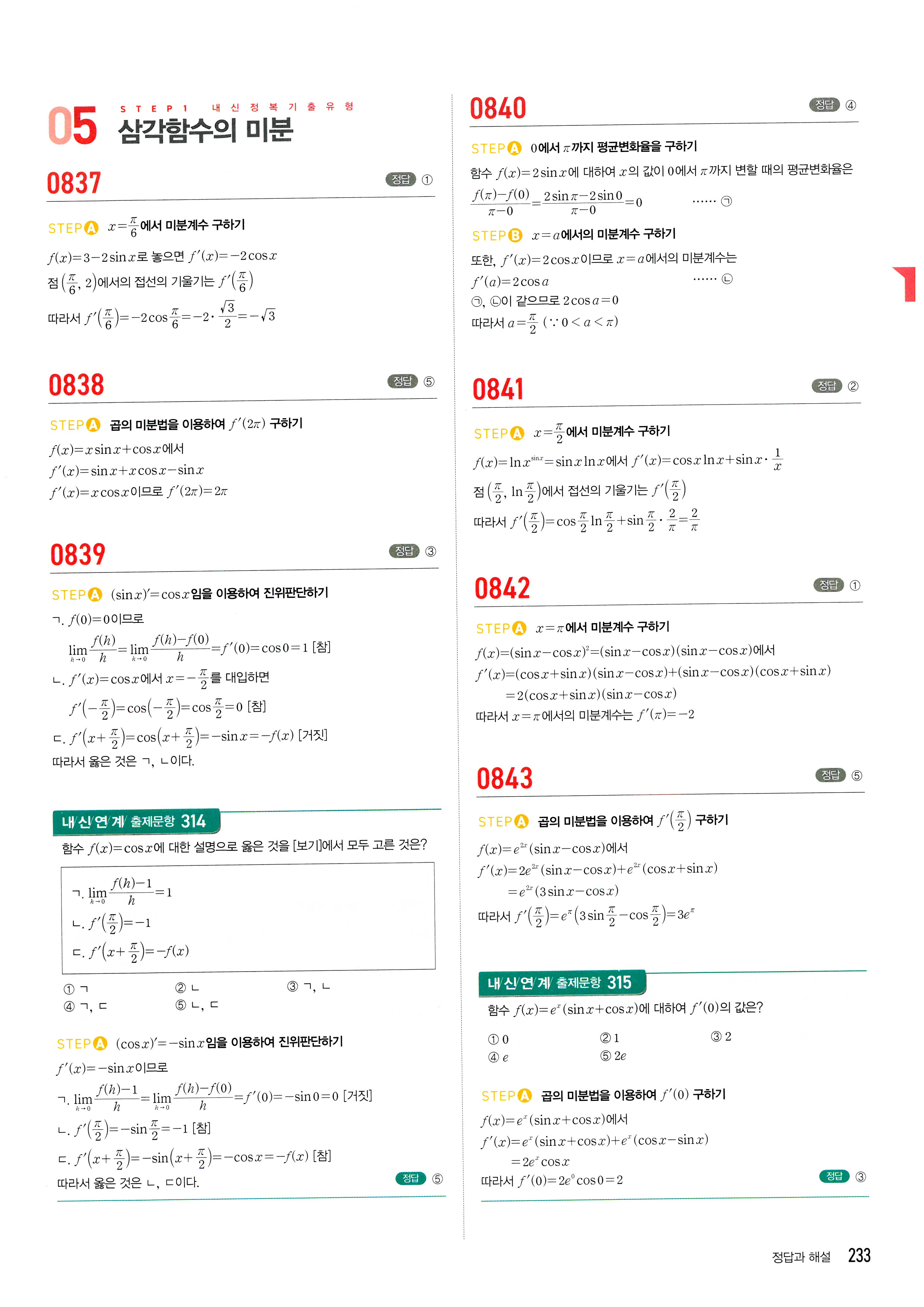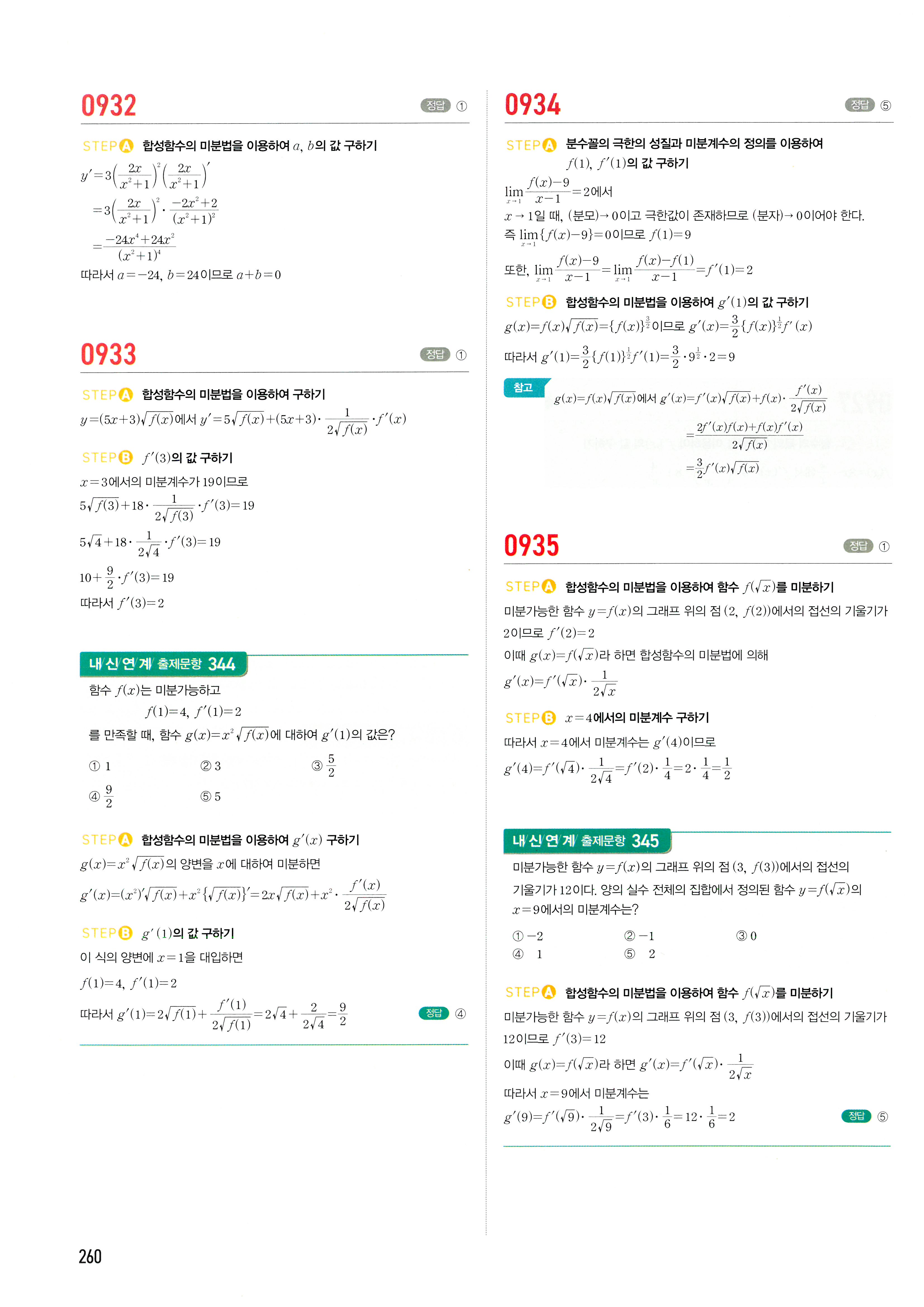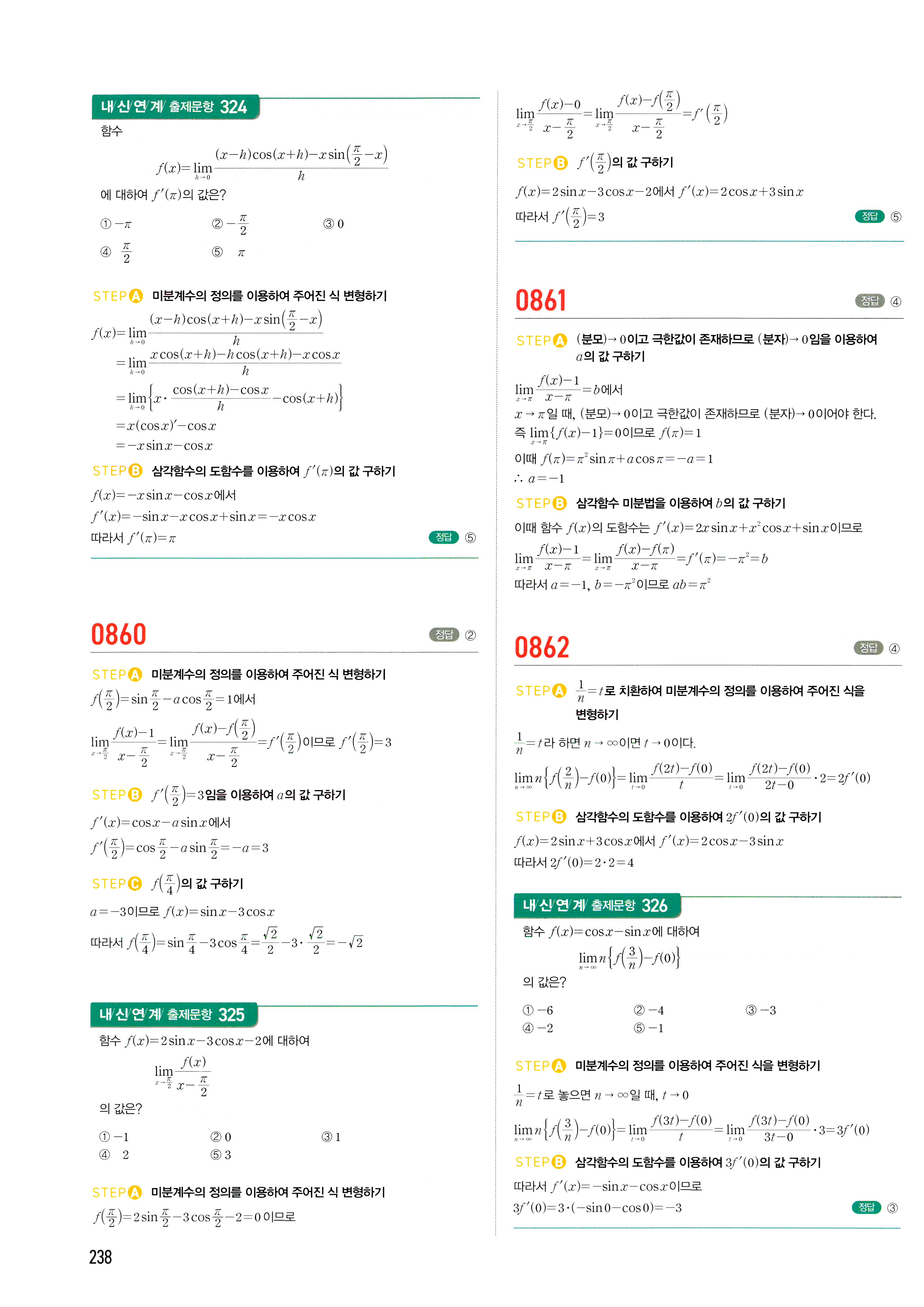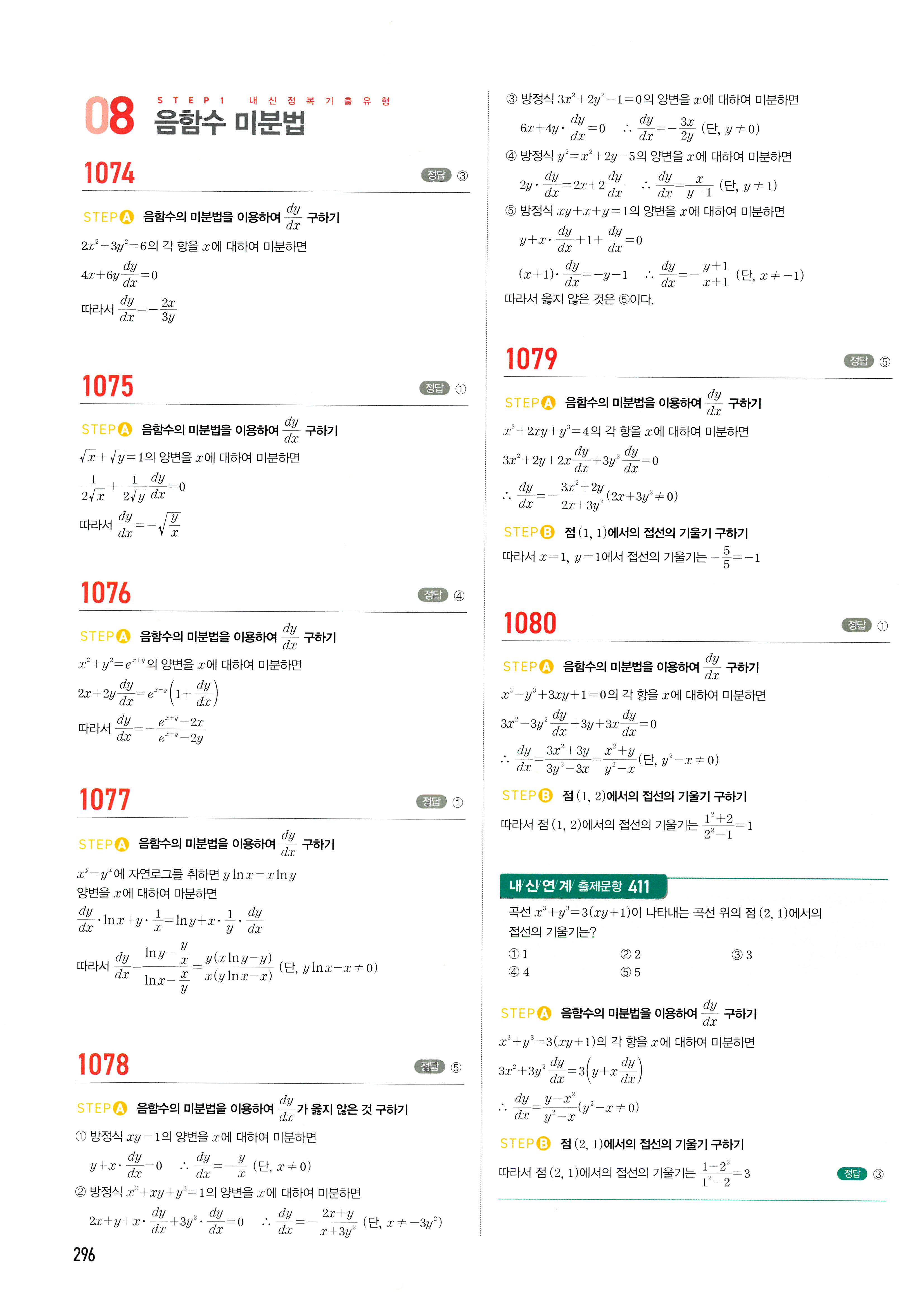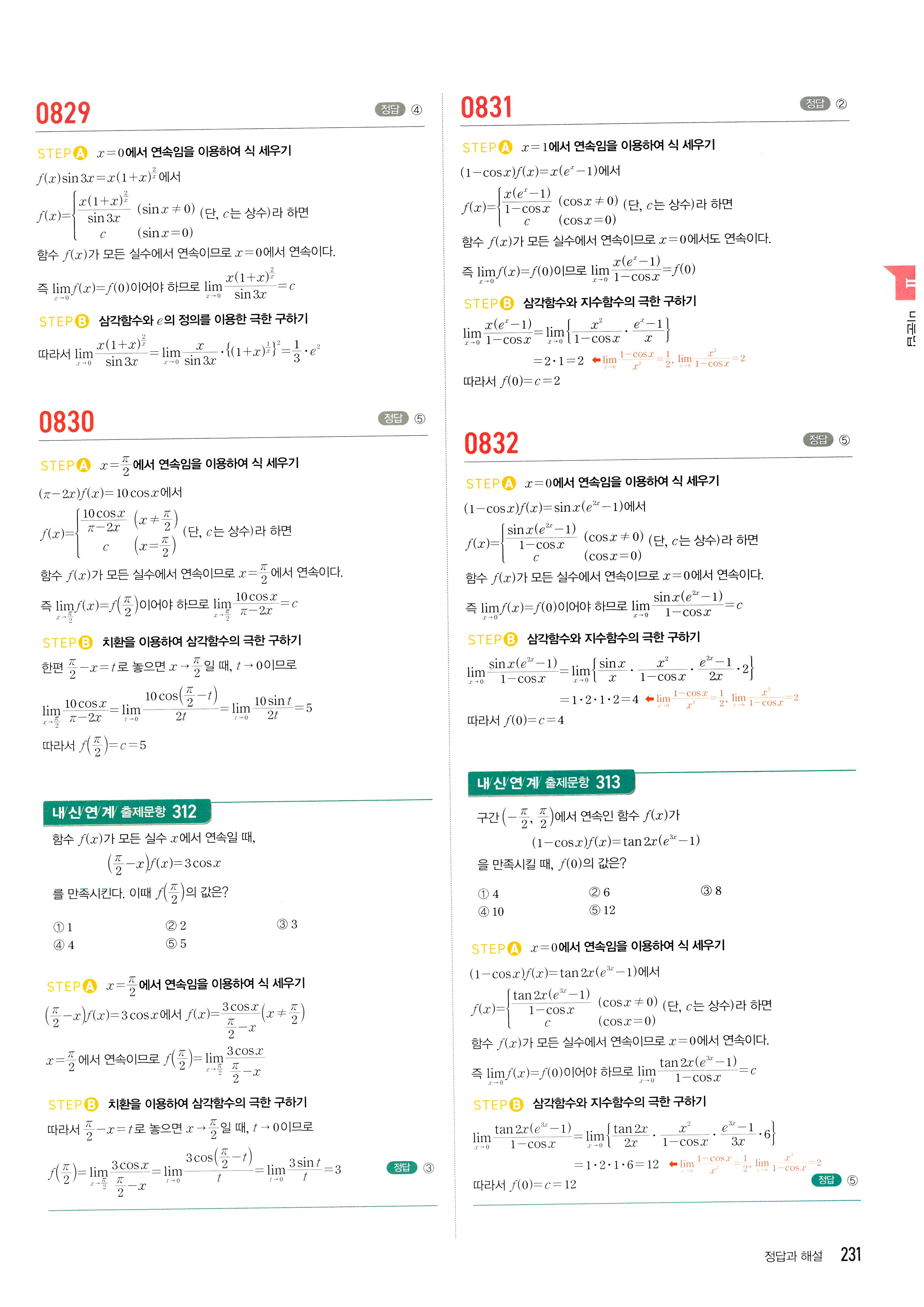 마플시너지 미적분 중반부 답지 해설지 사진답지 빠른답지 모바일최적화