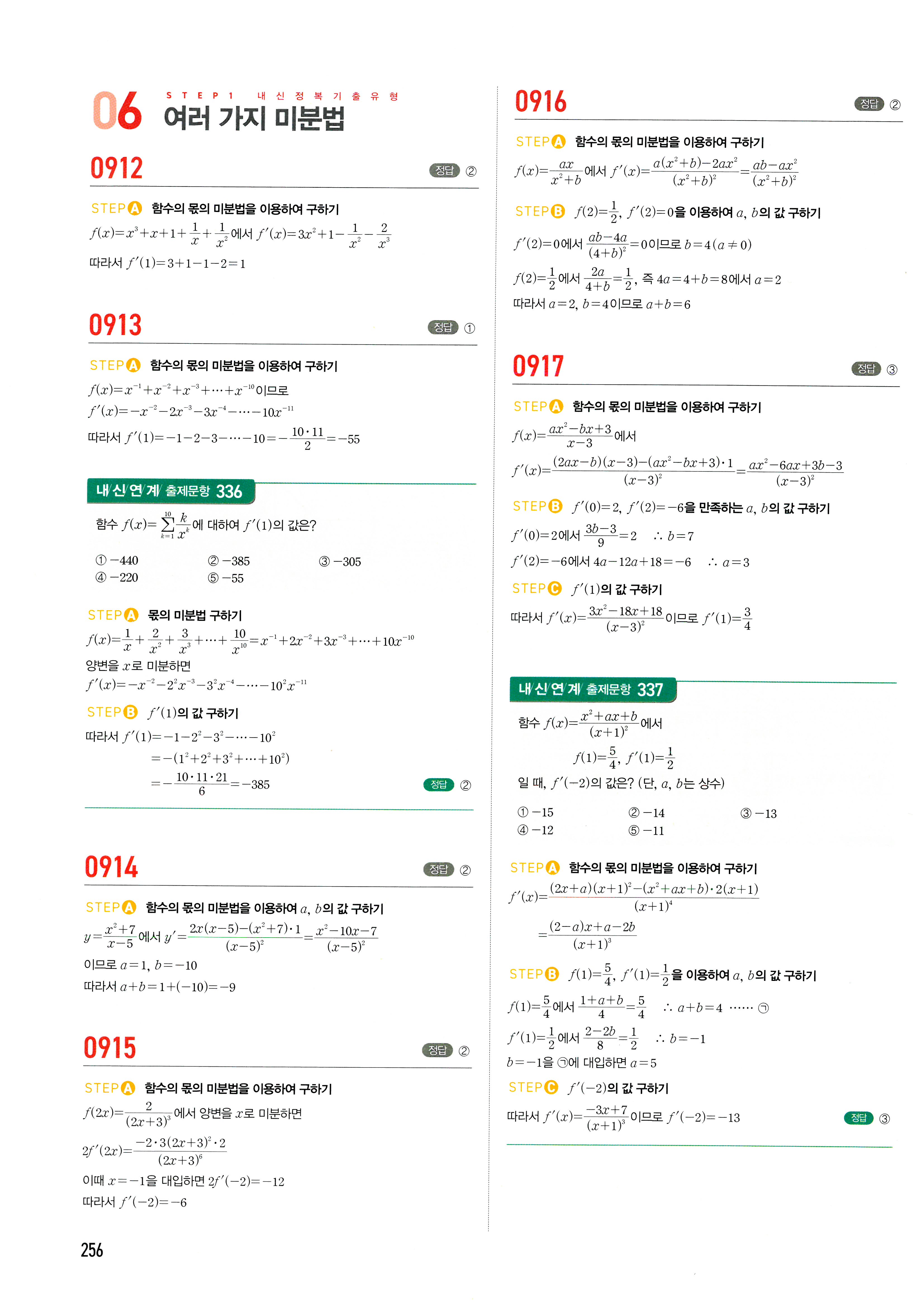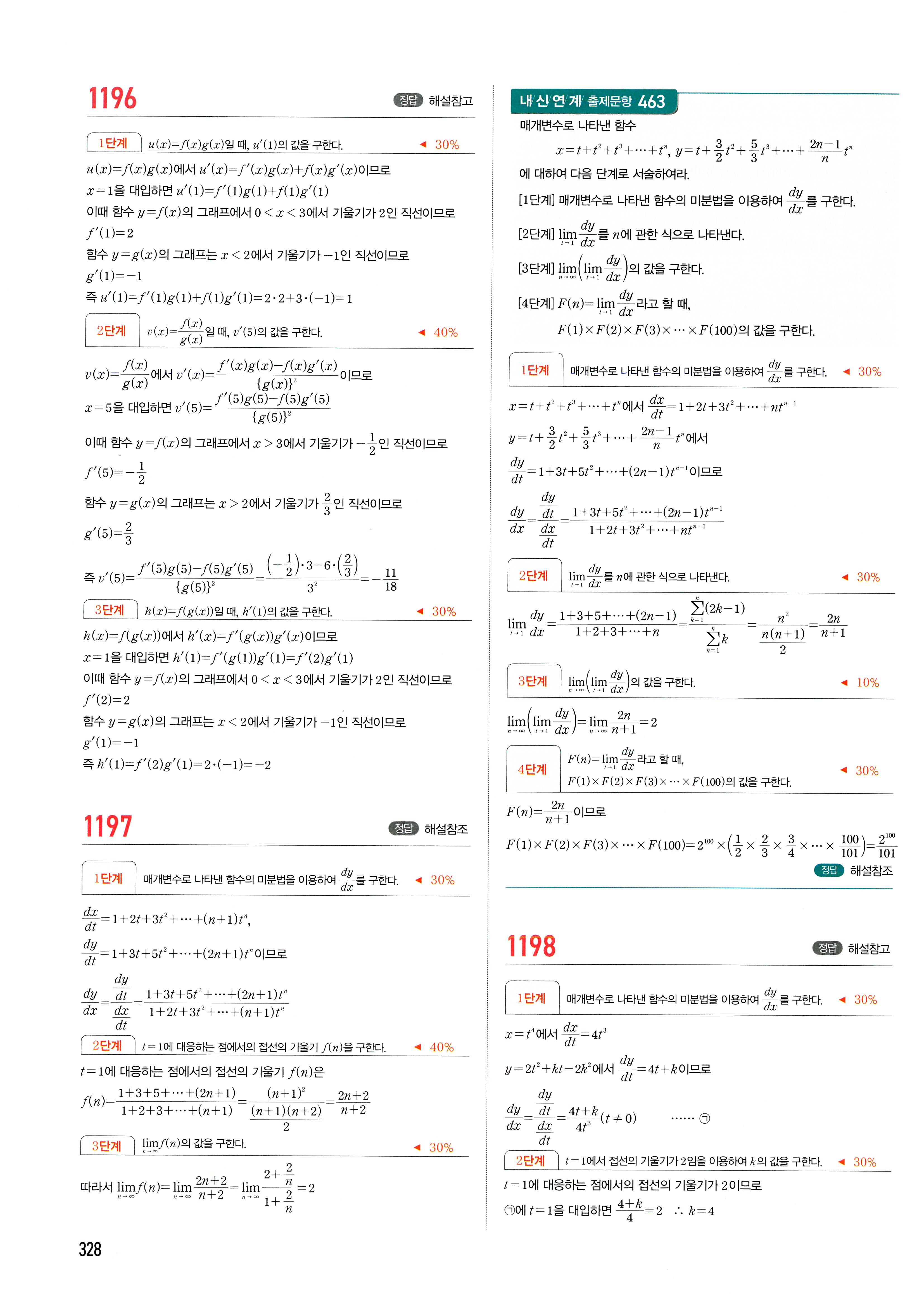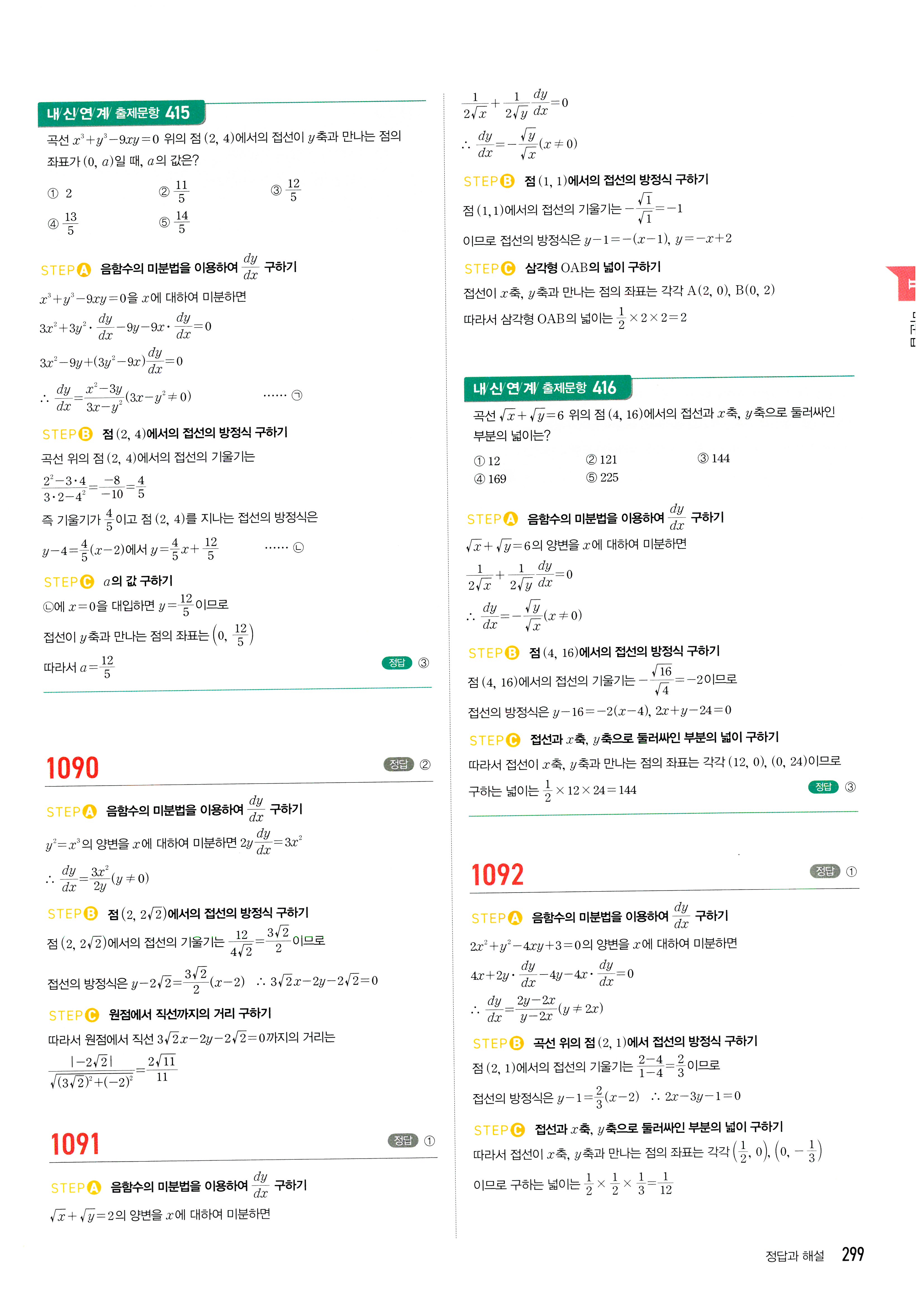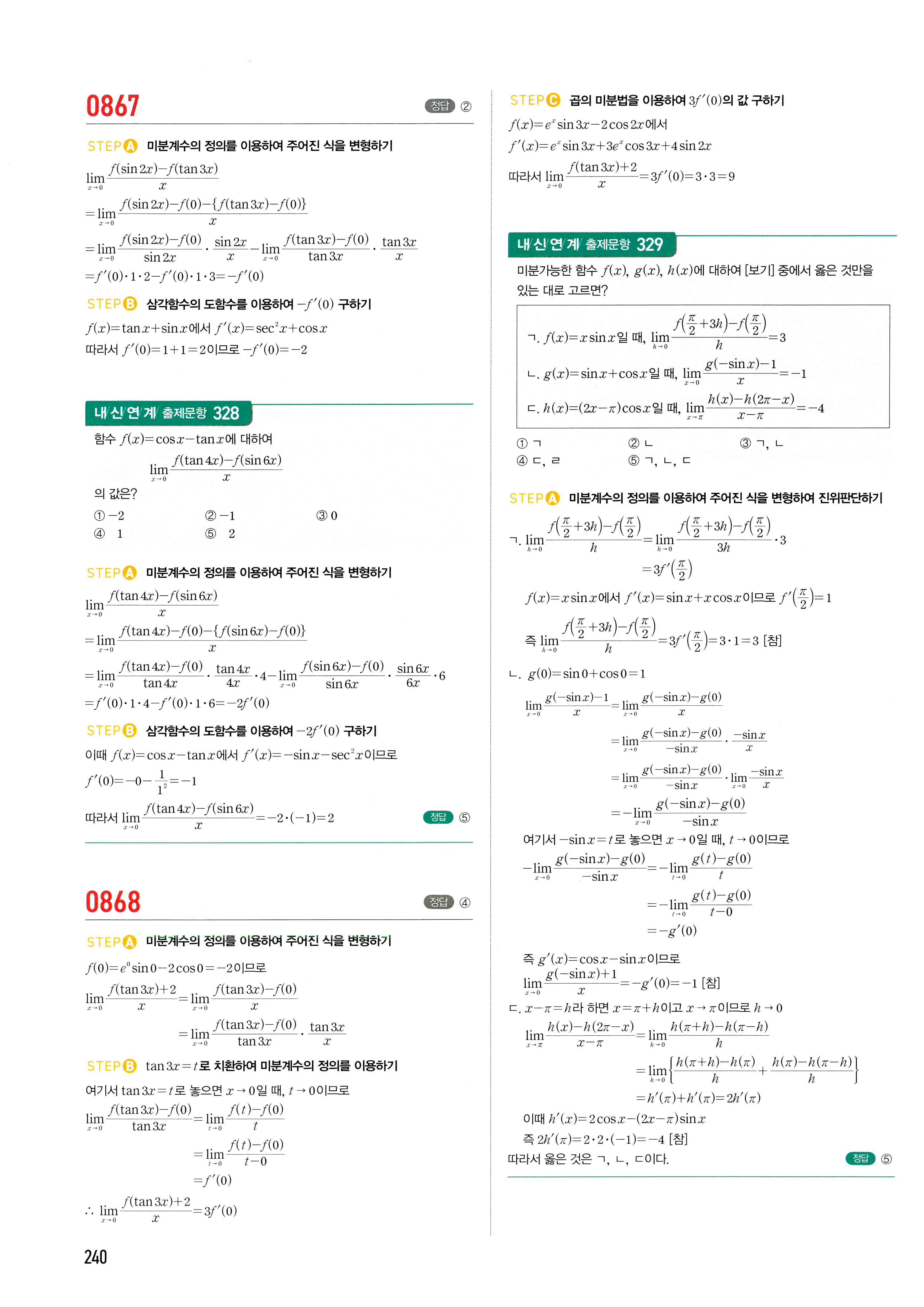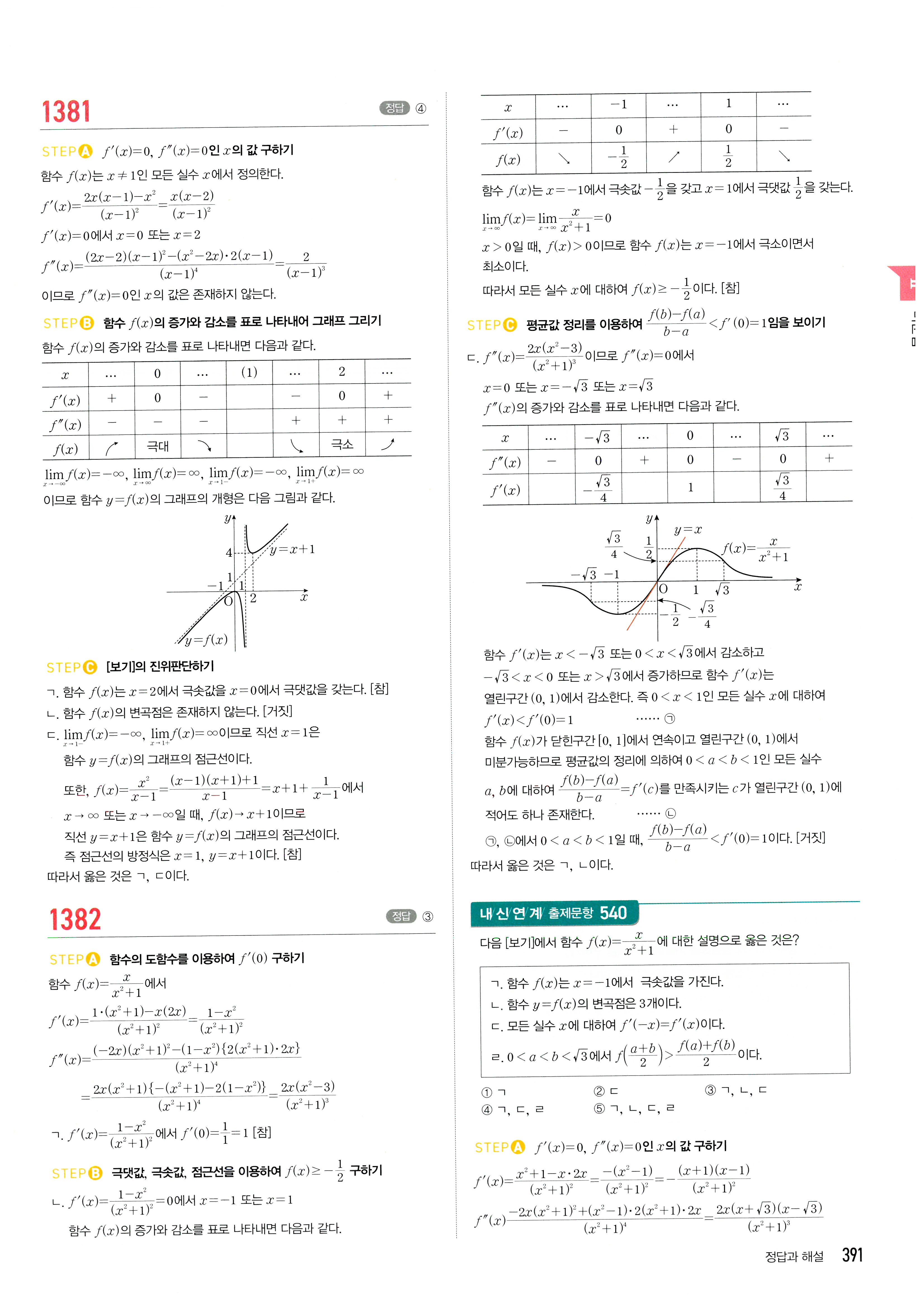 마플시너지 미적분 중반부 답지 해설지 사진답지 빠른답지 모바일최적화