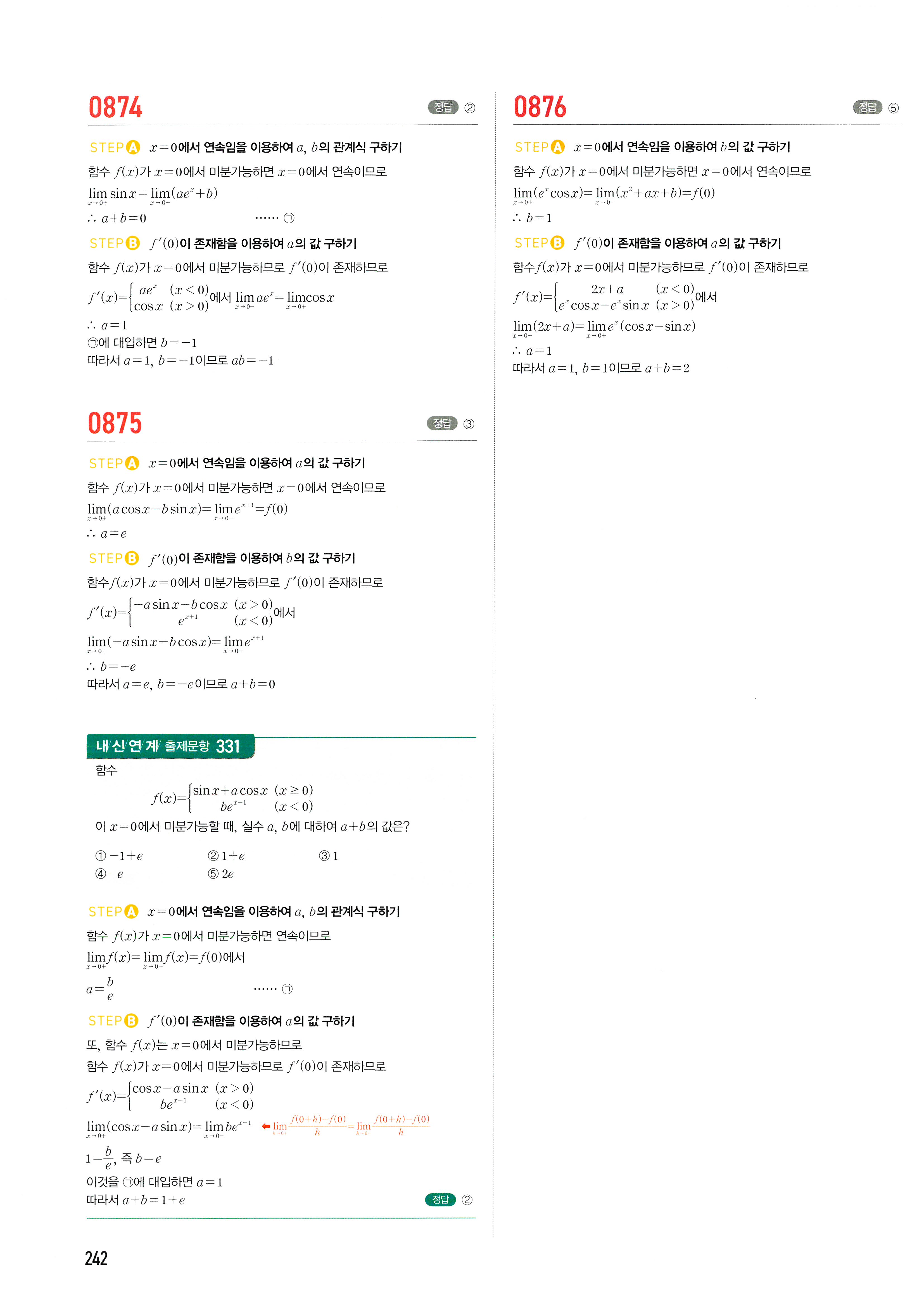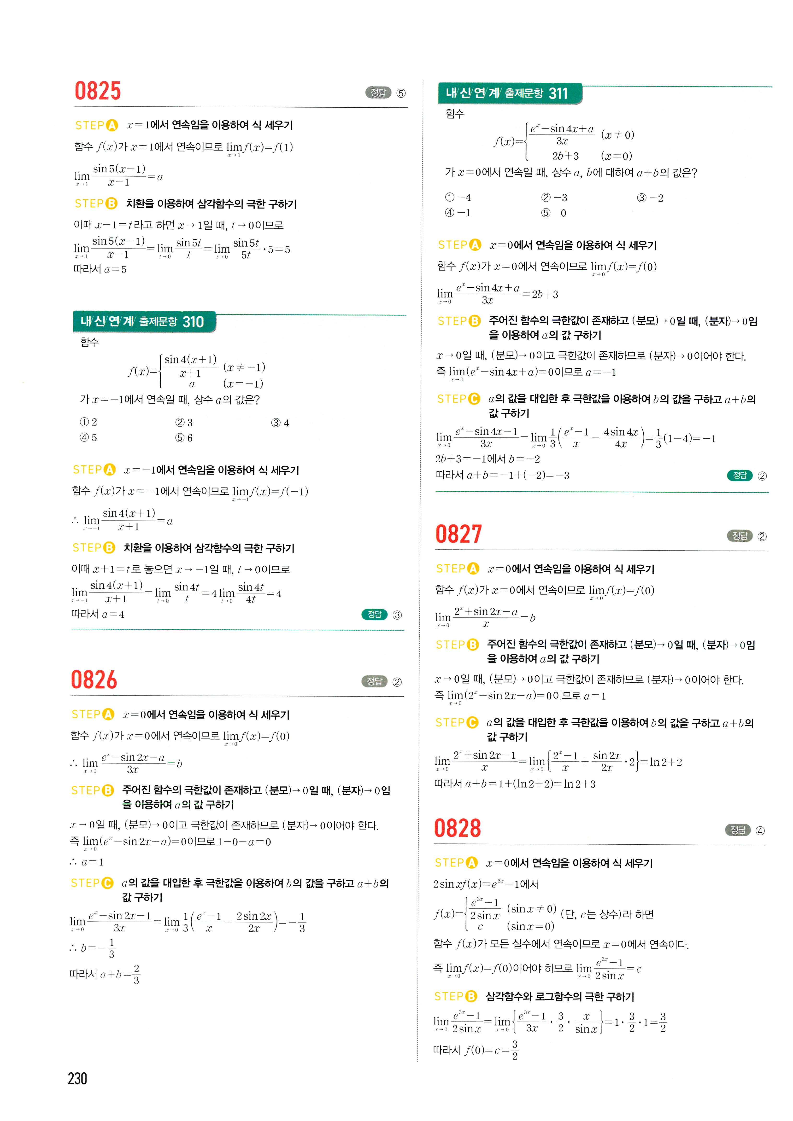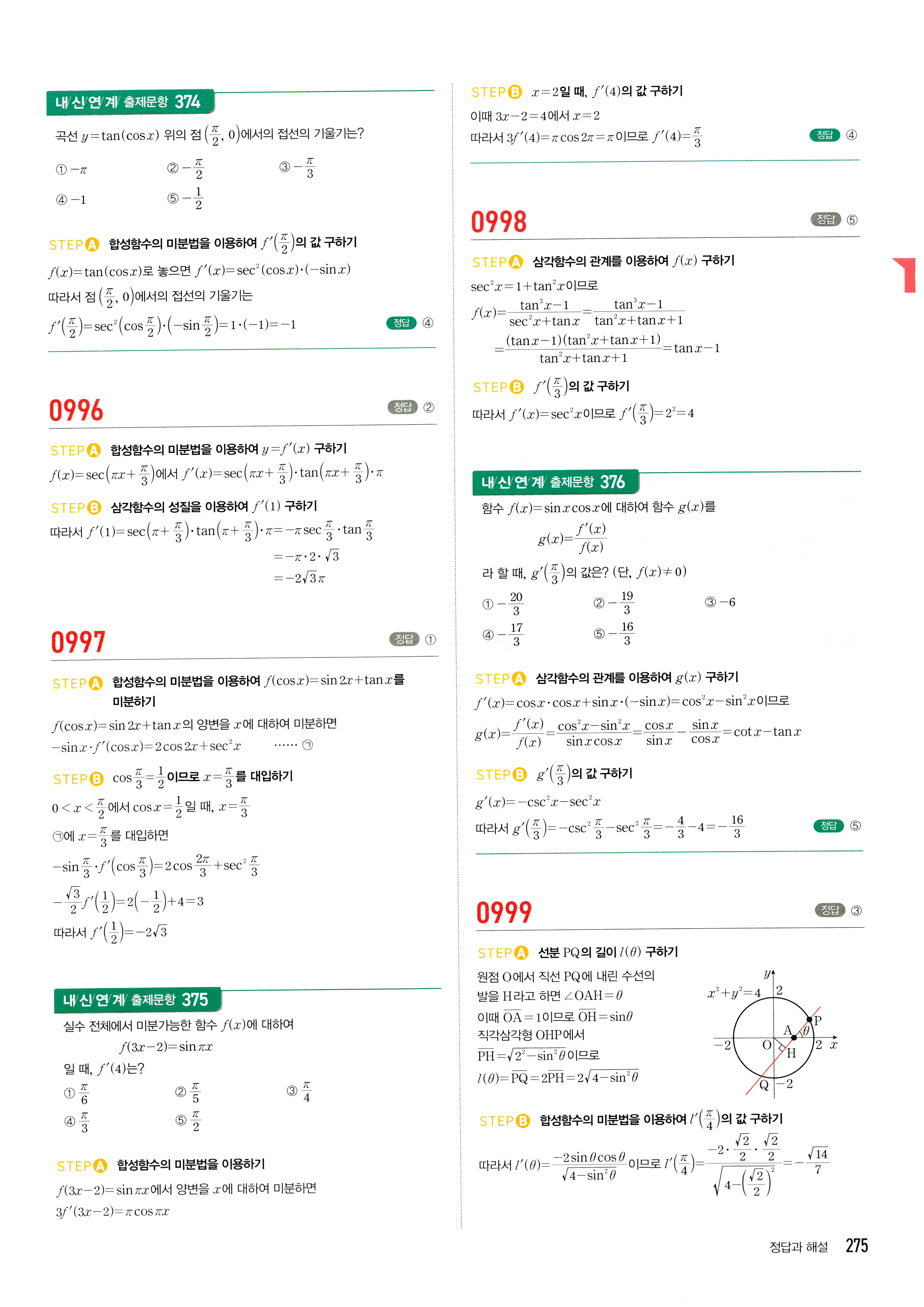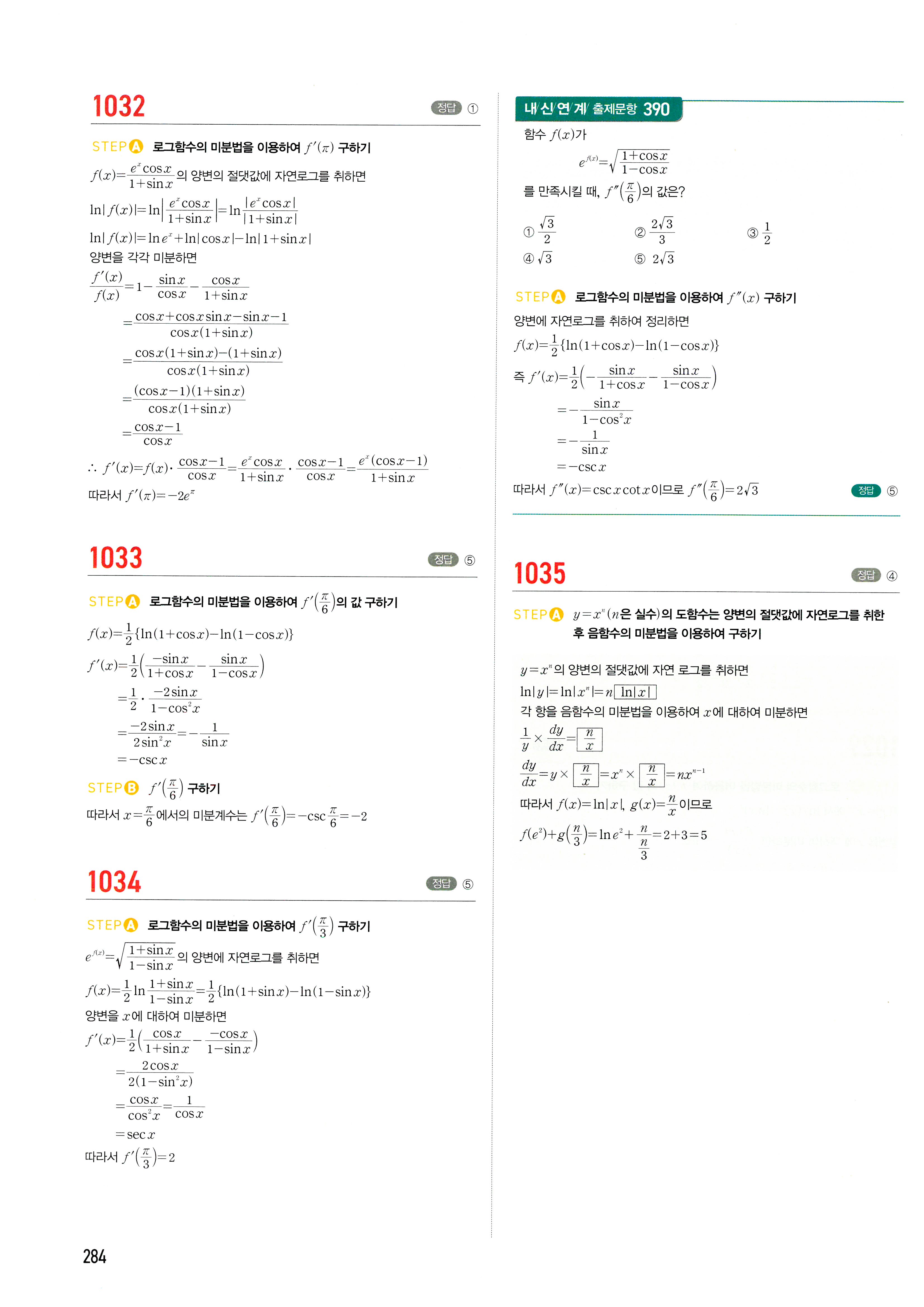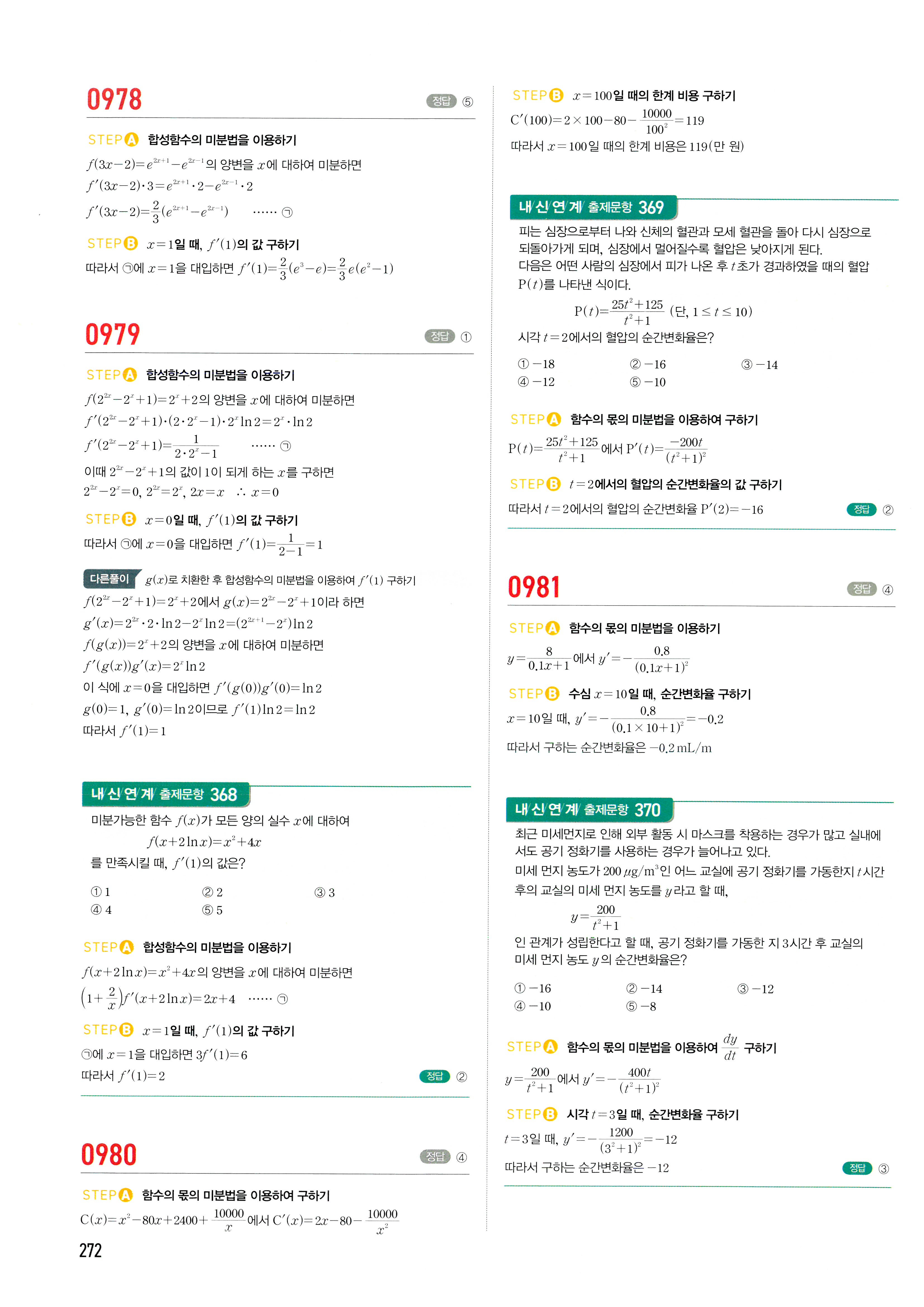 마플시너지 미적분 중반부 답지 해설지 사진답지 빠른답지 모바일최적화
