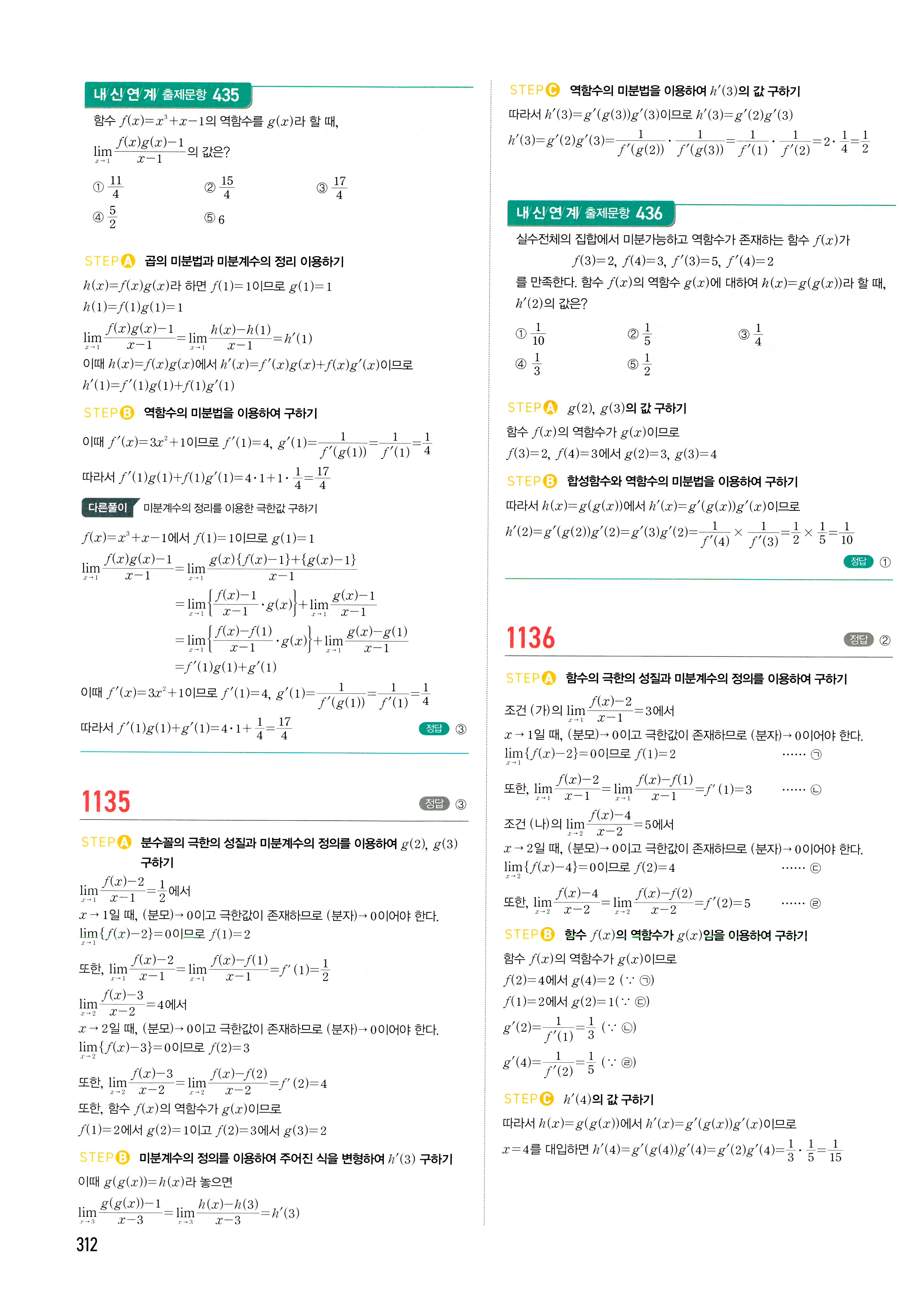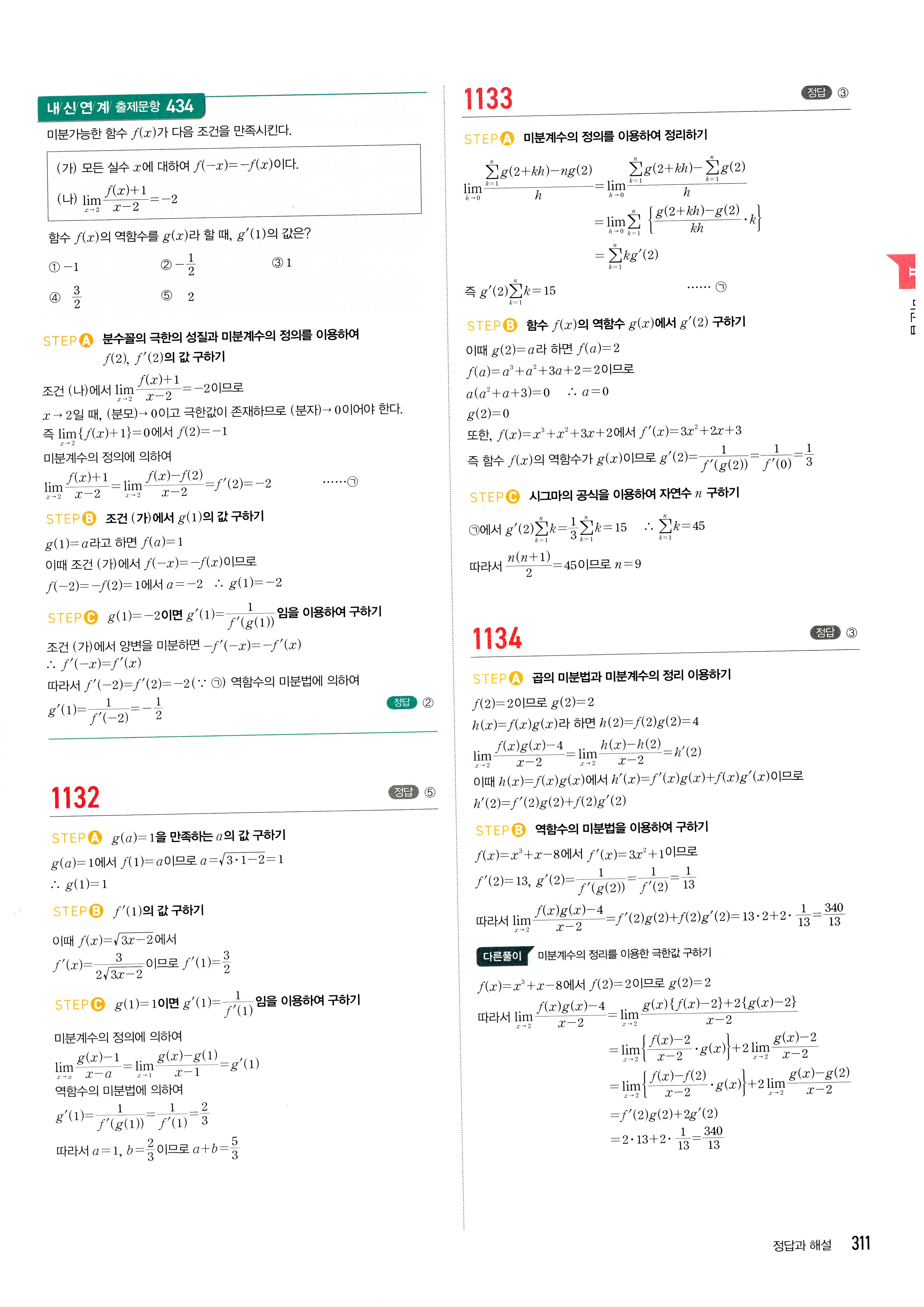 마플시너지 미적분 답지 해설지 사진답지 빠른답지 모바일최적화3