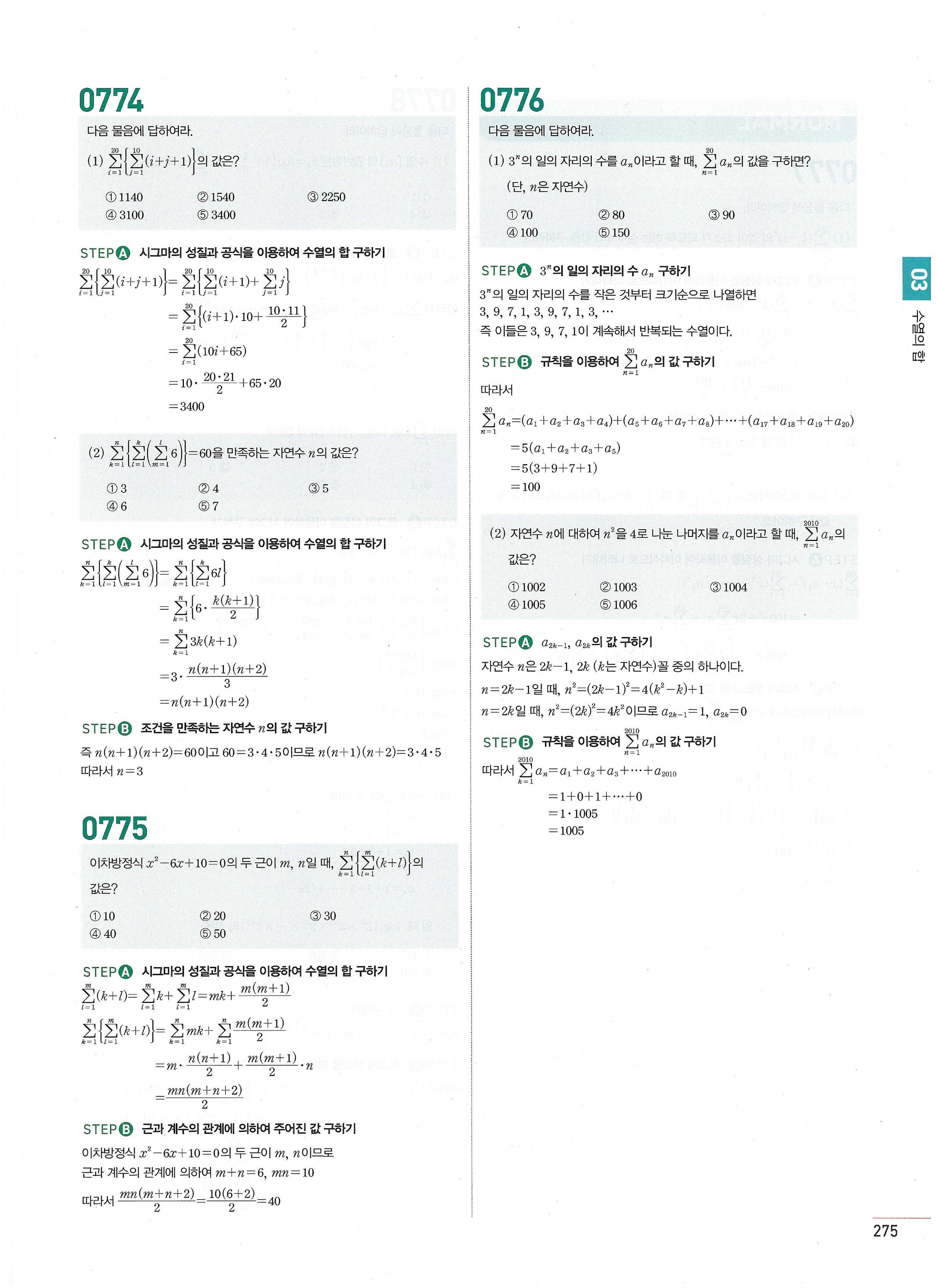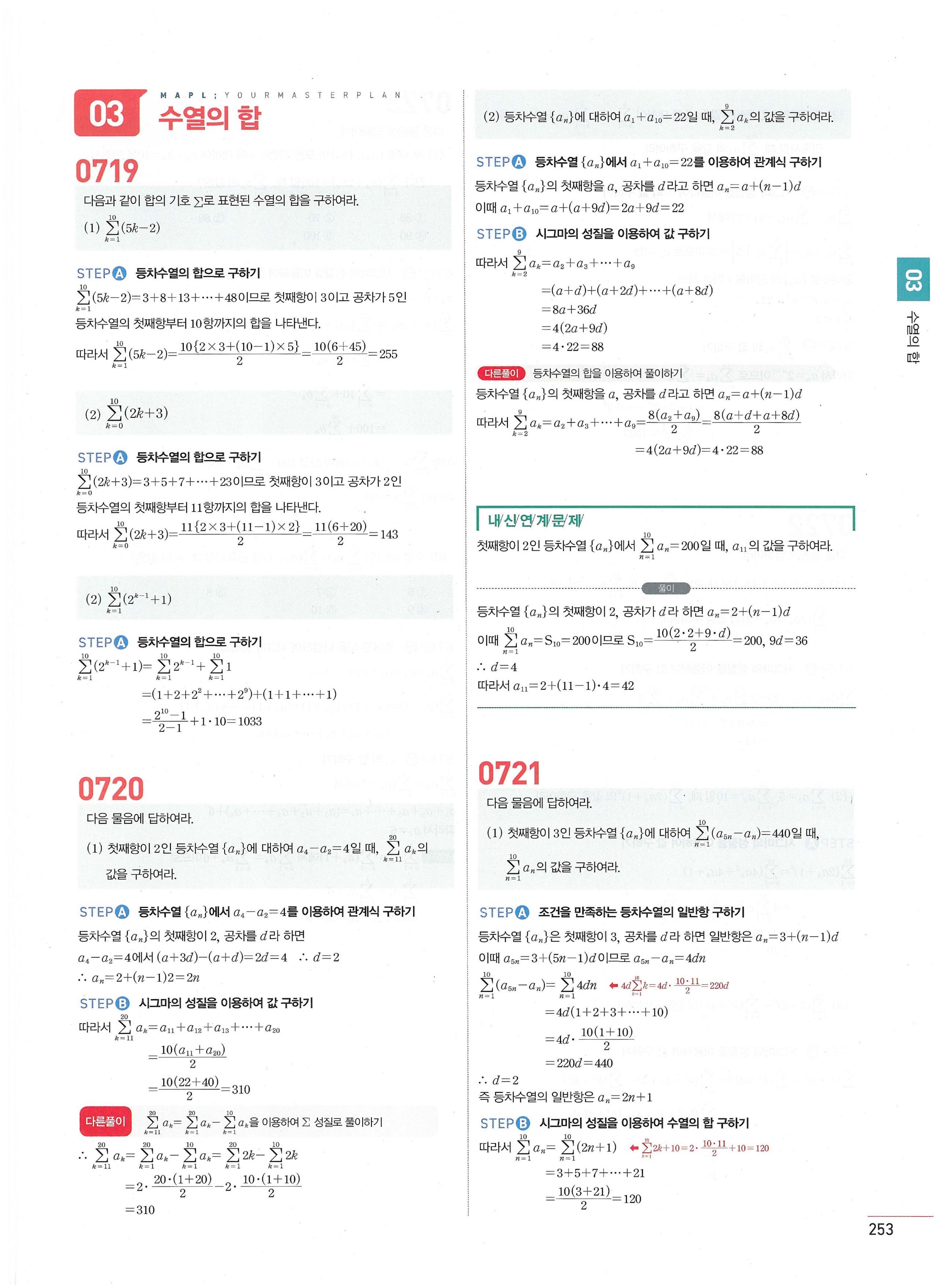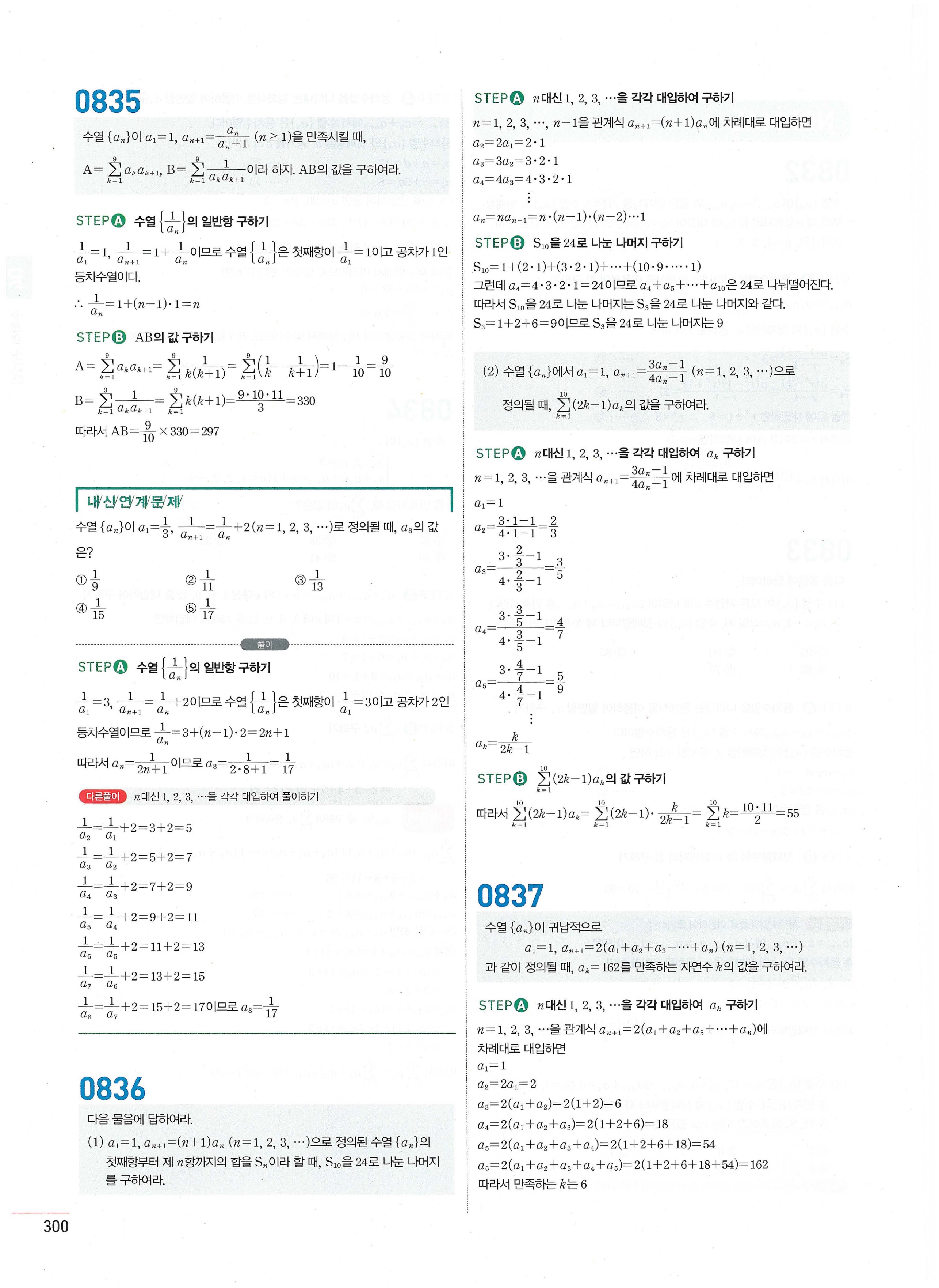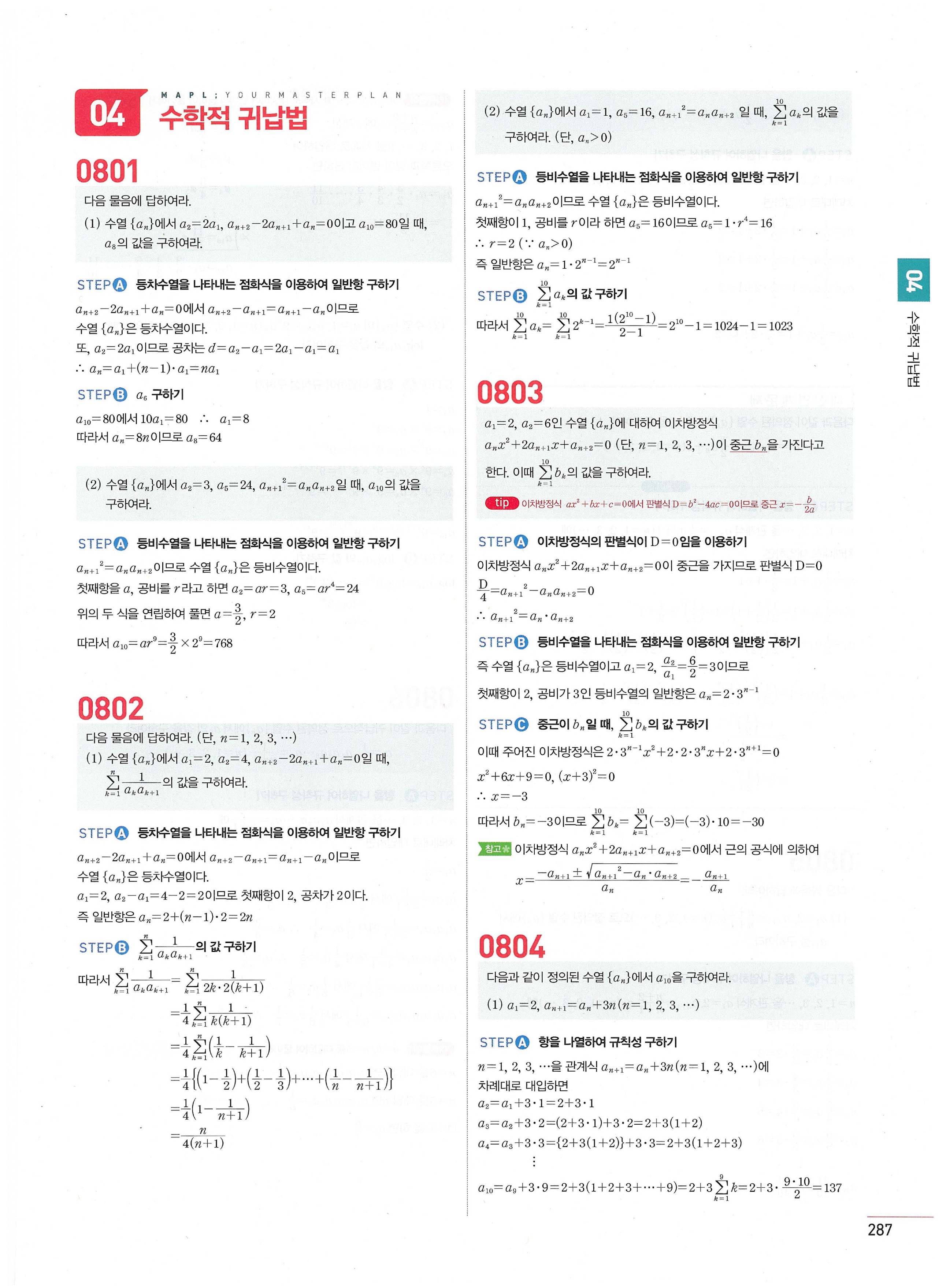 | 마플교과서 수1 해설 3-4 수학적 귀납법 |