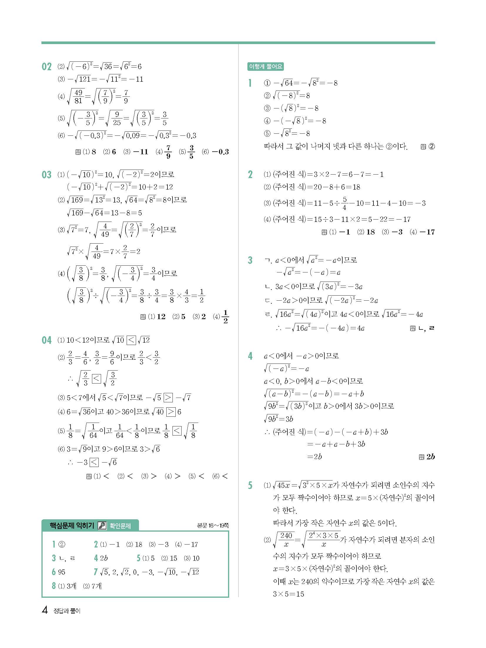 개정 개념원리중등수학 3-1 답지 사진답지 빠른답지 모바일최적화
