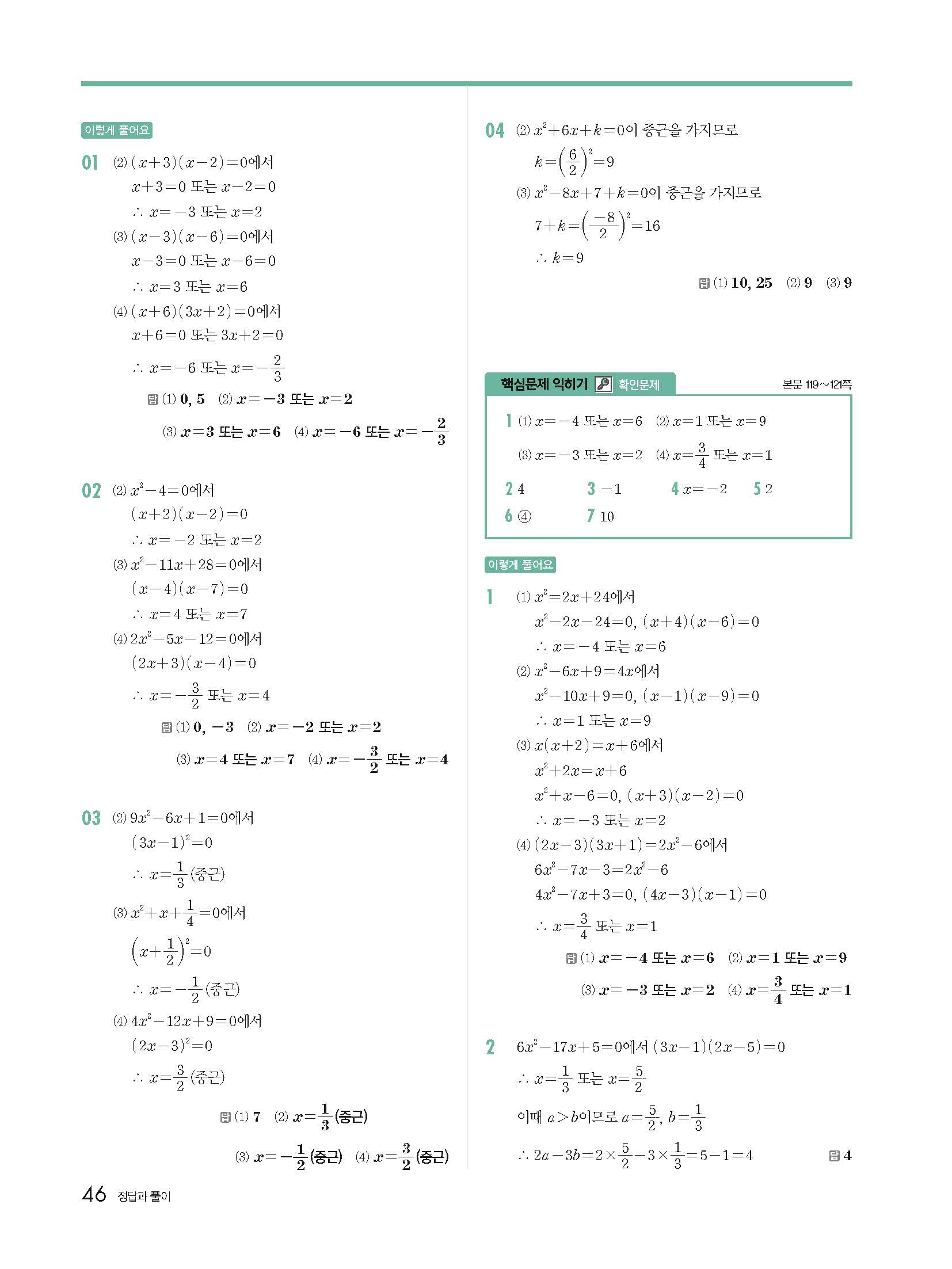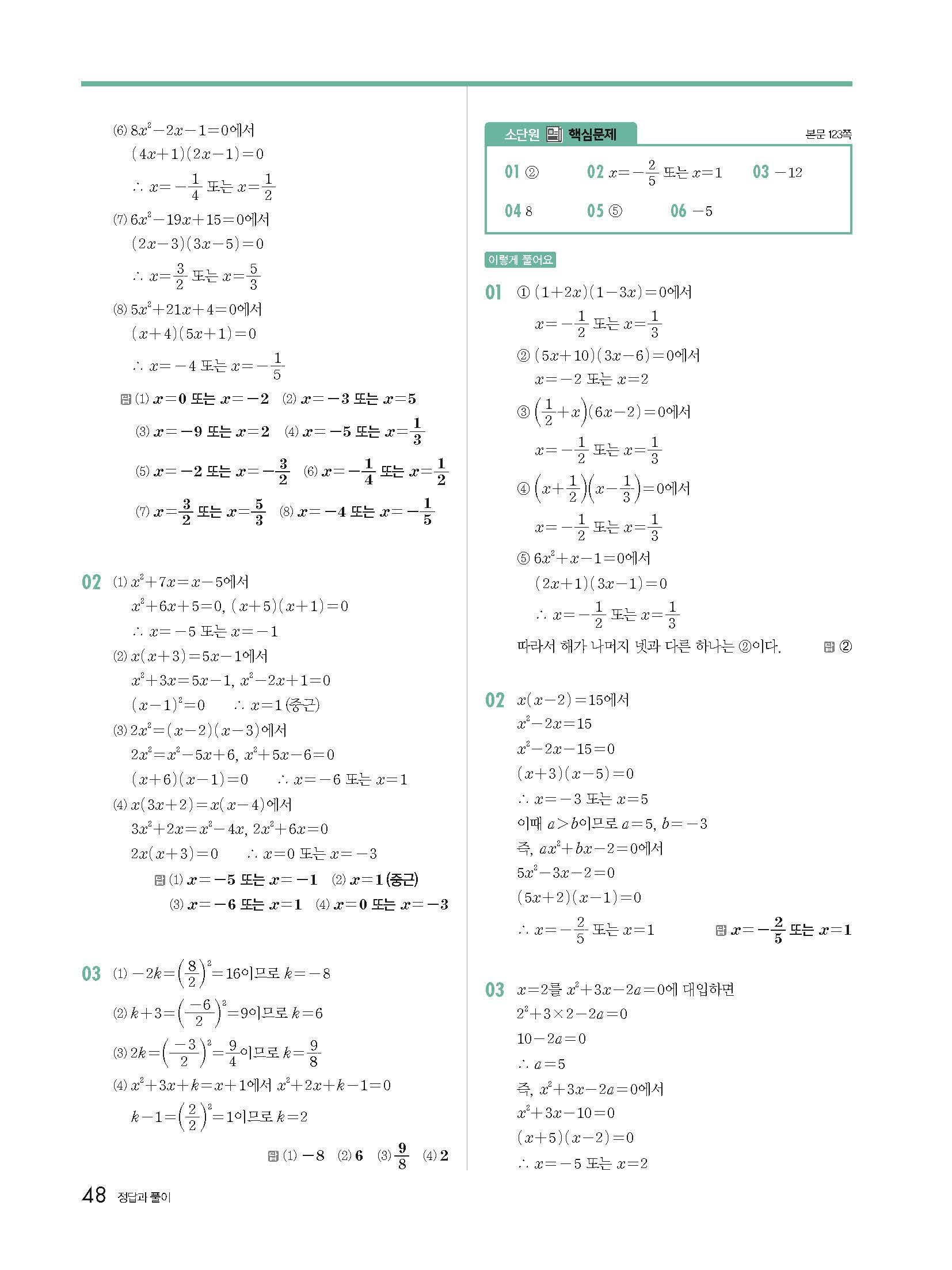 개정 개념원리 중3-1 빠른답지