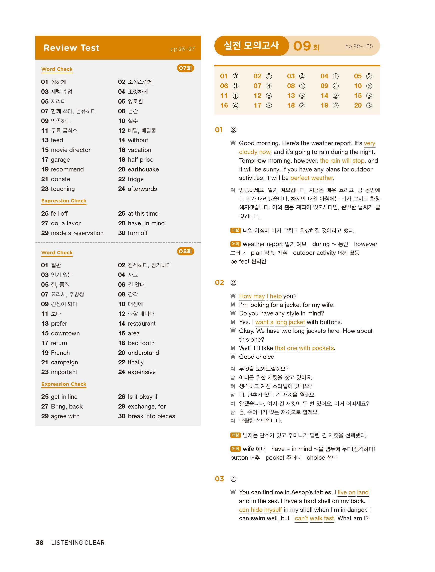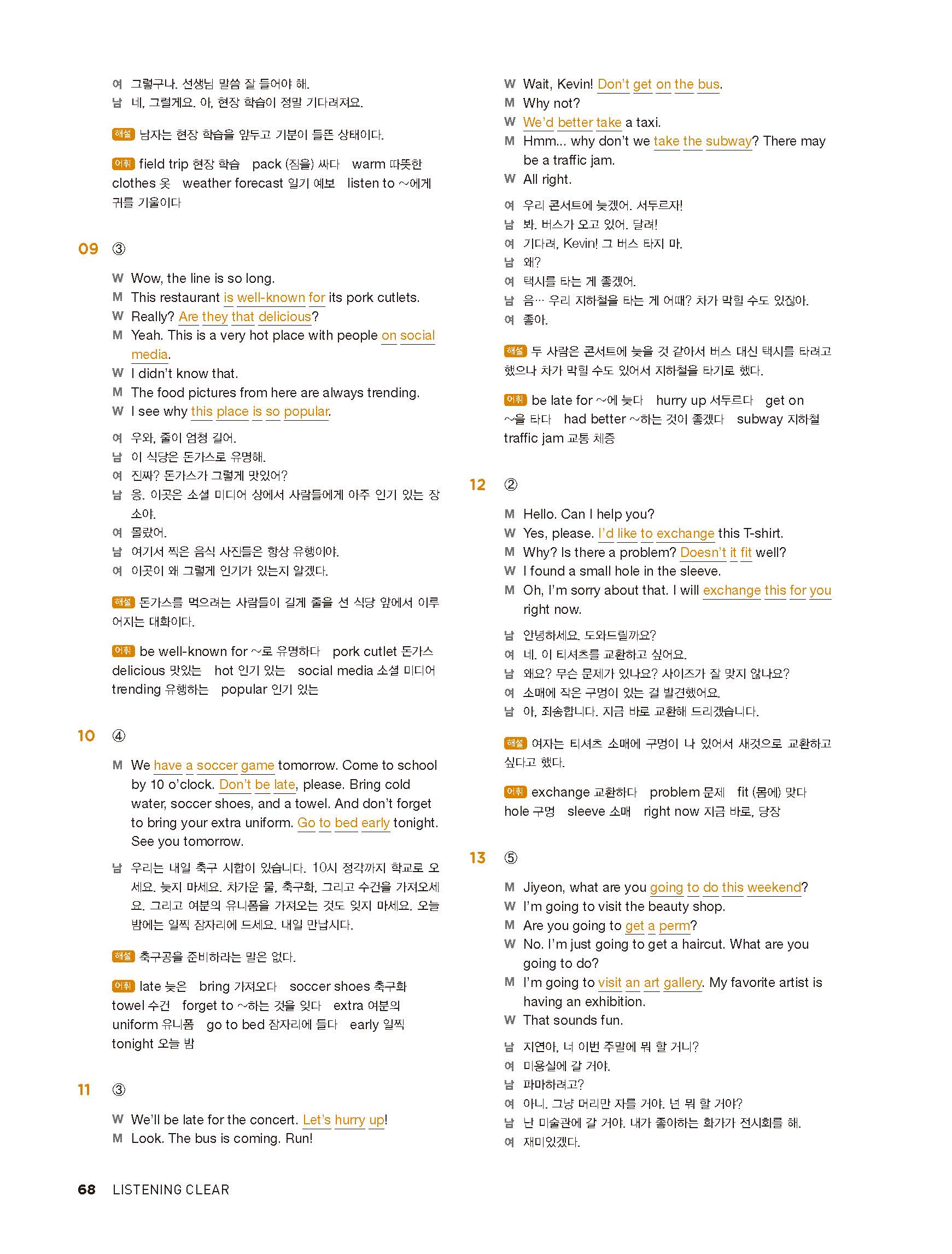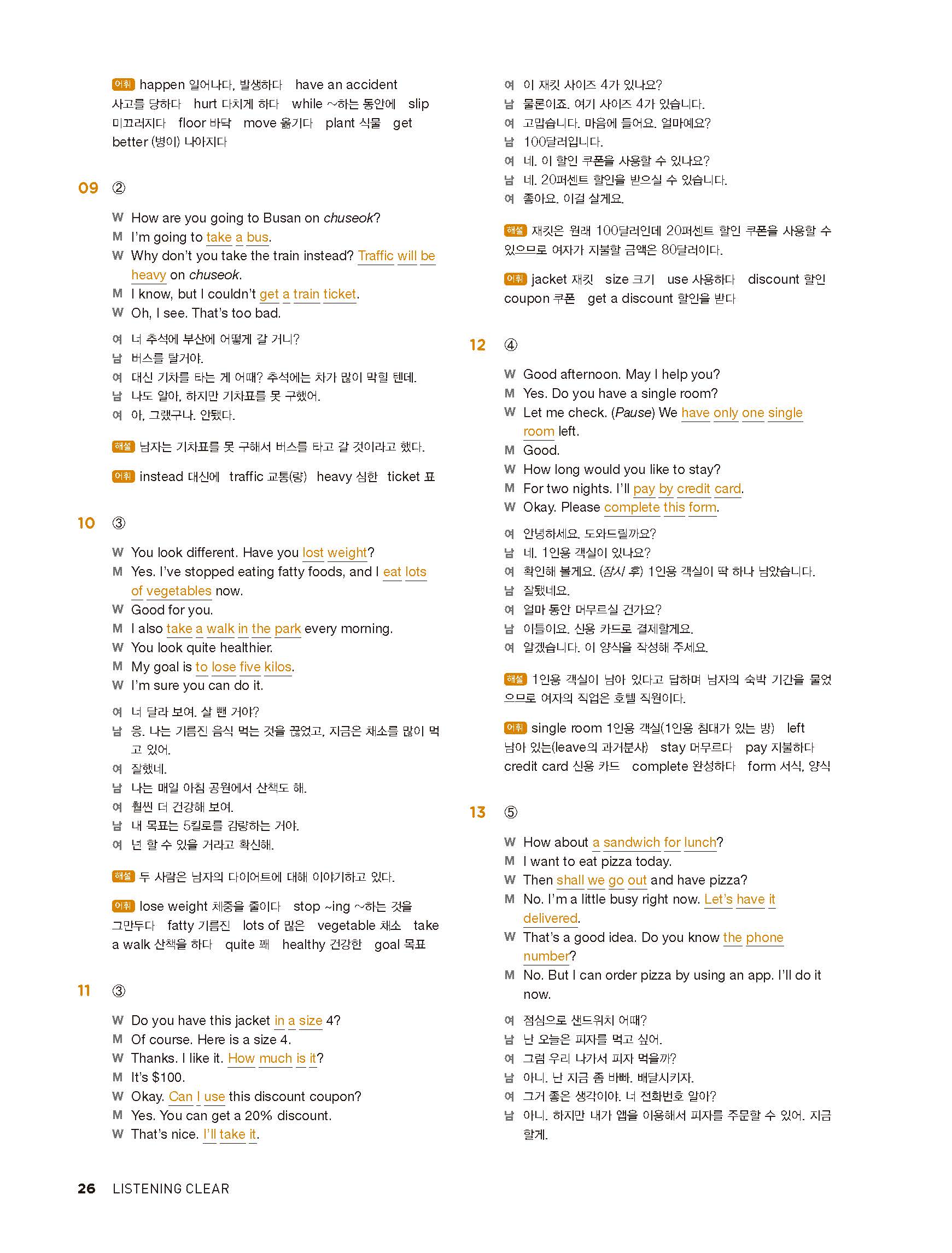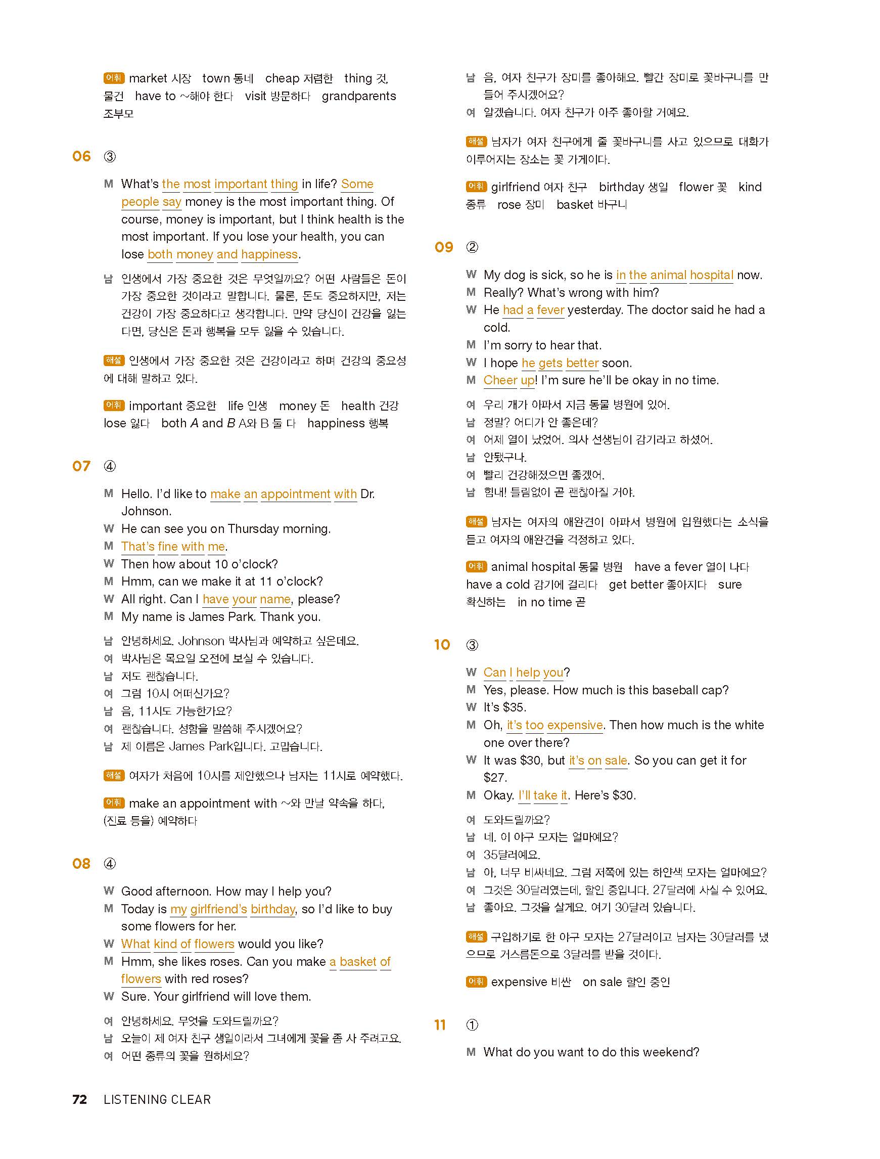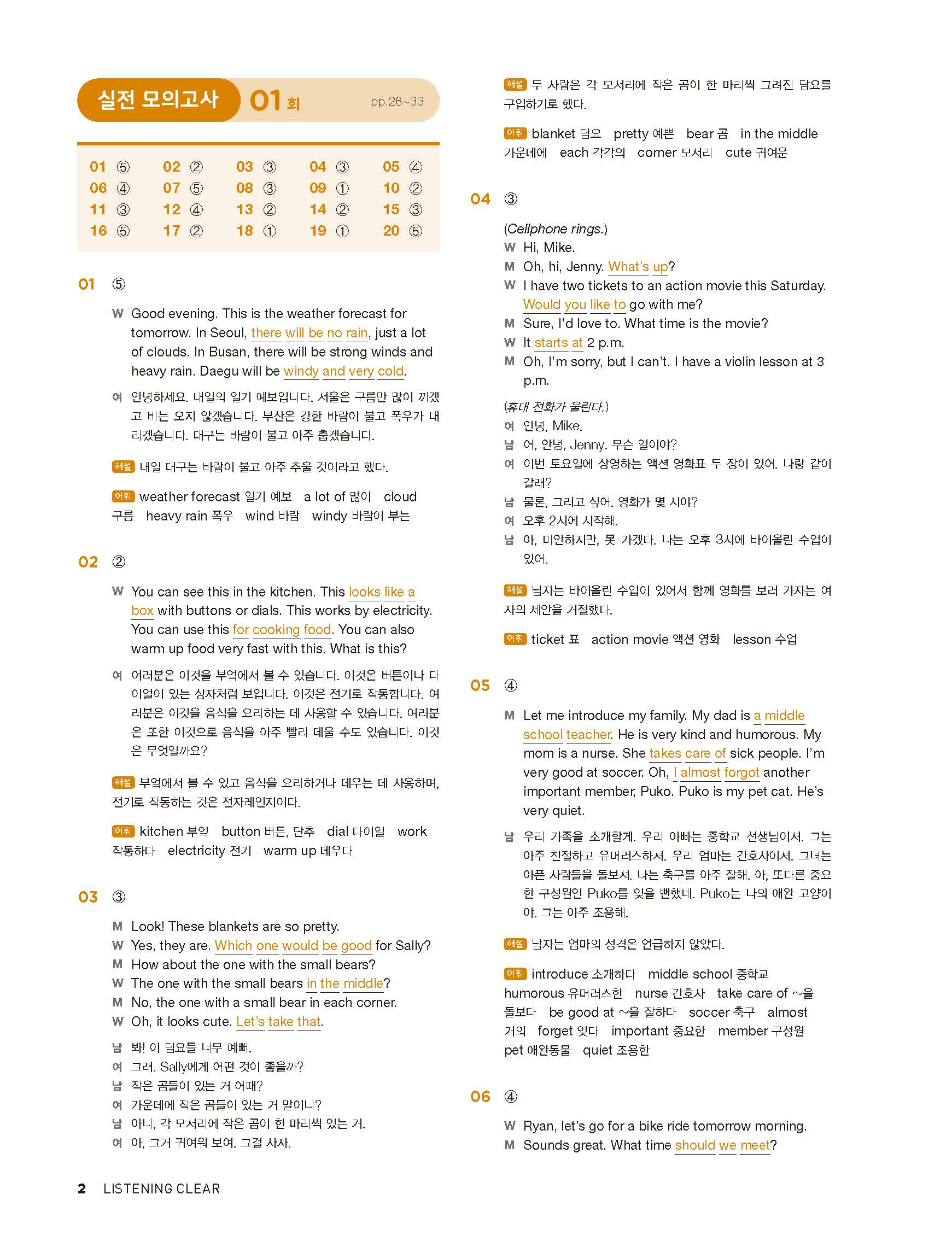 중학리스닝클리어 레벨1 답지 해설지 사진답지 빠른답지 모바일최적화