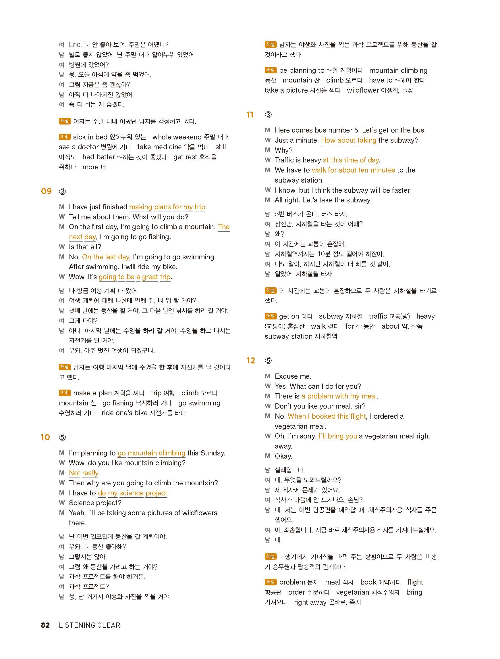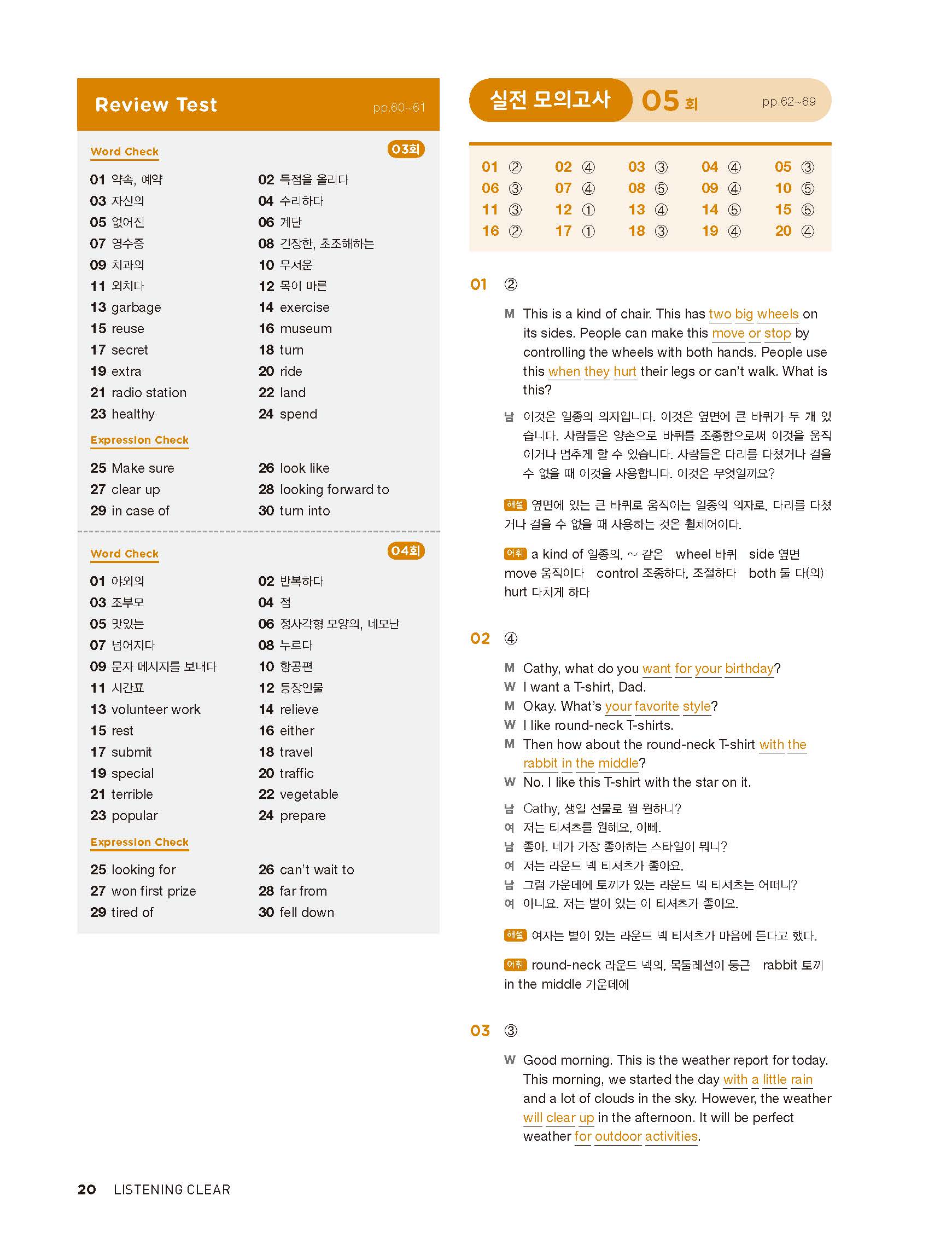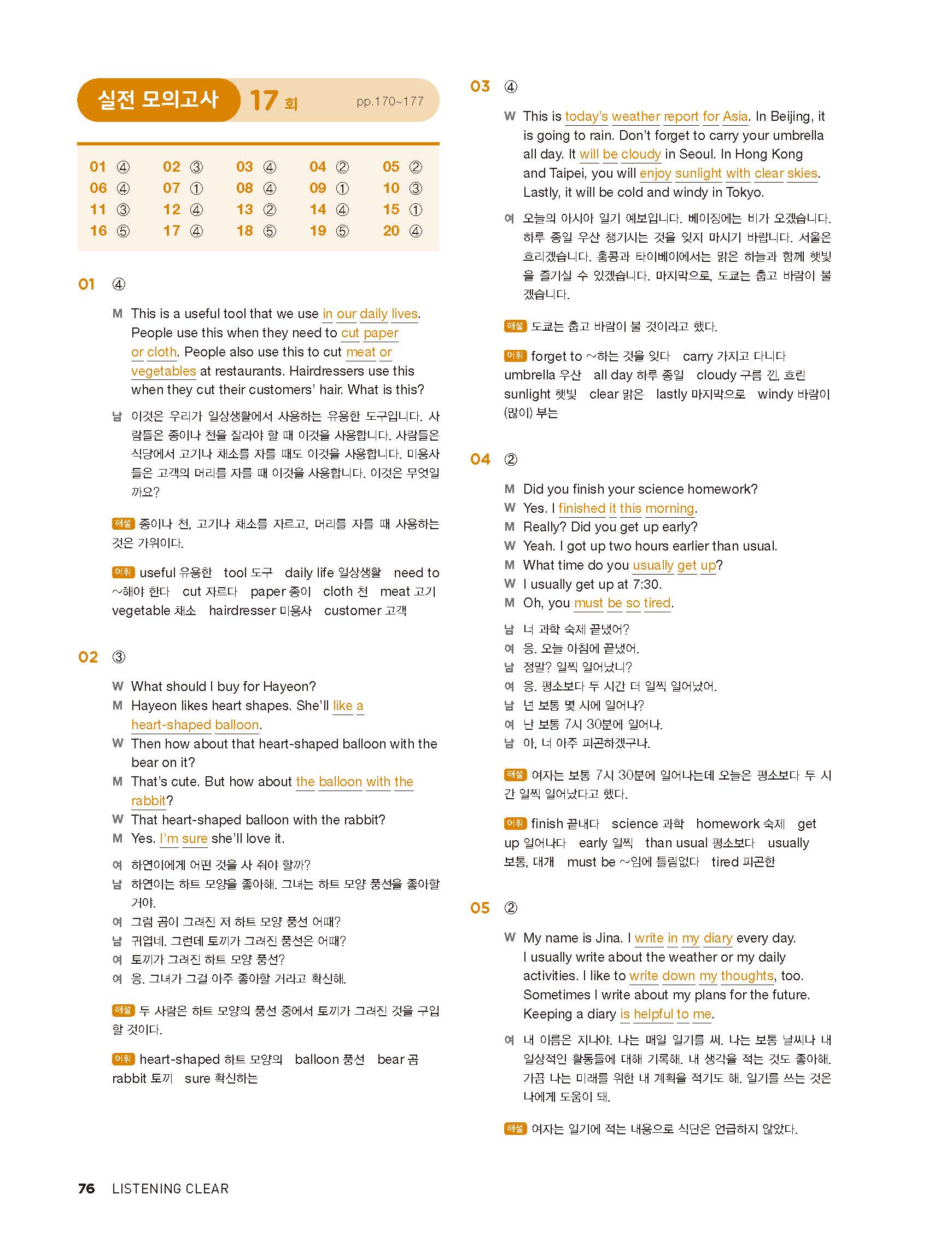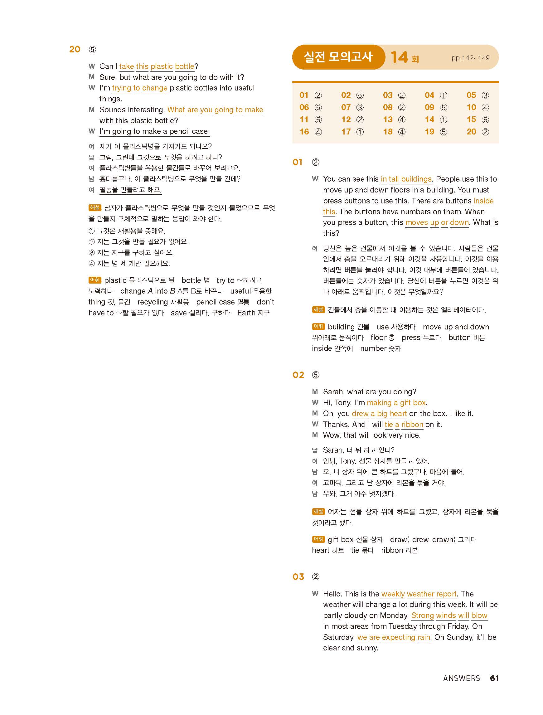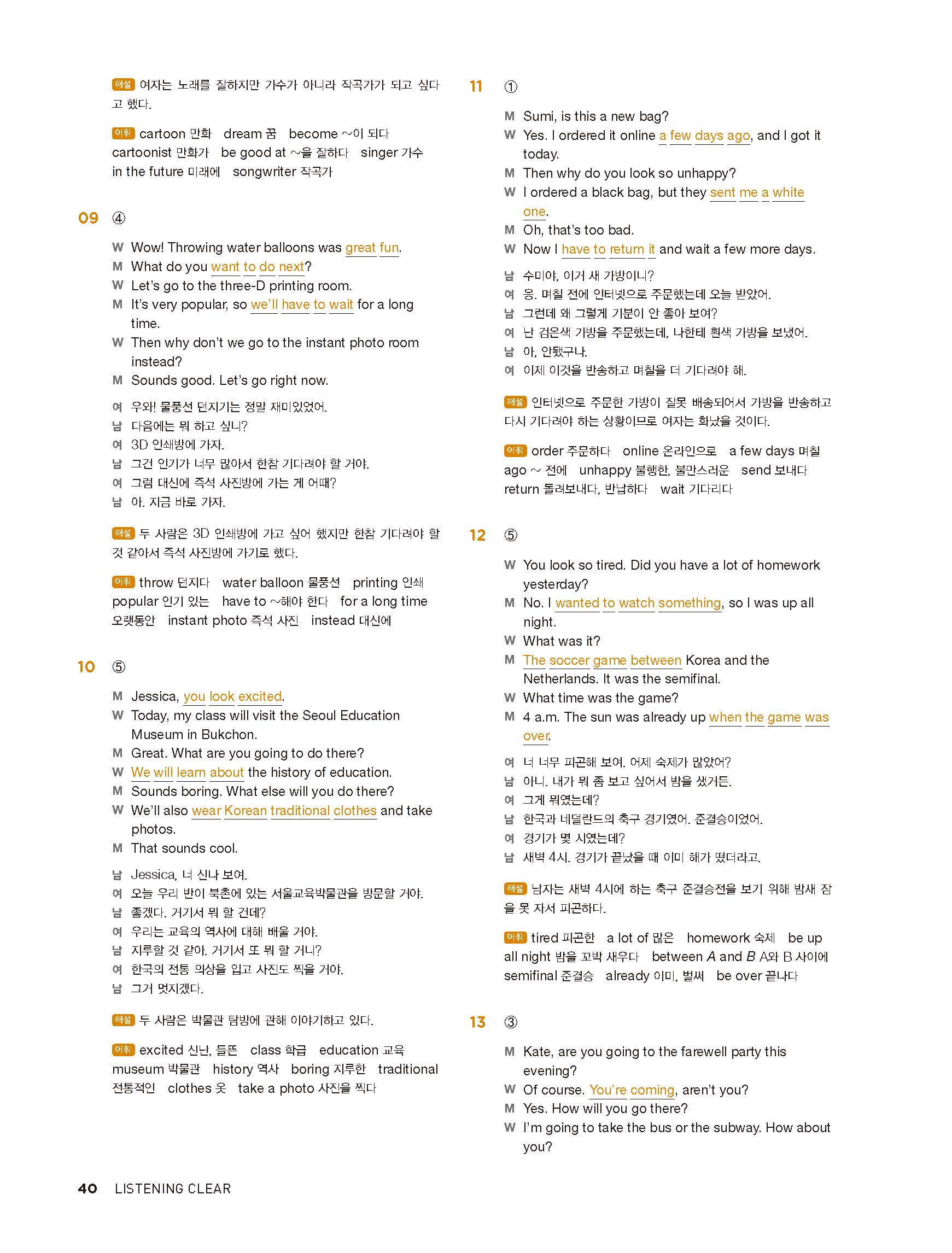 중학리스닝클리어 레벨1 답지 해설지 사진답지 빠른답지 모바일최적화