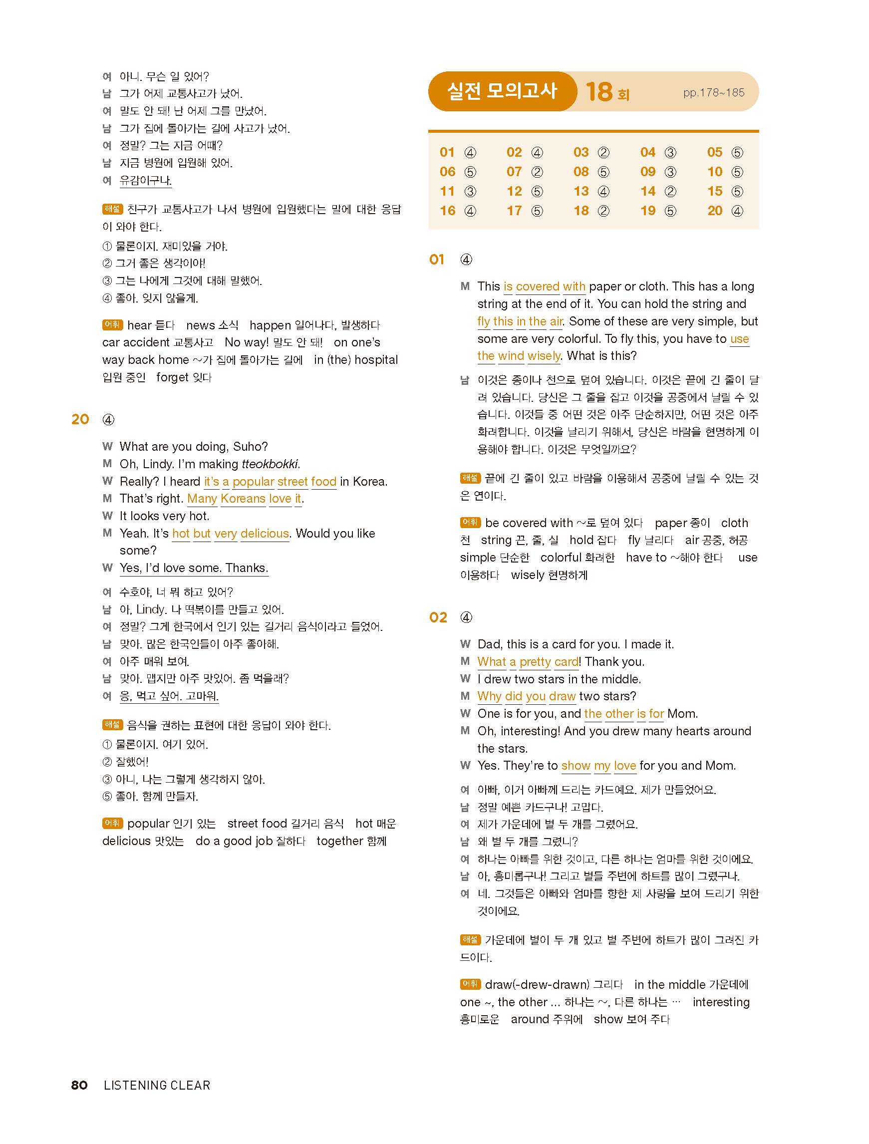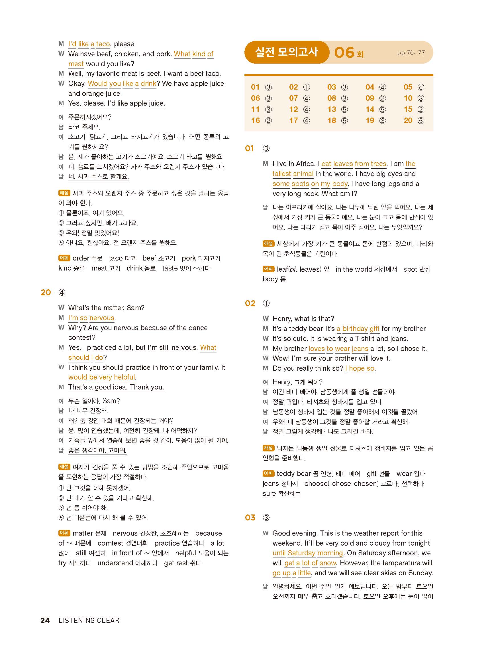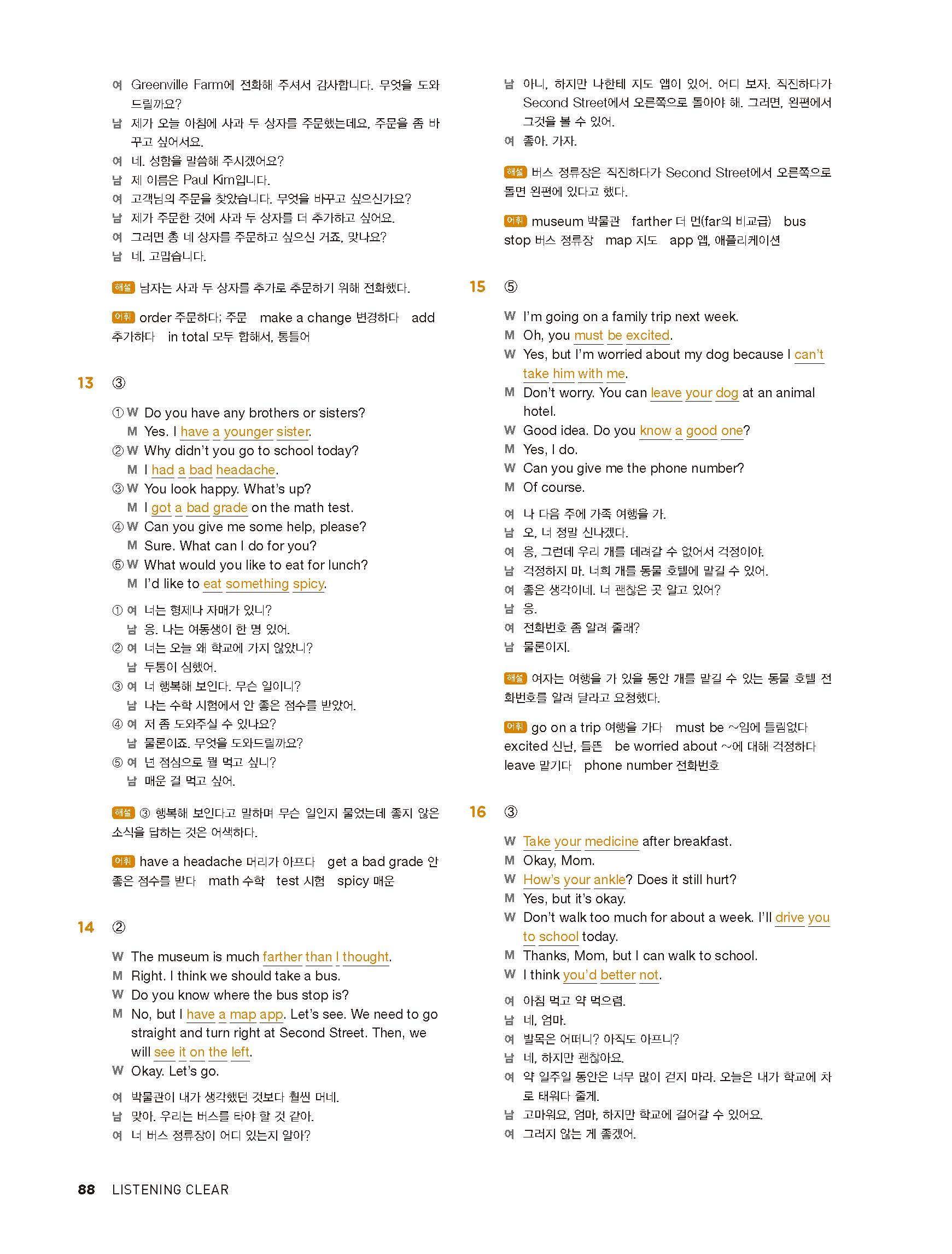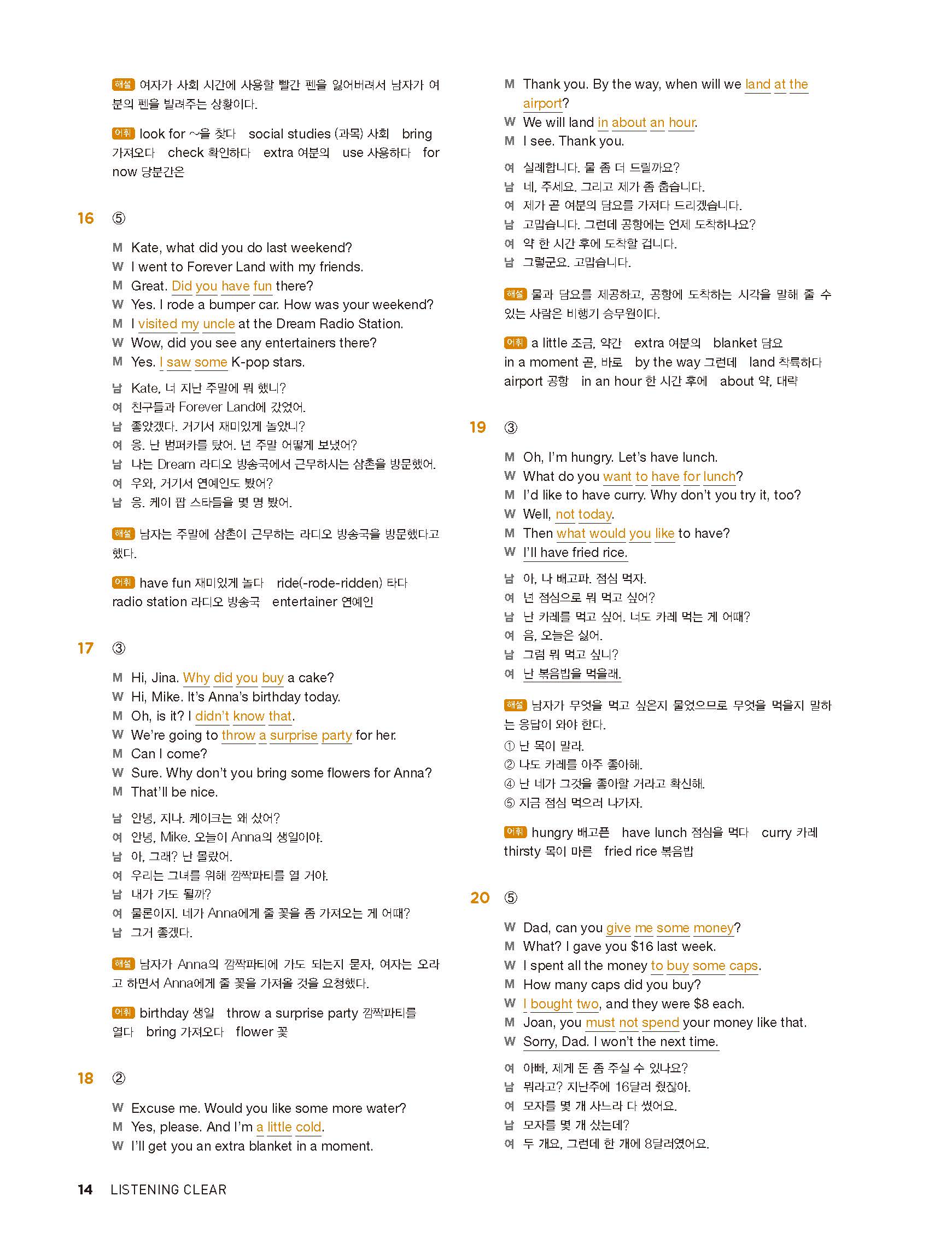 중학리스닝클리어 레벨1 답지 해설지 사진답지 빠른답지 모바일최적화