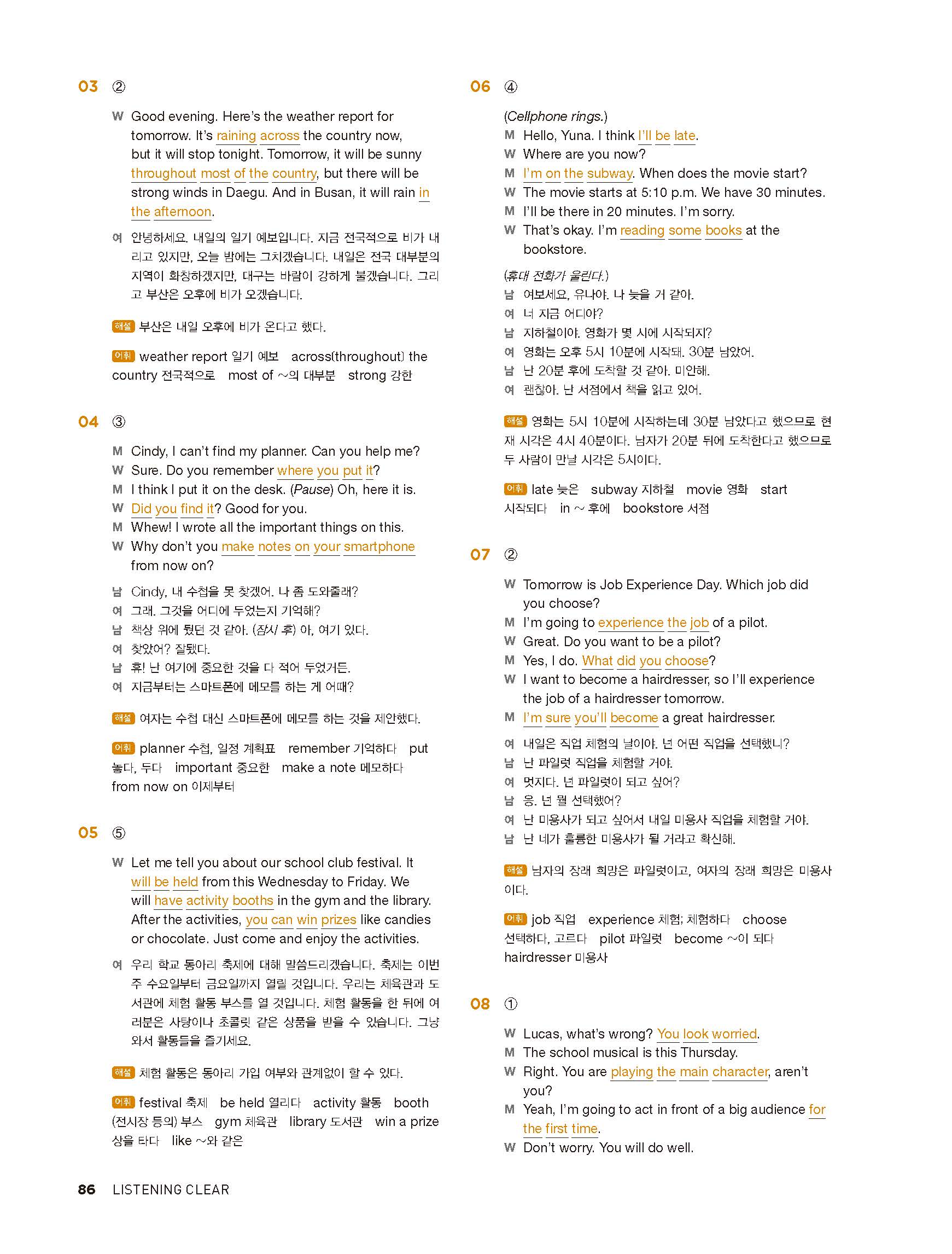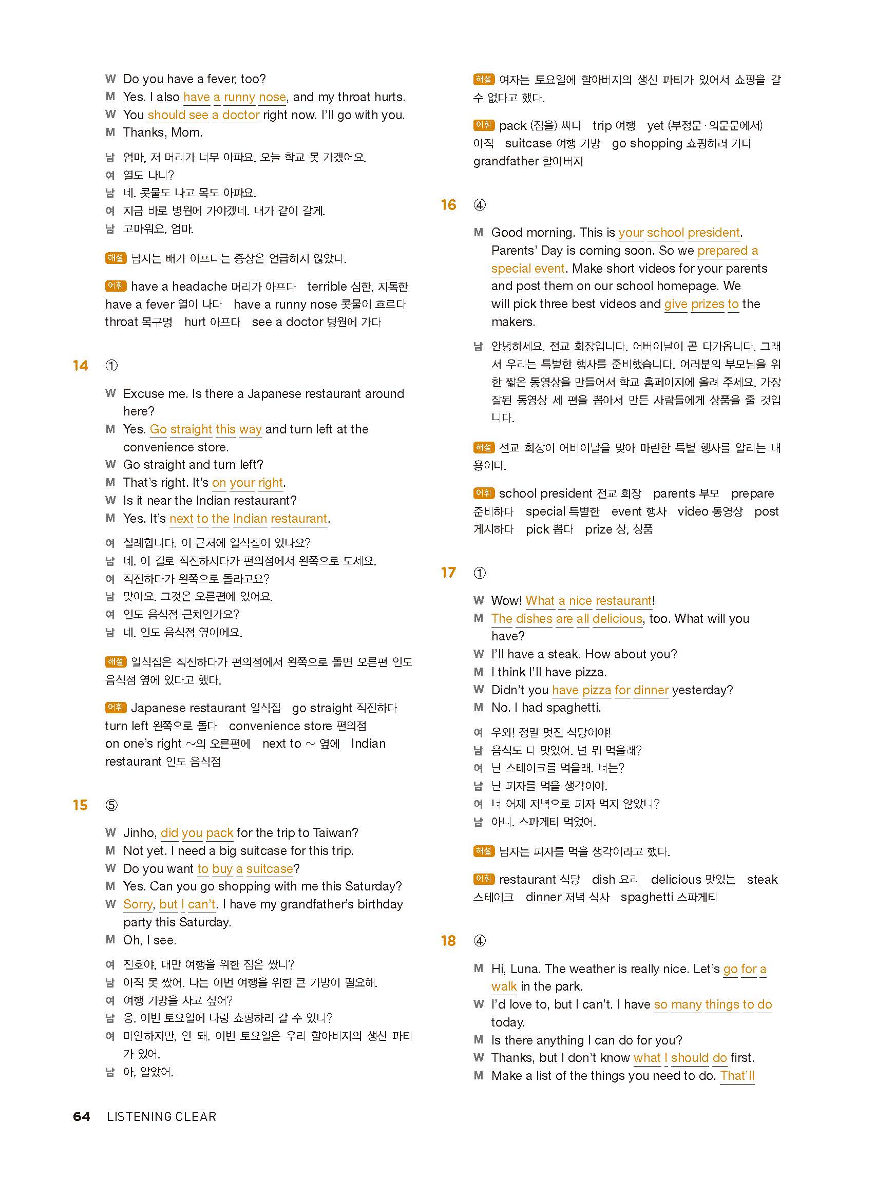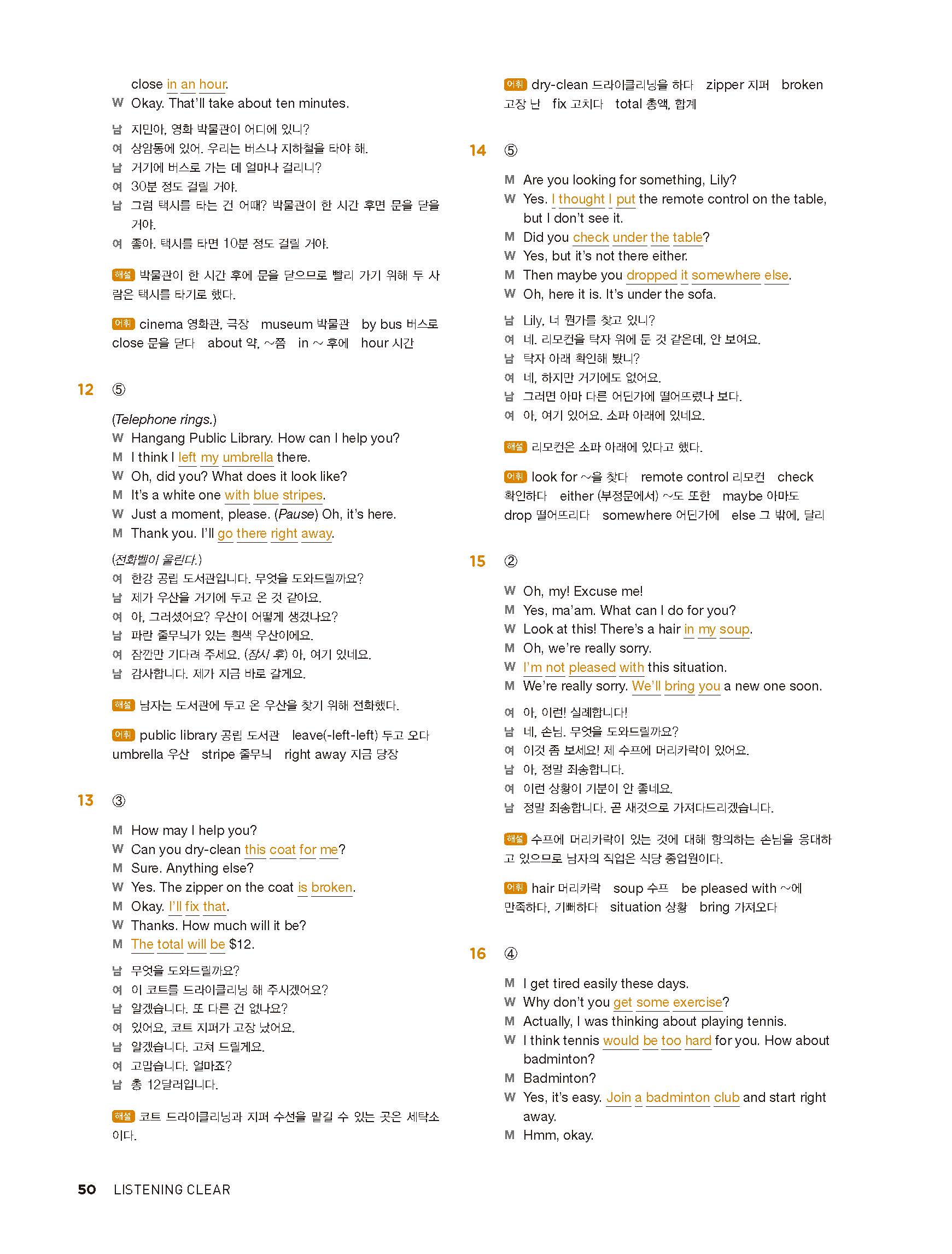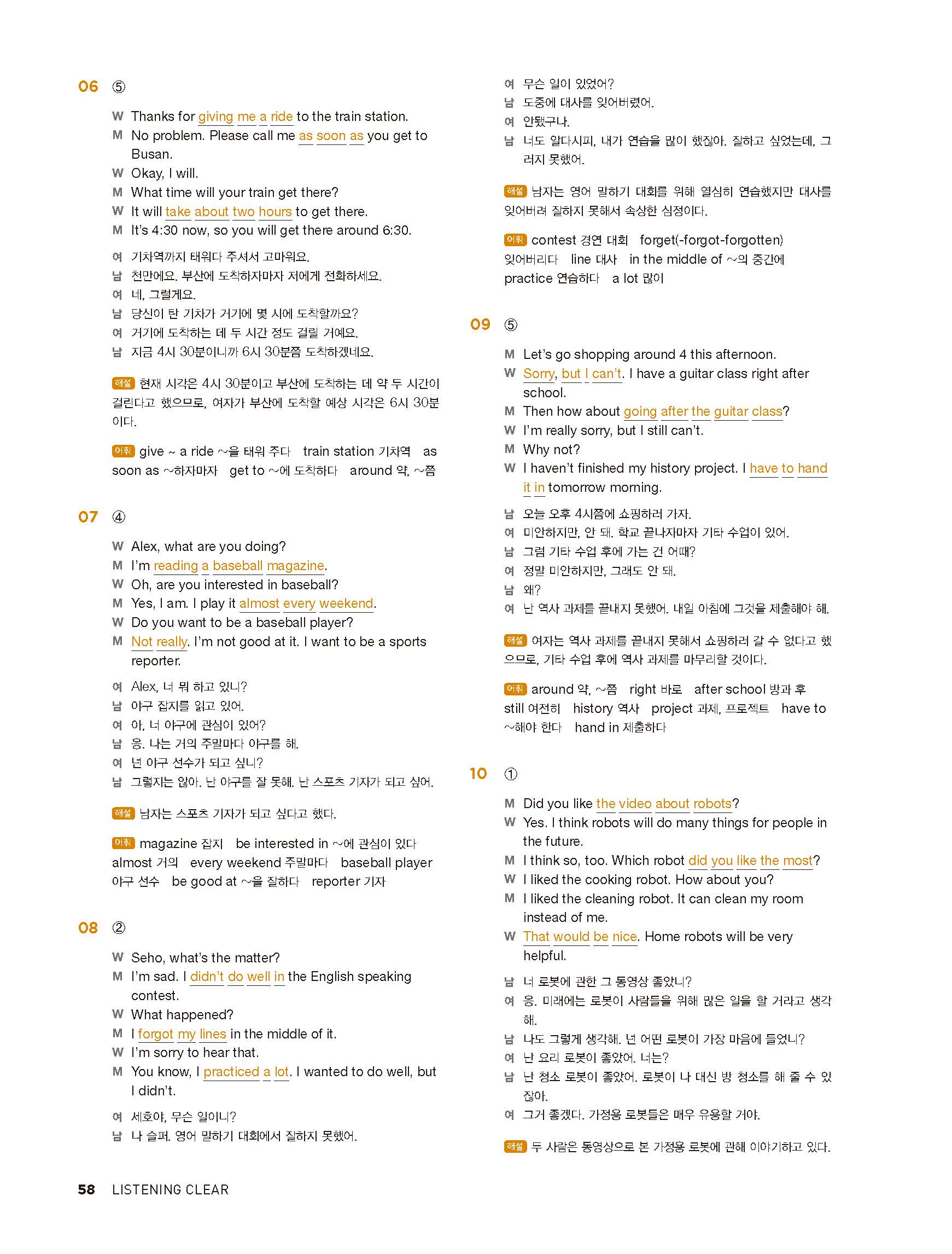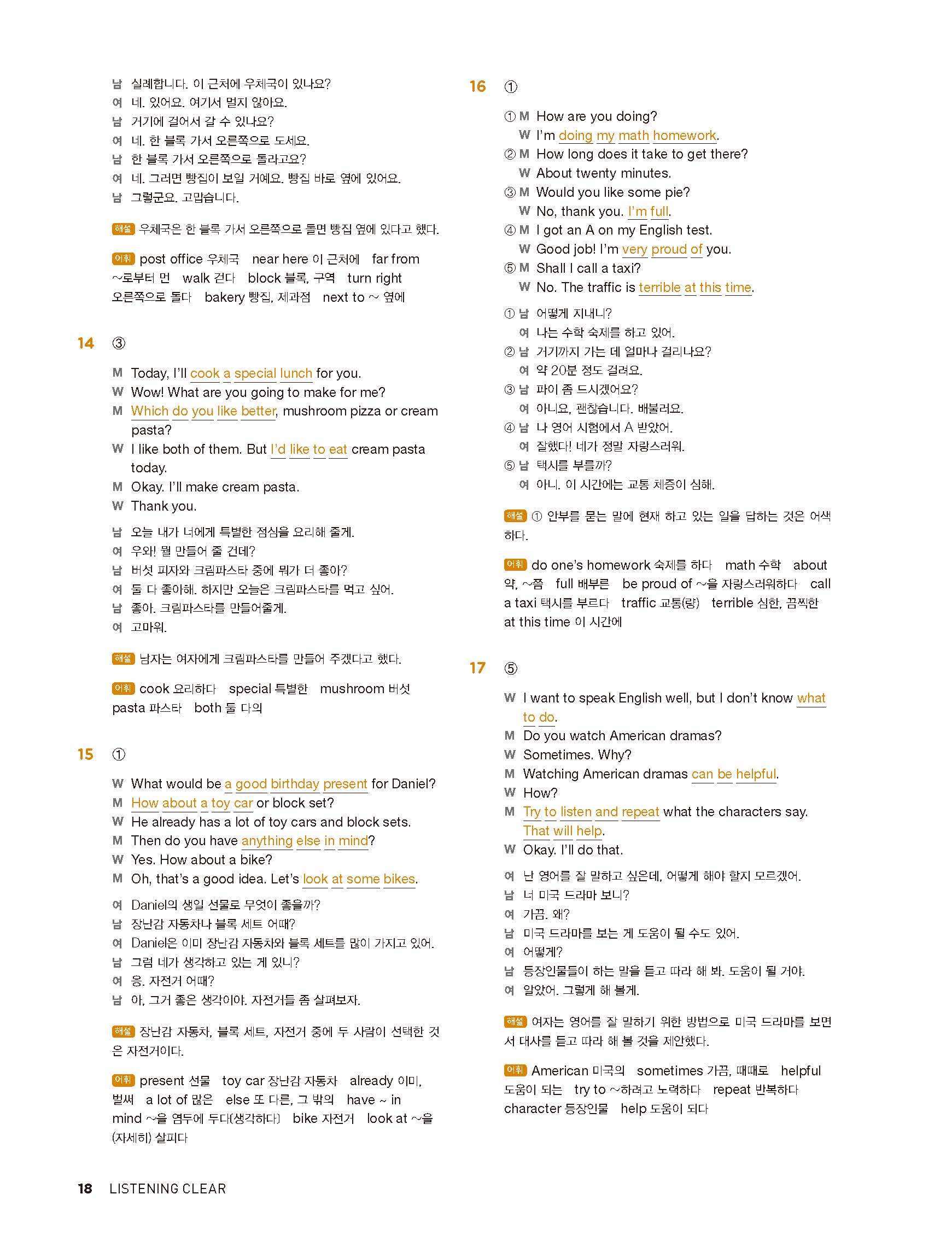 중학리스닝클리어 레벨1 답지 해설지 사진답지 빠른답지 모바일최적화
