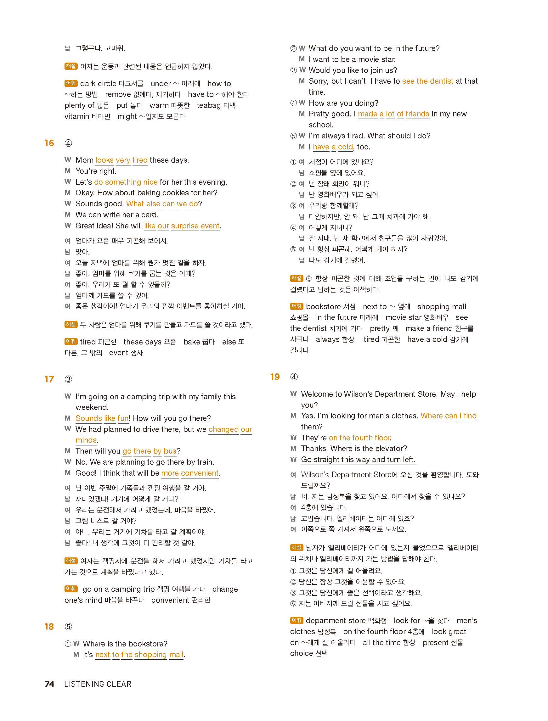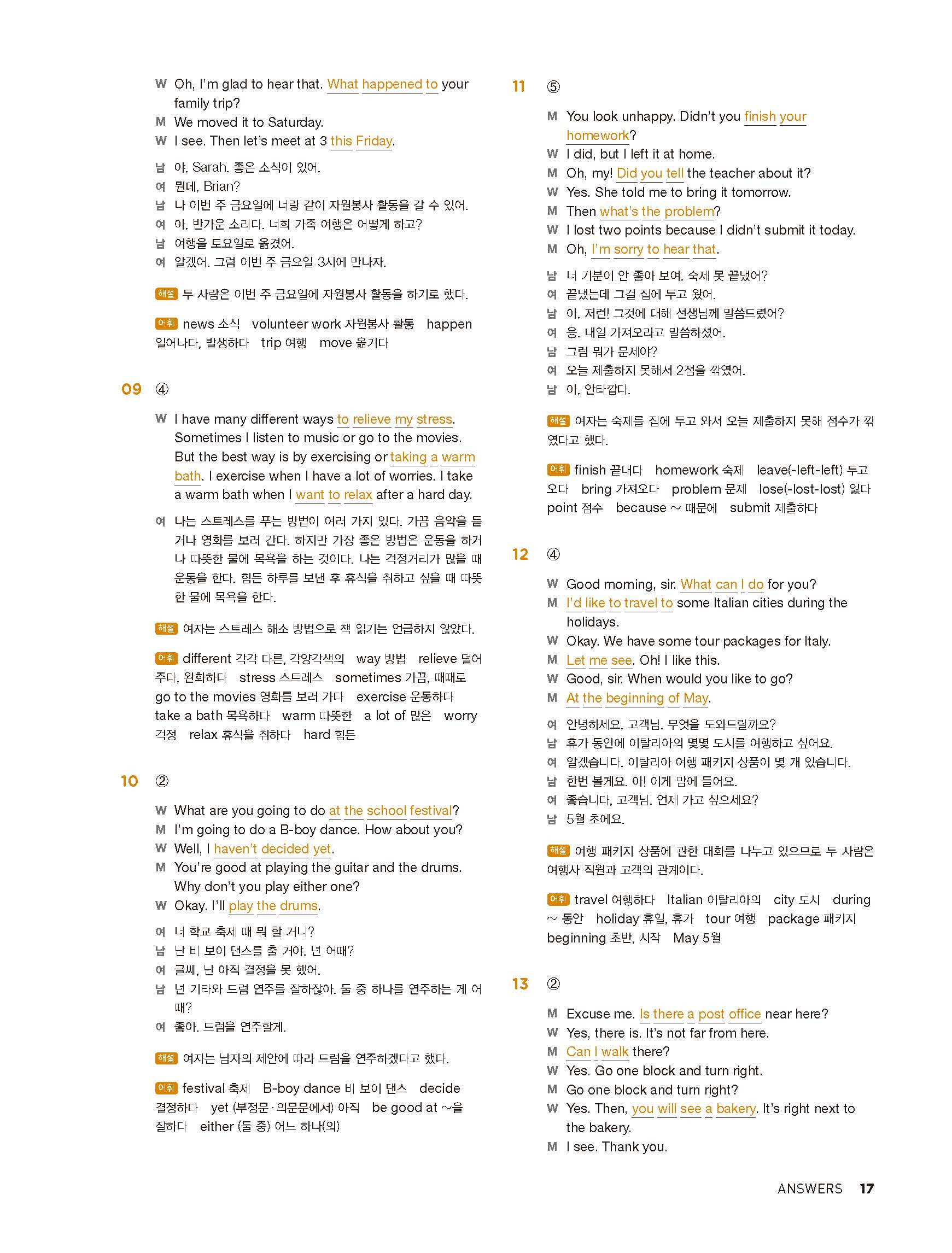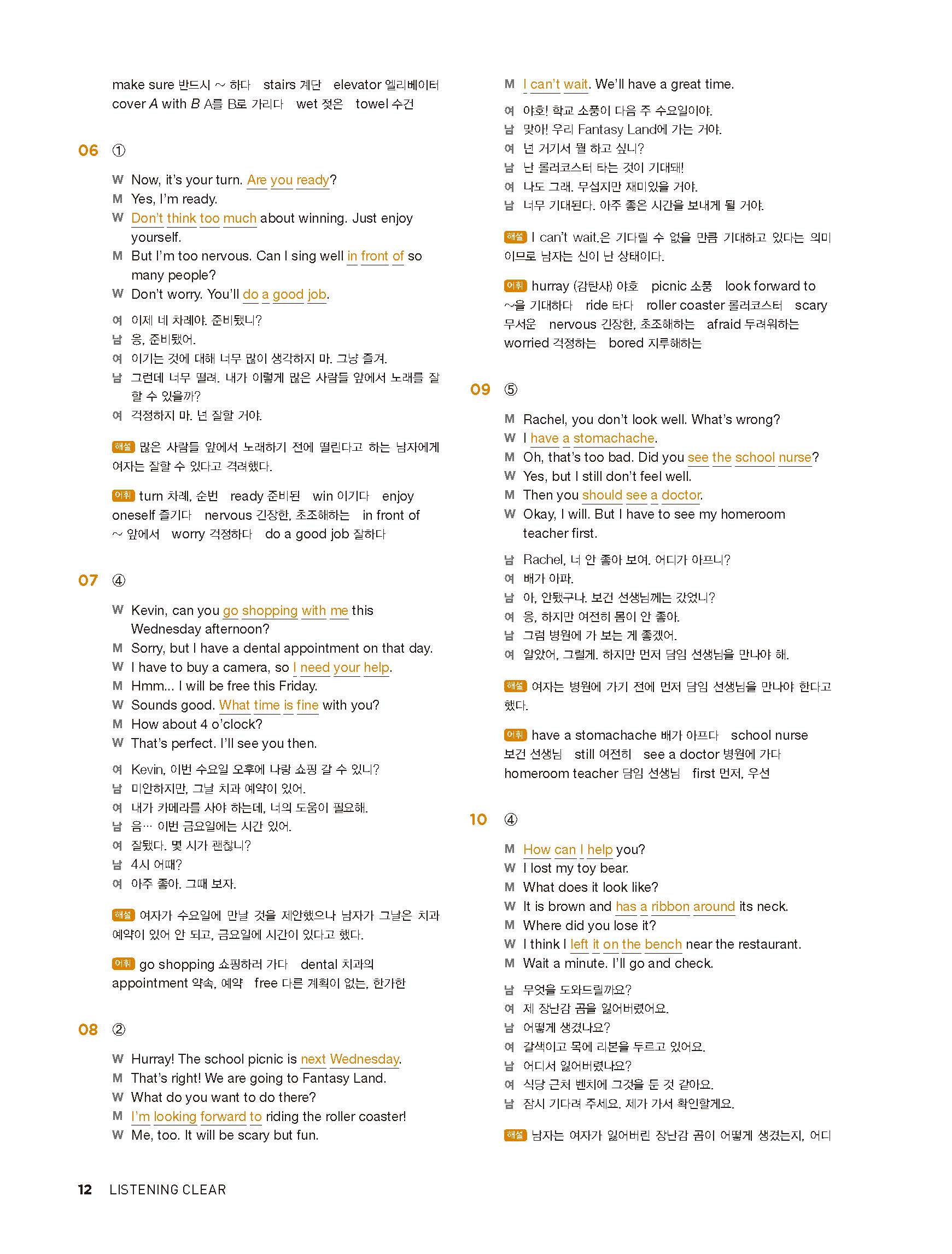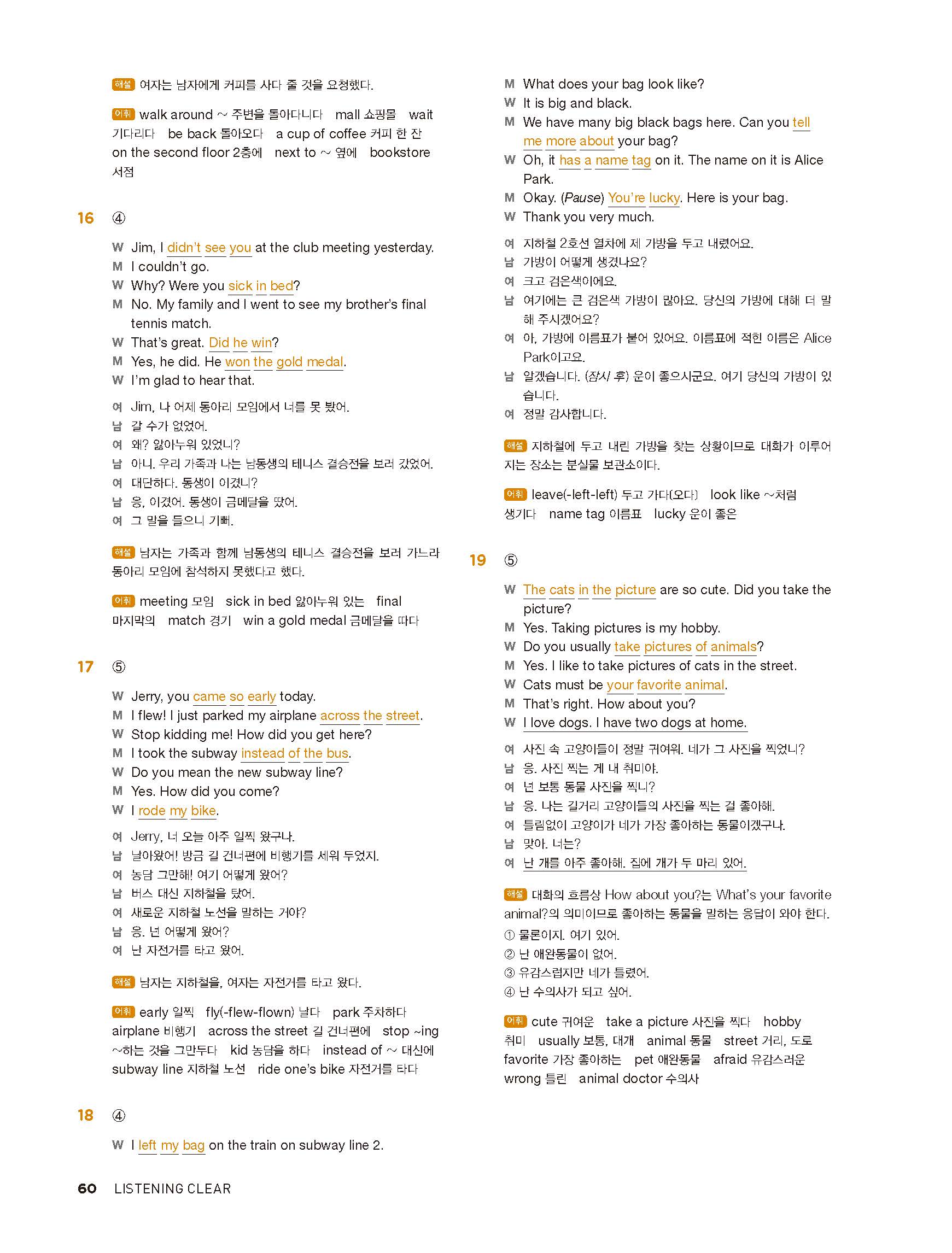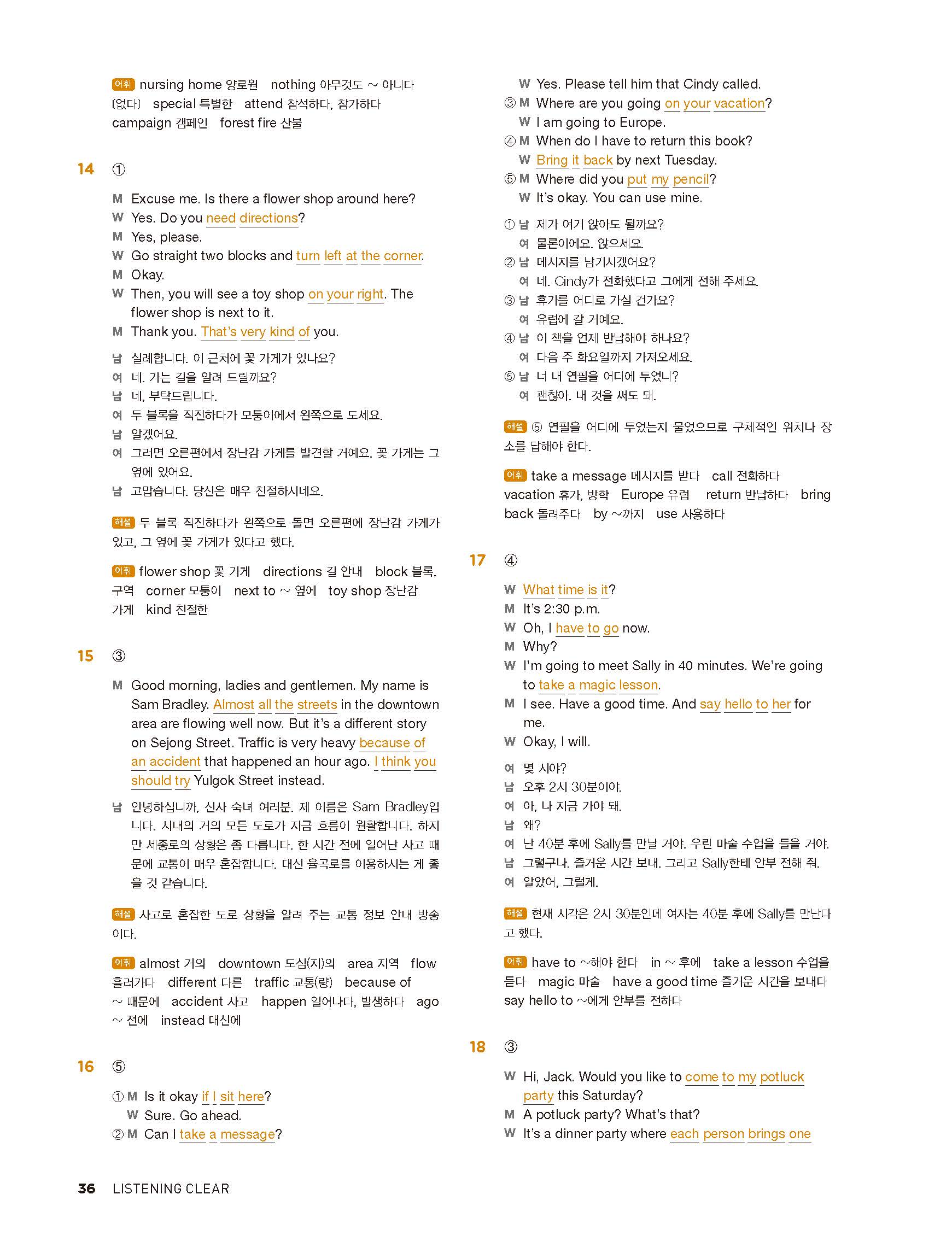 중학리스닝클리어 레벨1 답지 해설지 사진답지 빠른답지 모바일최적화