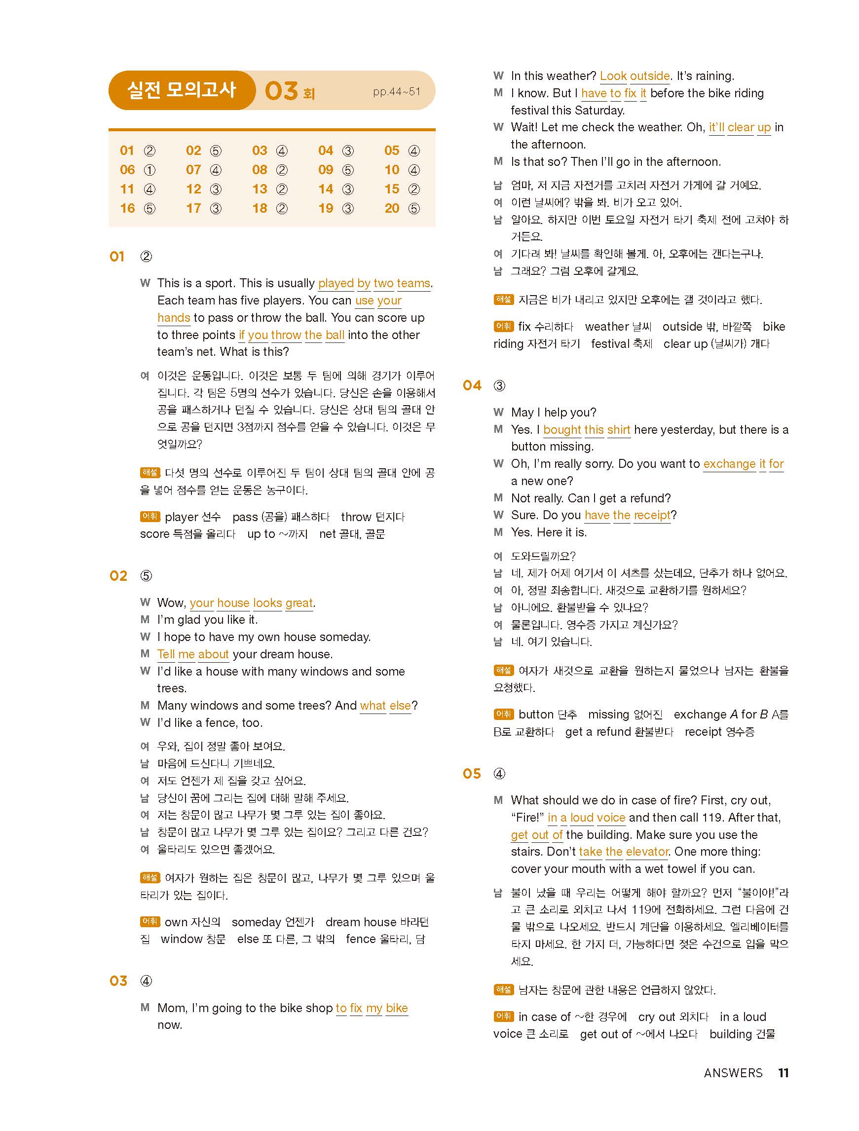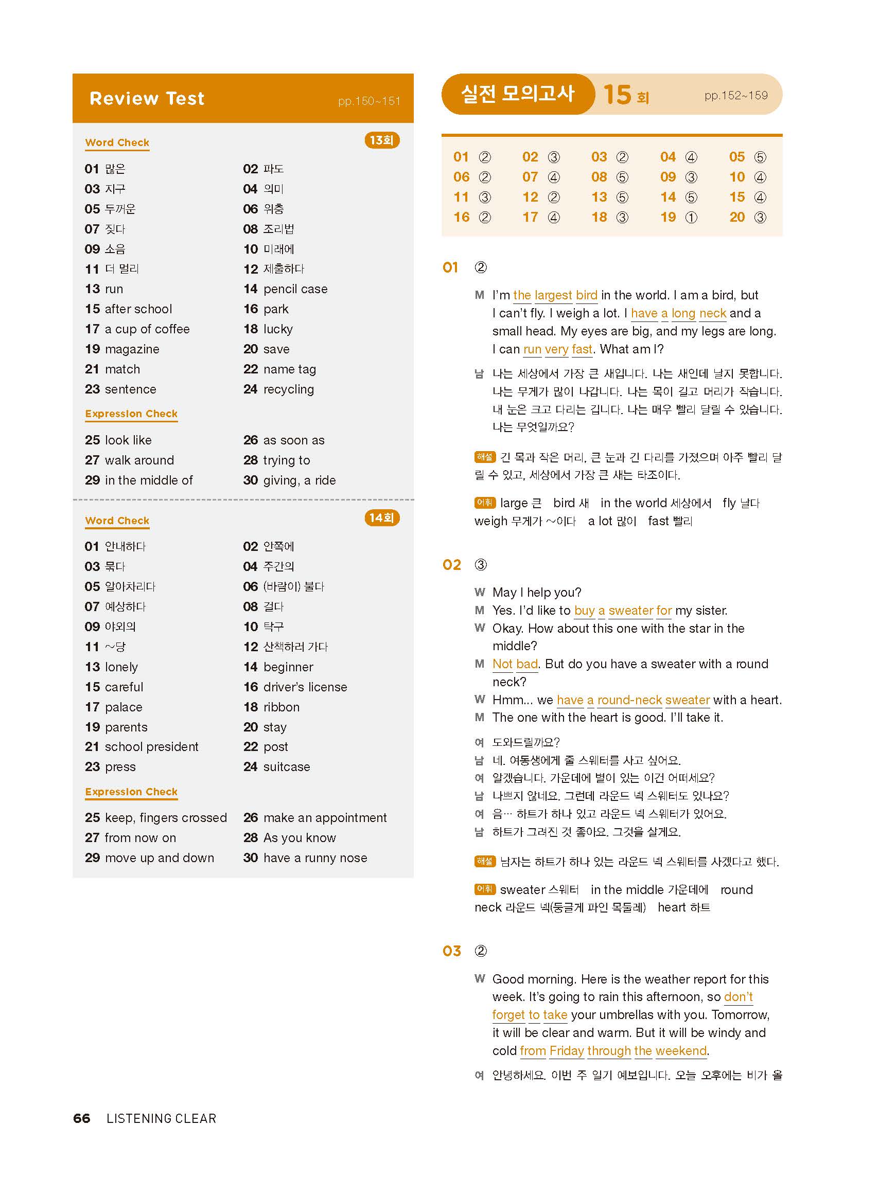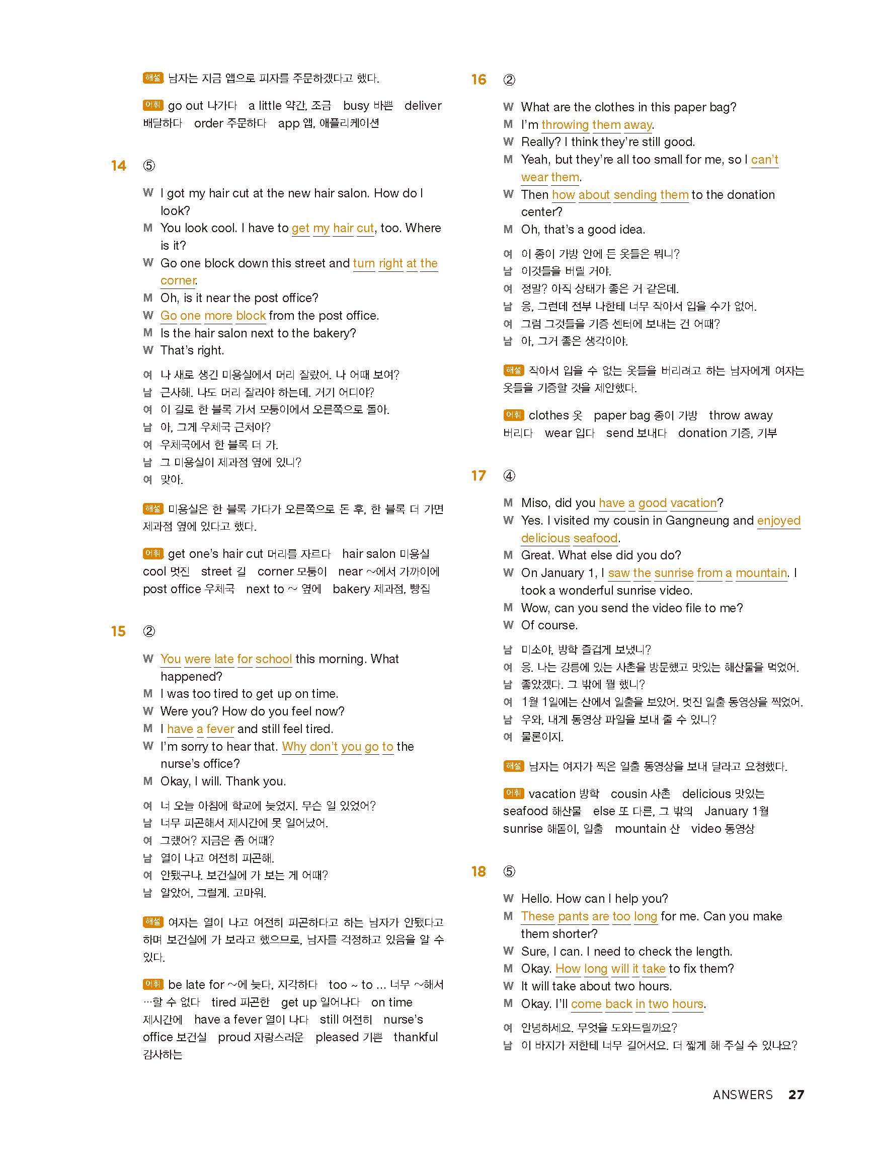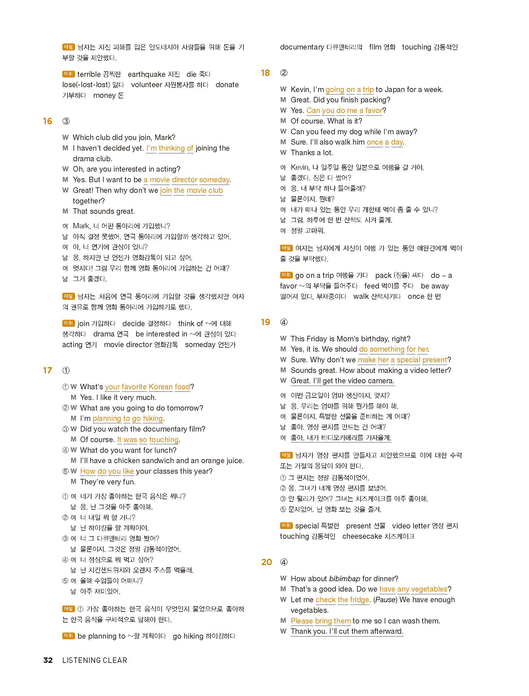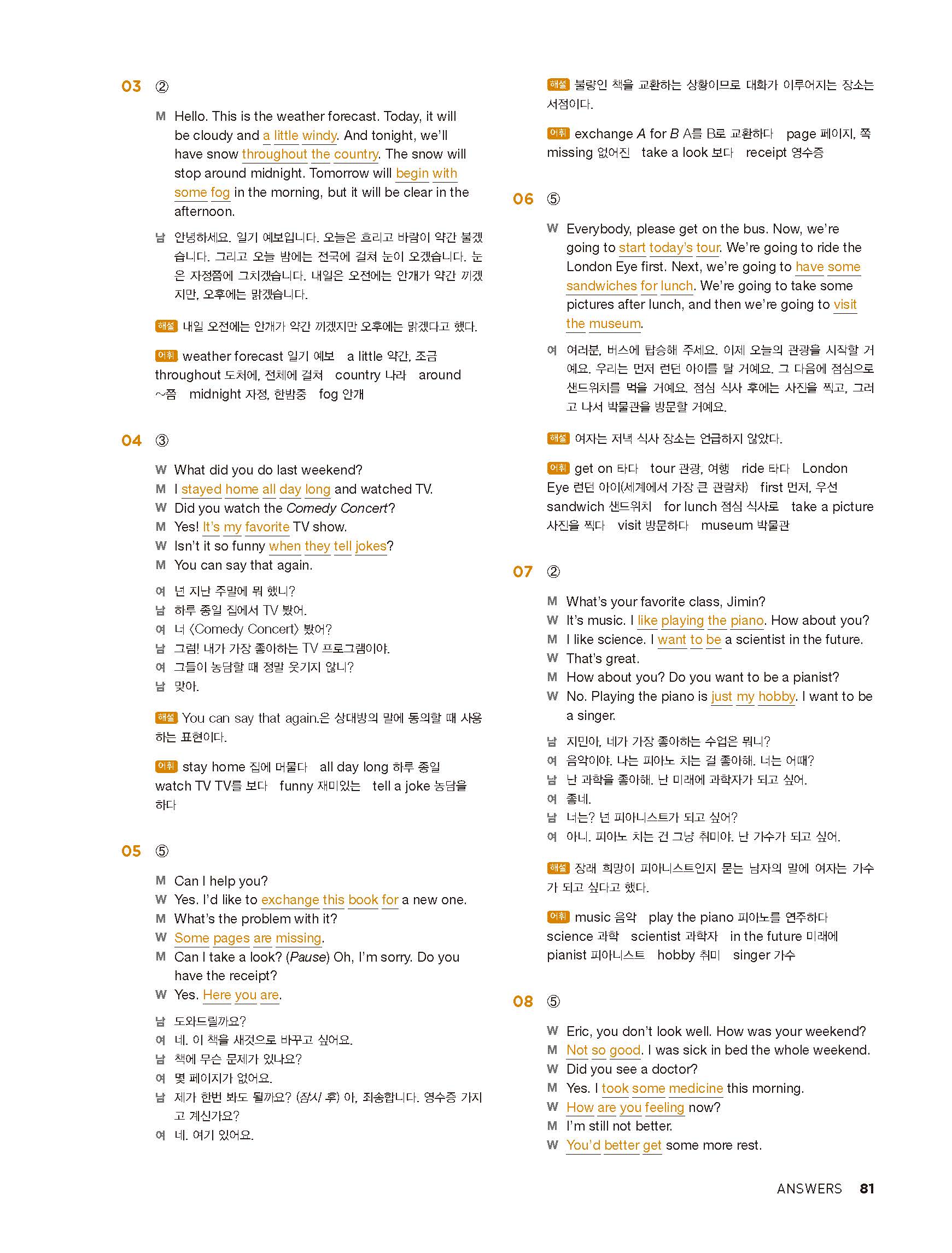 중학리스닝클리어 레벨1 답지 해설지 사진답지 빠른답지 모바일최적화